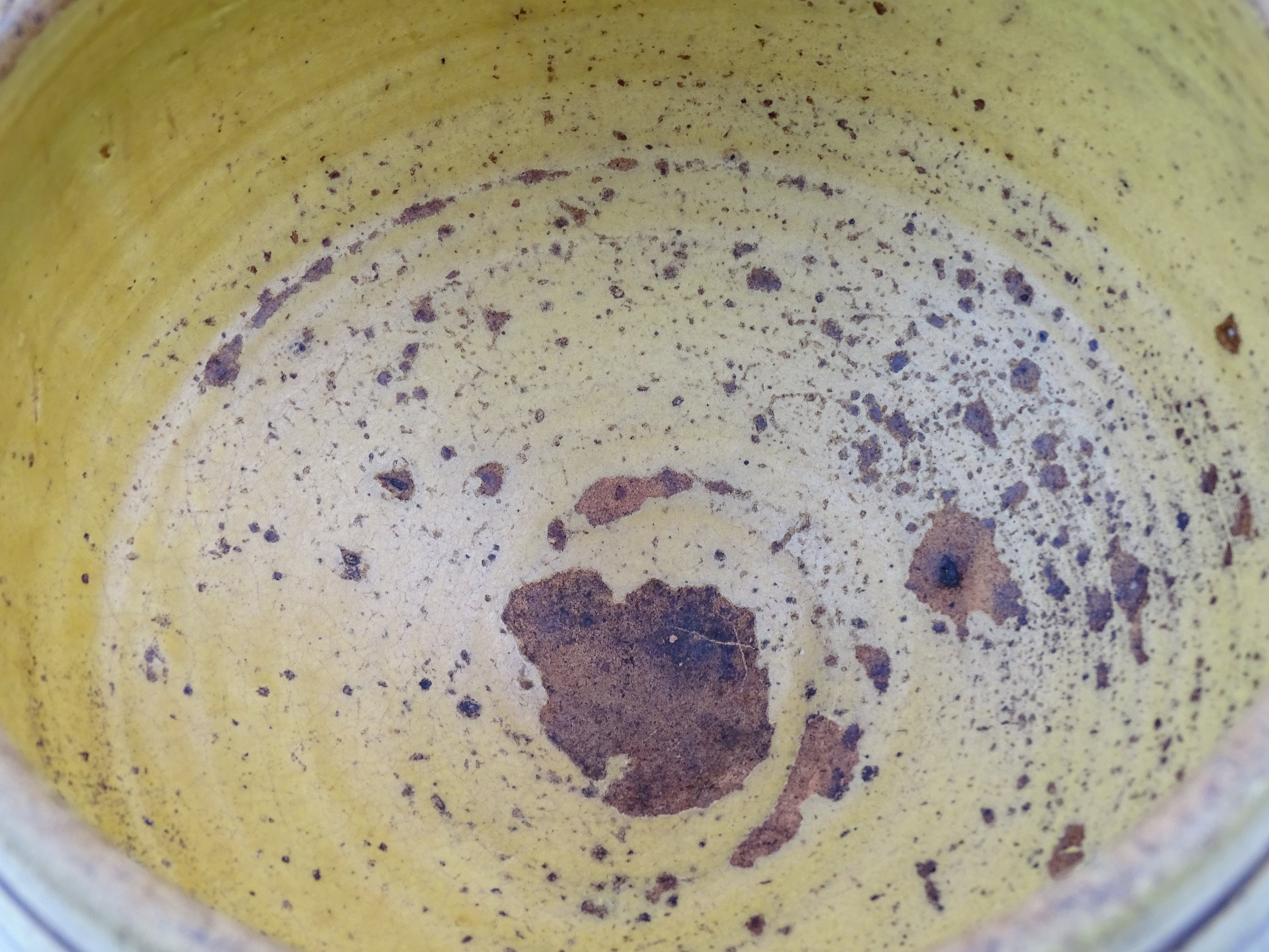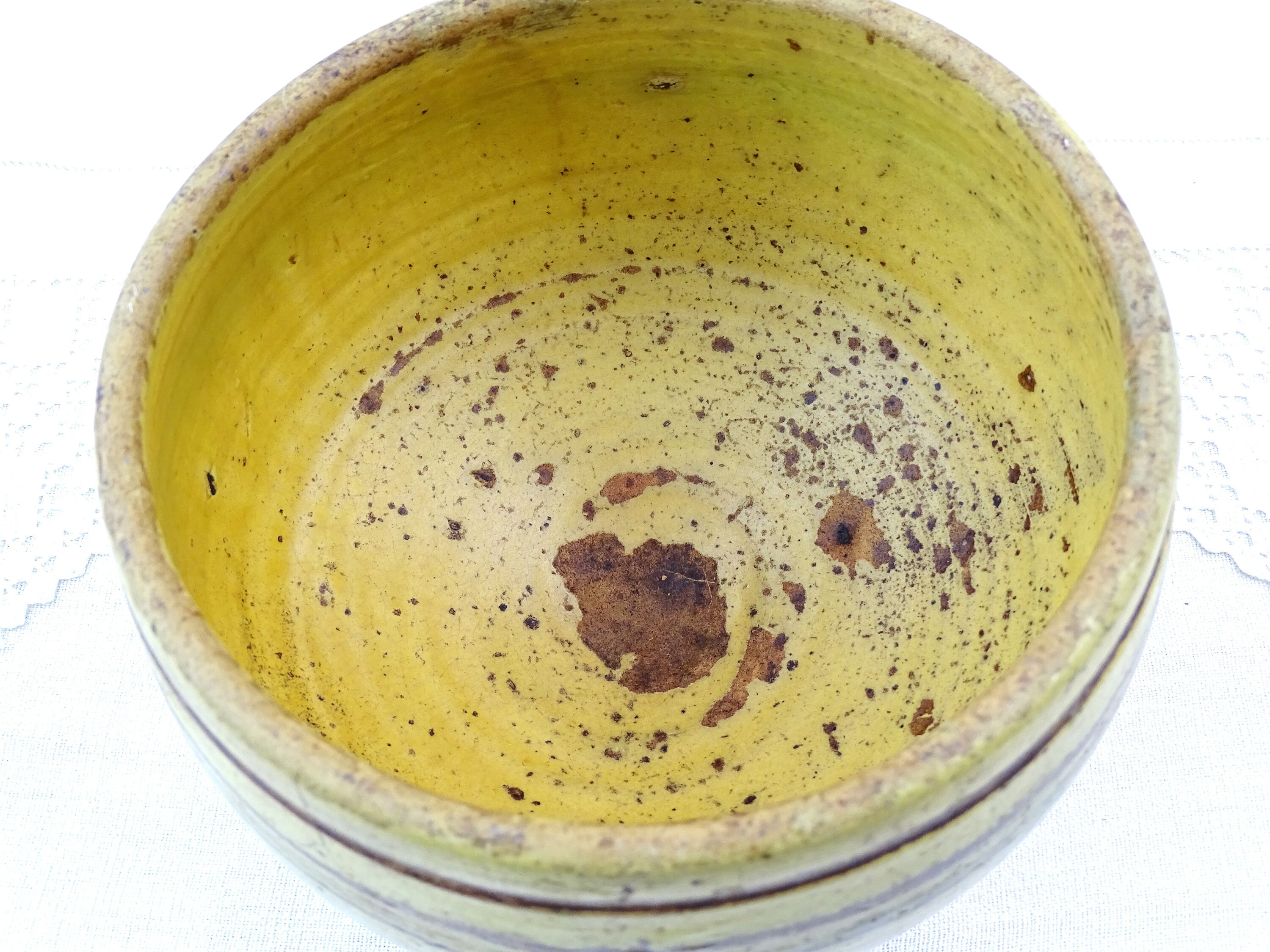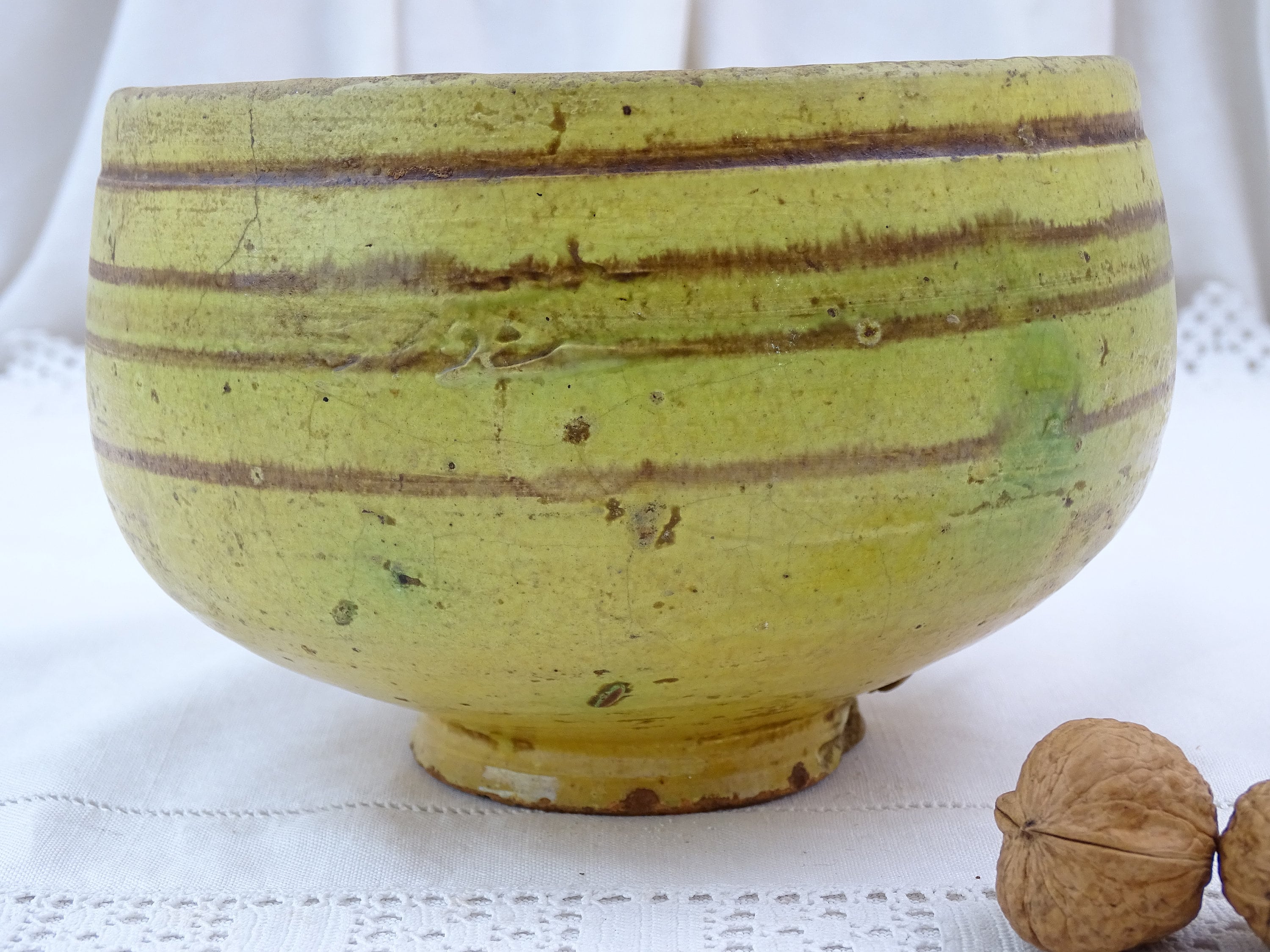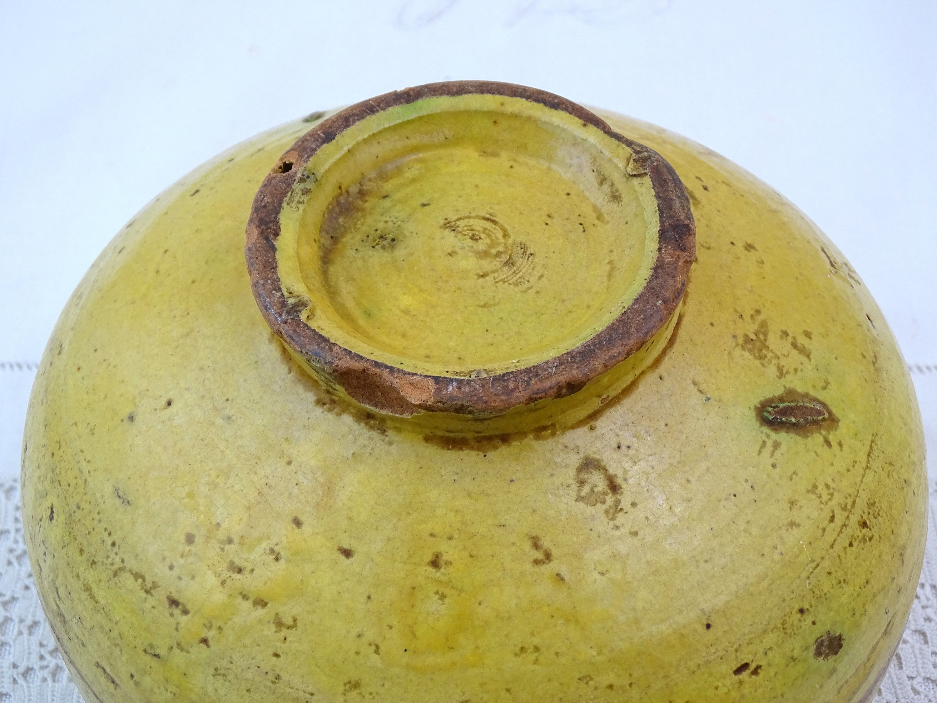Antique French Provencal pottery footed bowl in yellow glaze. Made of pottery. A rare example. Ca 1800s.