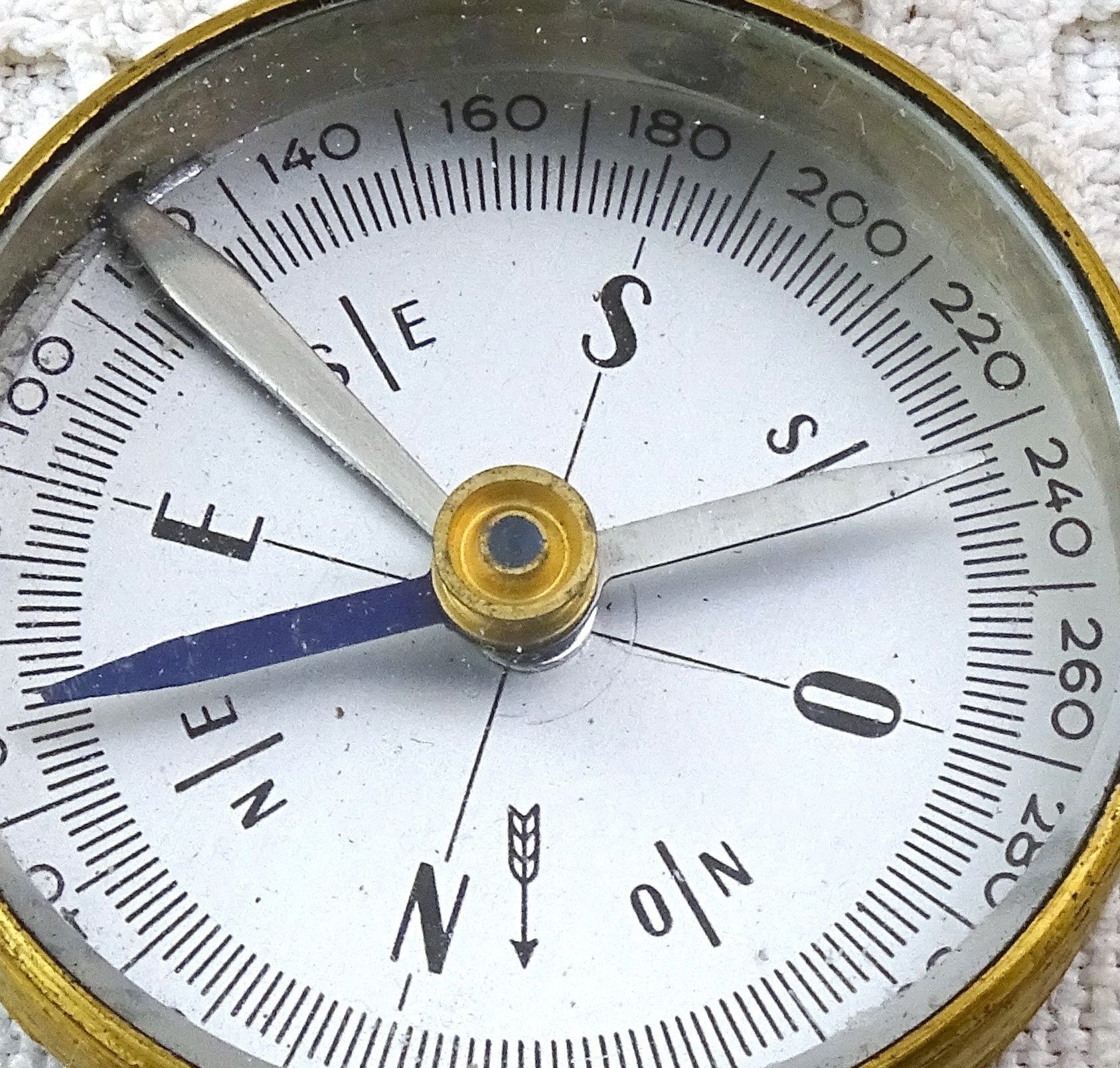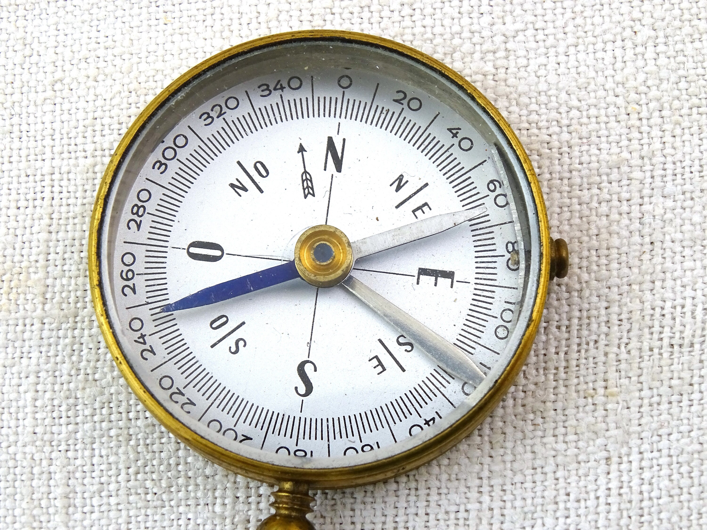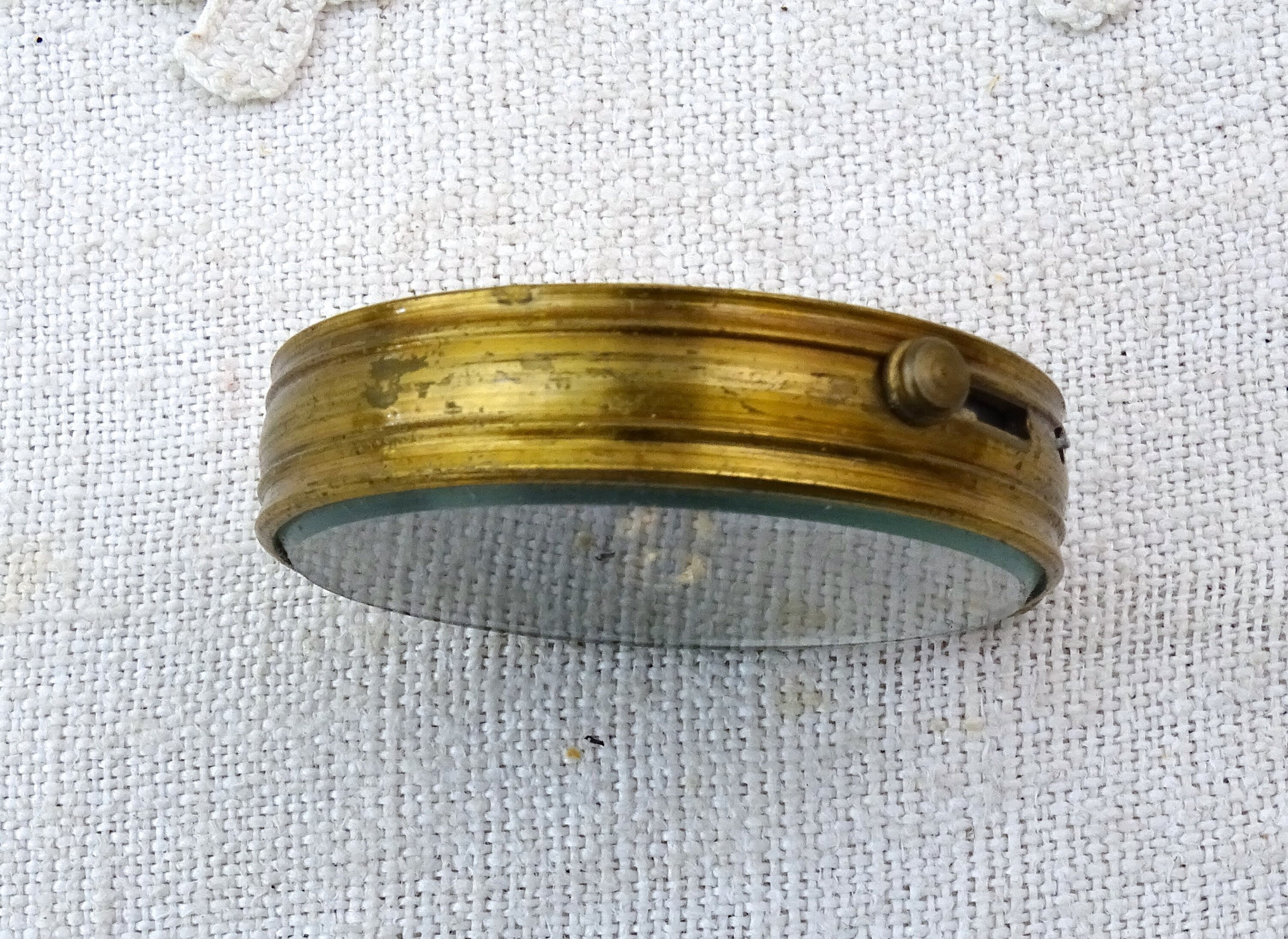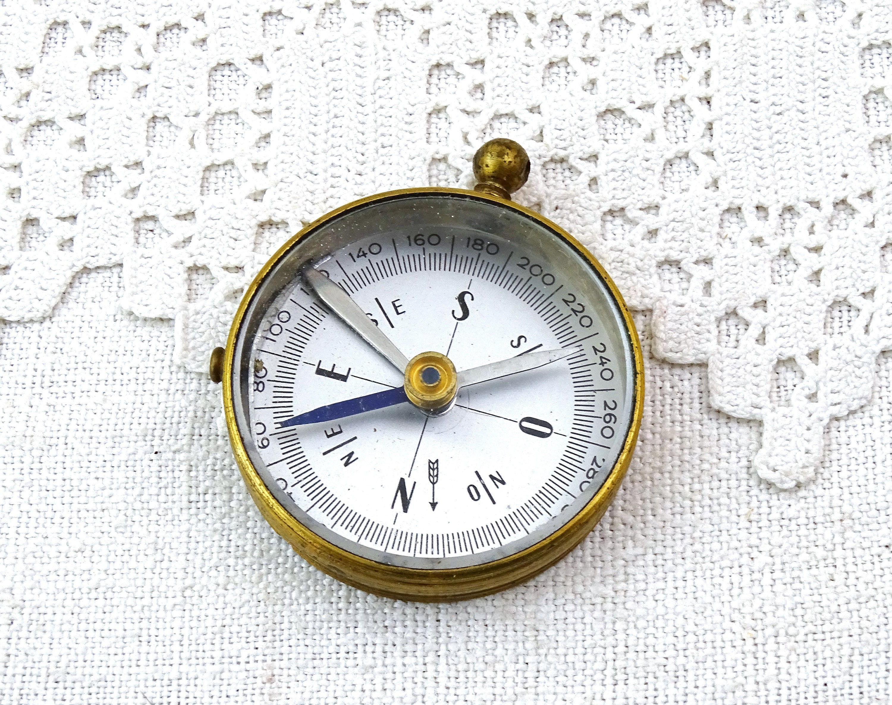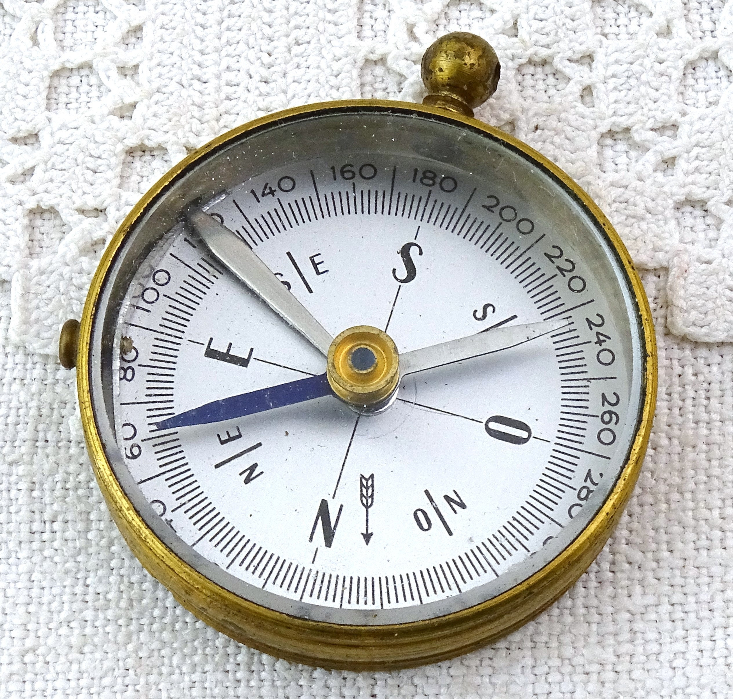 Antique Victorian compass. French compass rose, gold colored frame with glass lens. Circa late 1800s early 1900s