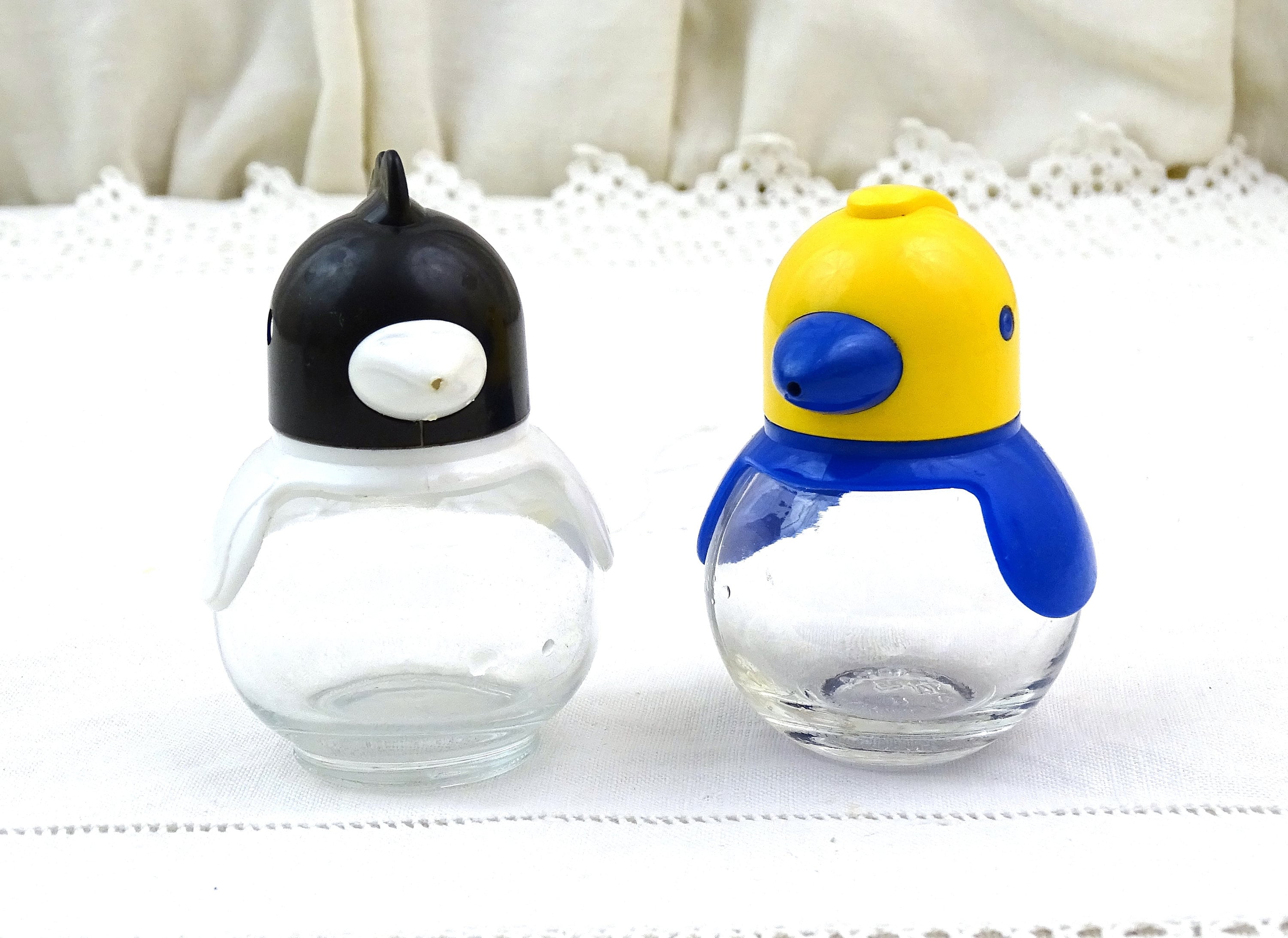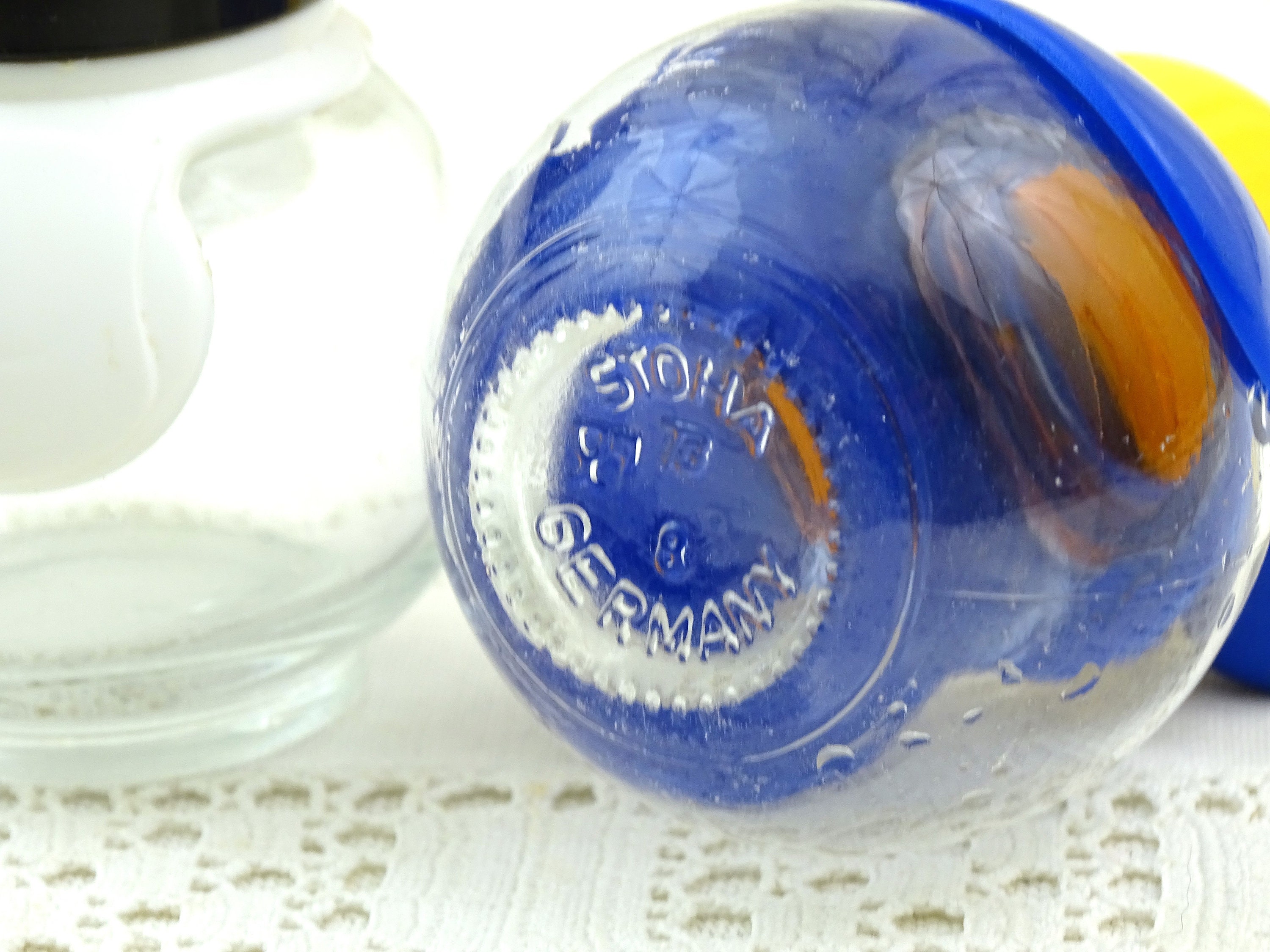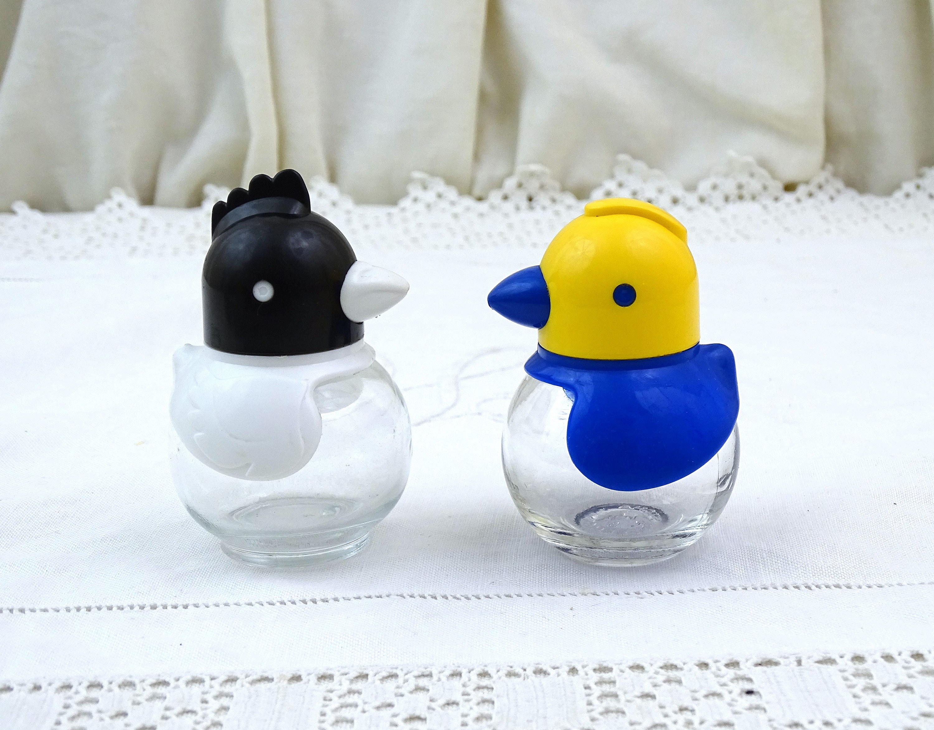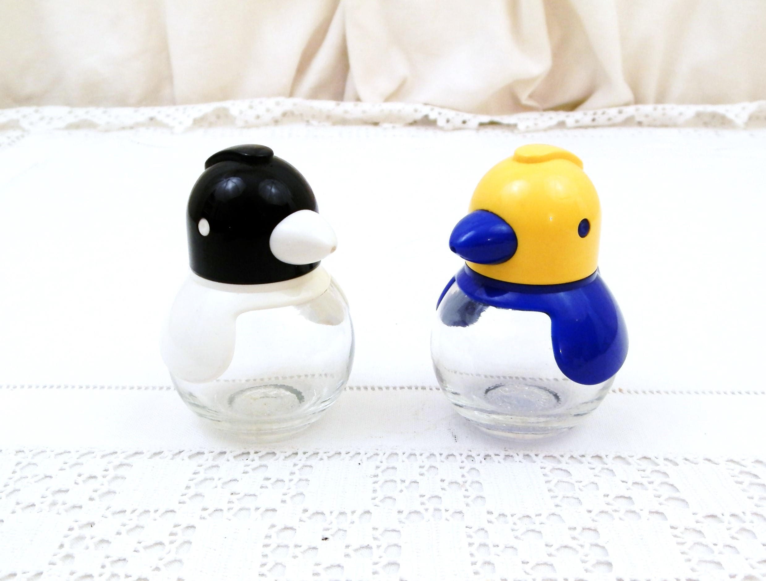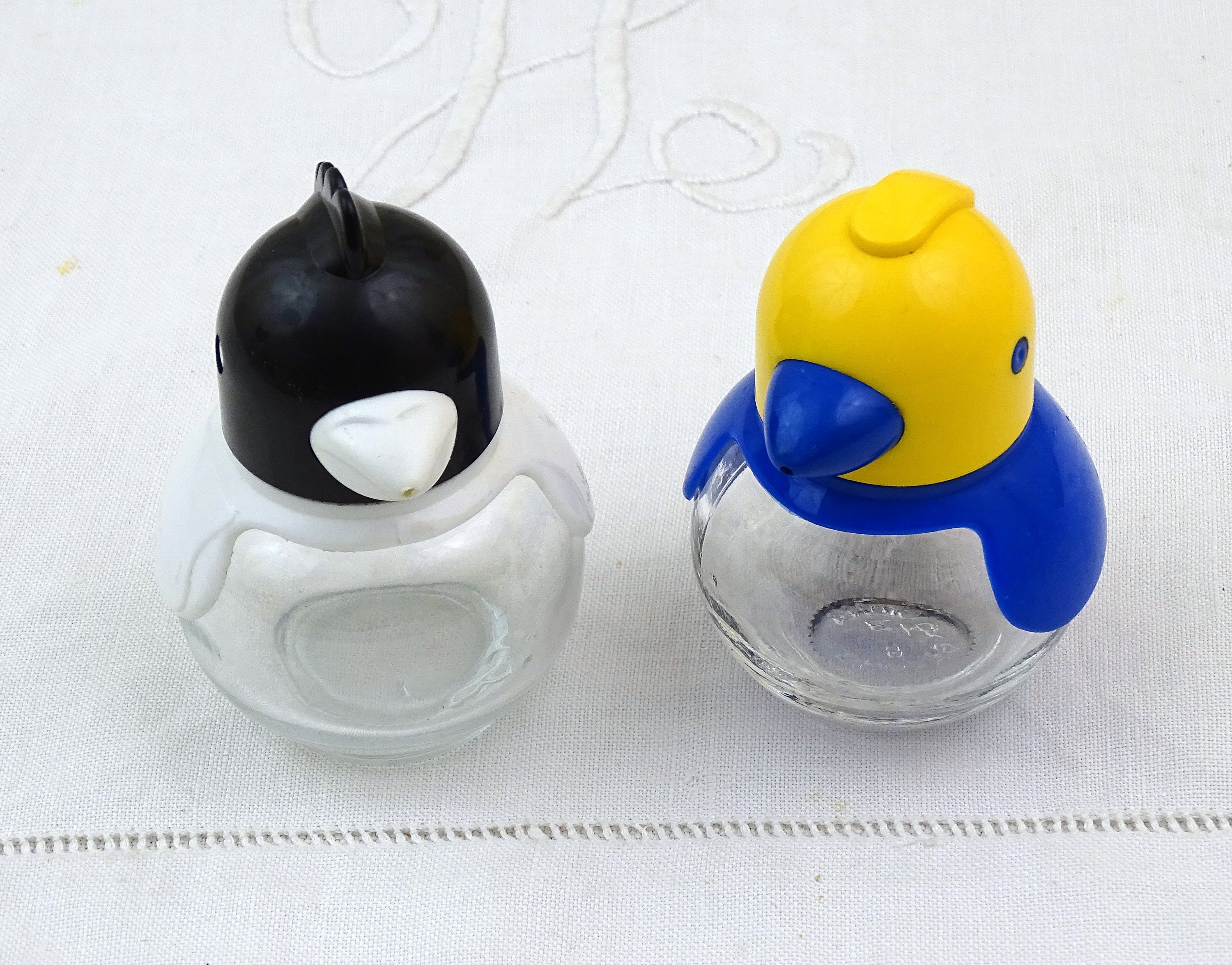 Vintage salt and pepper shakers made by Stoha from Germany. Colorful stylized bird design. Circa 1980s. Found at a French flea market. Embossed Stoha on the base.