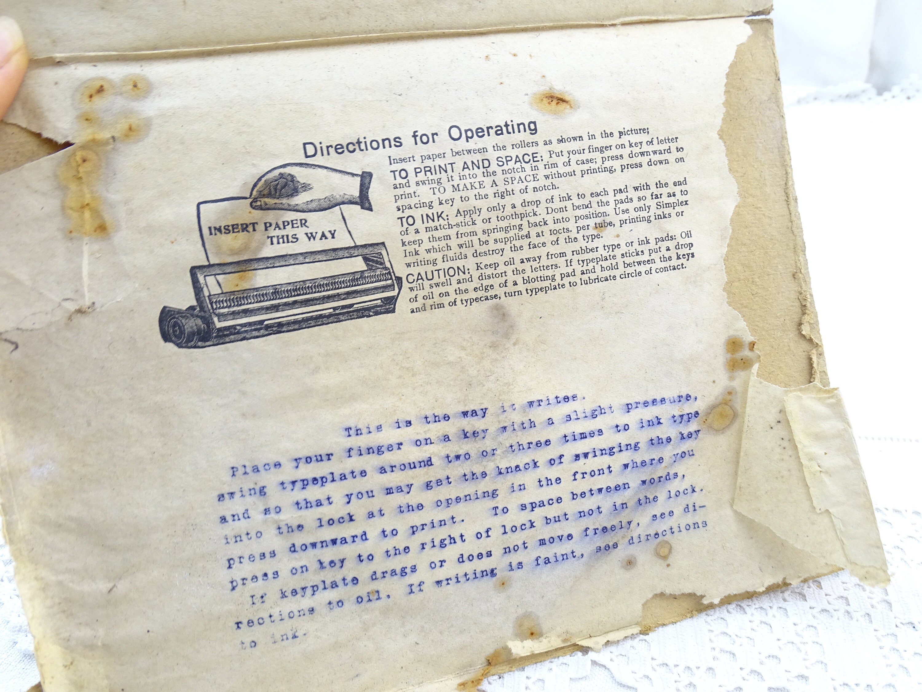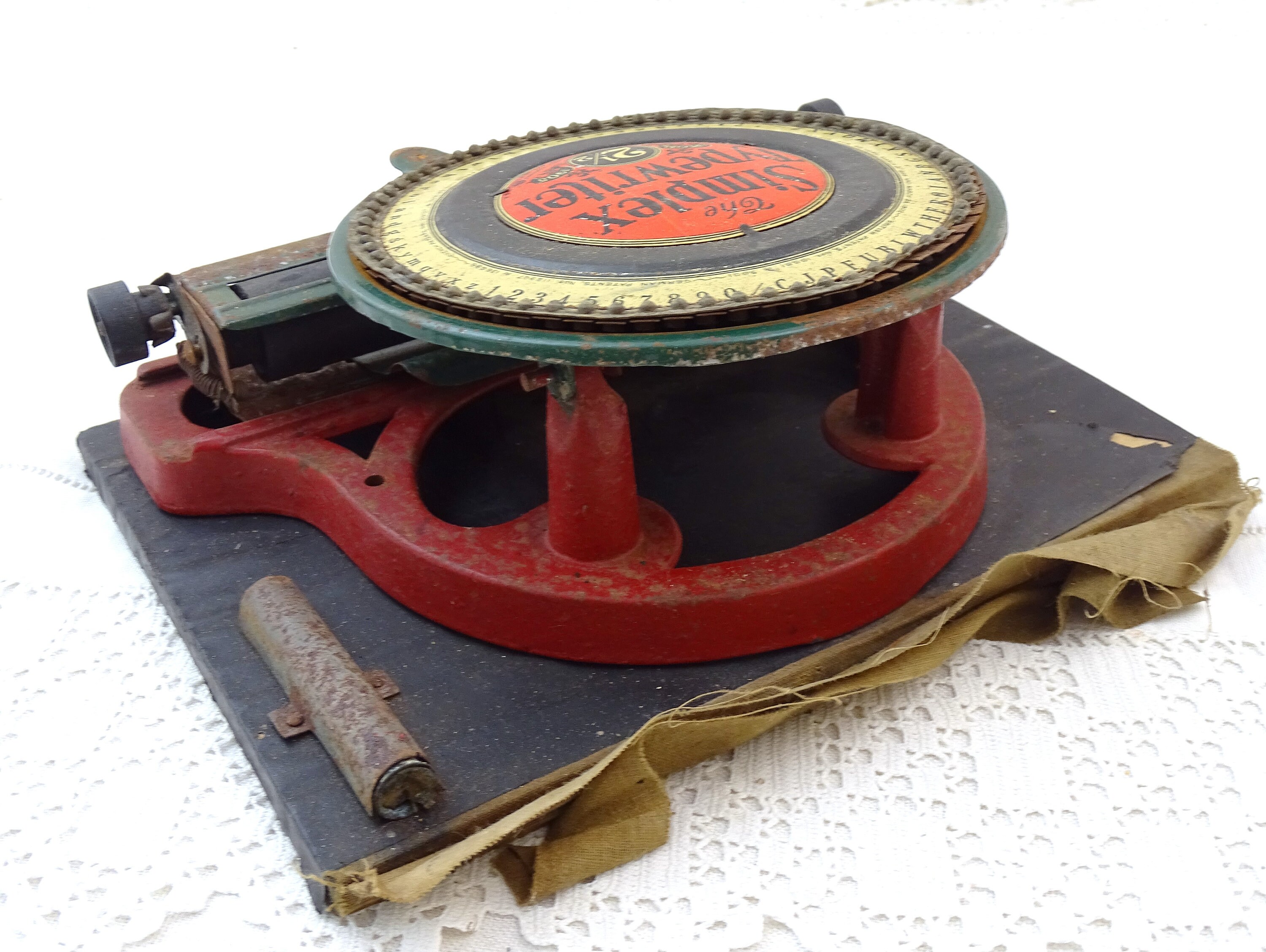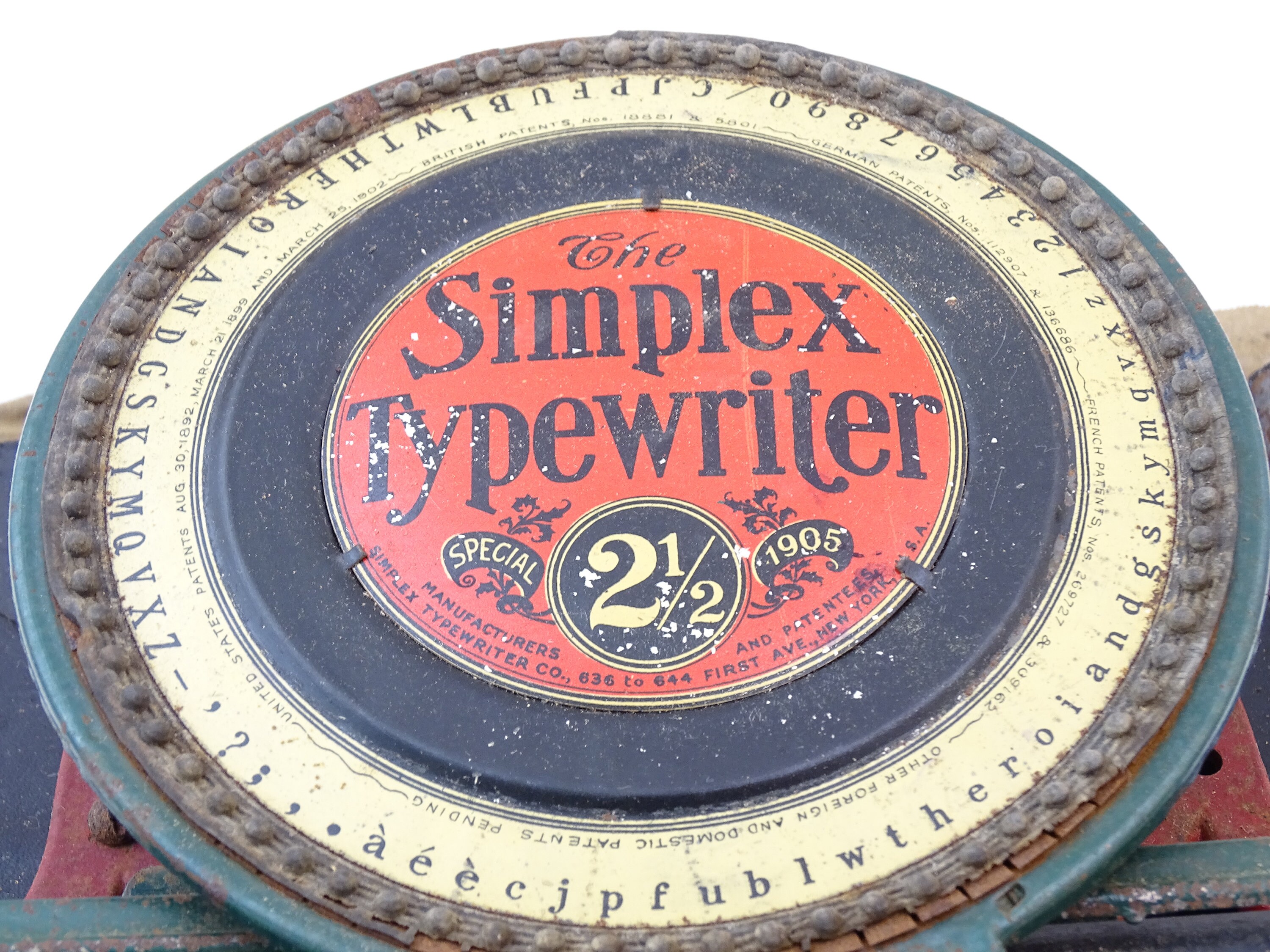 Antique Simplex typewriter special 2 1/2. Made in the USA of metal. Appears to be in working order, although this has not been tested and can not be guaranteed. Remnants of the instructions. Ca early 1900s.