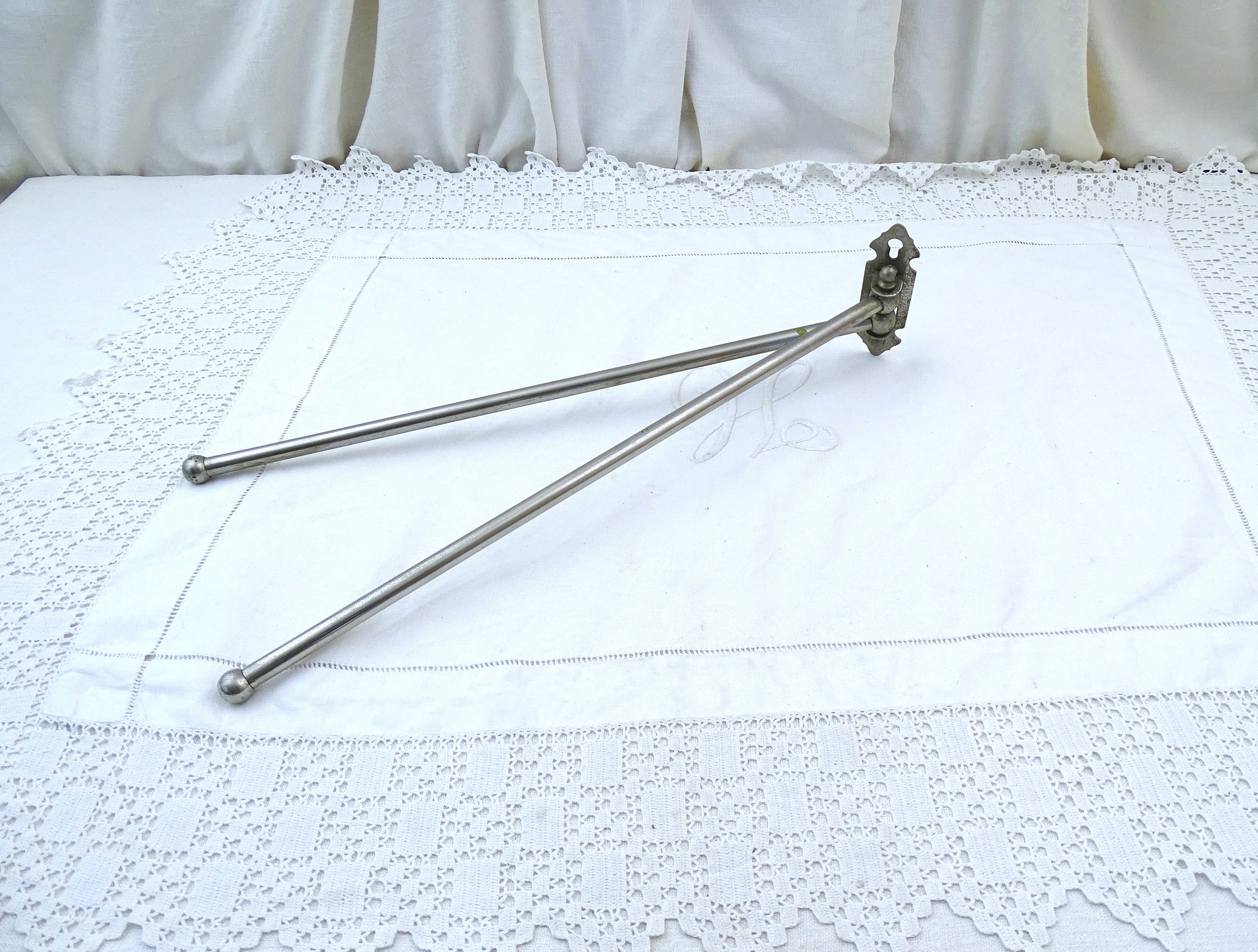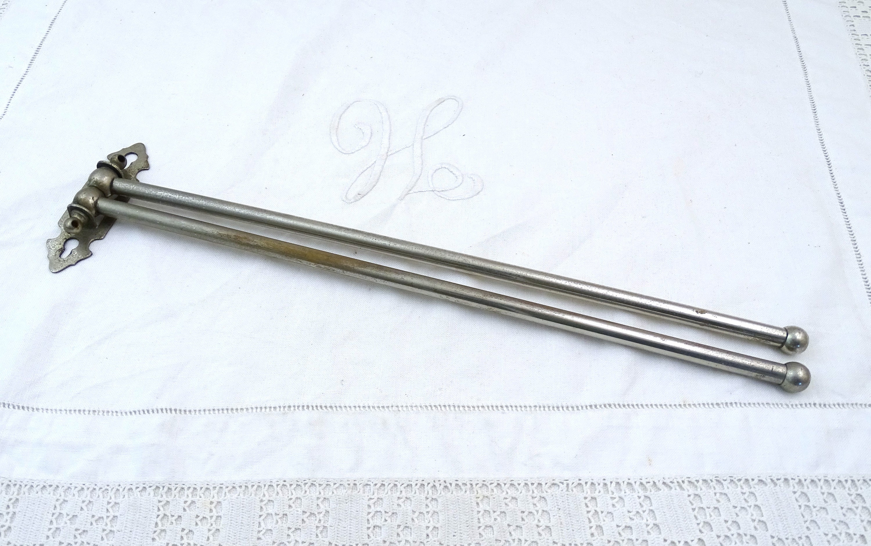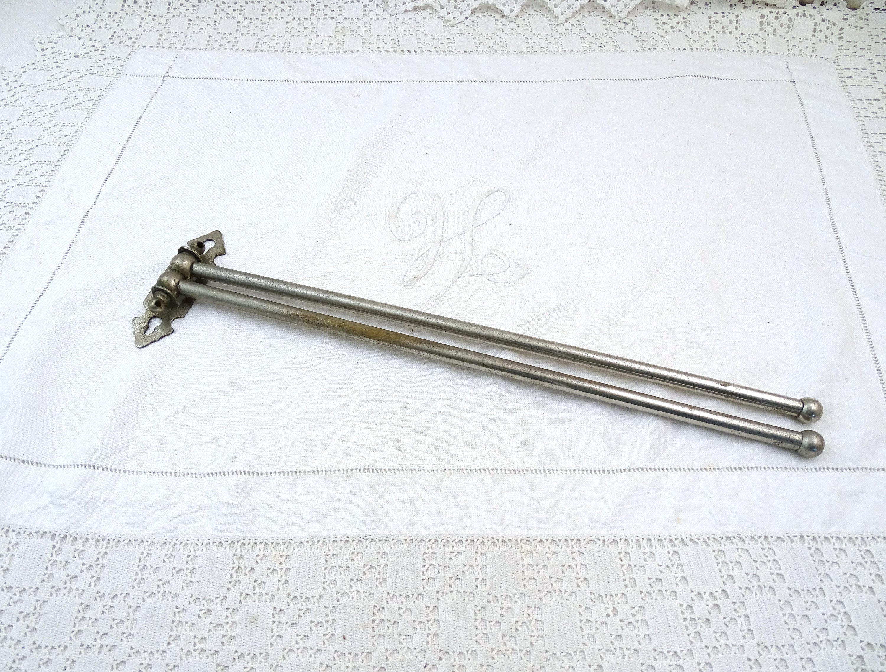Vintage French wall mounted swivel tower rack with 2 rods. Made of chrome plated metal. Ca early to mid 1900s.
