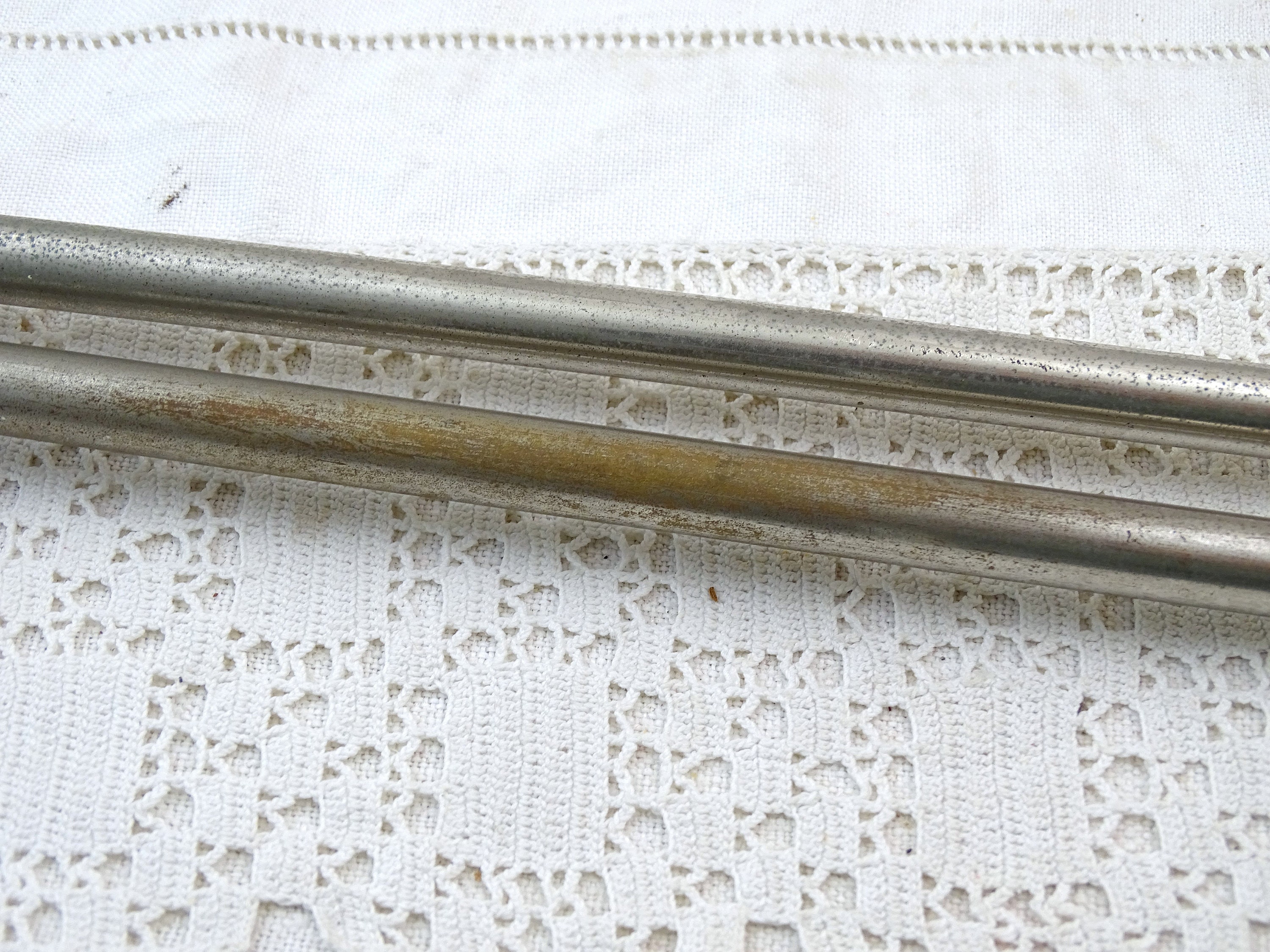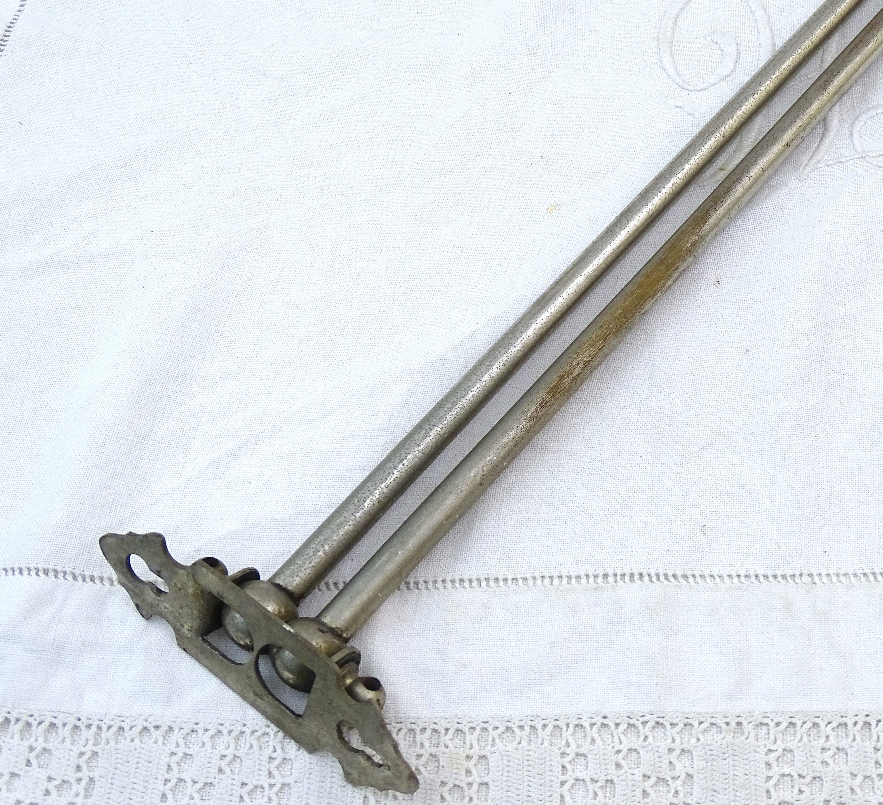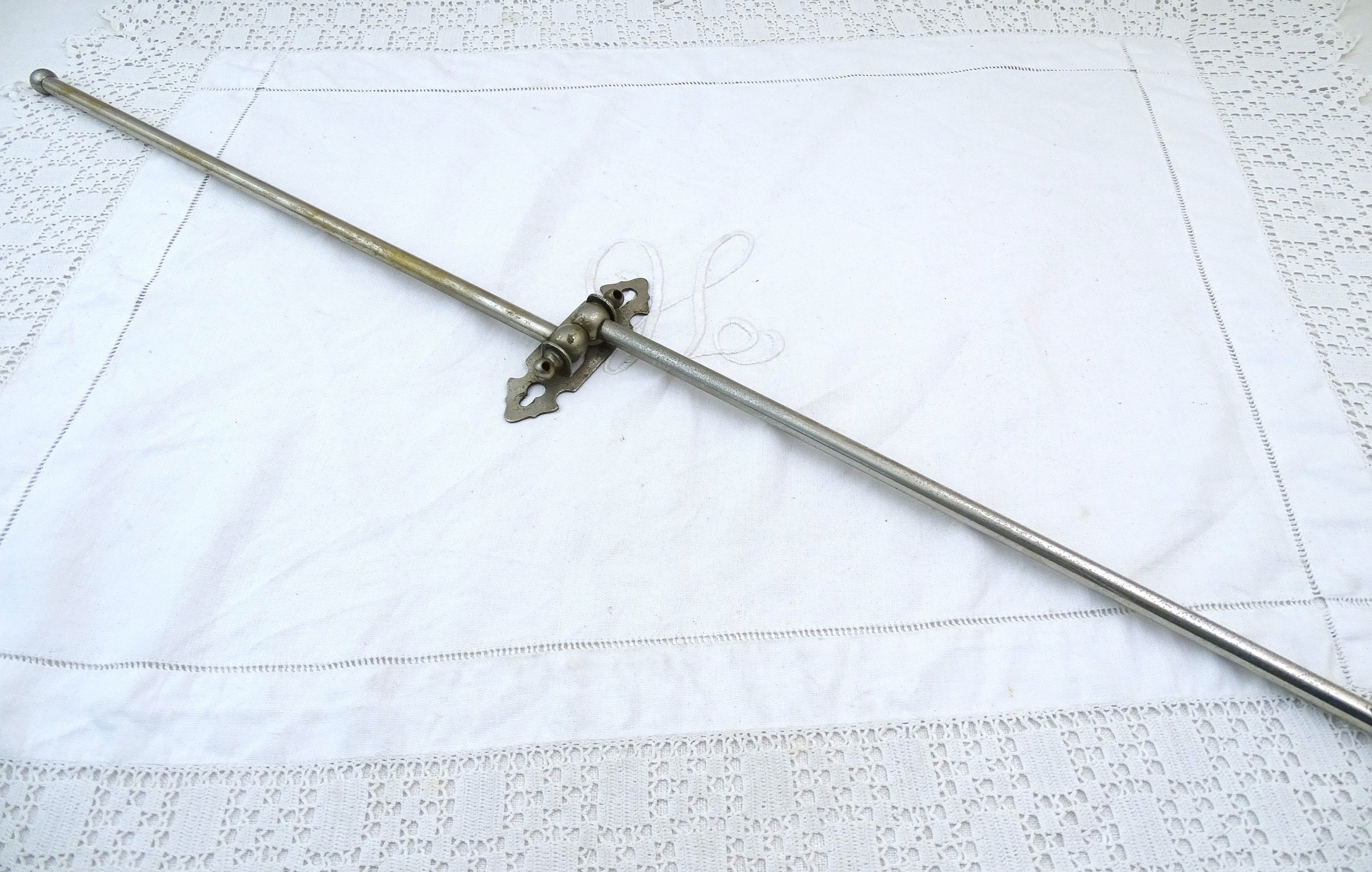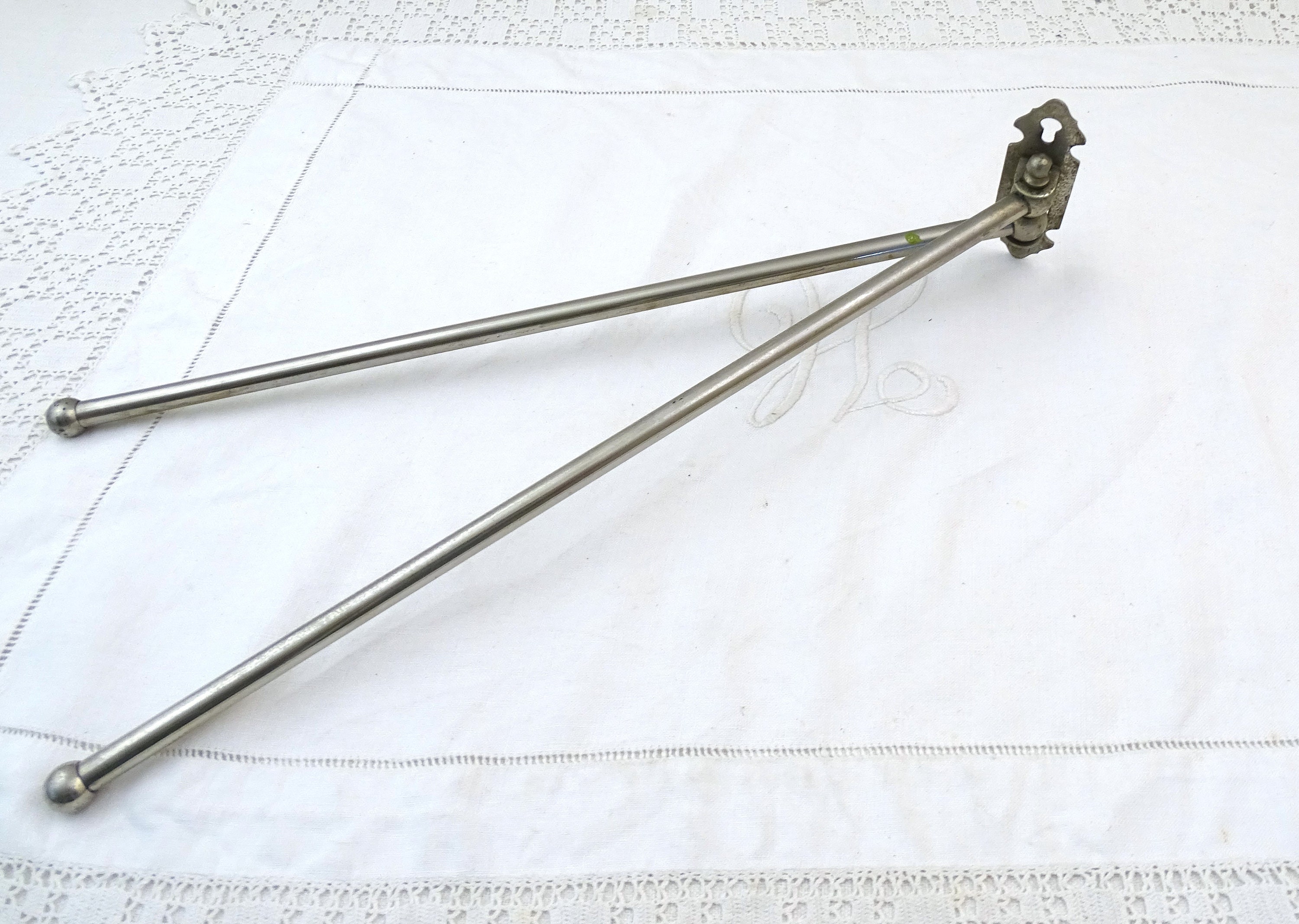 Vintage French wall mounted swivel tower rack with 2 rods. Made of chrome plated metal. Ca early to mid 1900s.