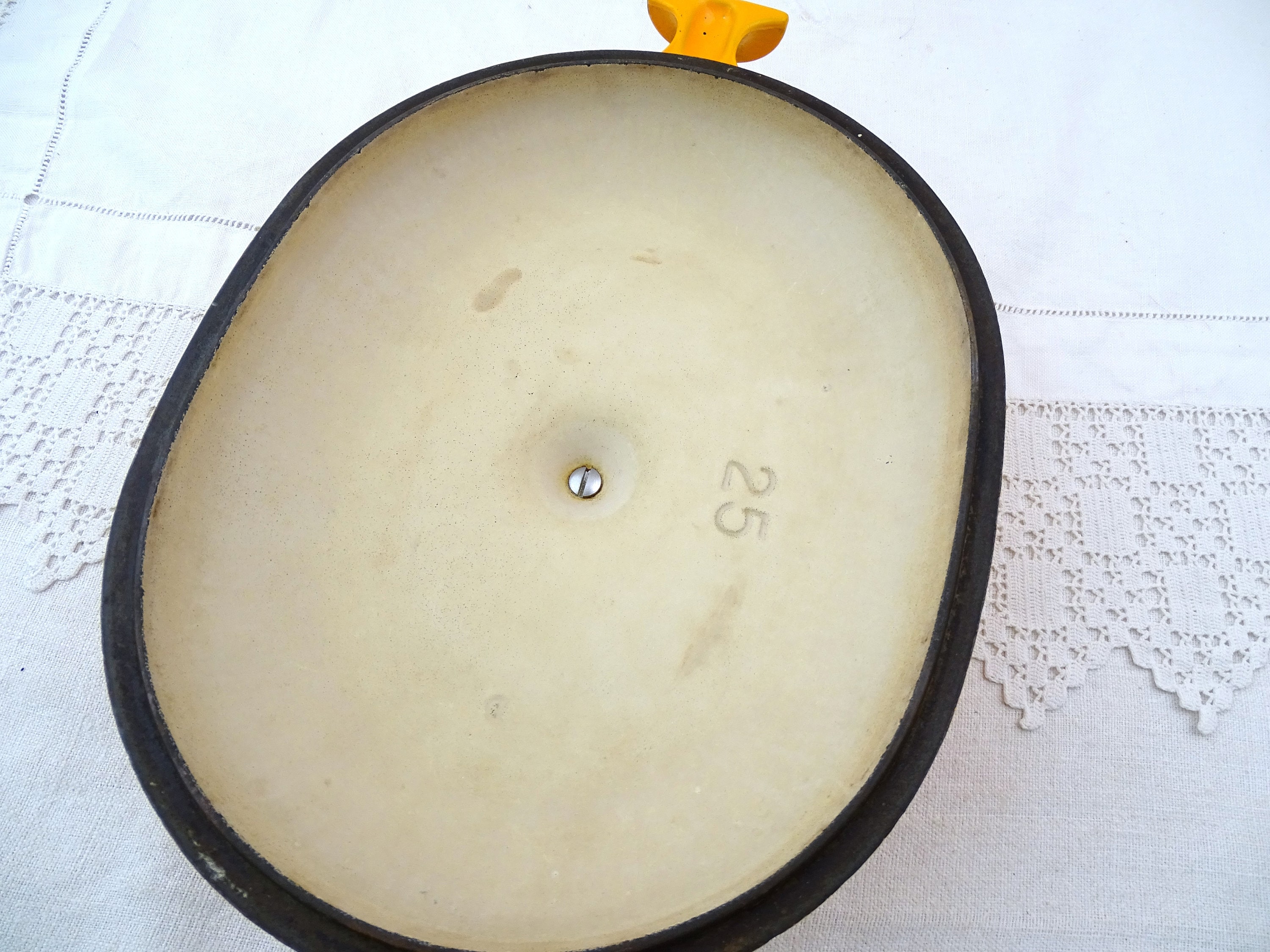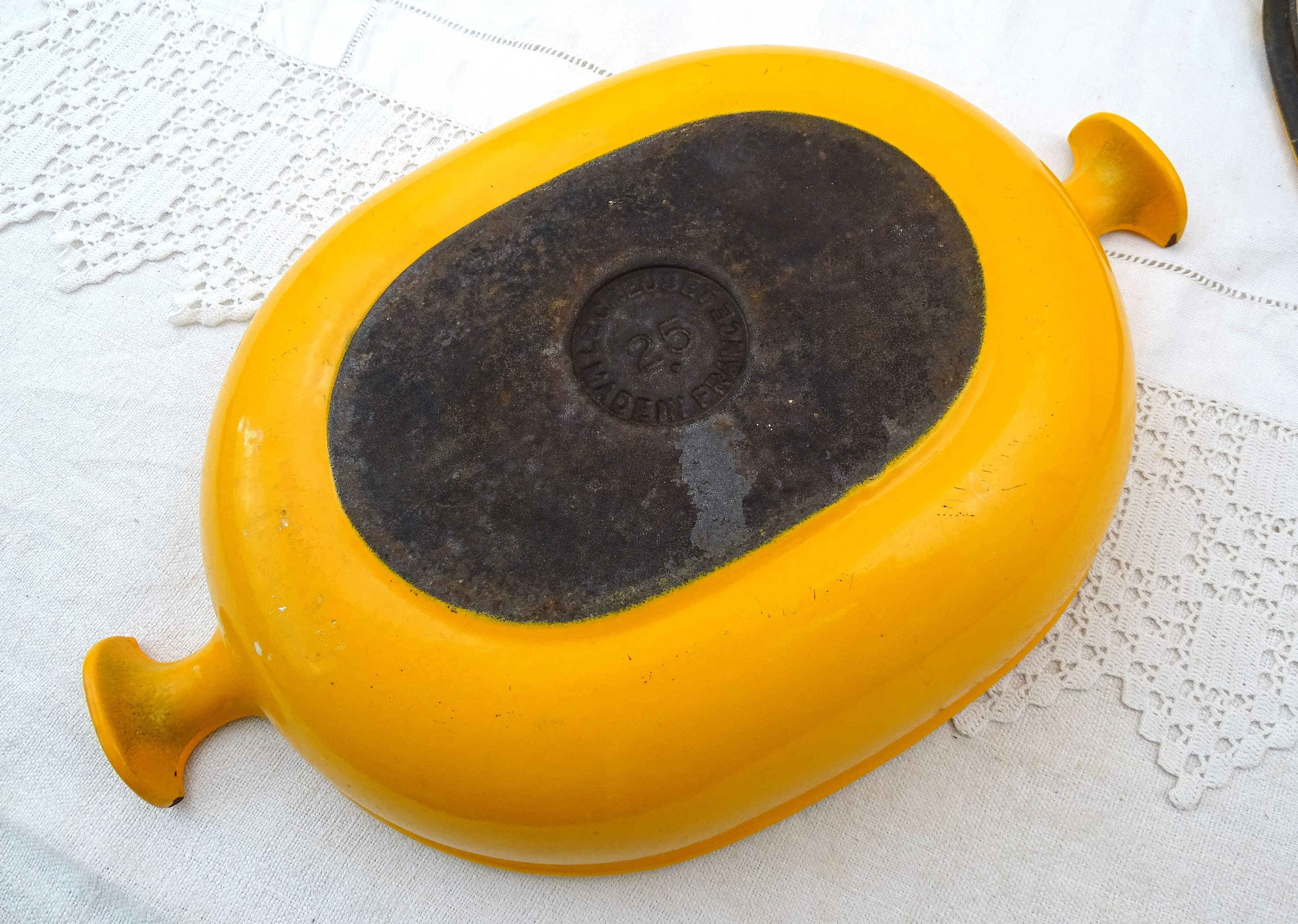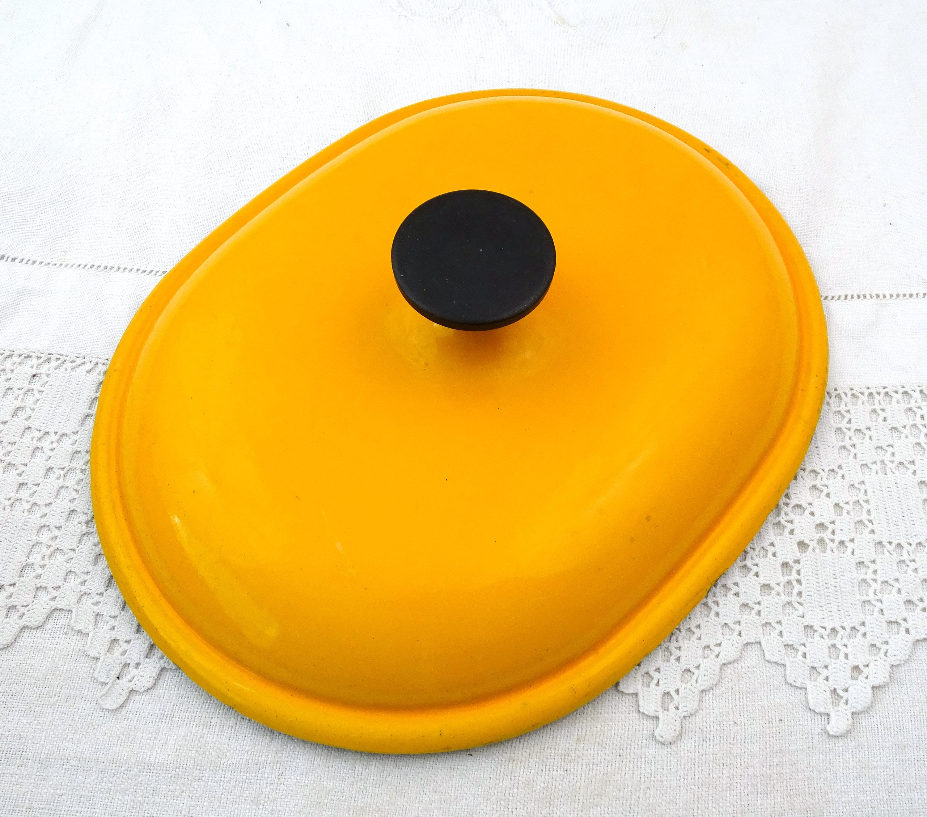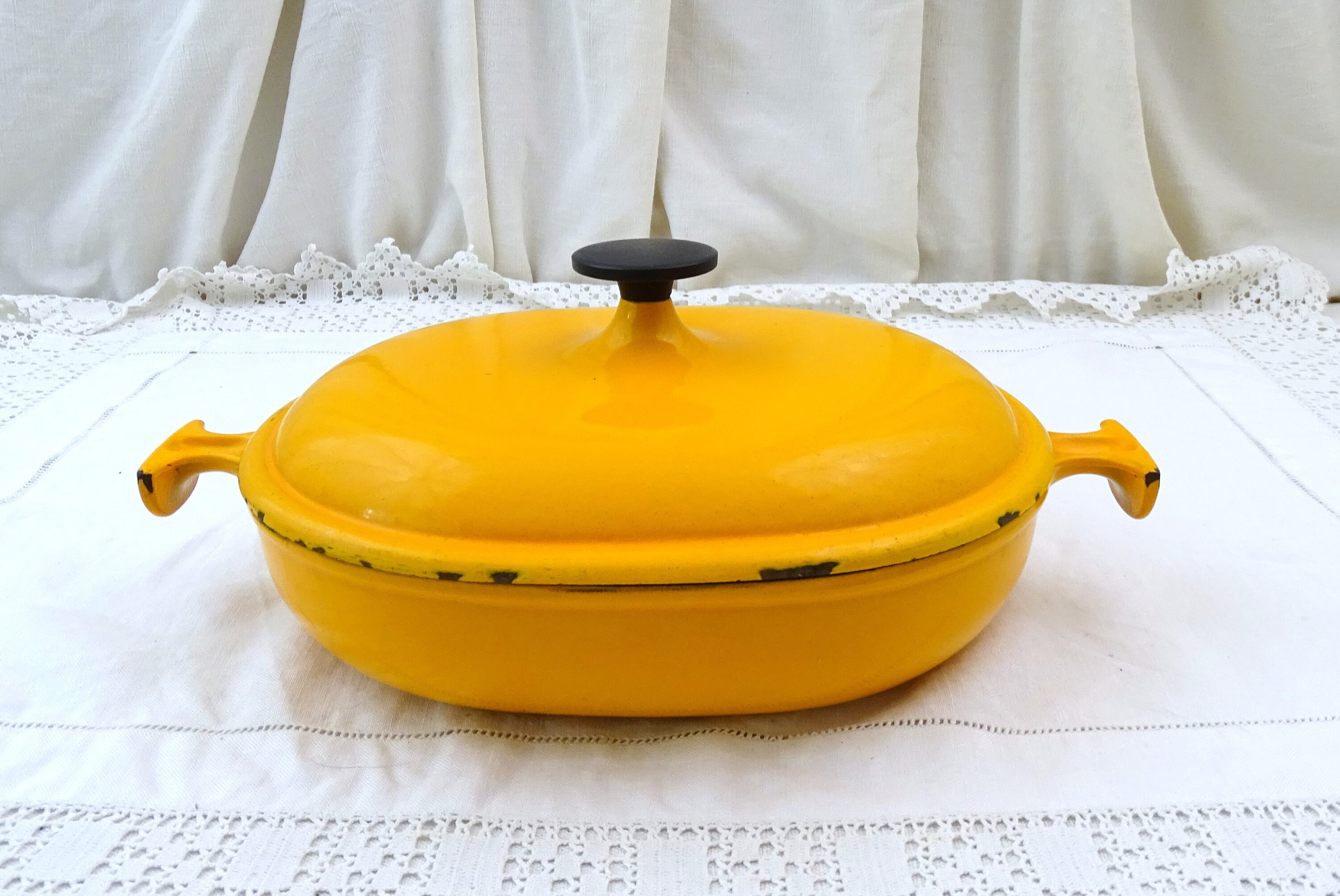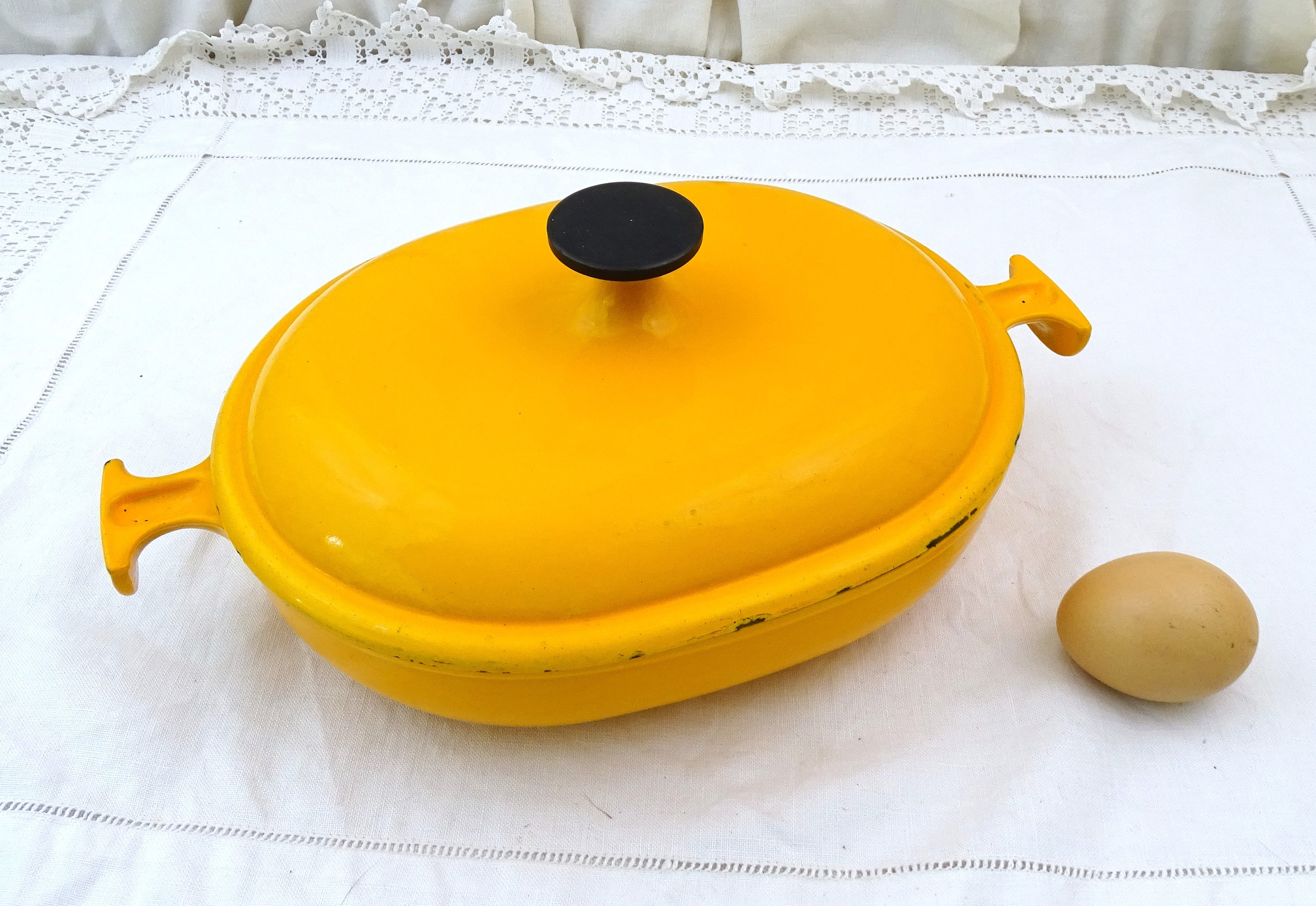 • In vintage pre used condition, minor scratches, wear and stains, a few small enamel chips around the rim on the lid - see photos.