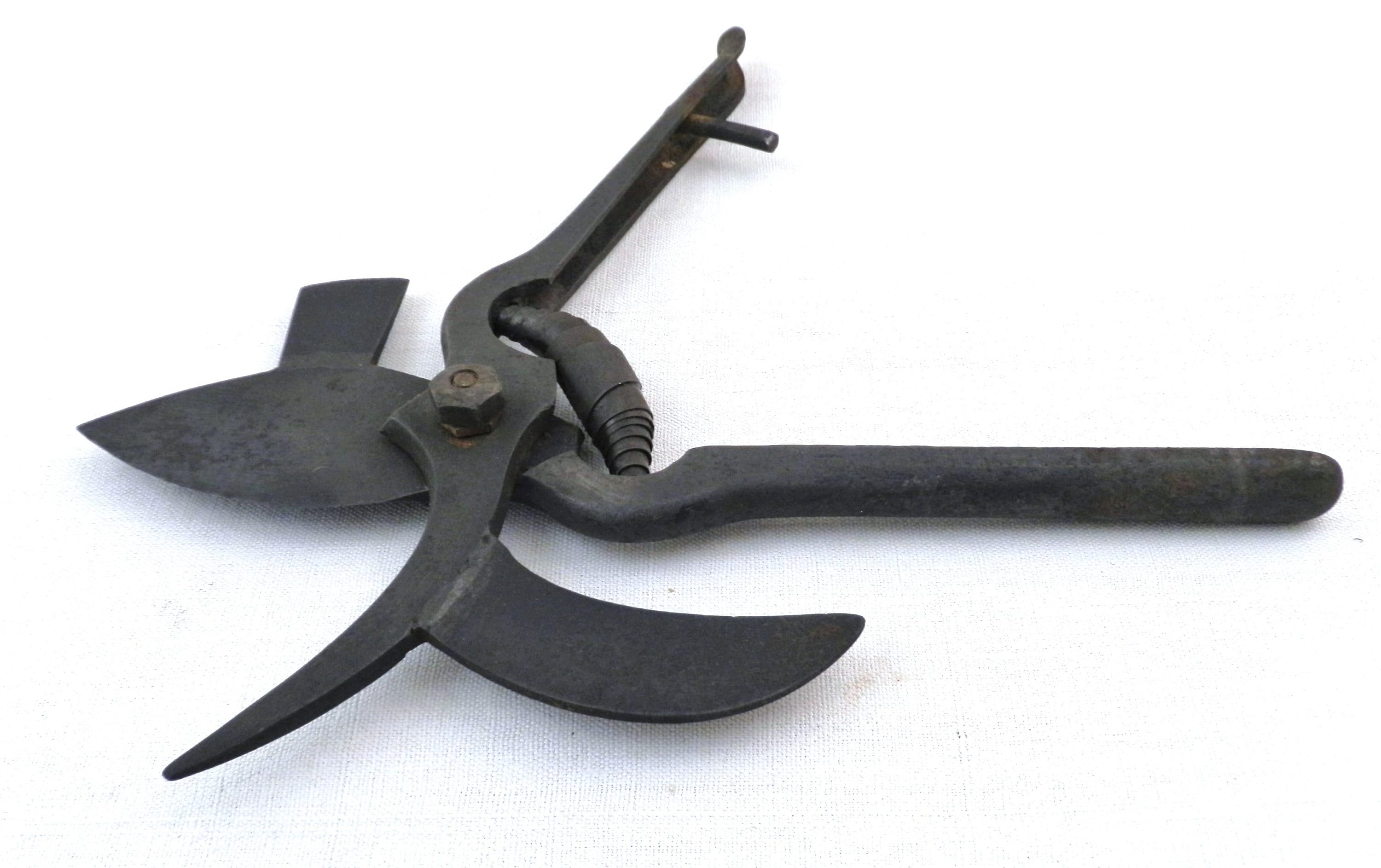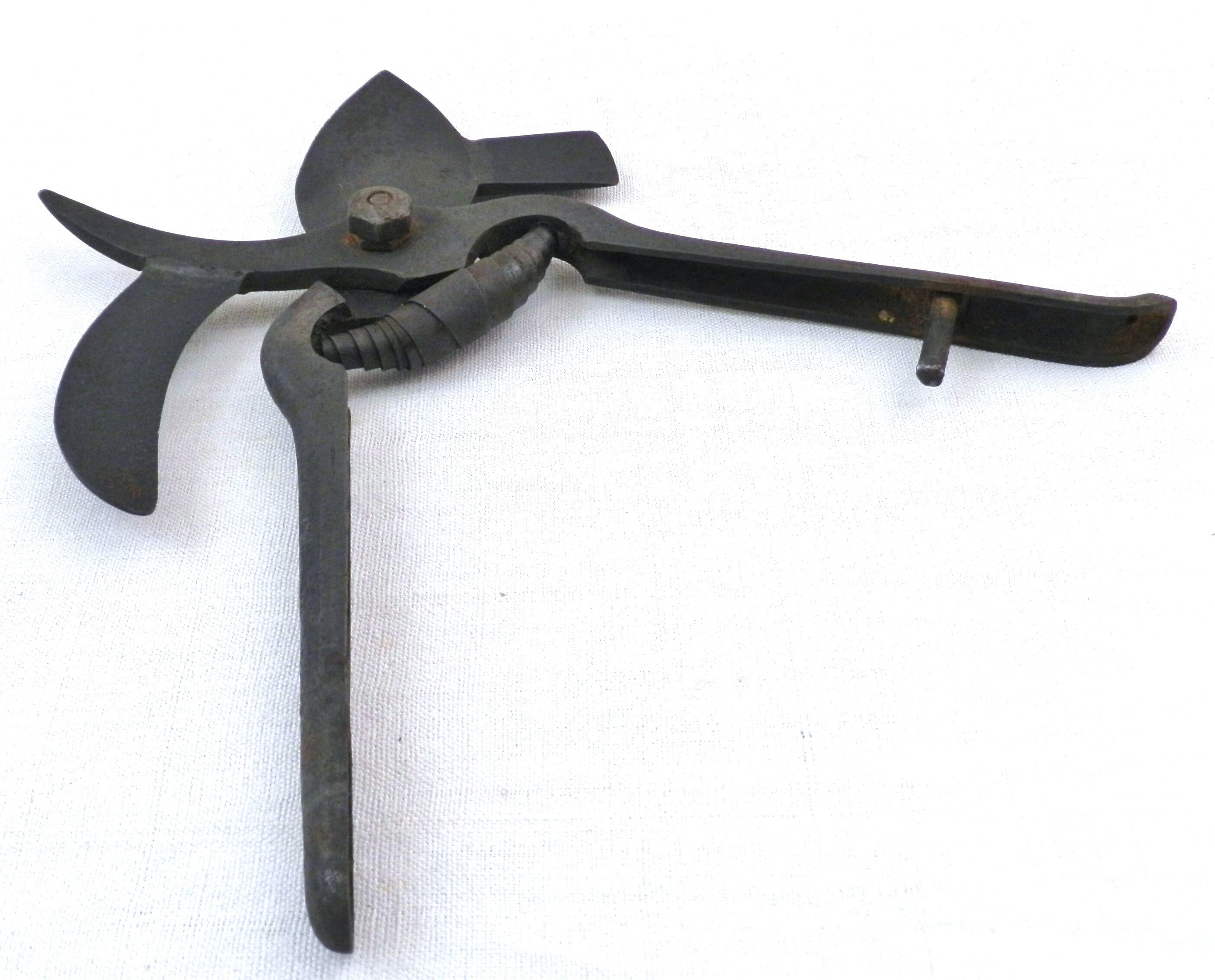 Rare antique French multi cutting tool from the wine producing region for work in the vineyards. Secateurs with axe head and sickle. Made of iron. Ca late 1800s early 1900s.
