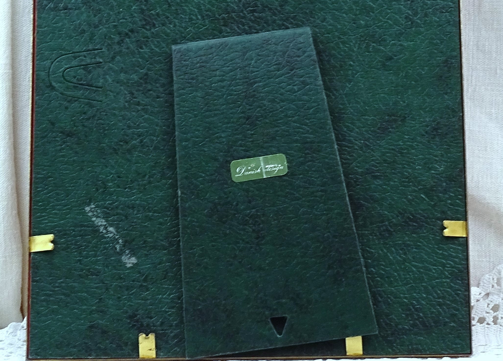 Vintage Danish design picture frame. Free standing or wall mounted. Made of brass with glass. Ca 1960s.
