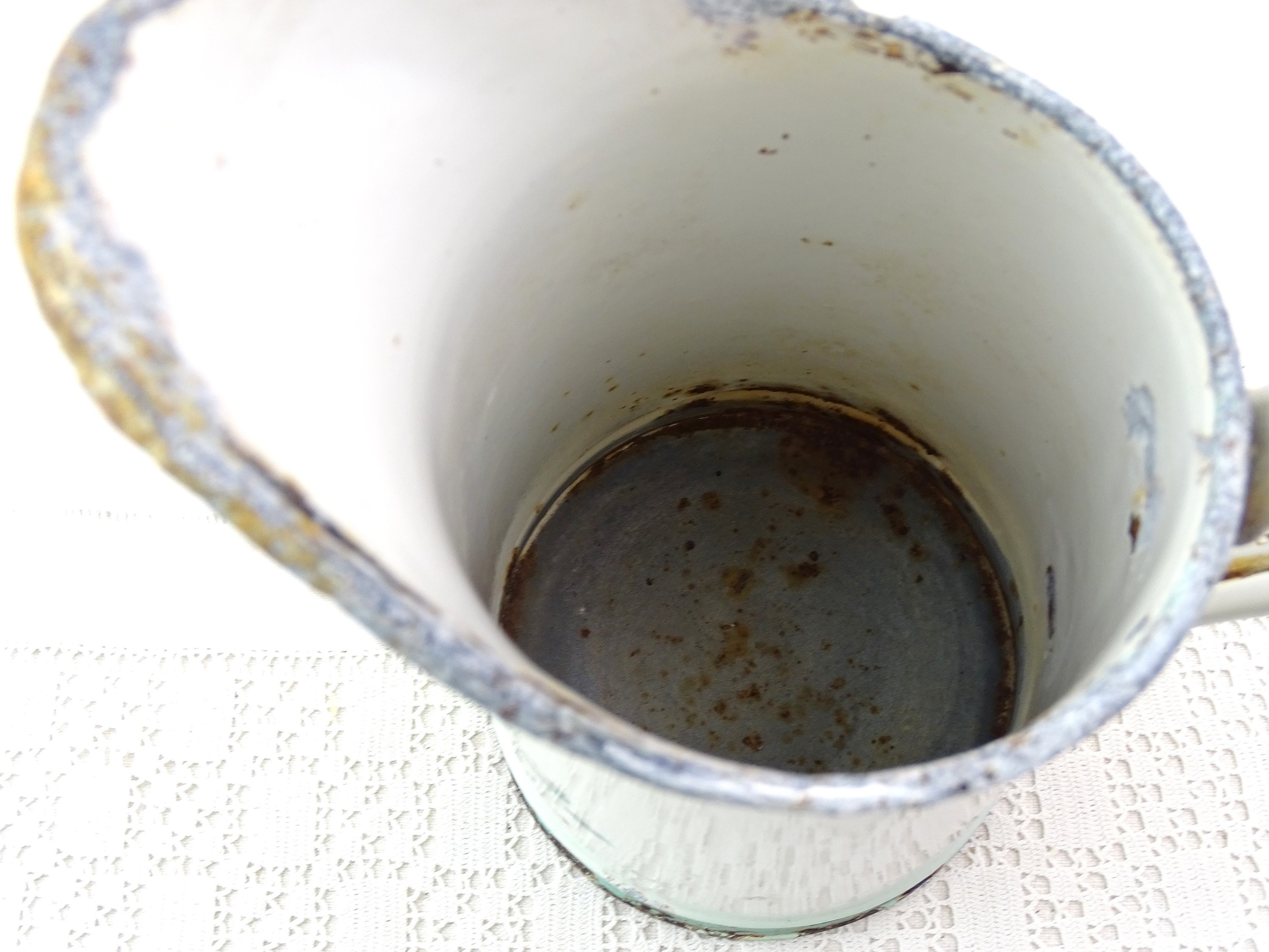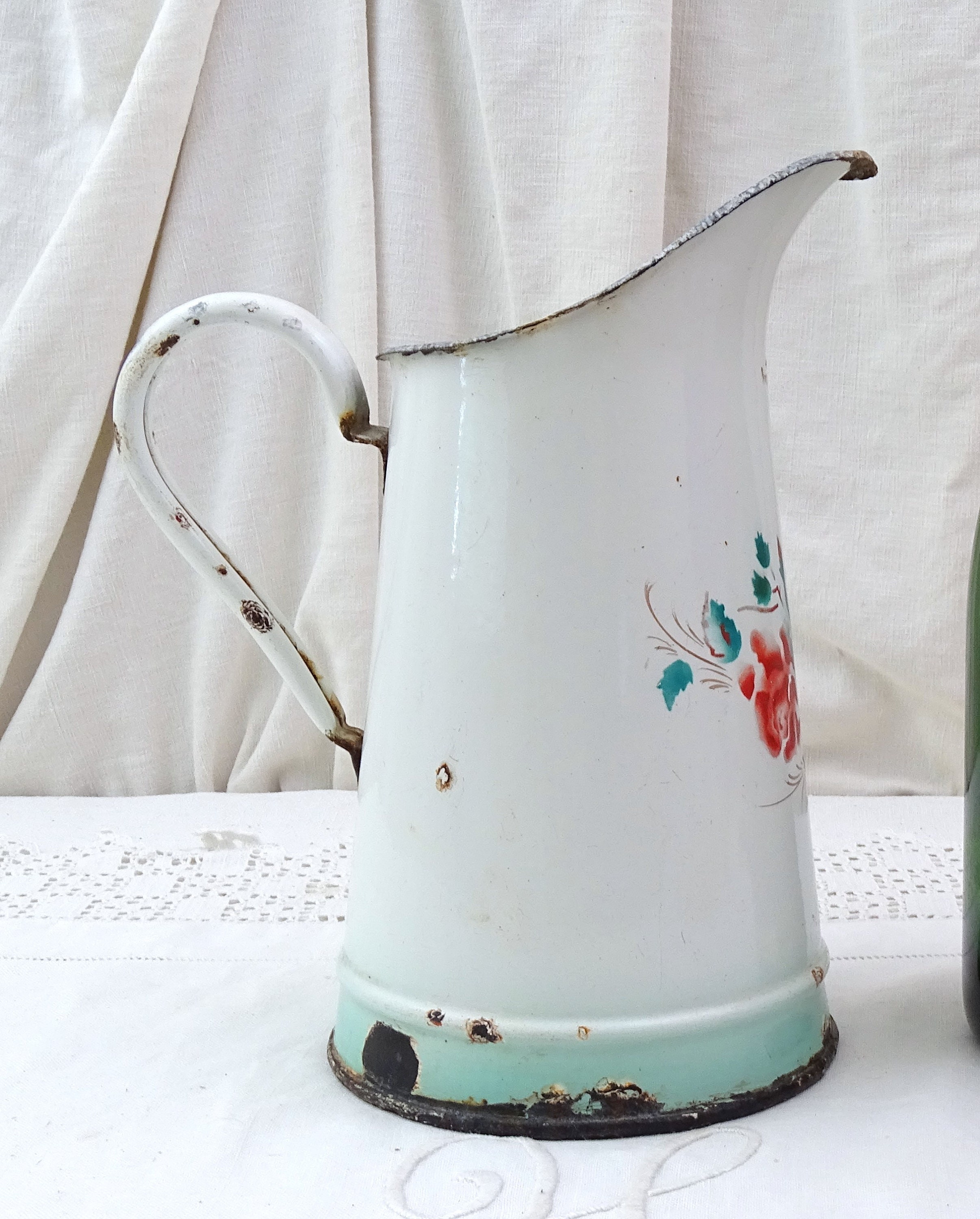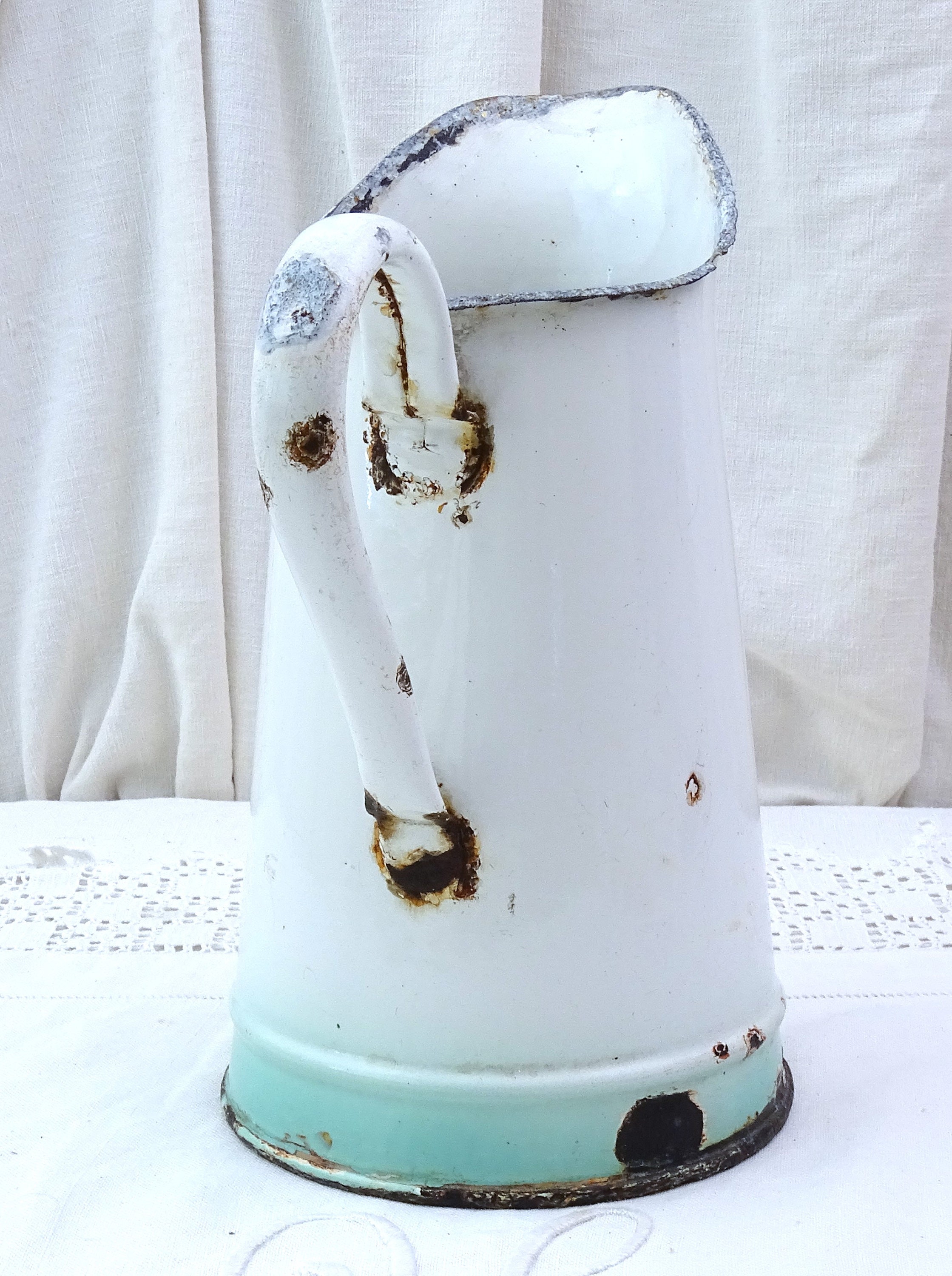 • In antique pre used condition, enamel chips, the pitcher is water tight - see photos.