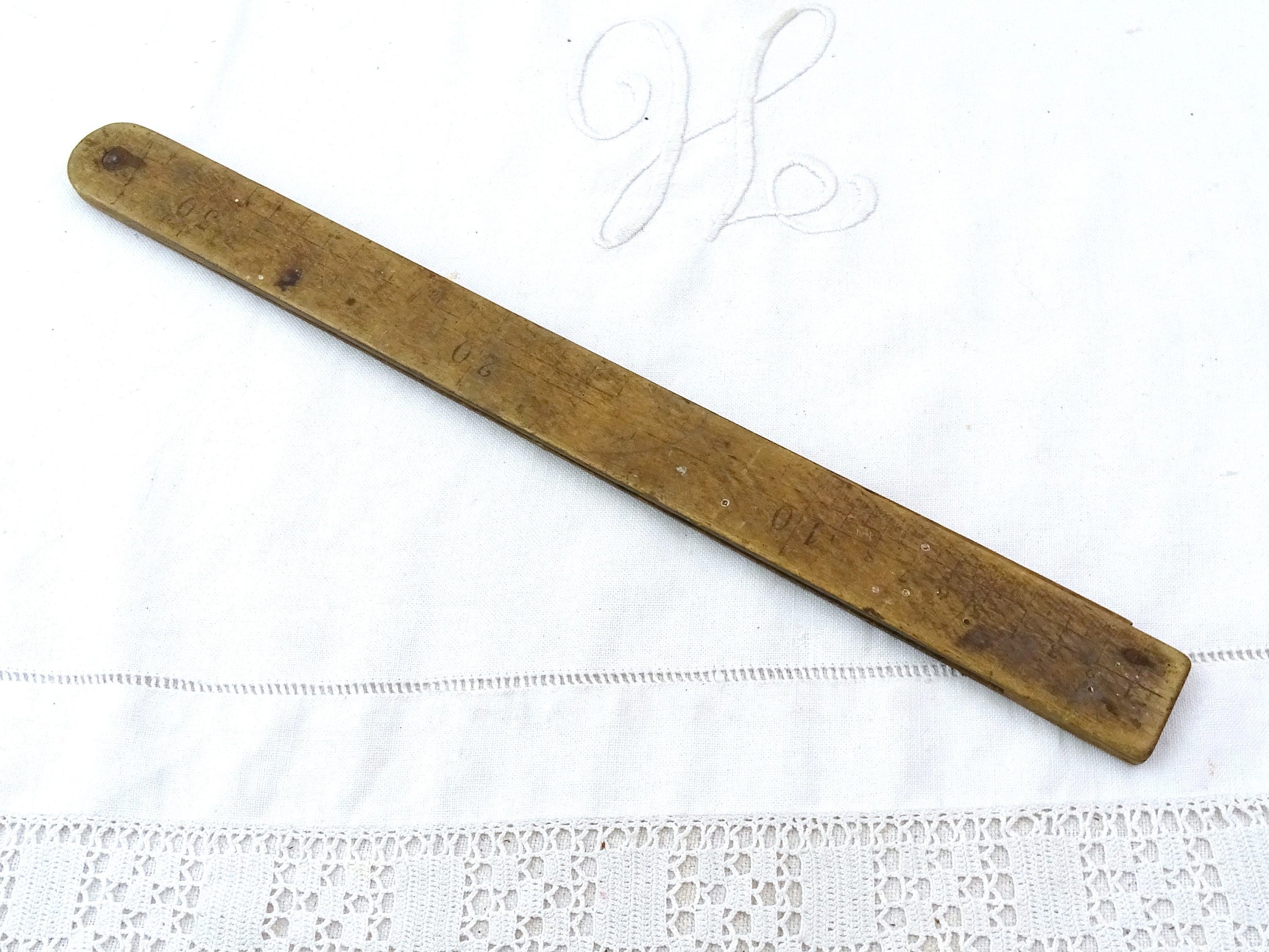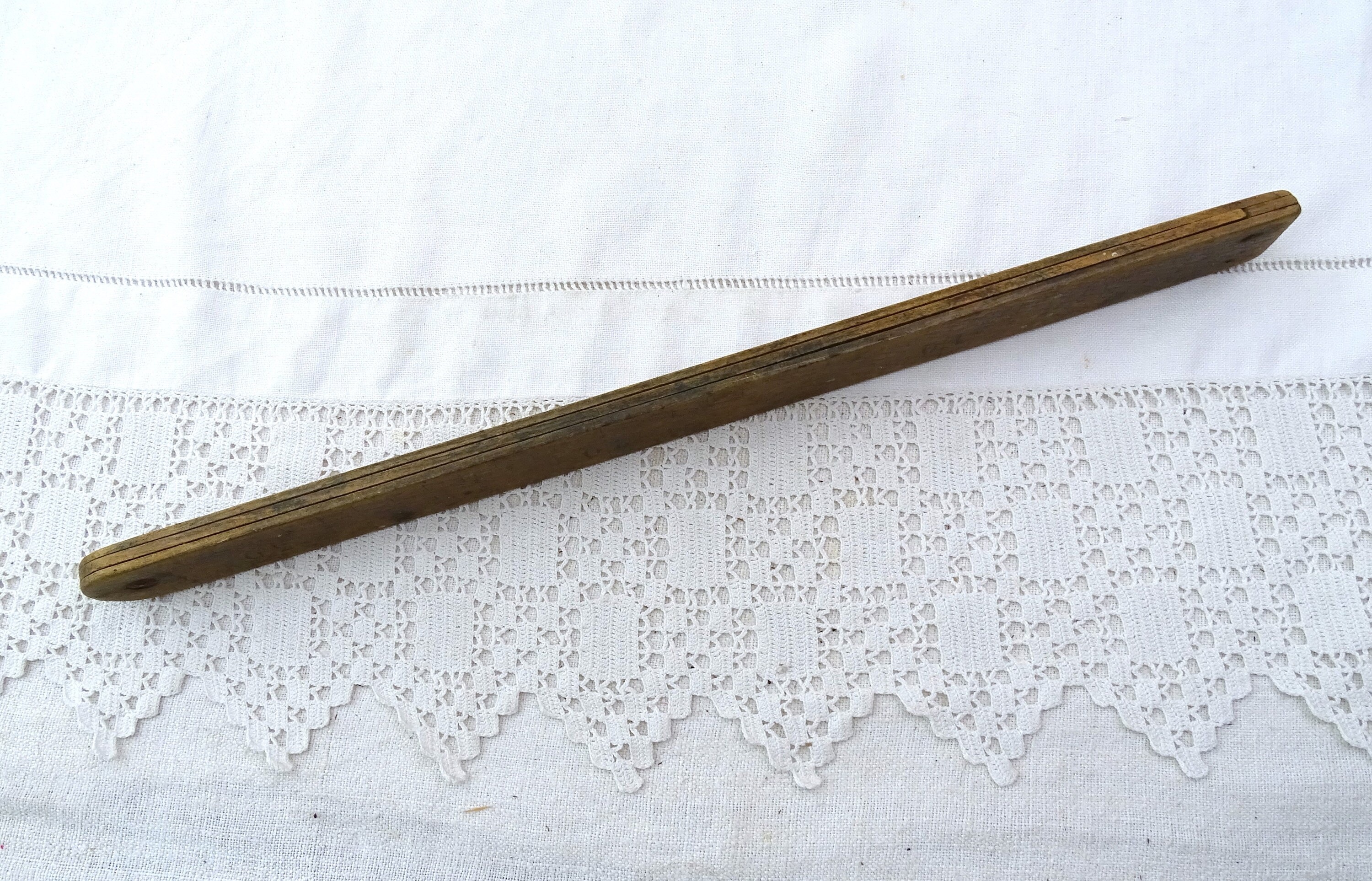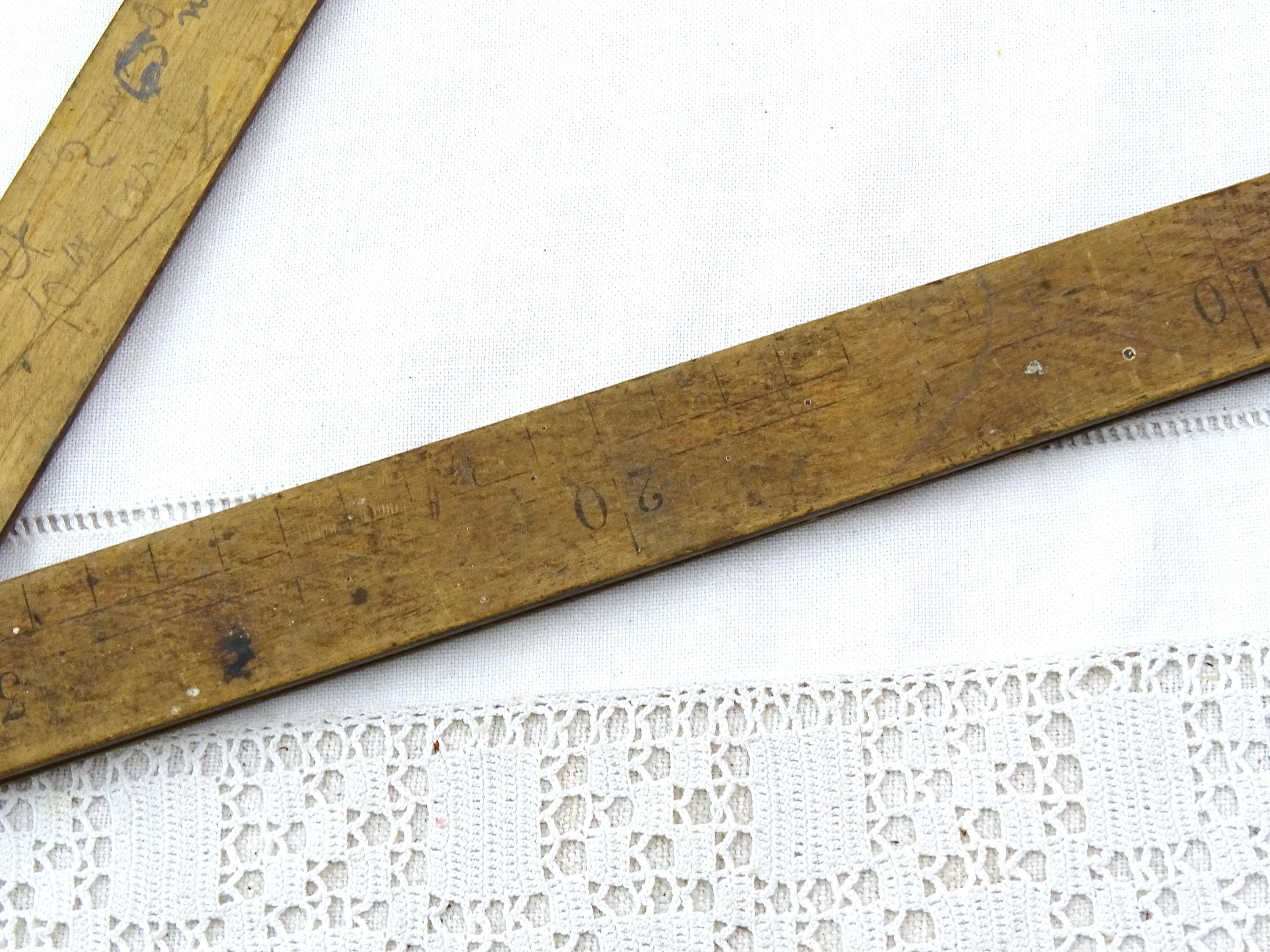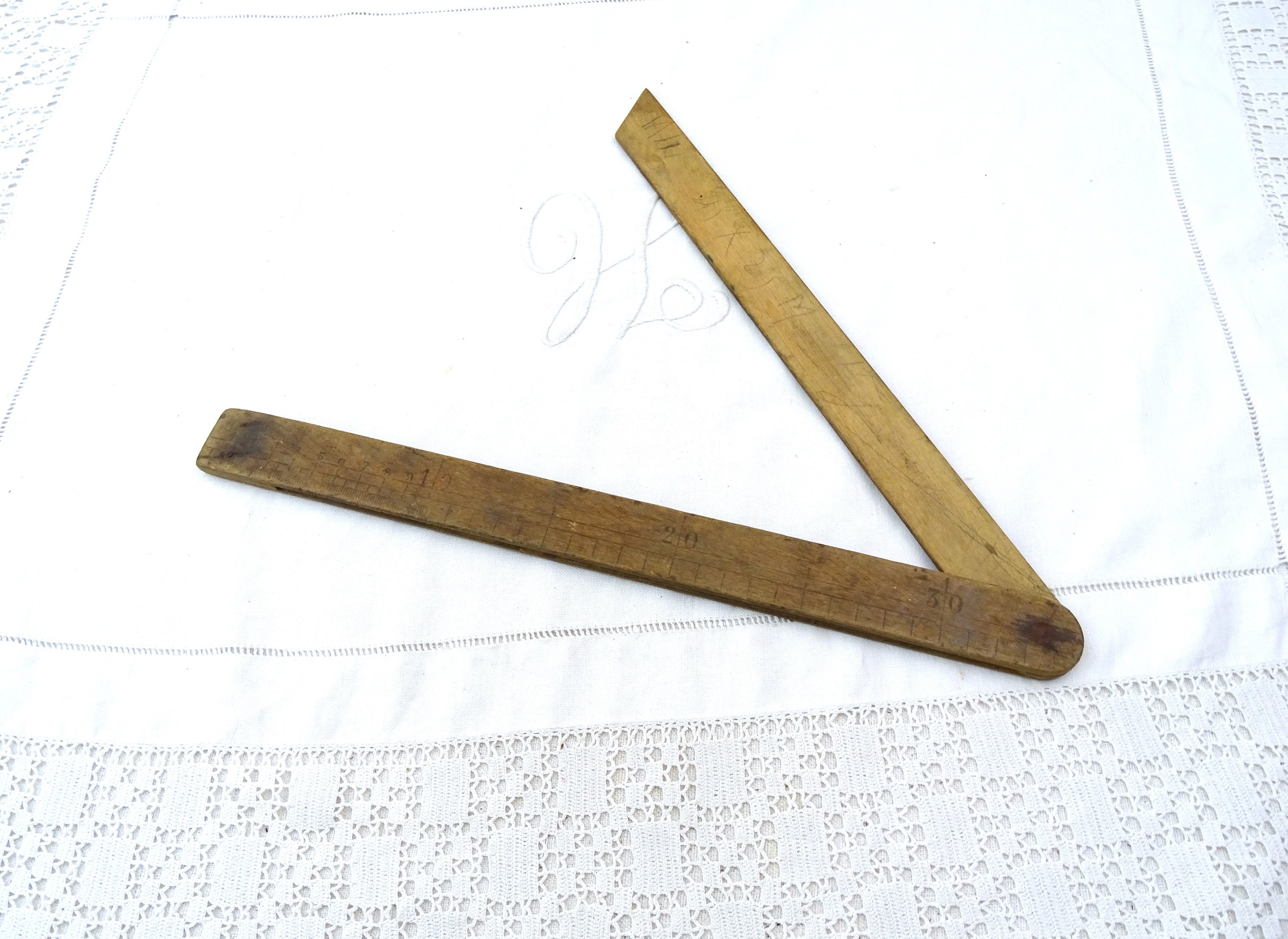 Large antique French protractor. Made of wood with worn patina. Ca 1800s.