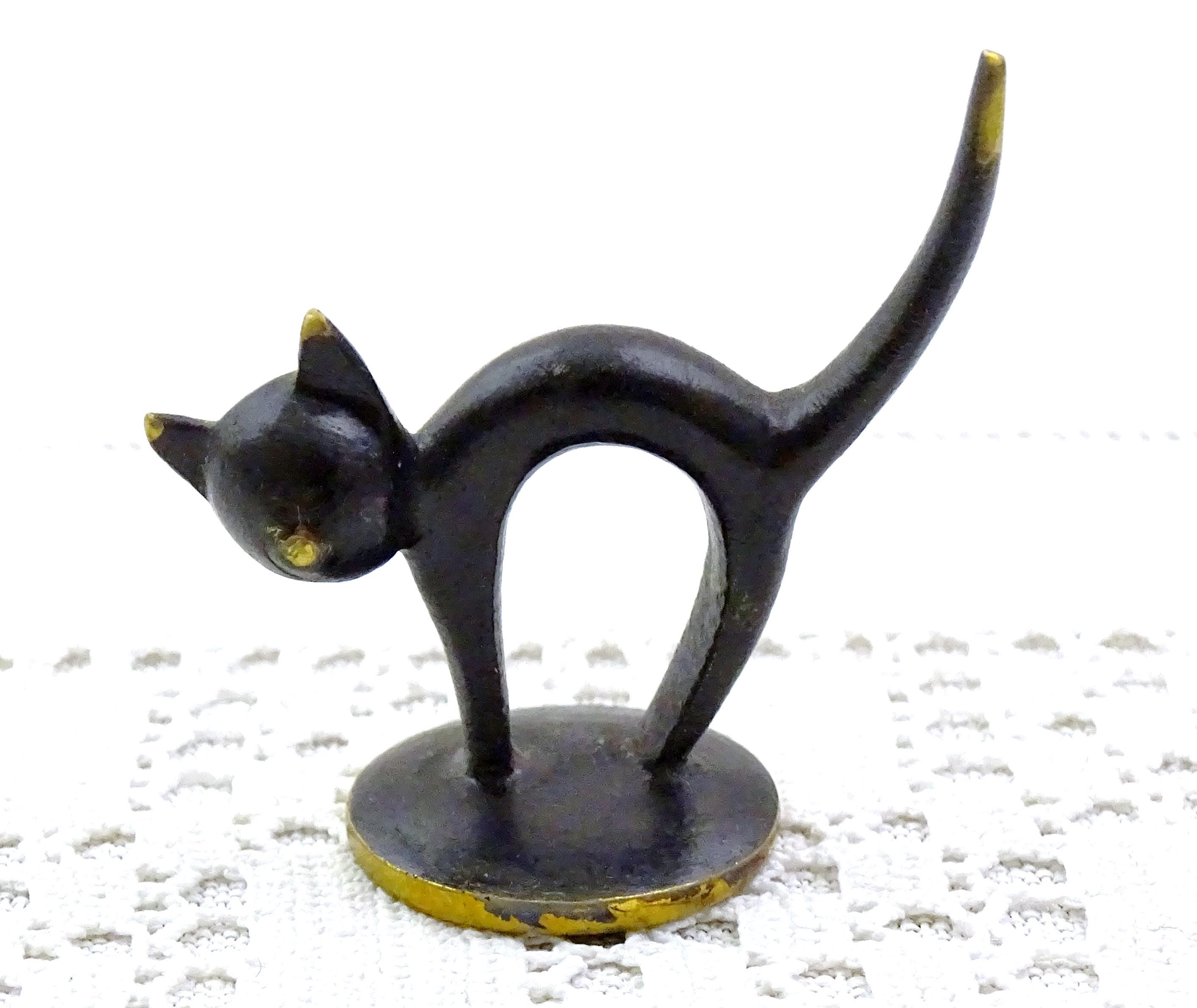 Small vintage Mid Century Walter Bosse cat. Made in Austria by Baller of cast bronze. Ca 1960s.