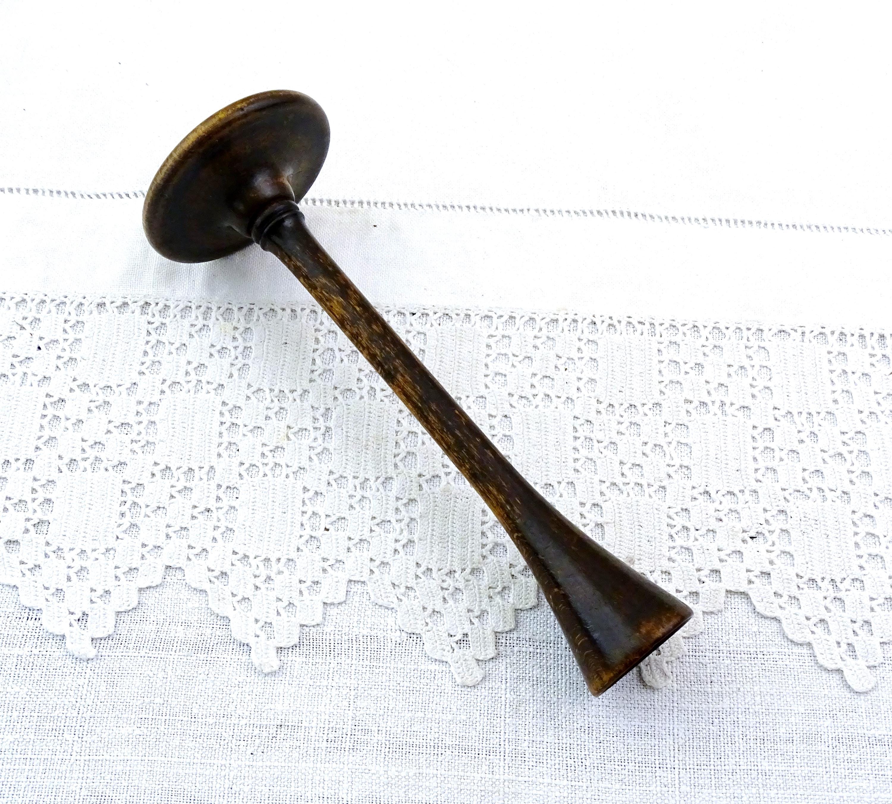 Antique French physician's wooden stethoscope. Made of ebonized turned wood. The flat part screws off. Ca 1800s.