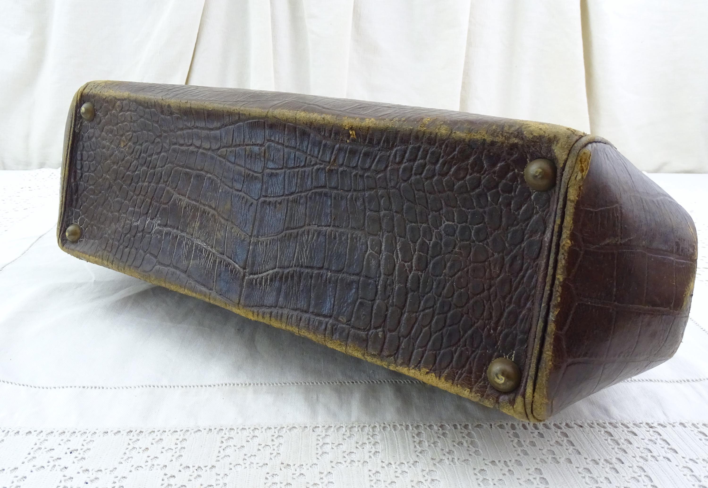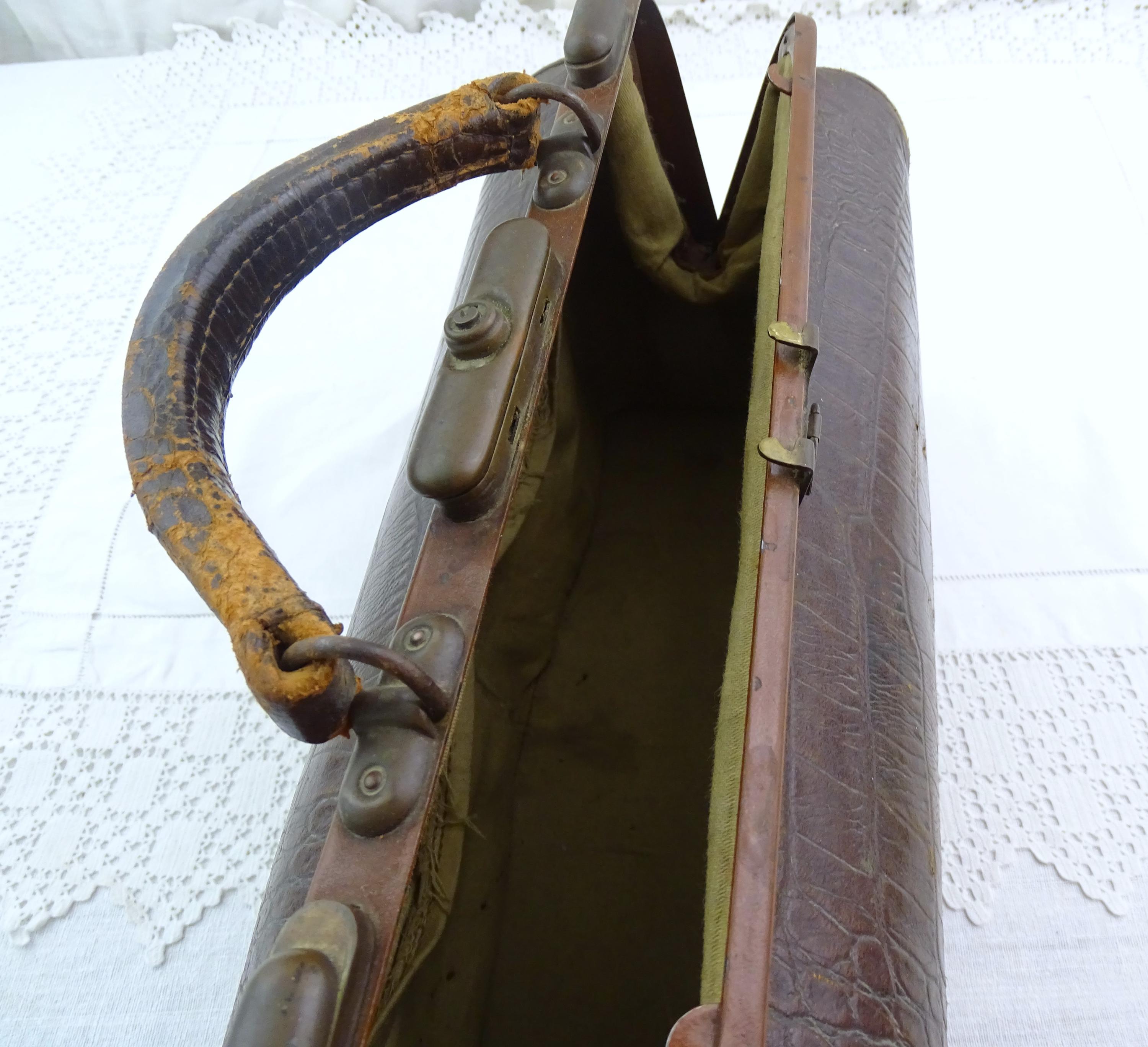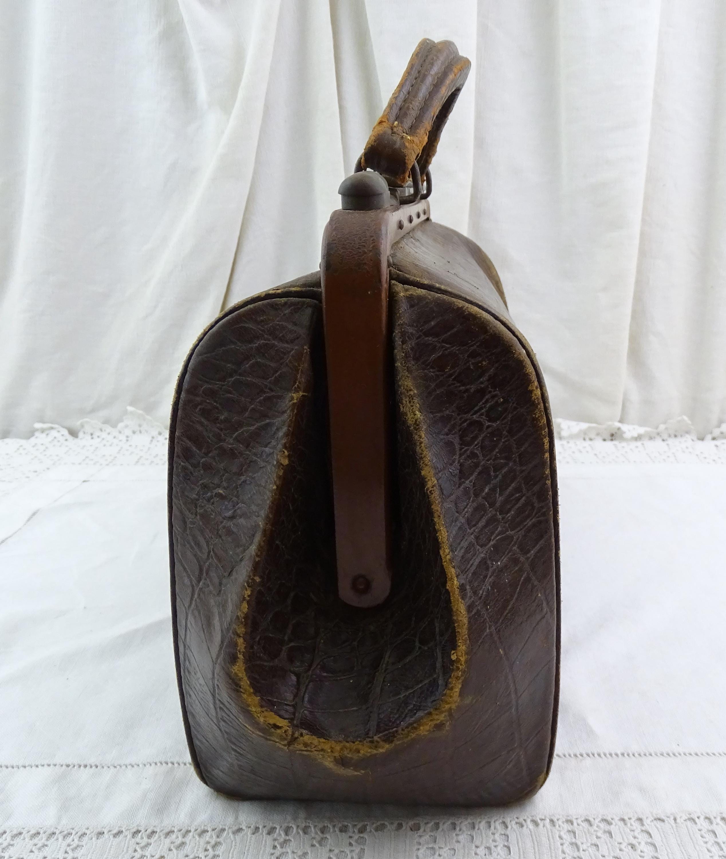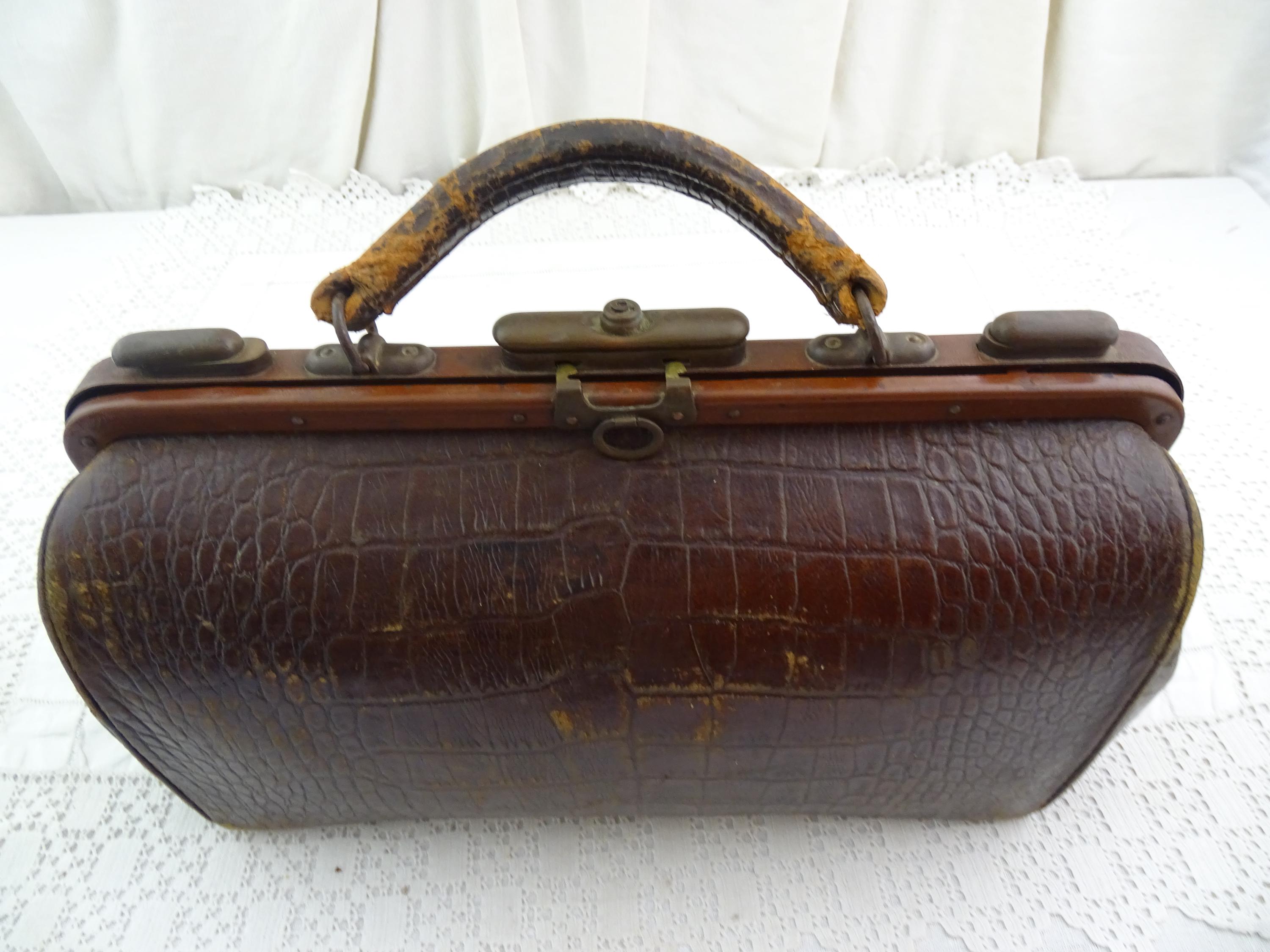 Antique French Gladstone bag. Leather exterior with fabric lining, Unfortunately no key to lock the bag. Circa 1920s.
