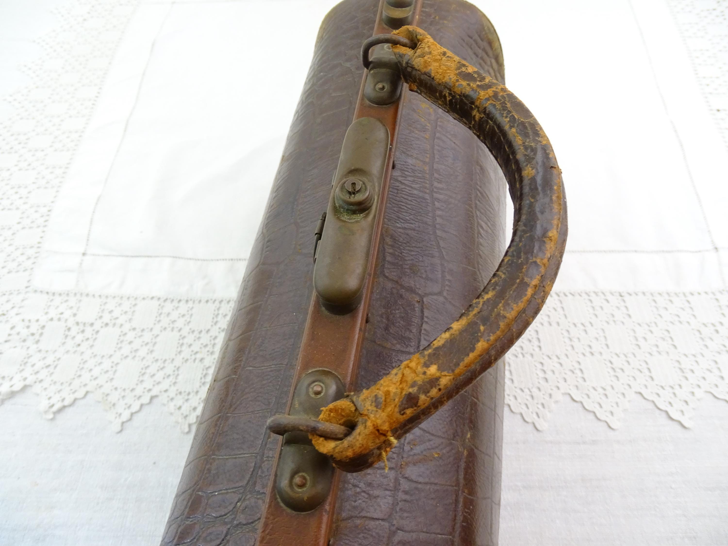 • In antique pre used condition, minor stains to the lining, wear to the leather in places- see photos, the catch is stiff.