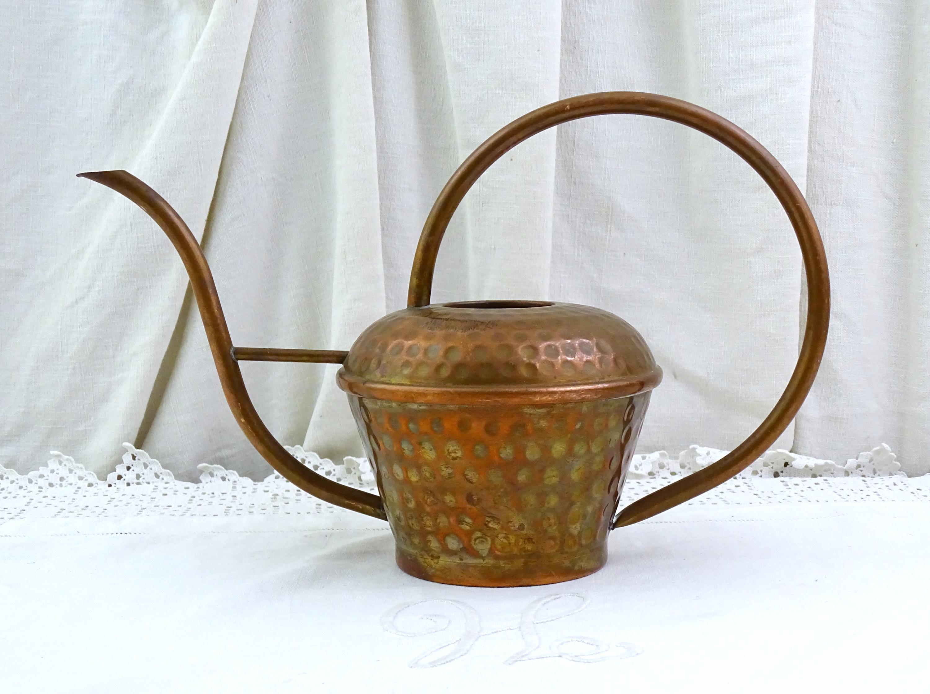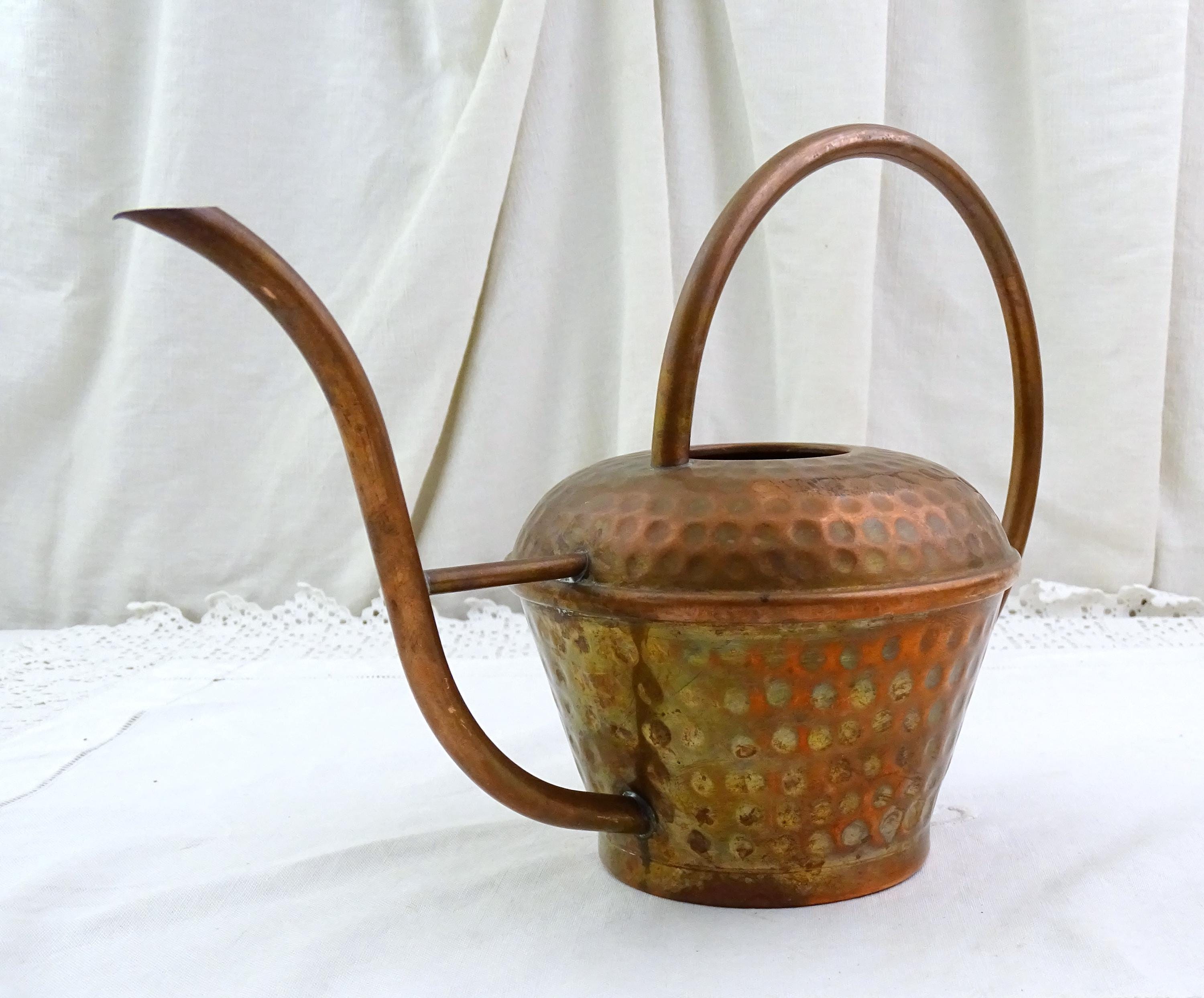 Vintage house plant watering can. Made of copper metal. Could be polished to a shine if desired. Made in Villedieu les Poeles, copper smith town in Normandy. Ca mid 1900s.