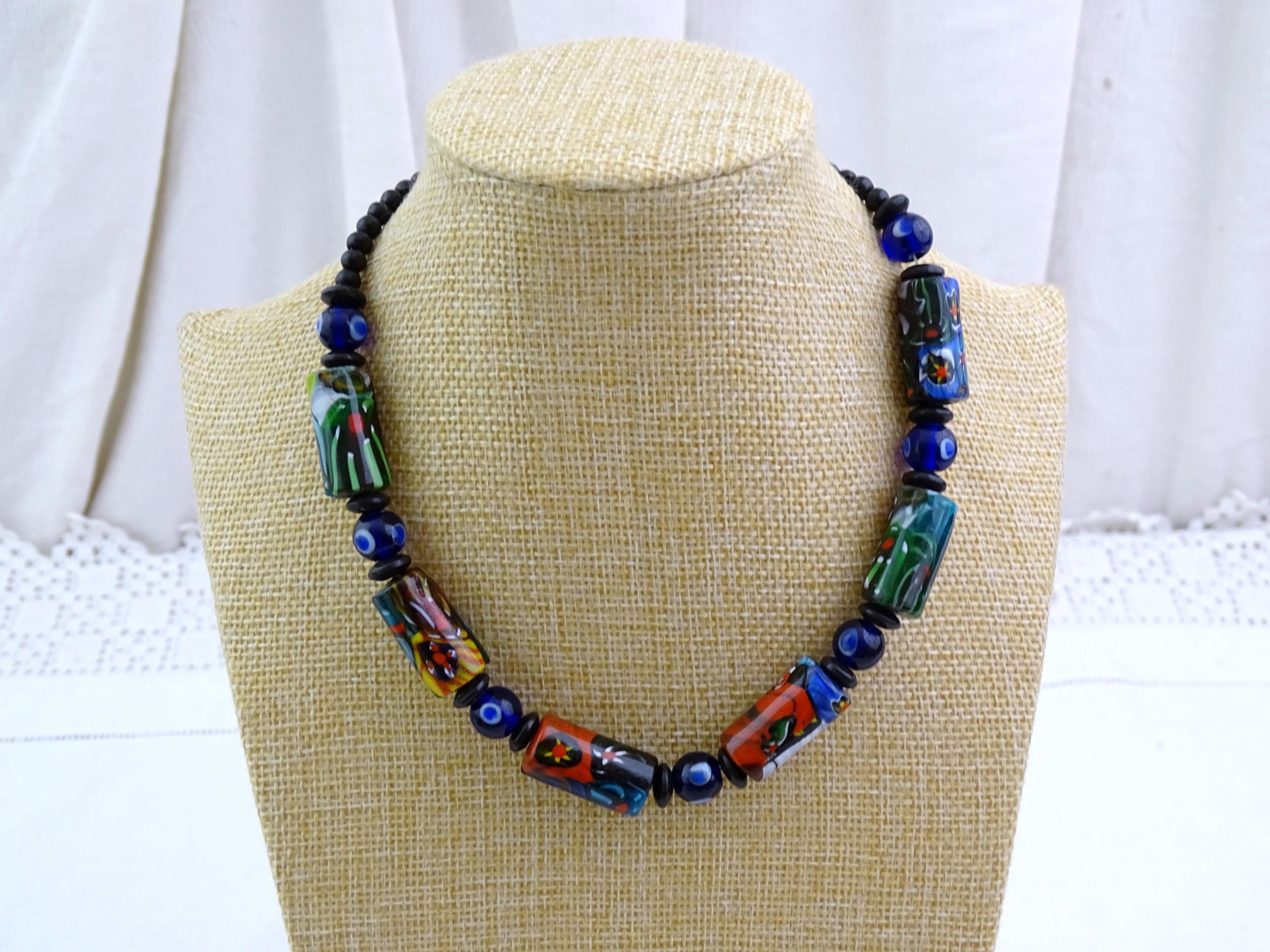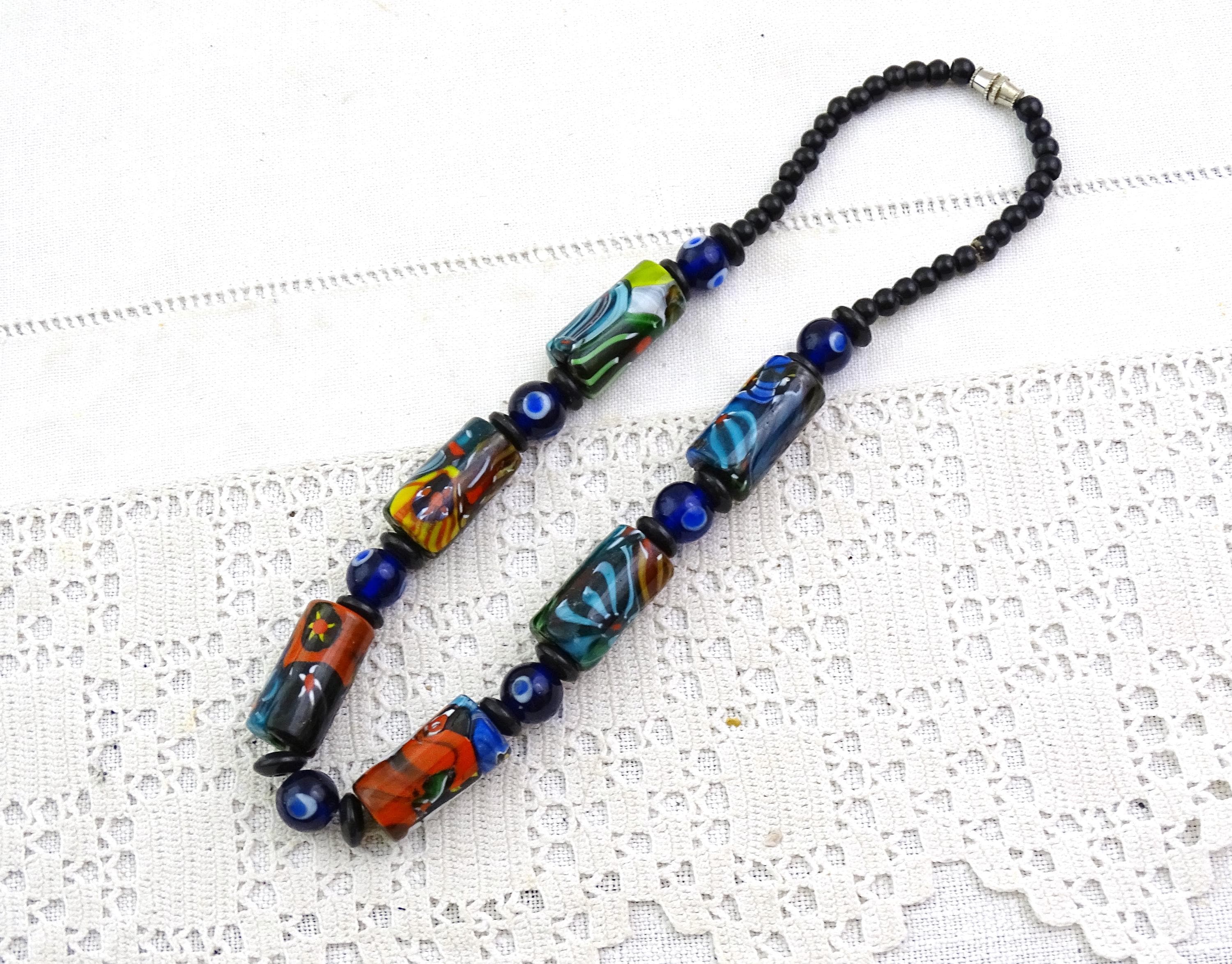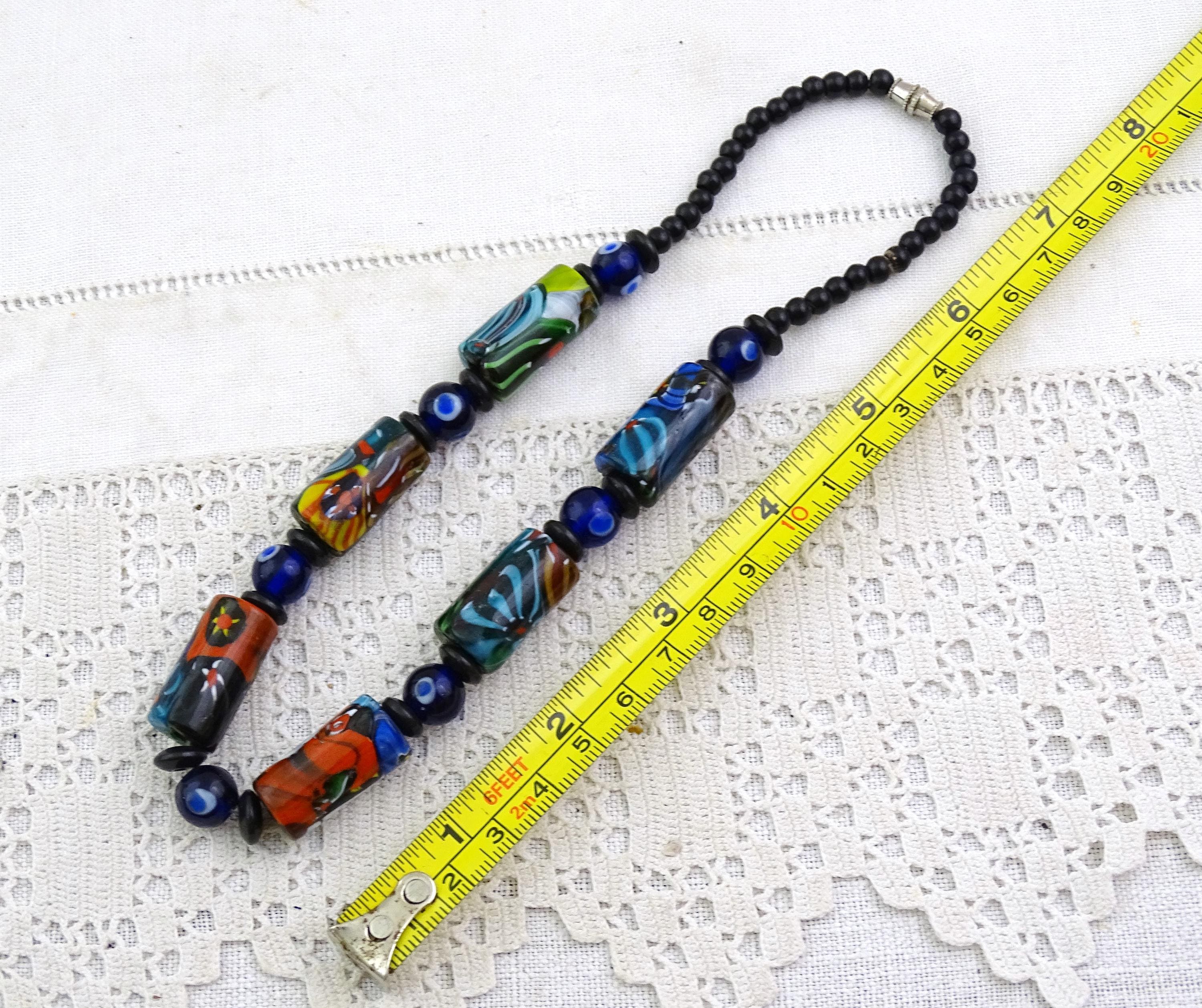 Vintage short bead millefiori necklace. Made of glass beads. Ca mid to late 1900s.