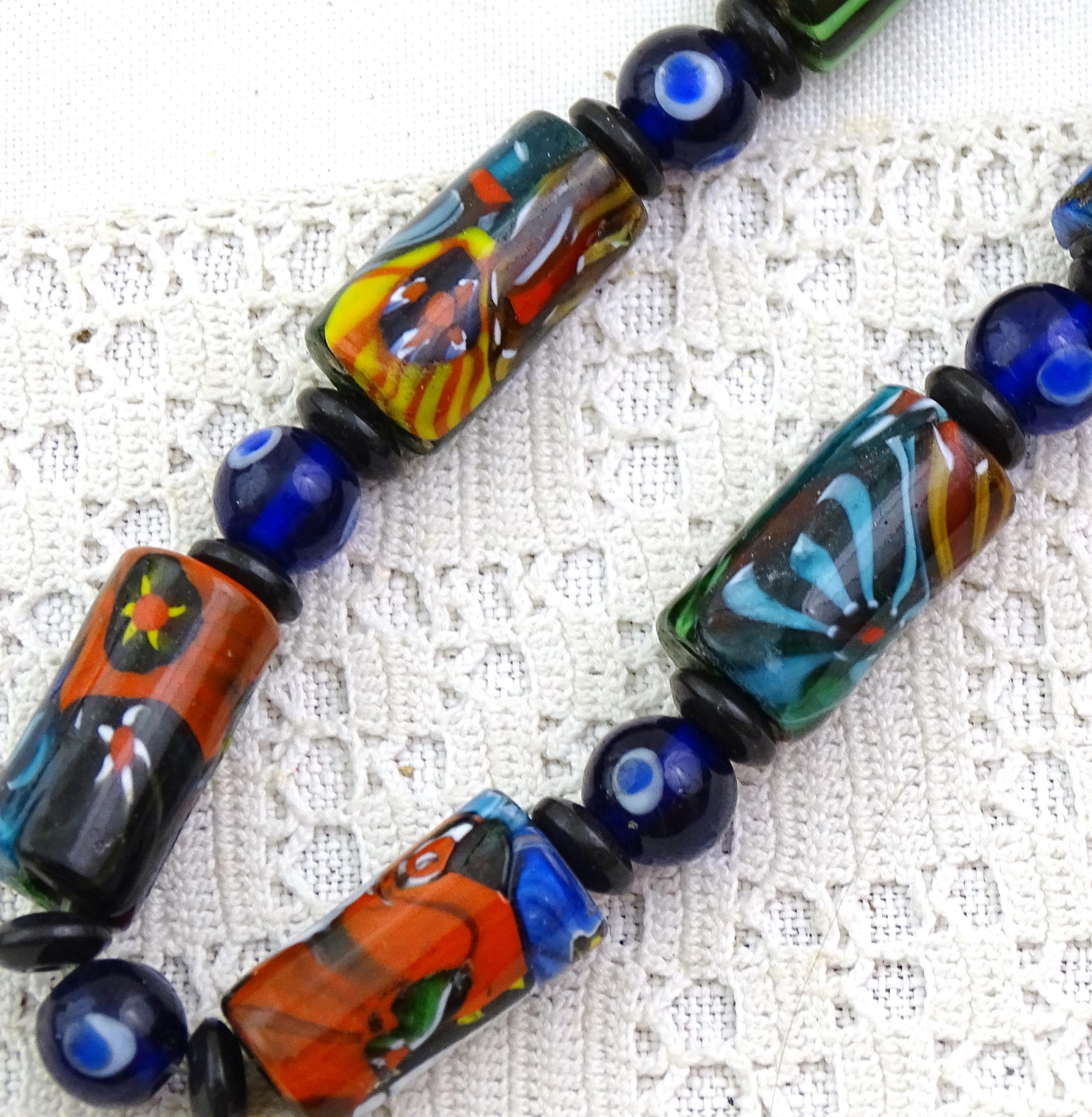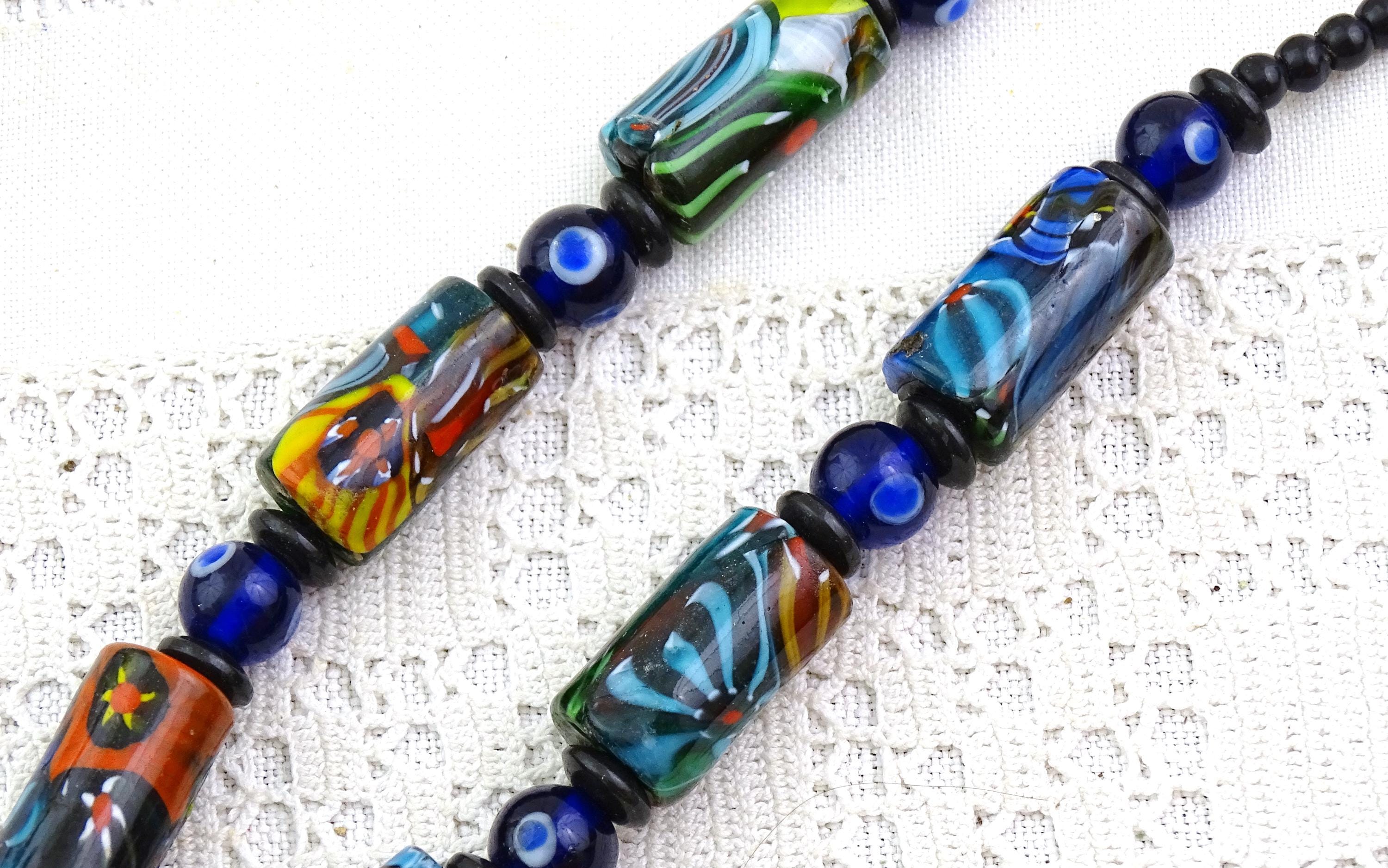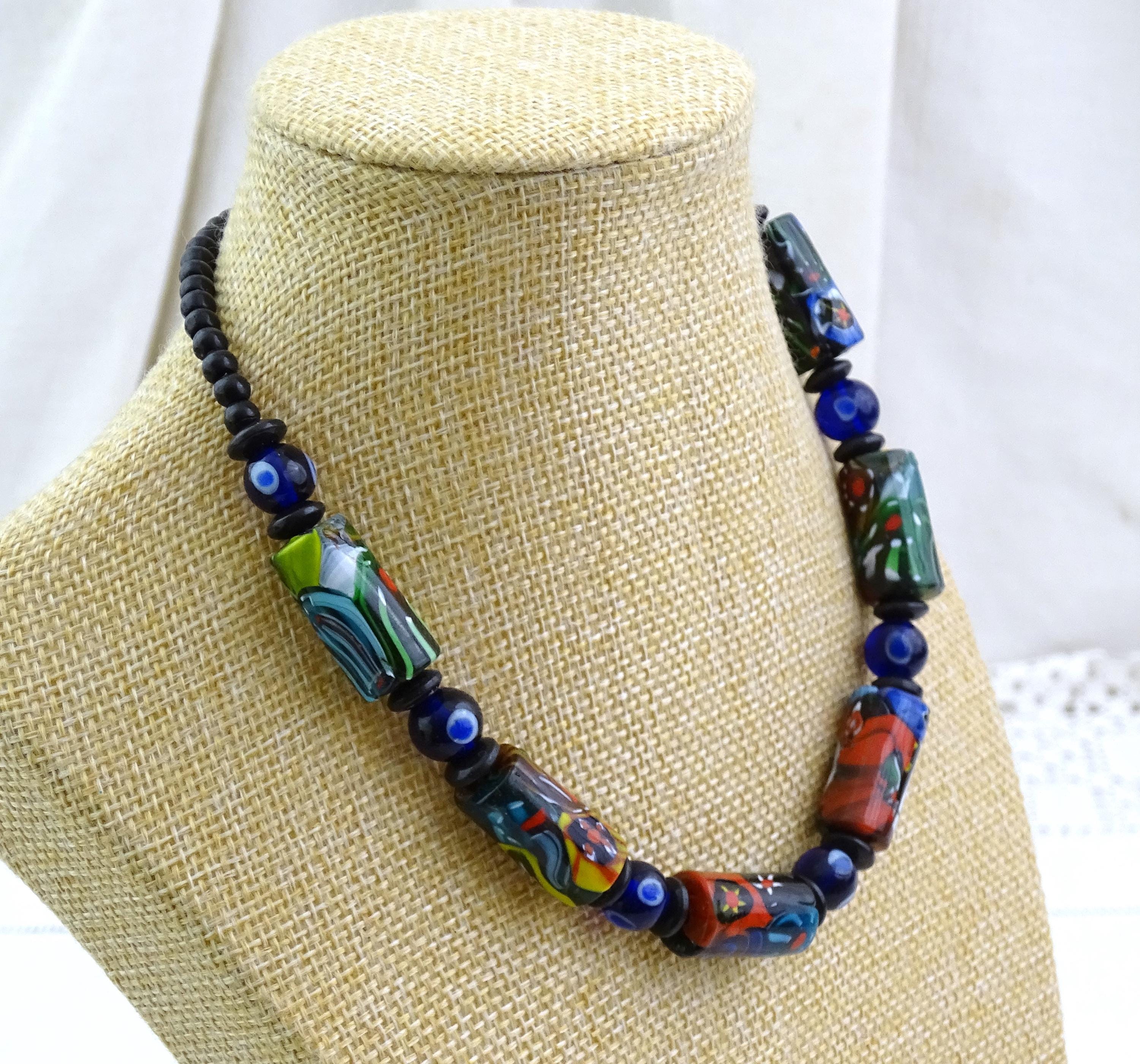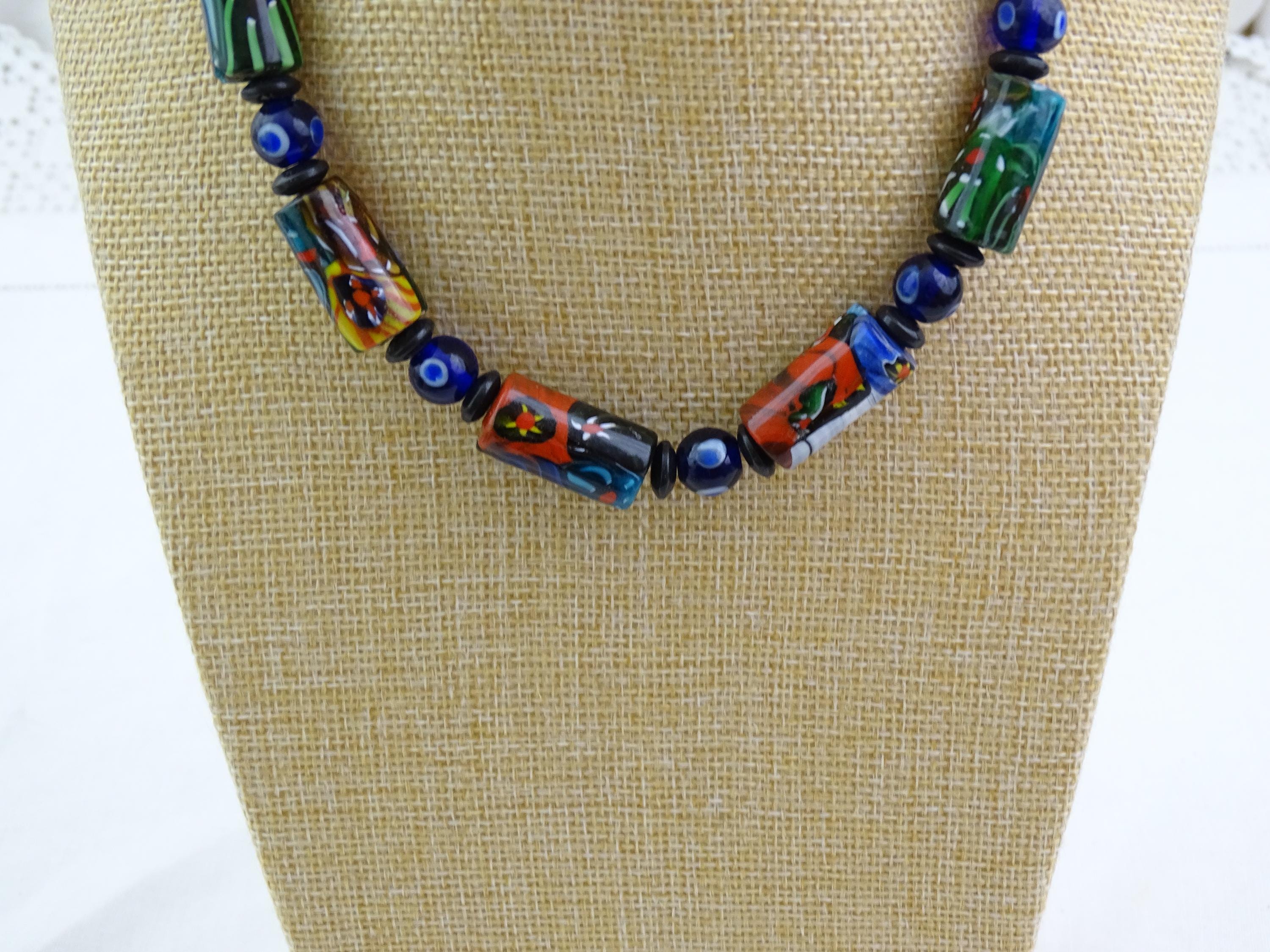 Vintage short bead millefiori necklace. Made of glass beads. Ca mid to late 1900s.
