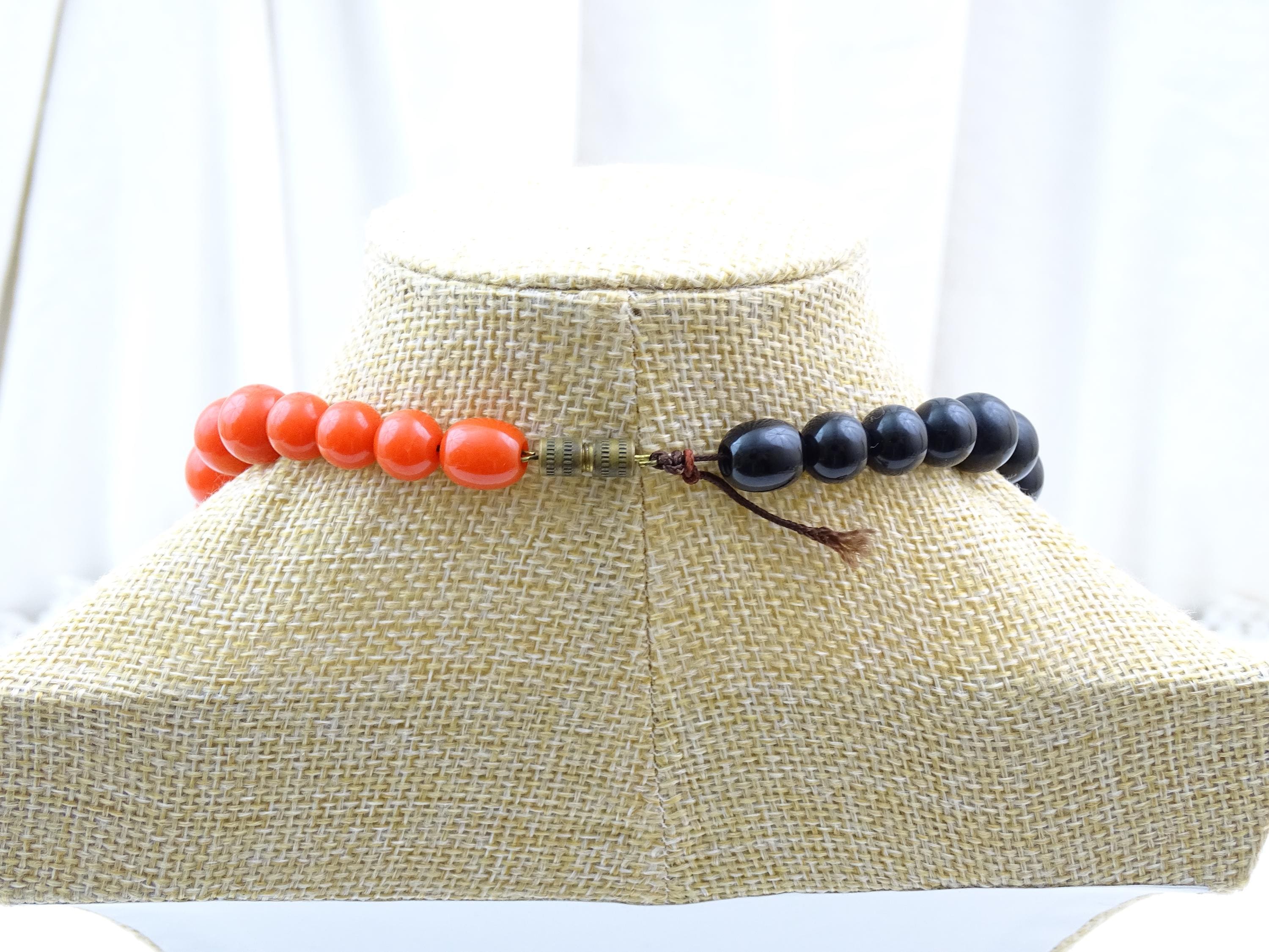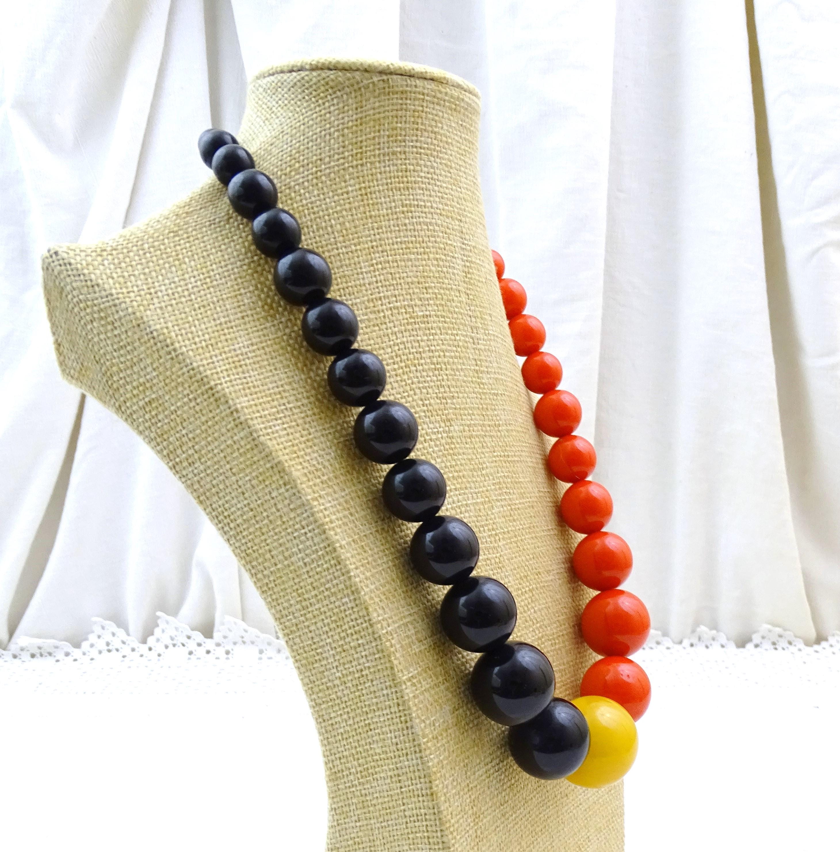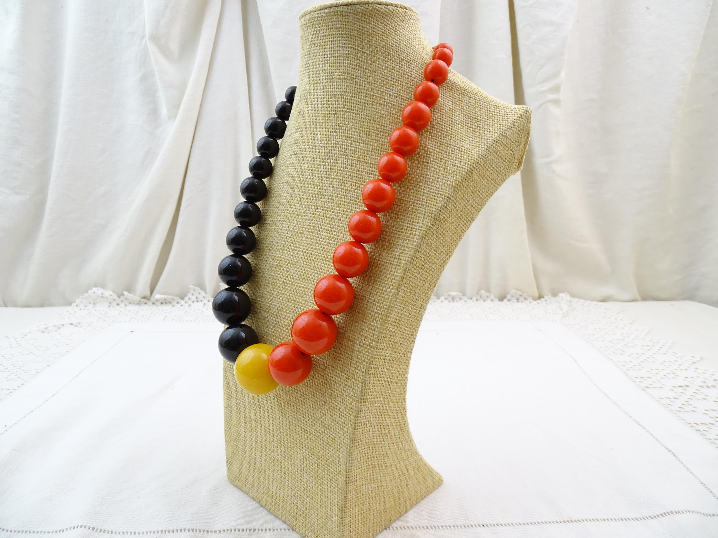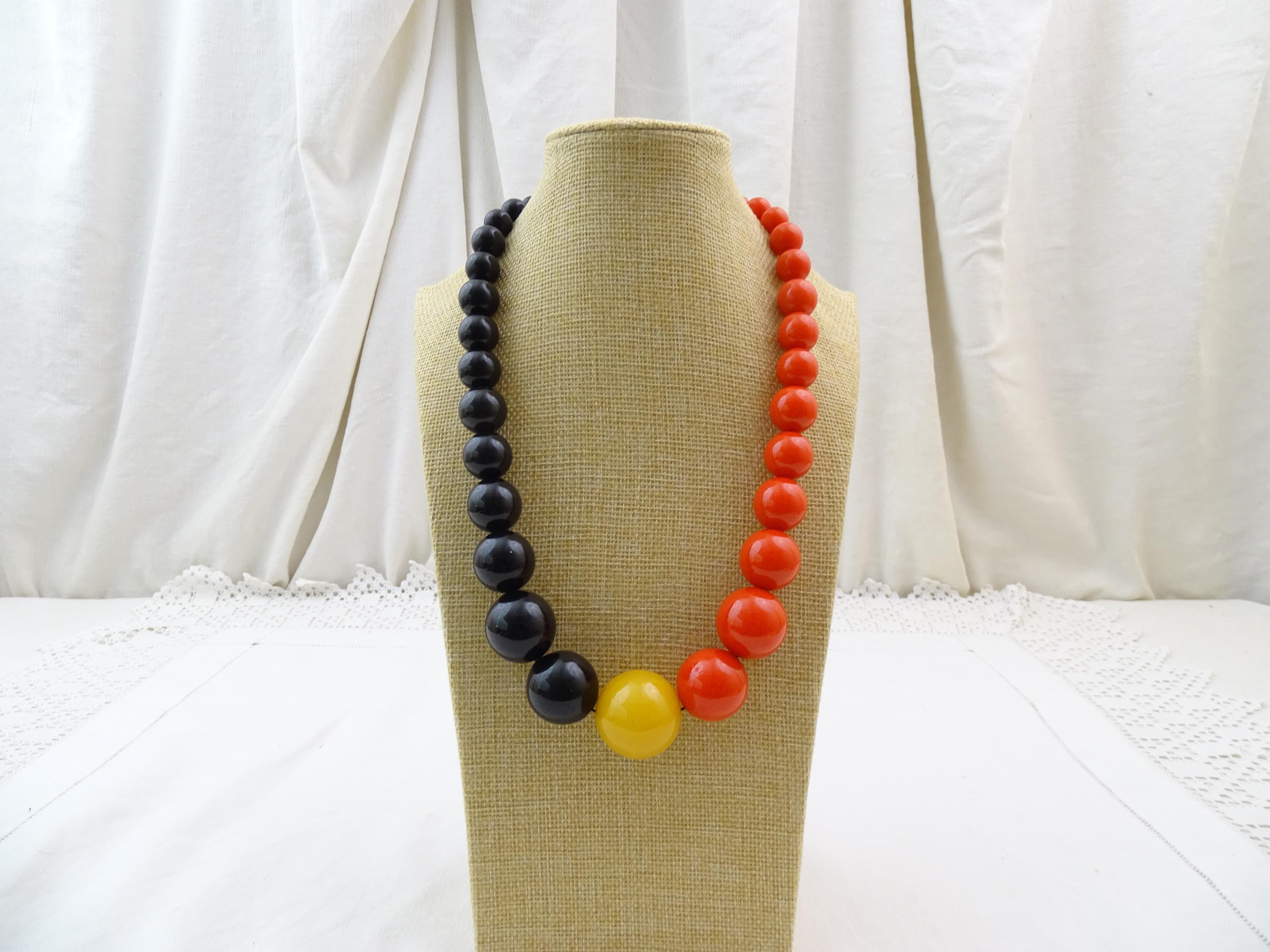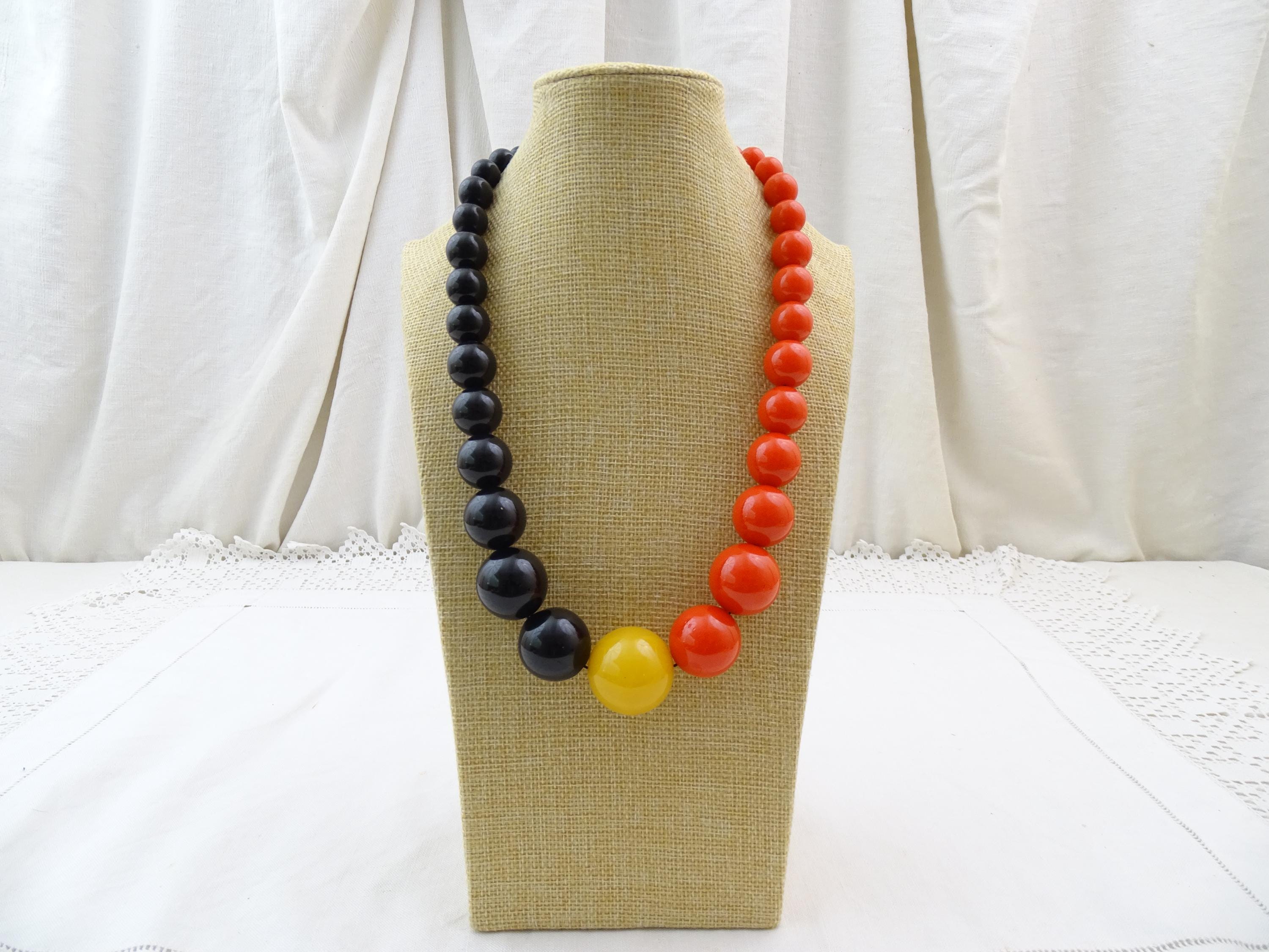 Vintage French large round chunky graduated Cataline beaded necklace in red, black and yellow . Made of Bakelite. Tested with Simichrome. Ca mid 1900s.