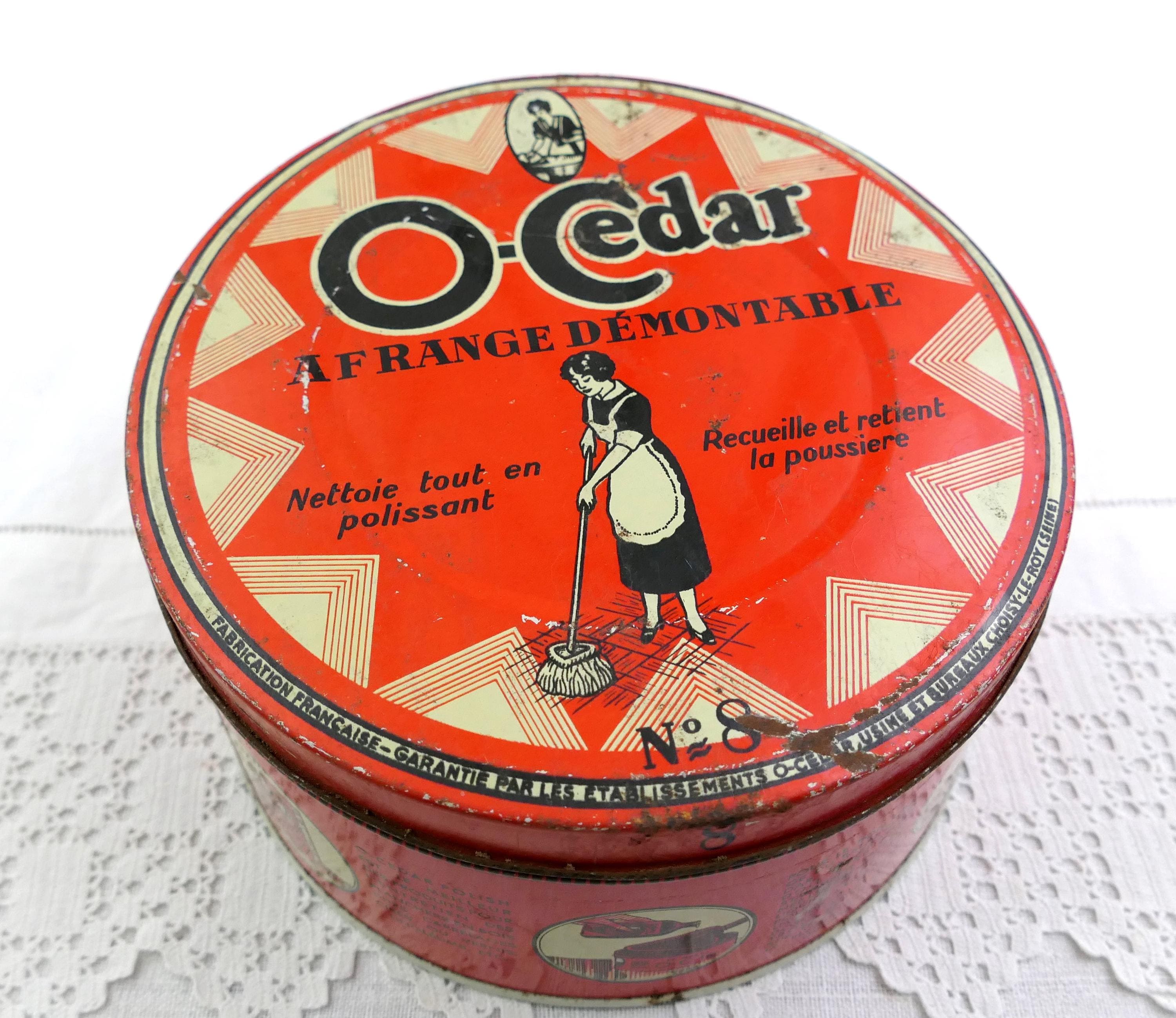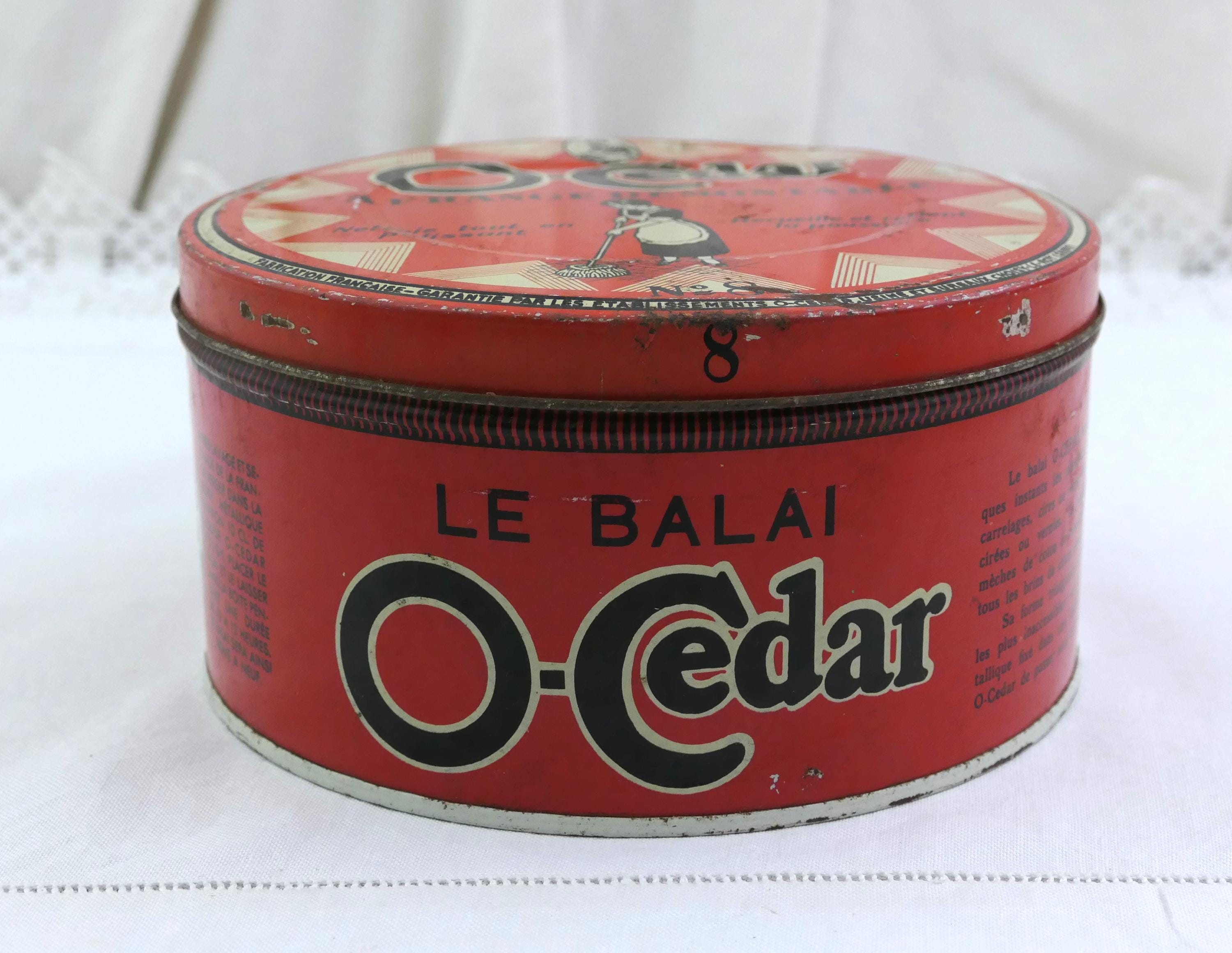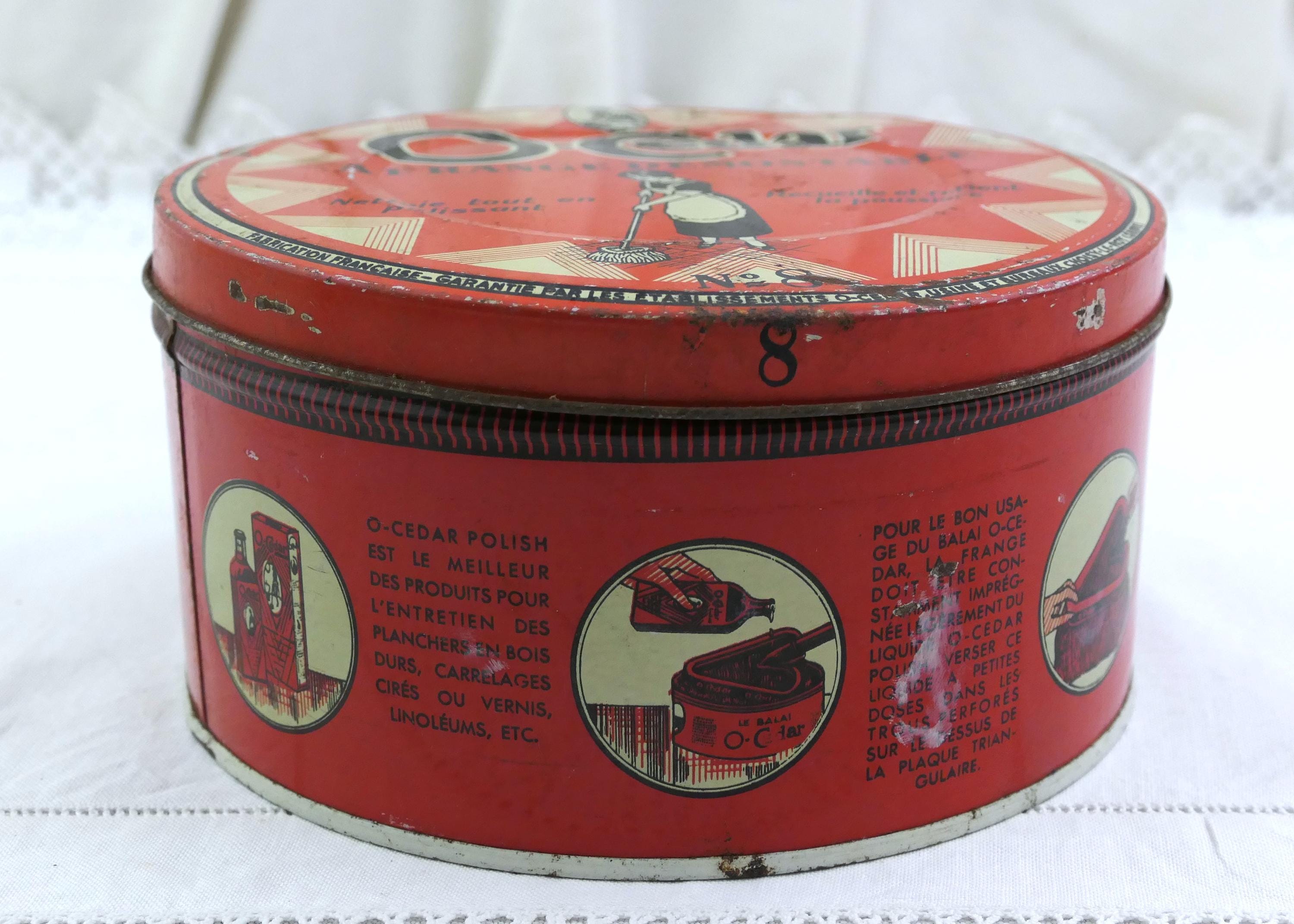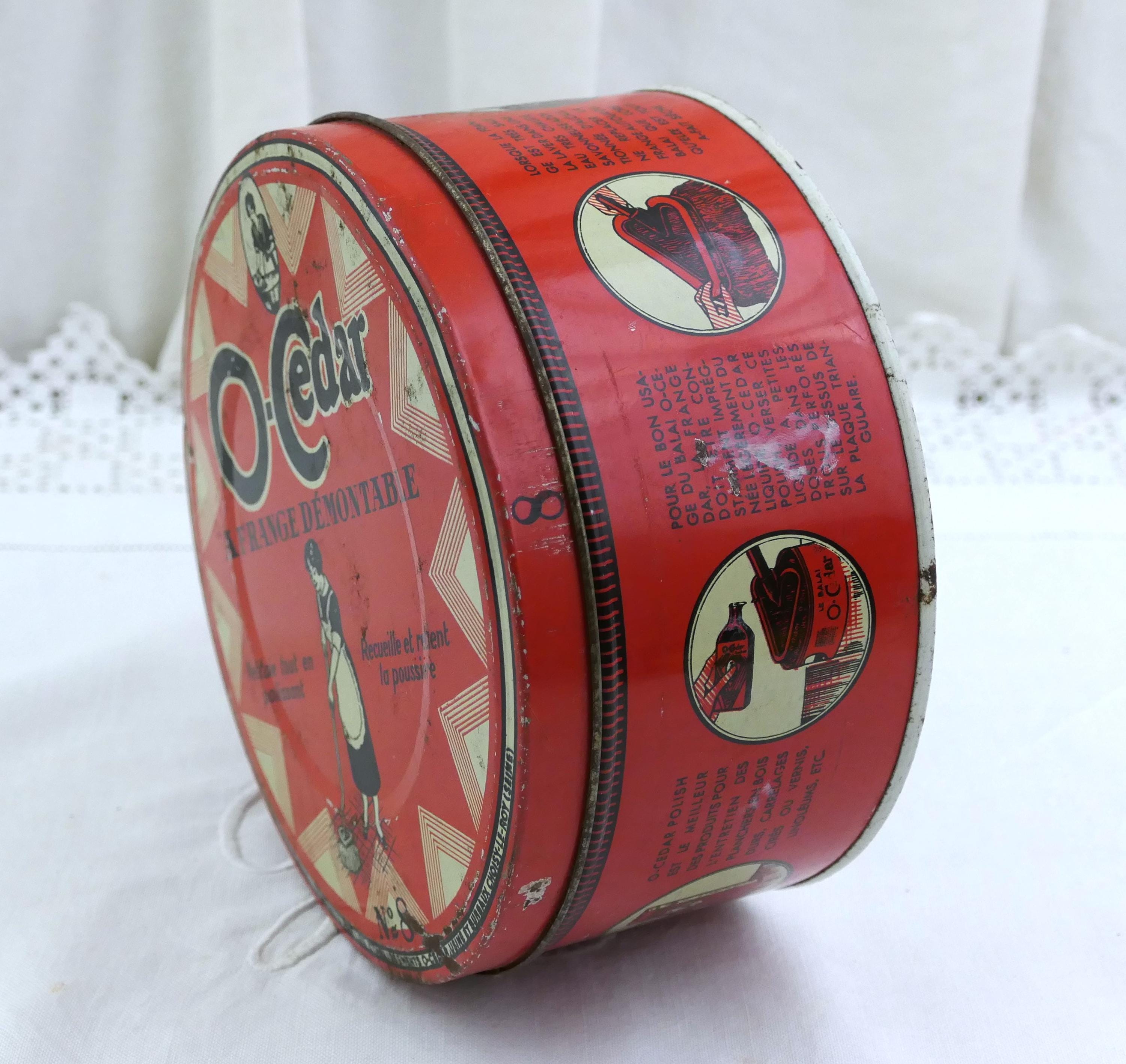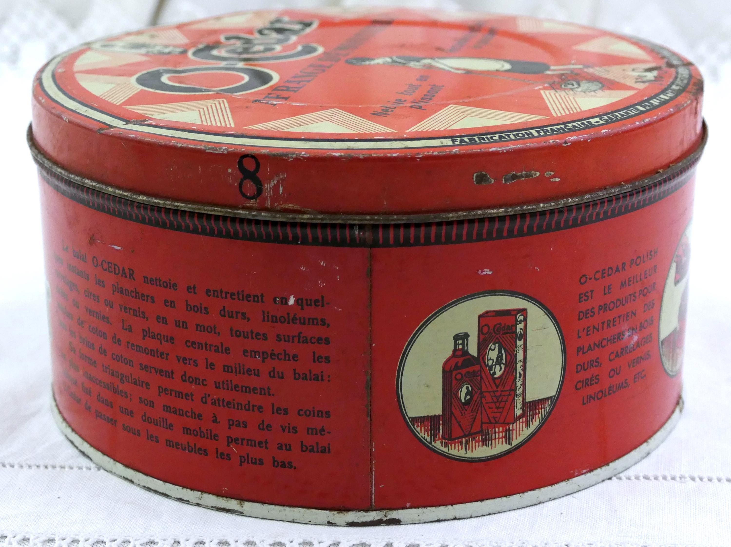 Antique French O Cedar round tin. Made of lithographed metal. Ca early 1900s.