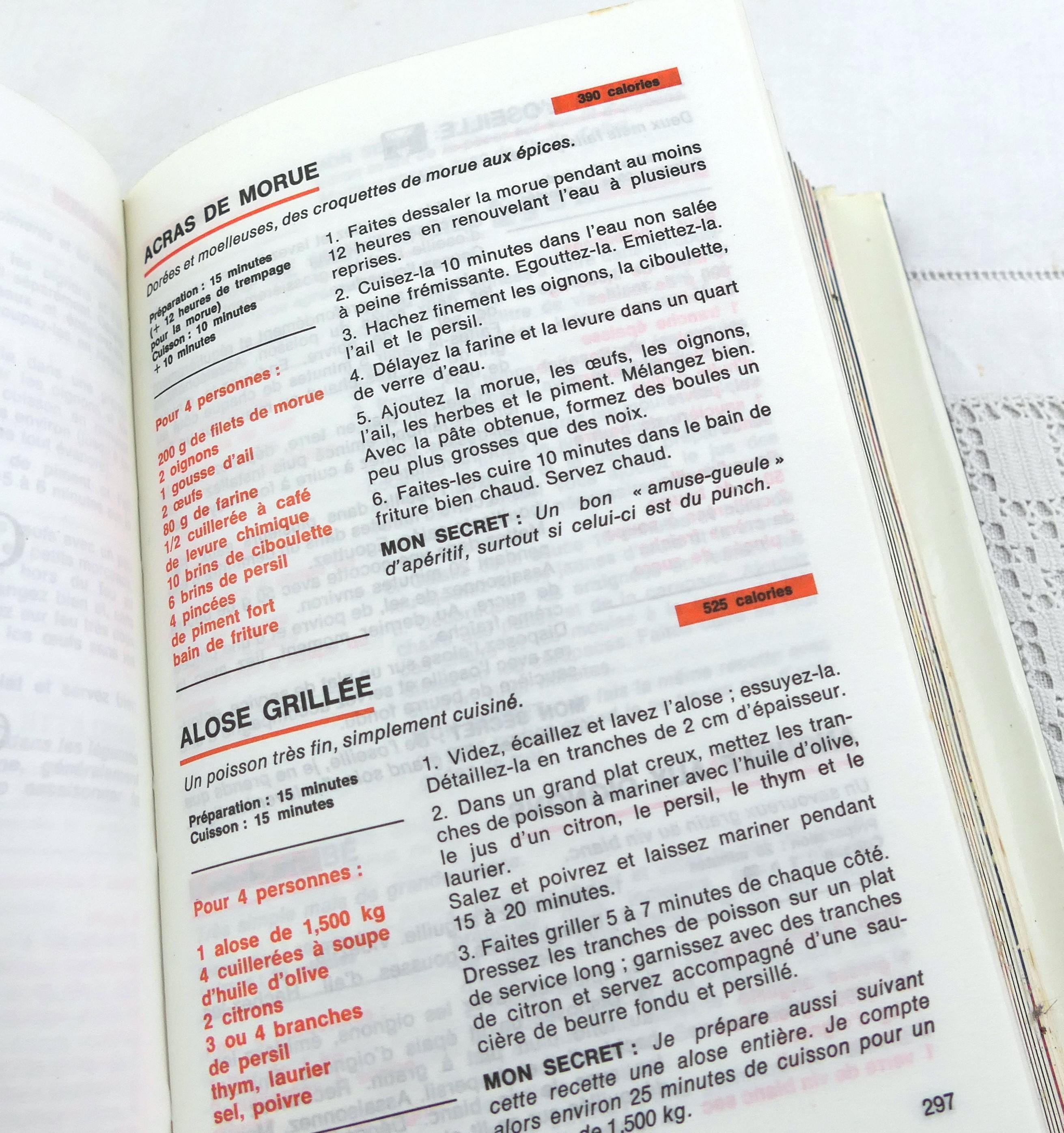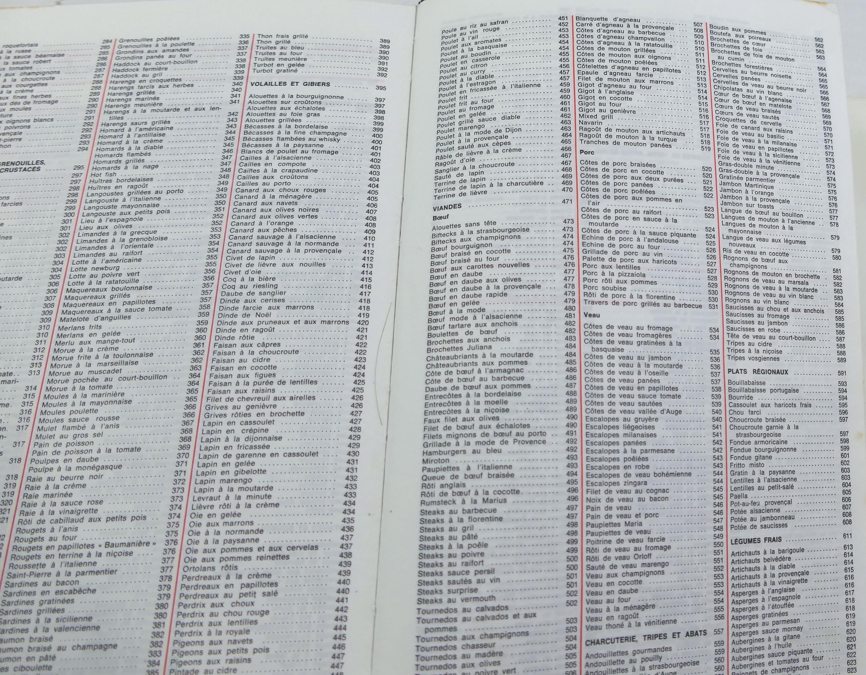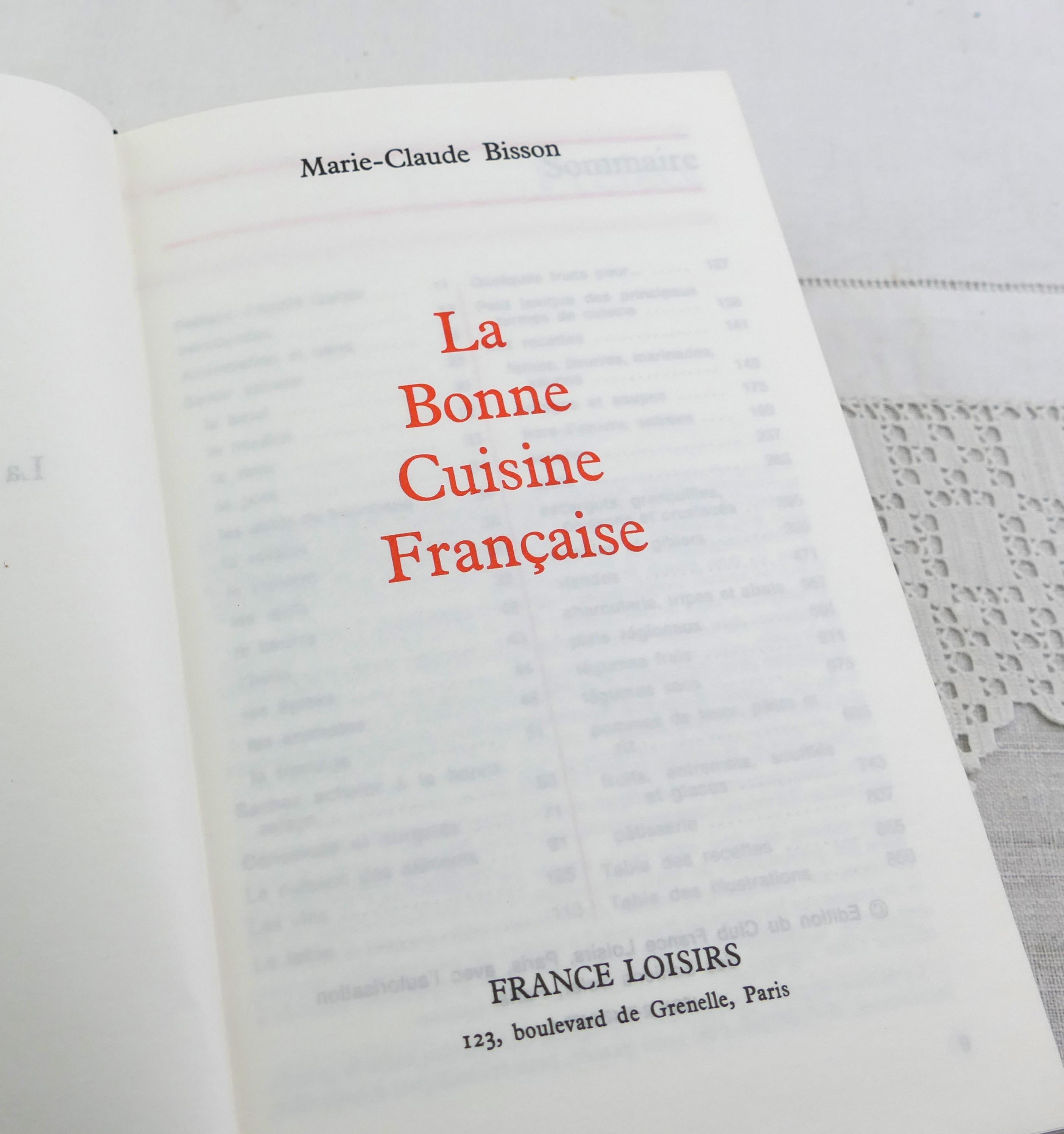 Large vintage well used French cookbook. La Bonne Cuisine Francaise by Marie Claude Bisson. 860 pages of traditional recipes with photographs. Printed in 1988.