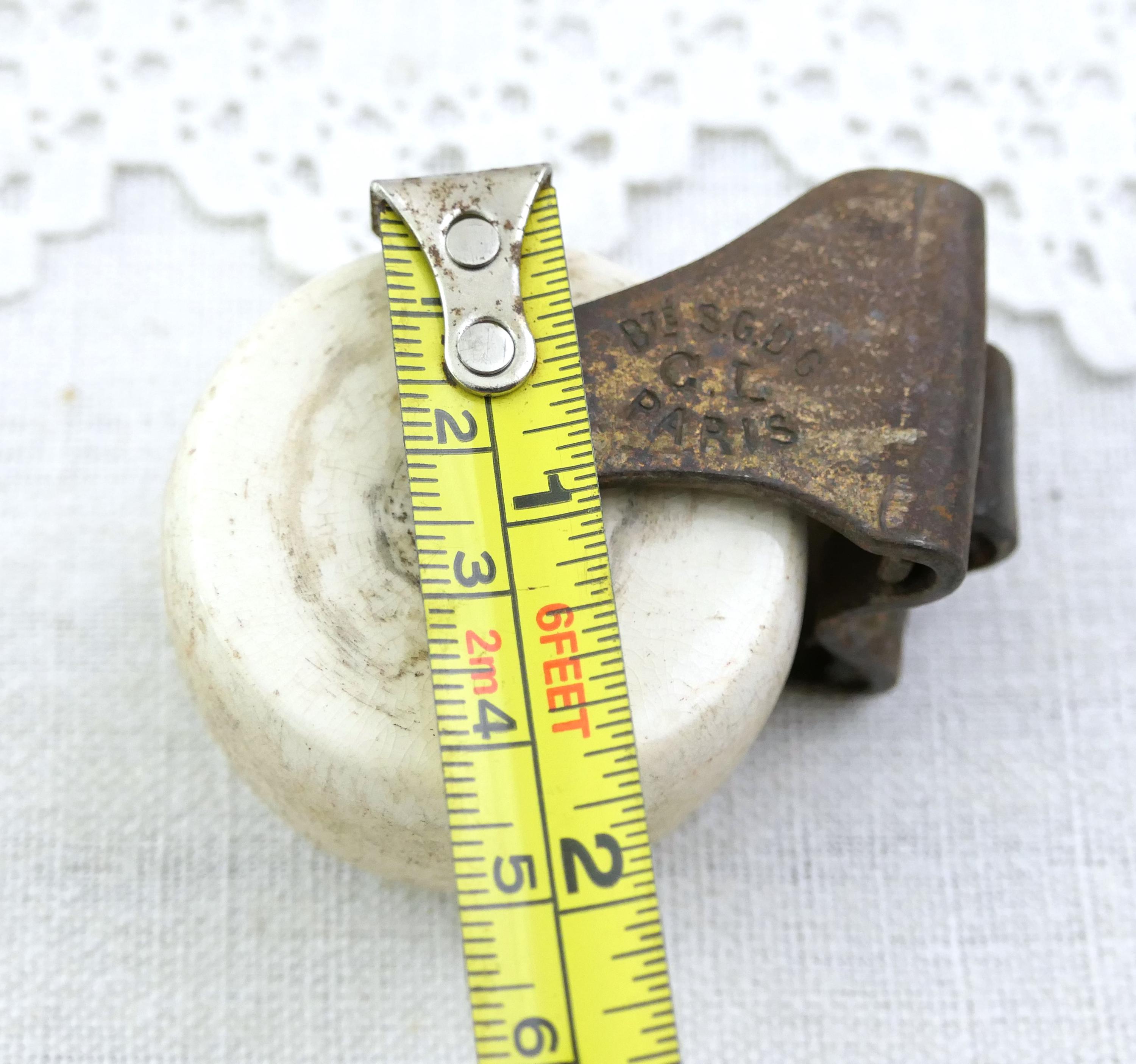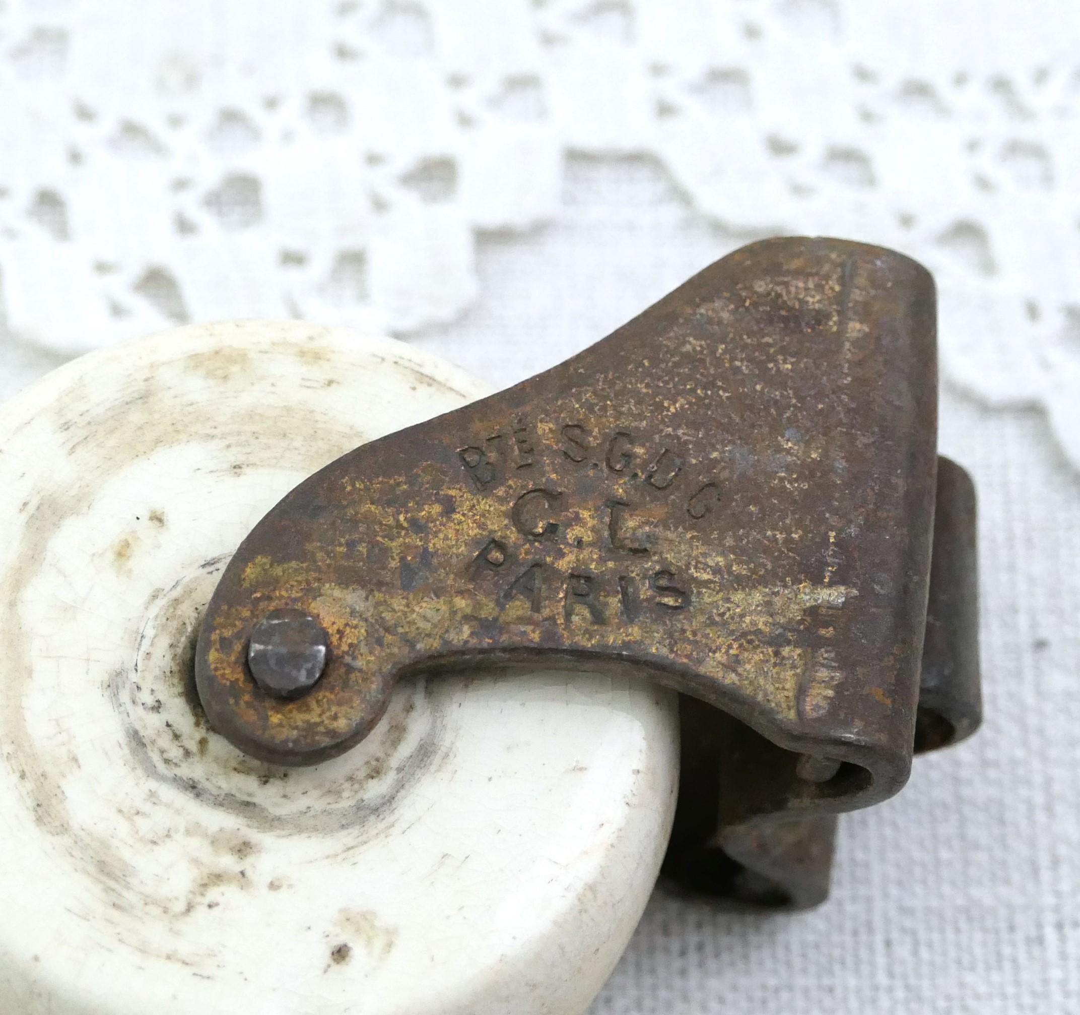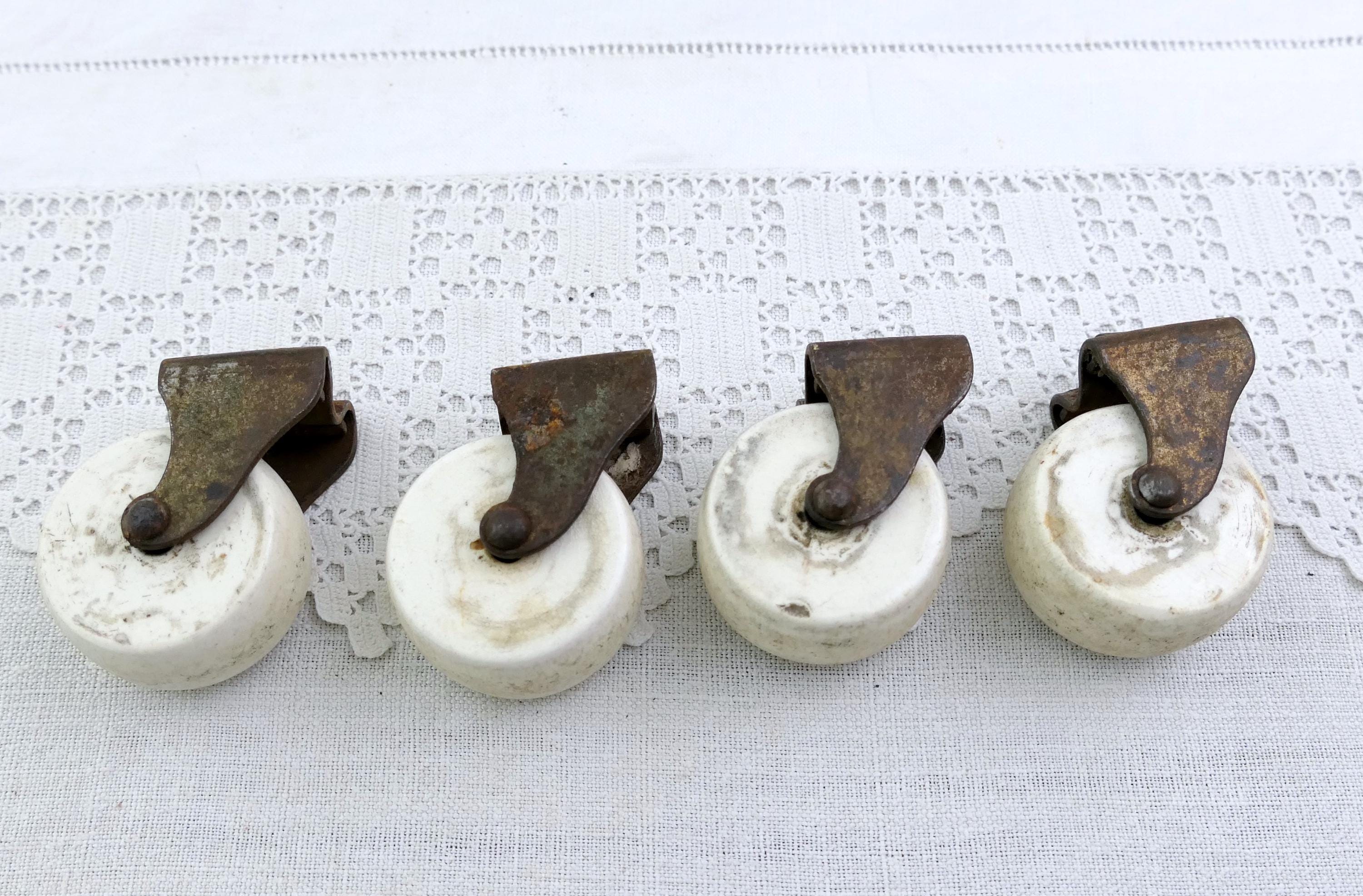 Set of 4 antique French furniture casters. Made in Paris by CL of white porcelain china with metal. Ca 1800s.