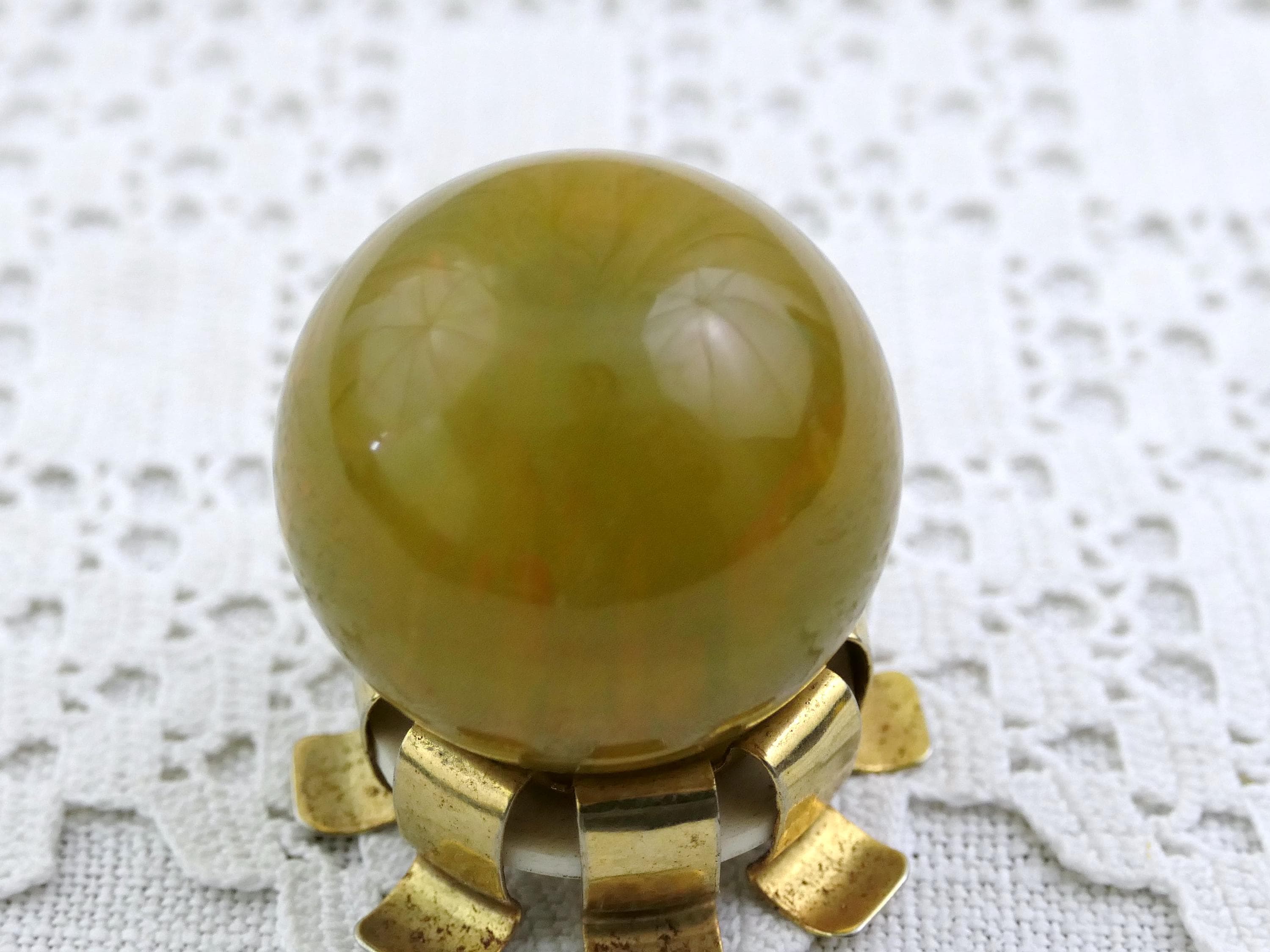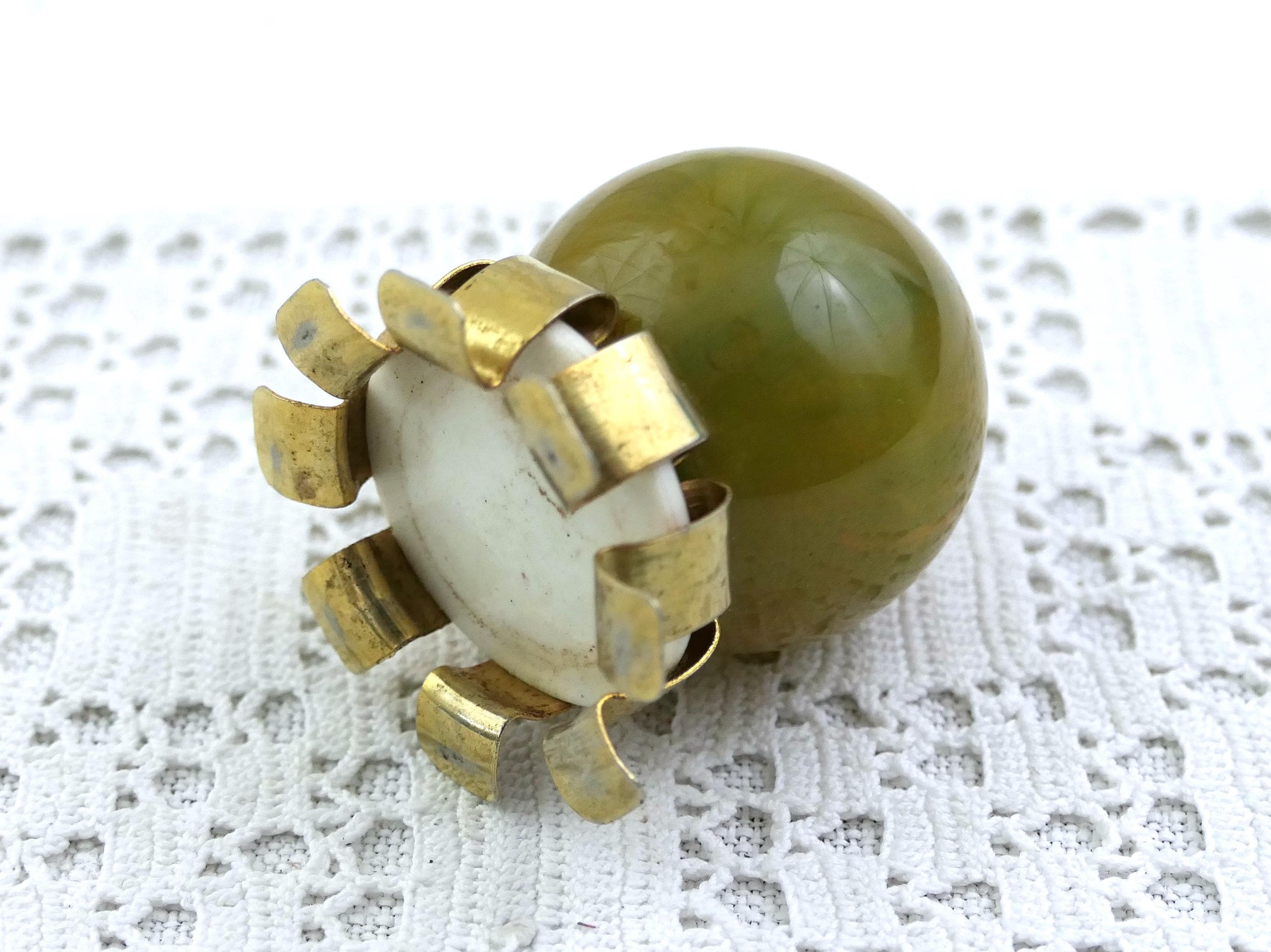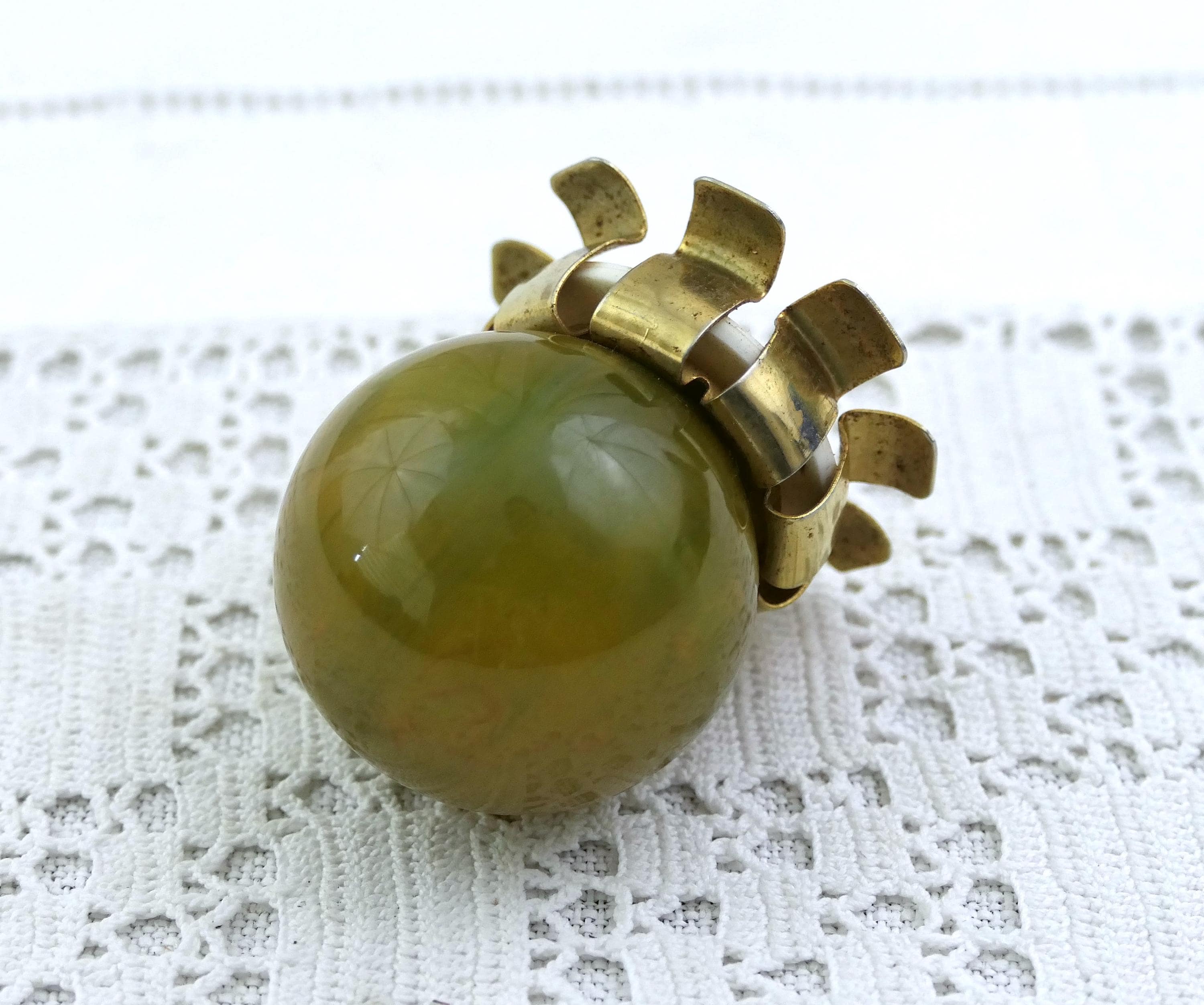 Vintage swirled spinach colored catalin bottle stopper. Made of marbled bakelite. CA 1950s.