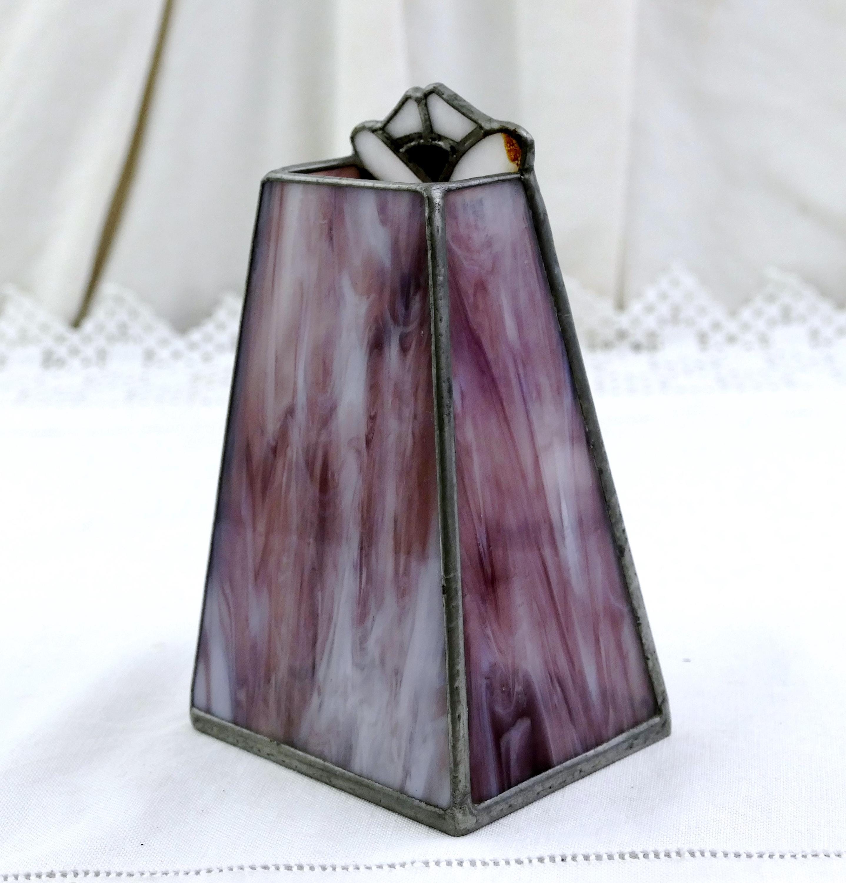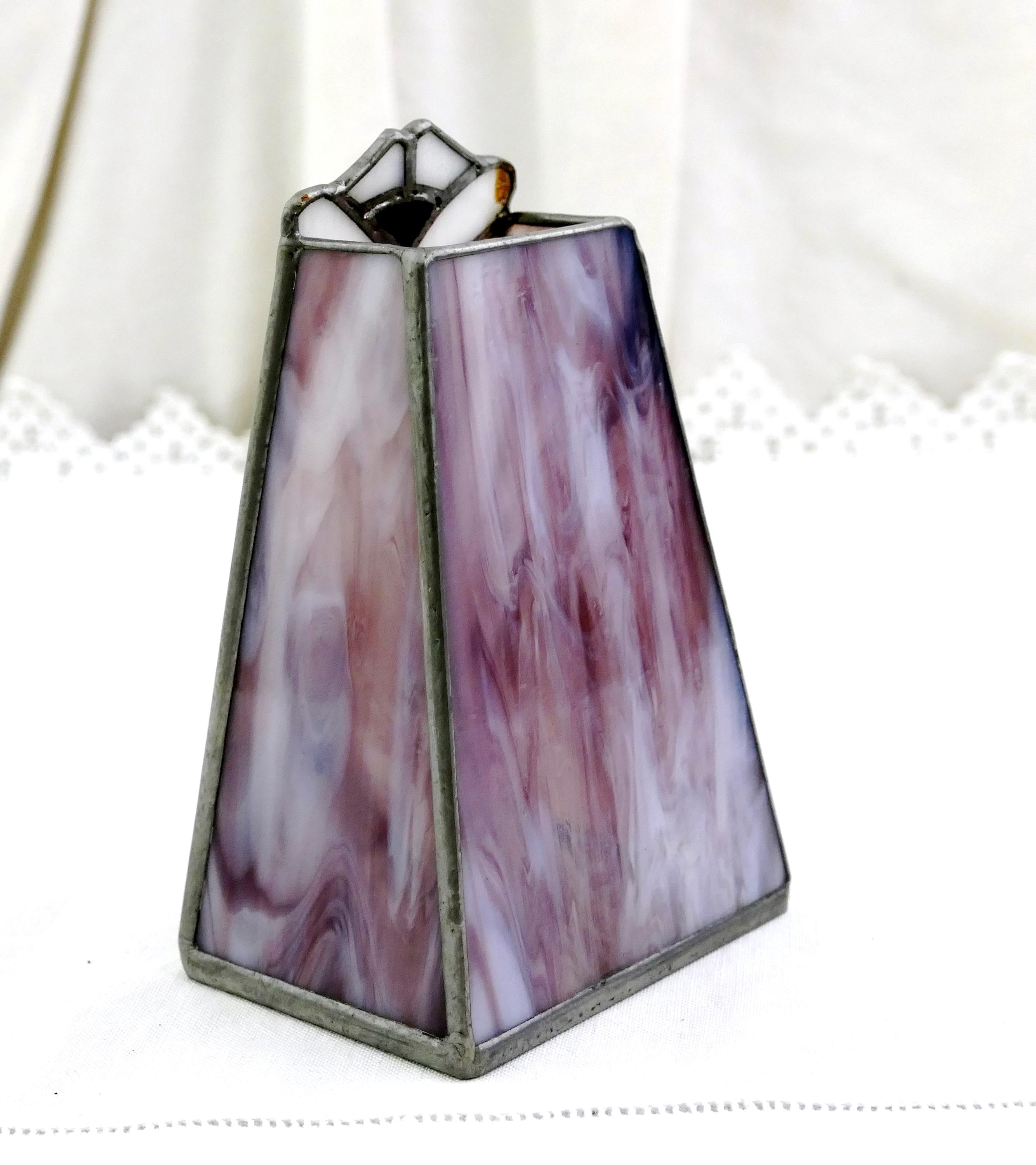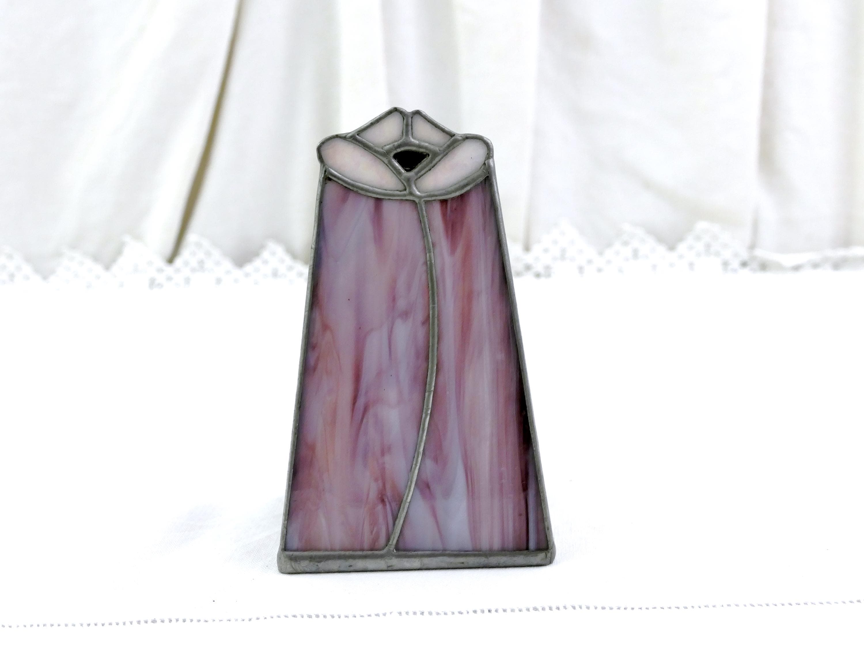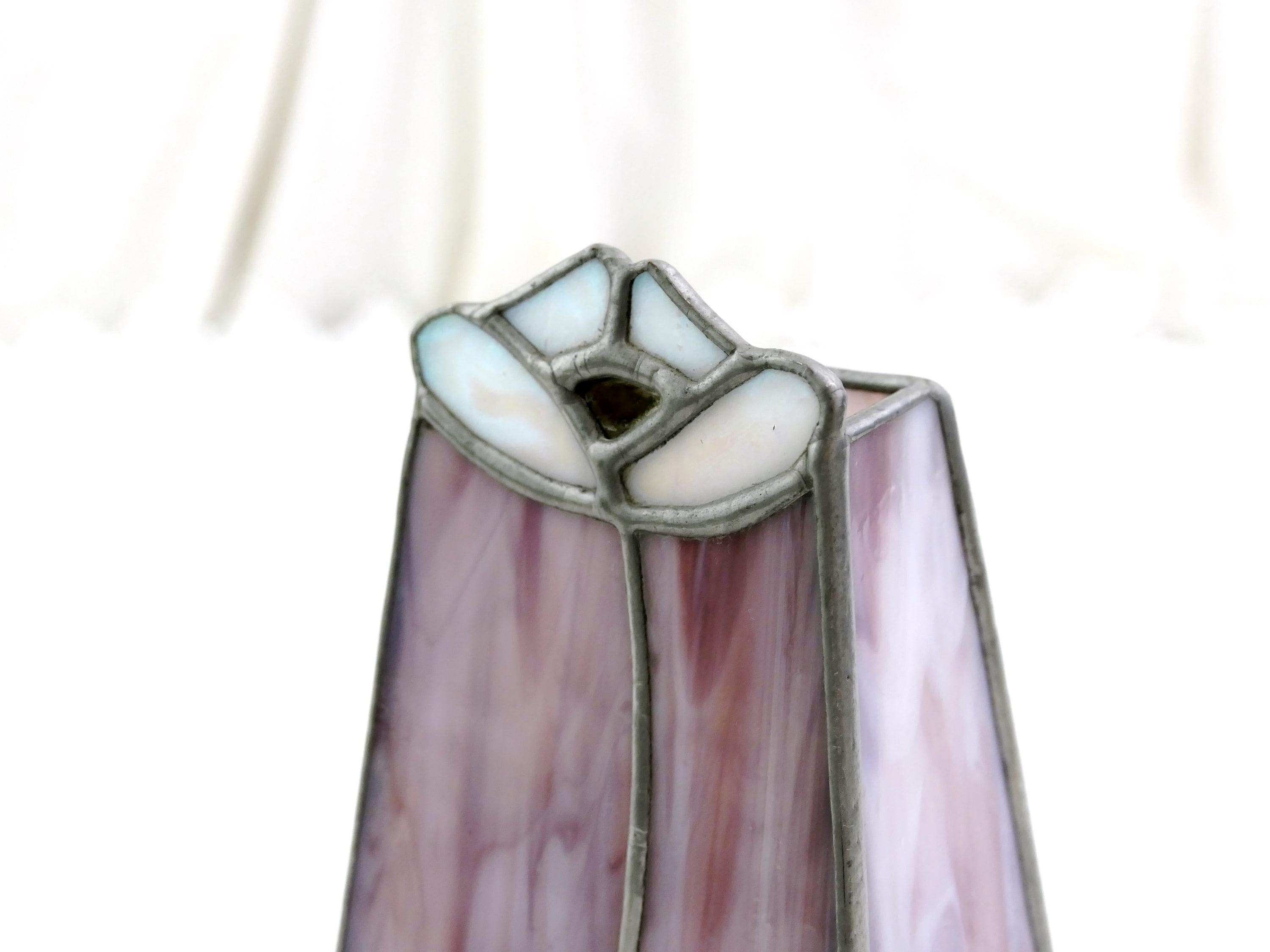 Vintage Rennie Mackintosh style vase. Handmade of stained glass in marbled pink and white glass. Ca late 1900s.