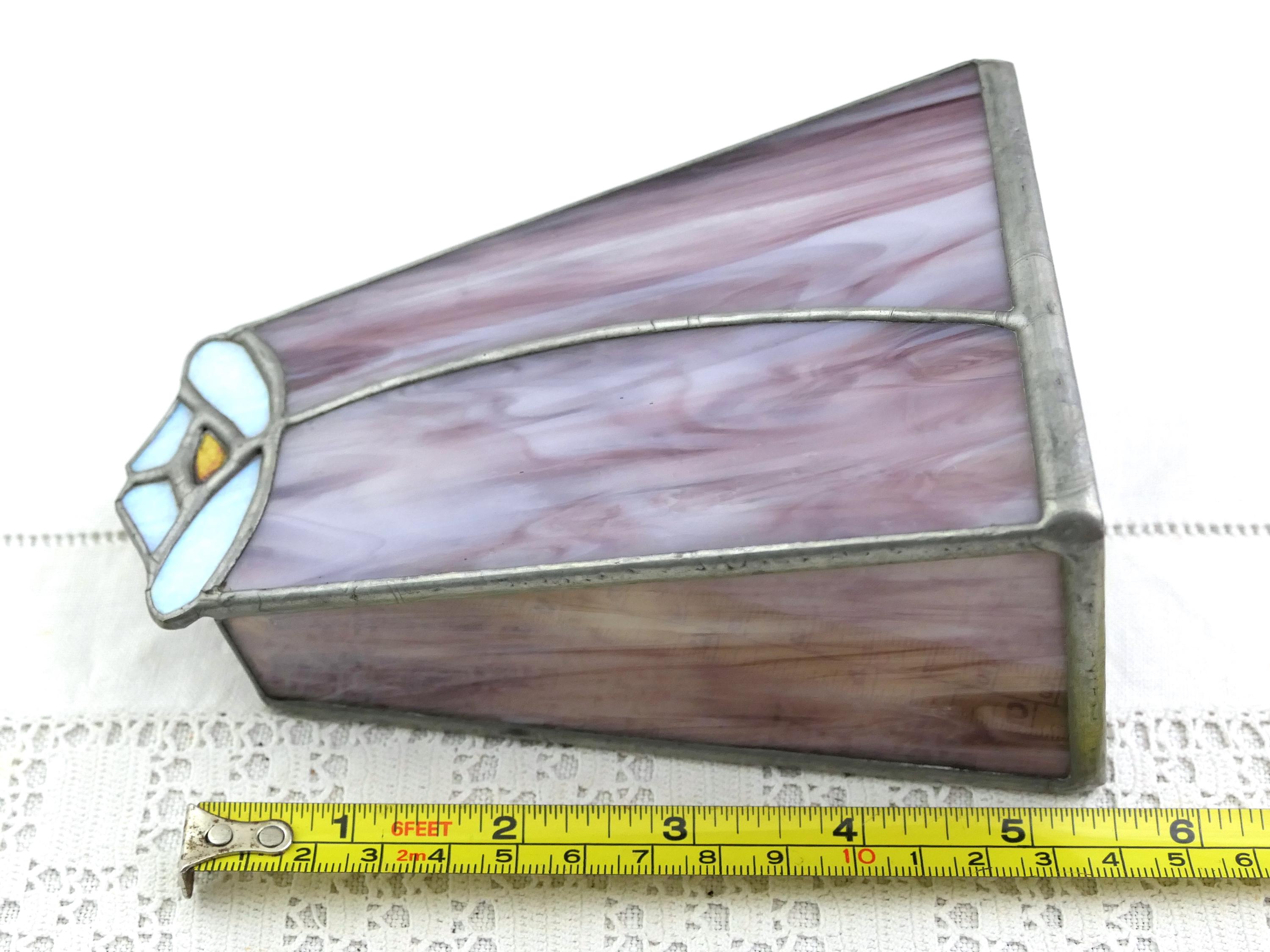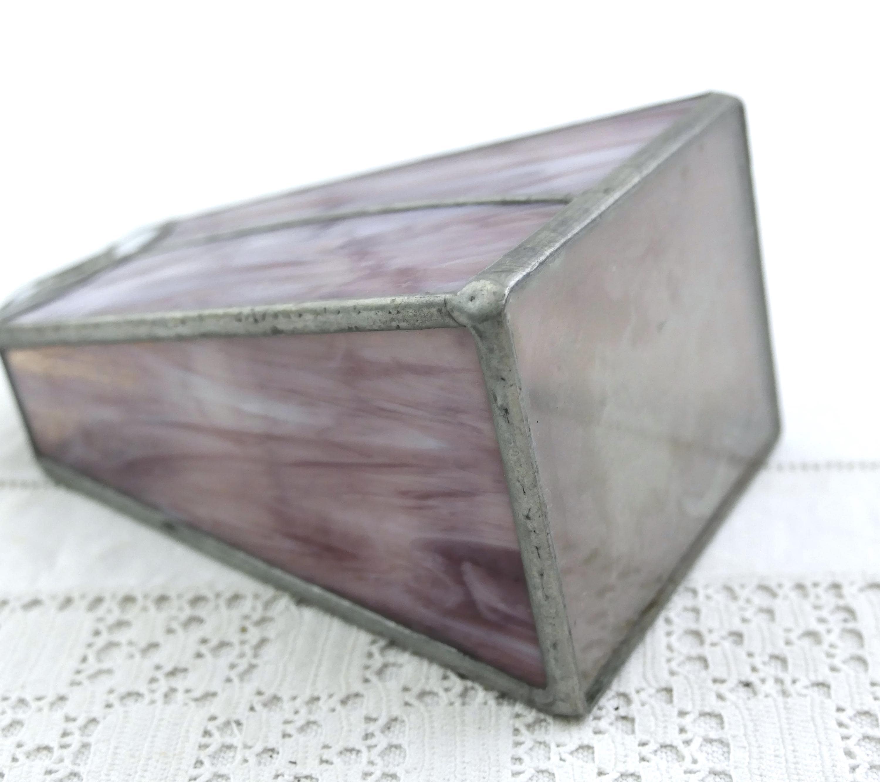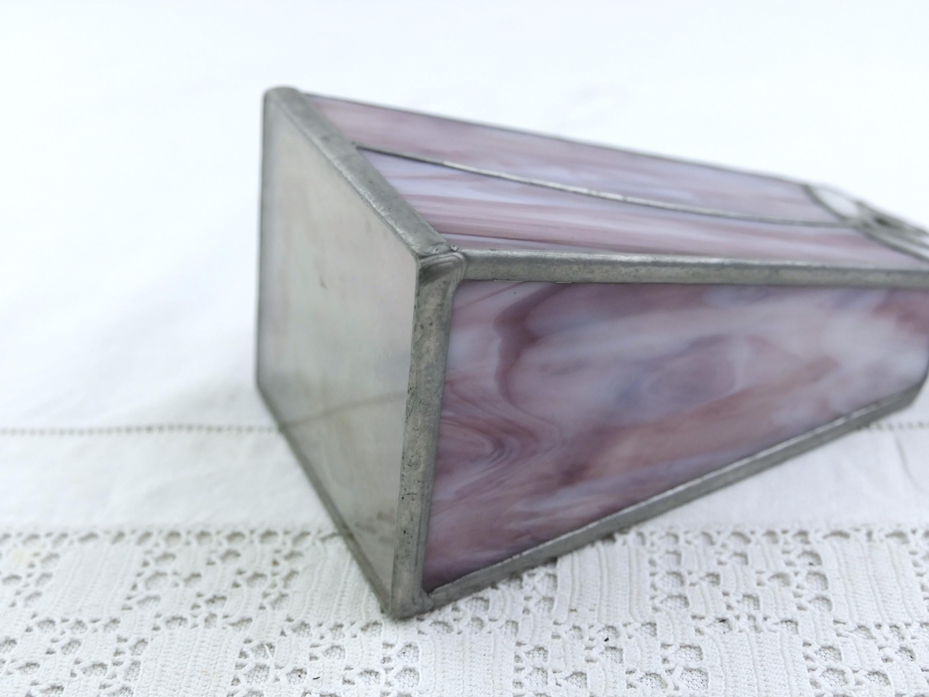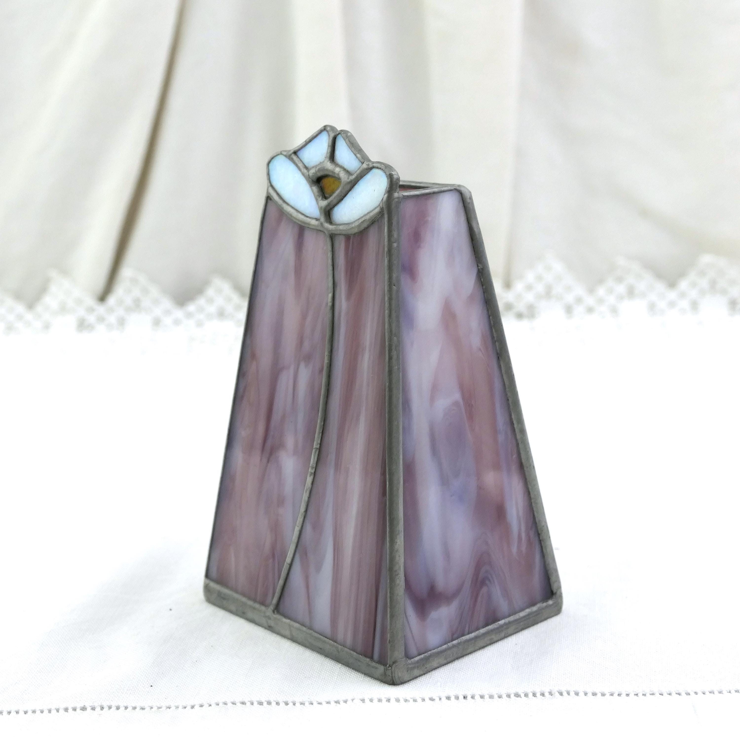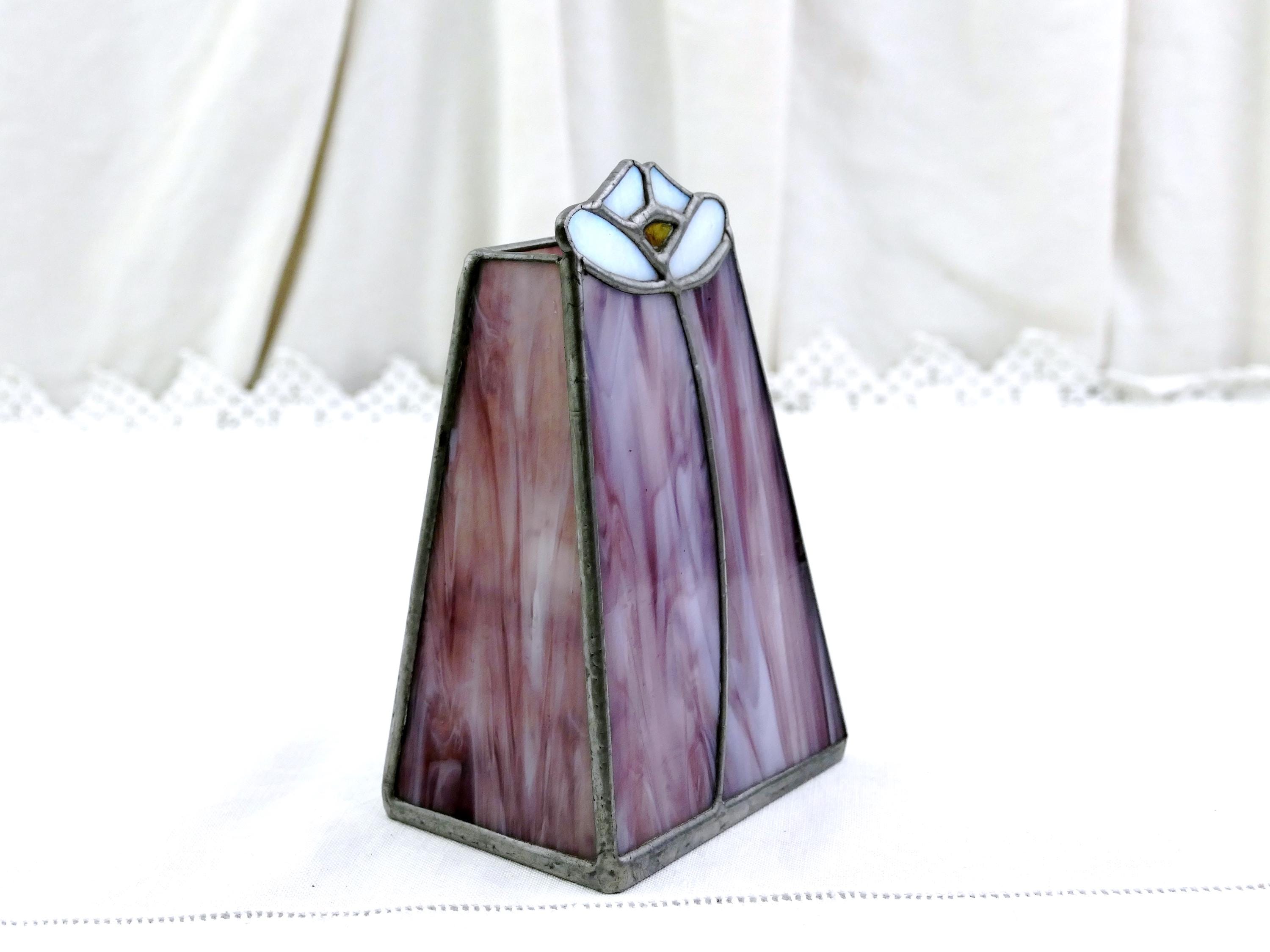 Vintage Rennie Mackintosh style vase. Handmade of stained glass in marbled pink and white glass. Ca late 1900s.