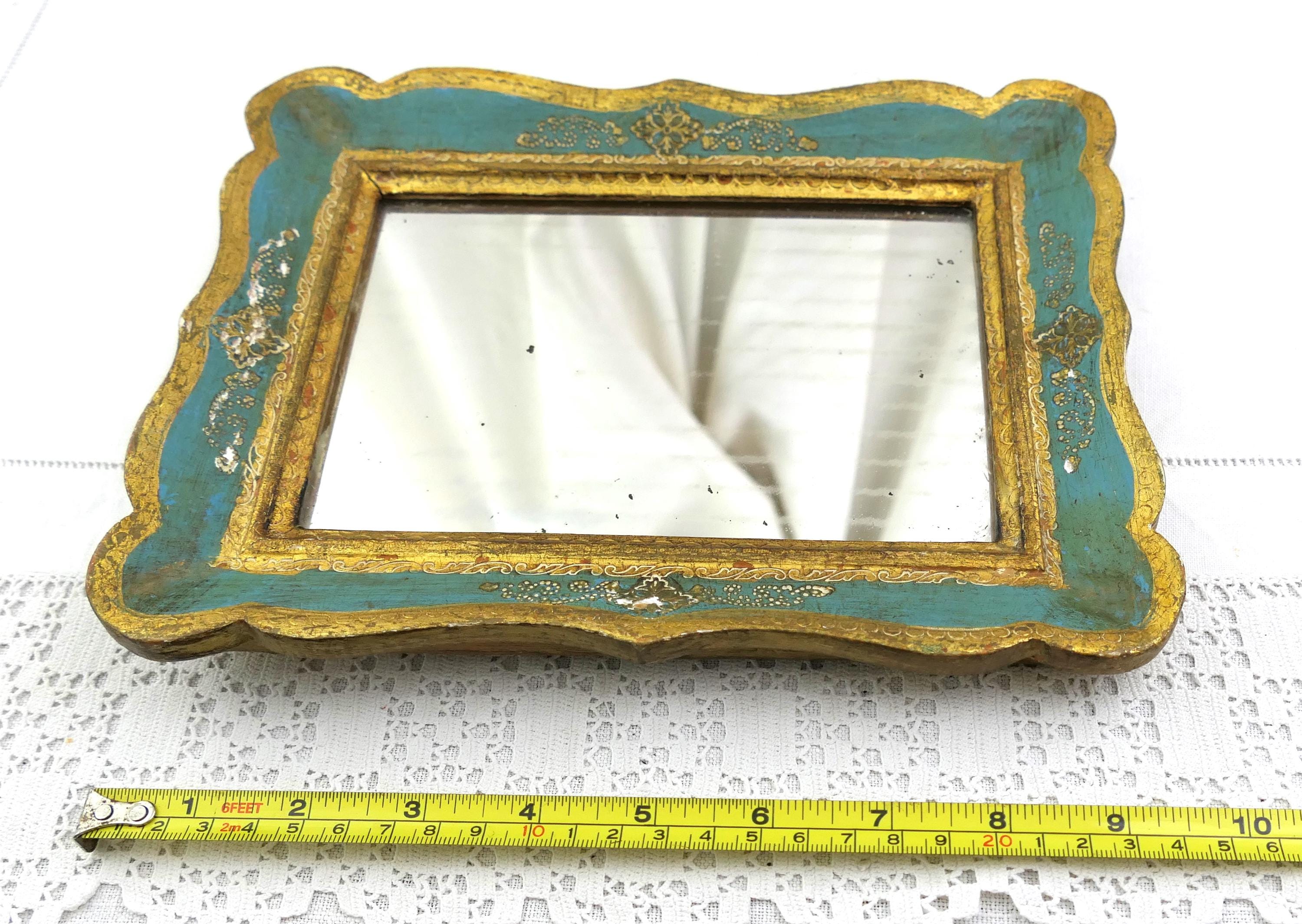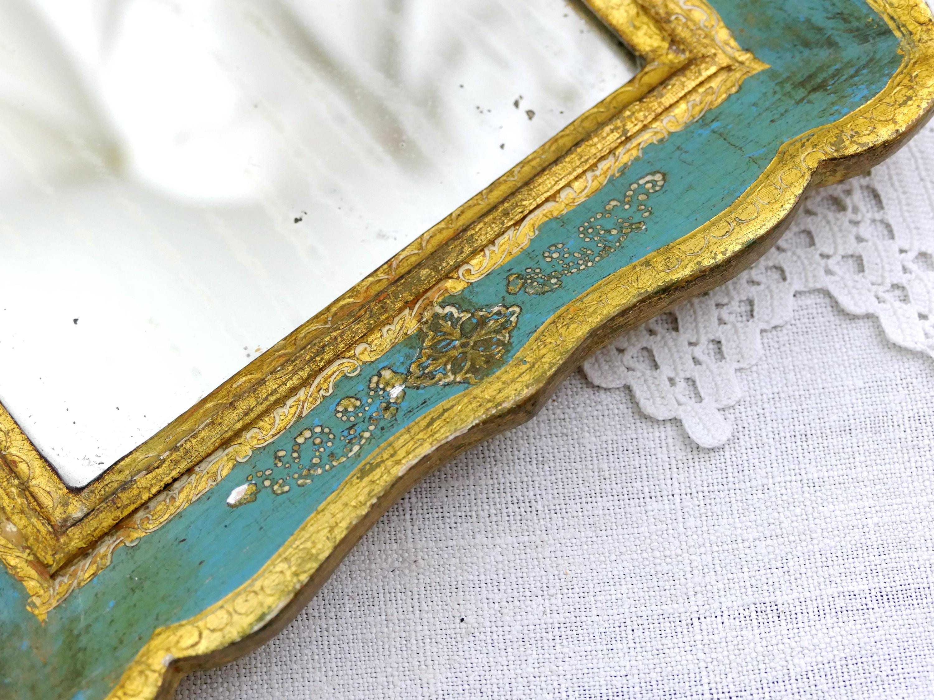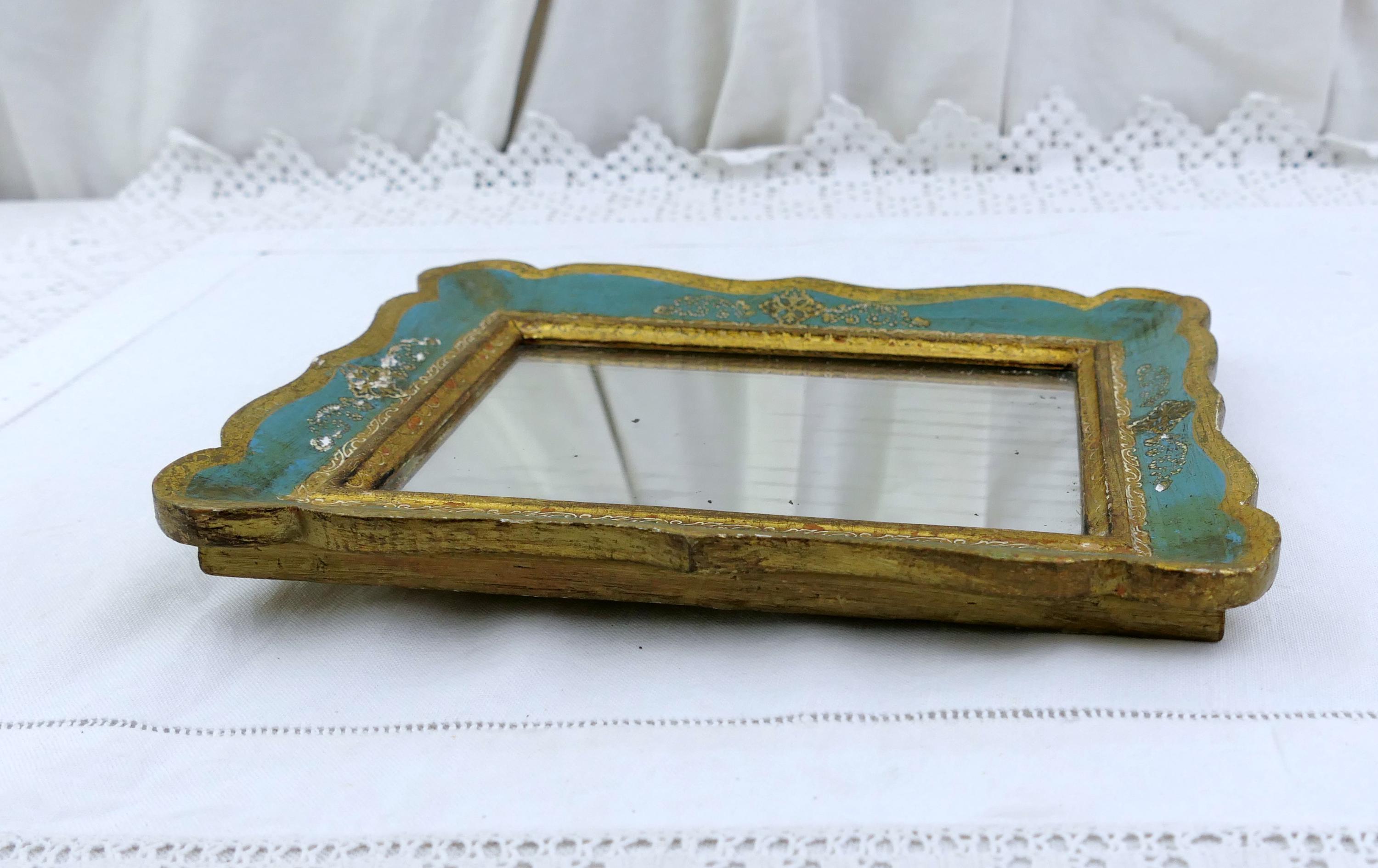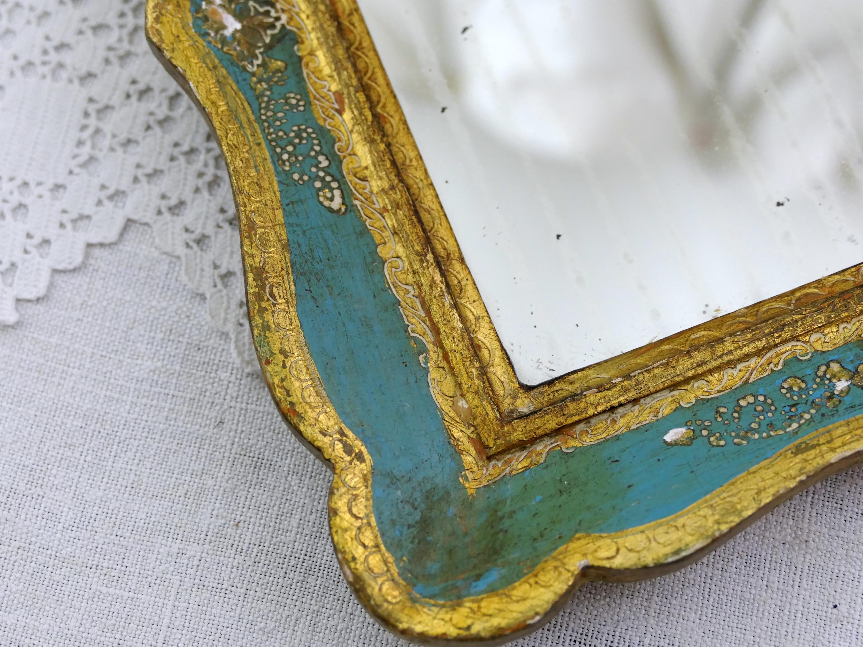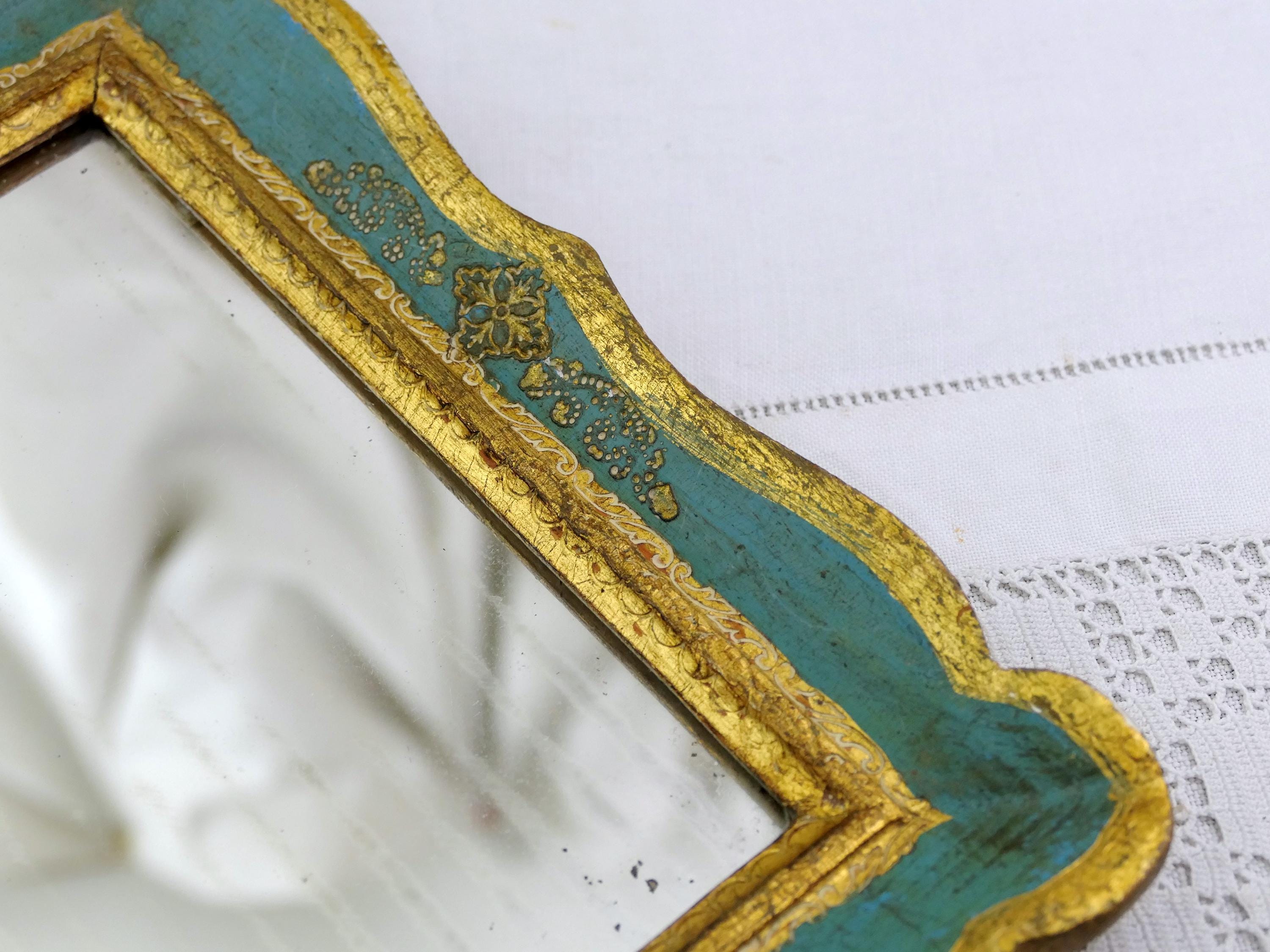 Vintage Italian wall mirror in pale blue and gold. Made of wood with gesso. Ca mid 1900s.