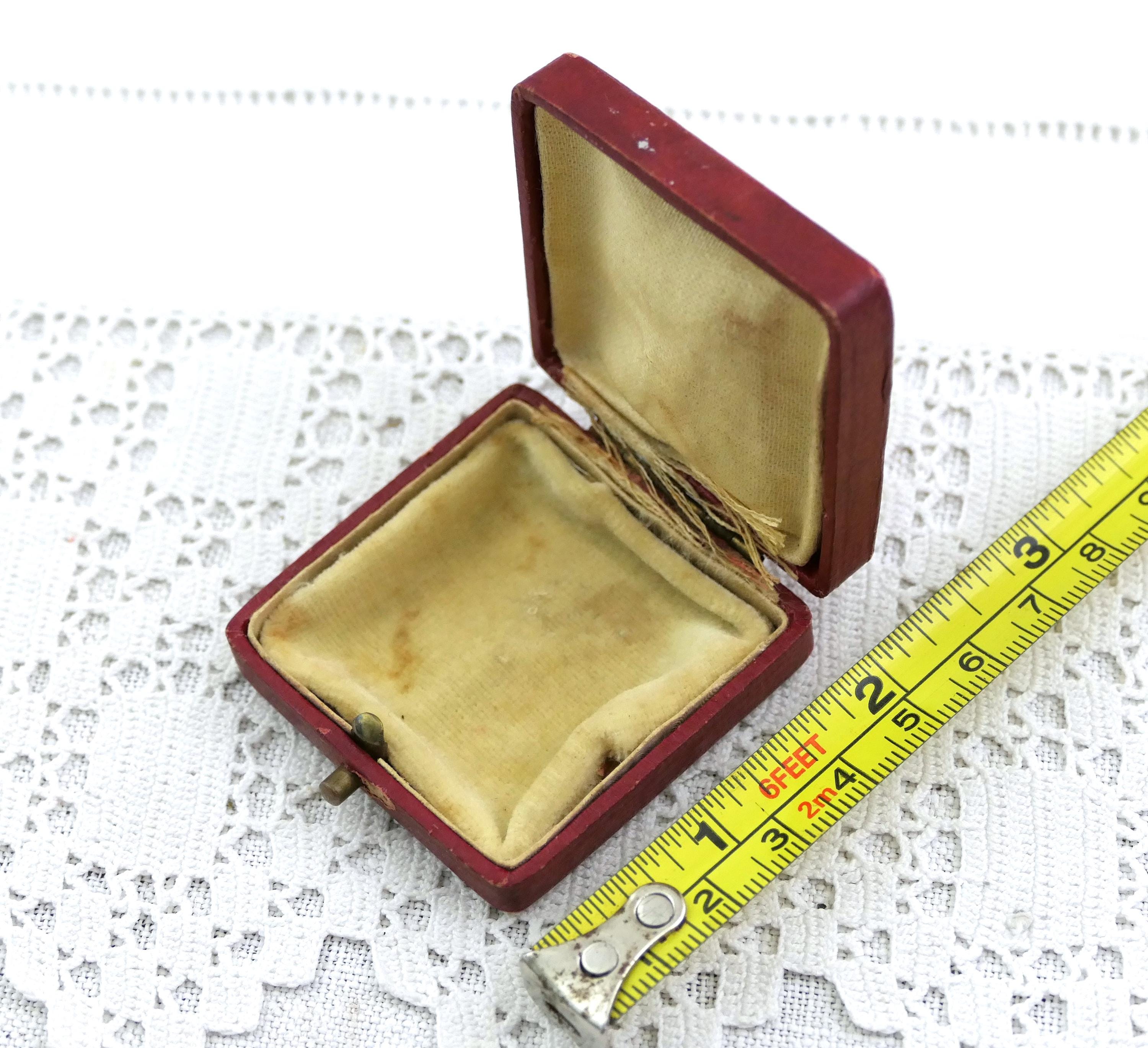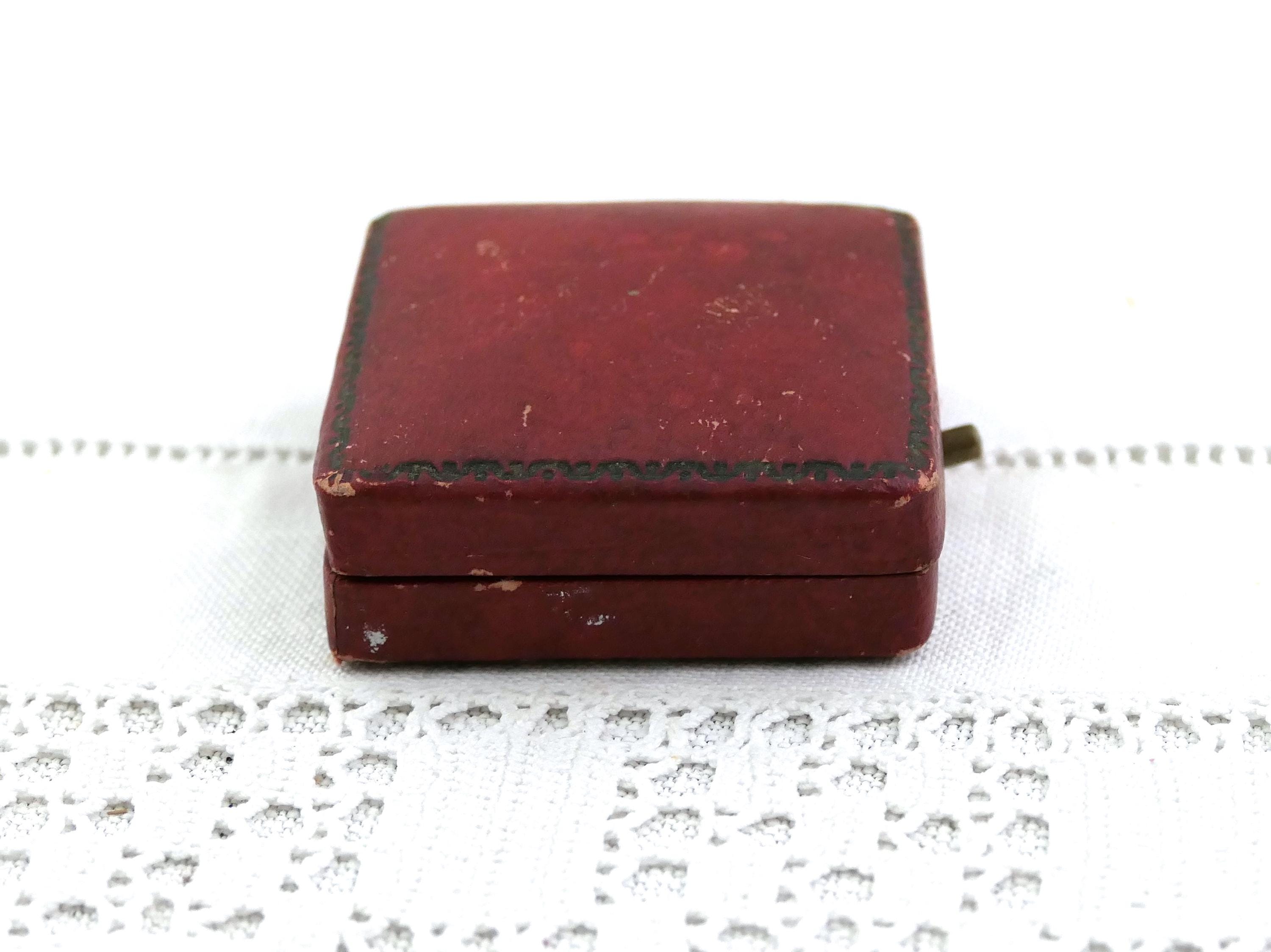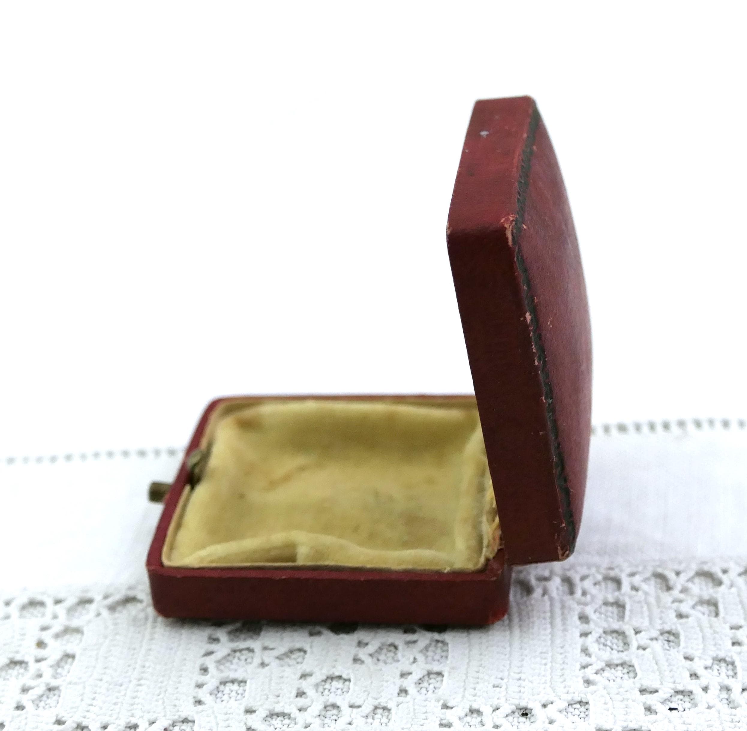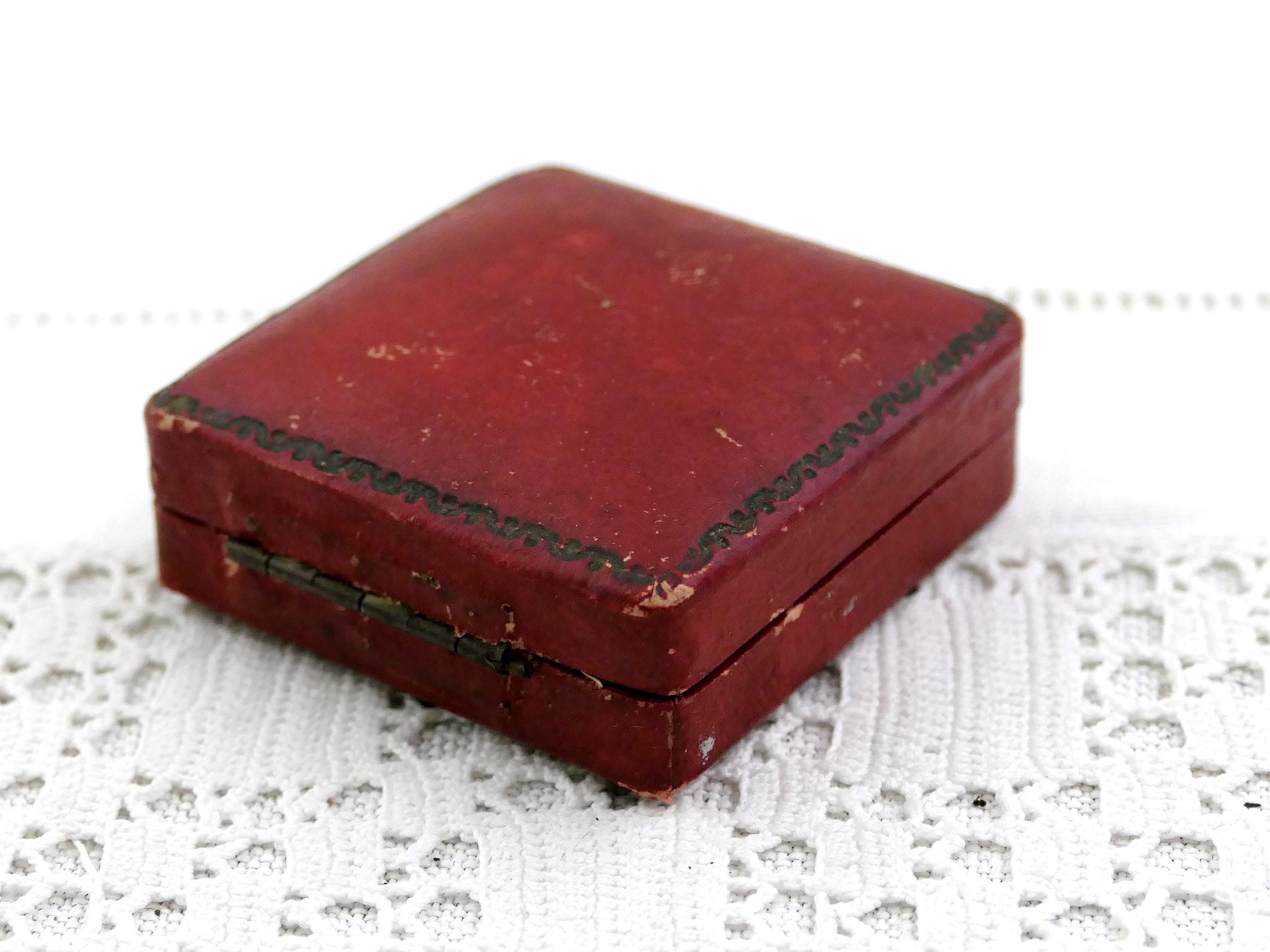 Antique French square red coin case. Made of red covered wood with distressed pale yellow satin lining. Ca early 1900s.