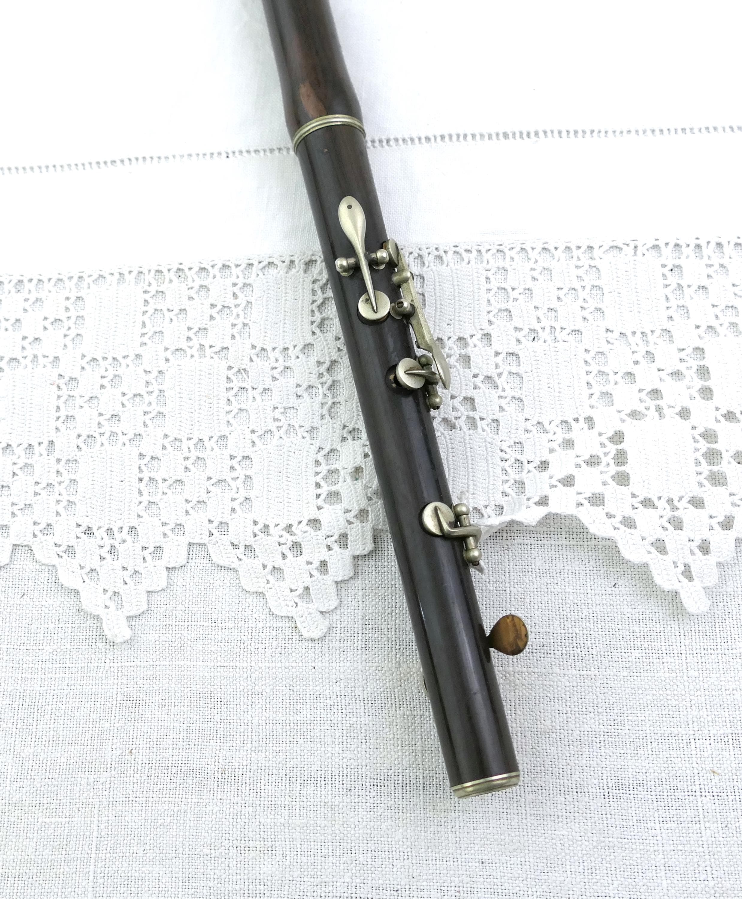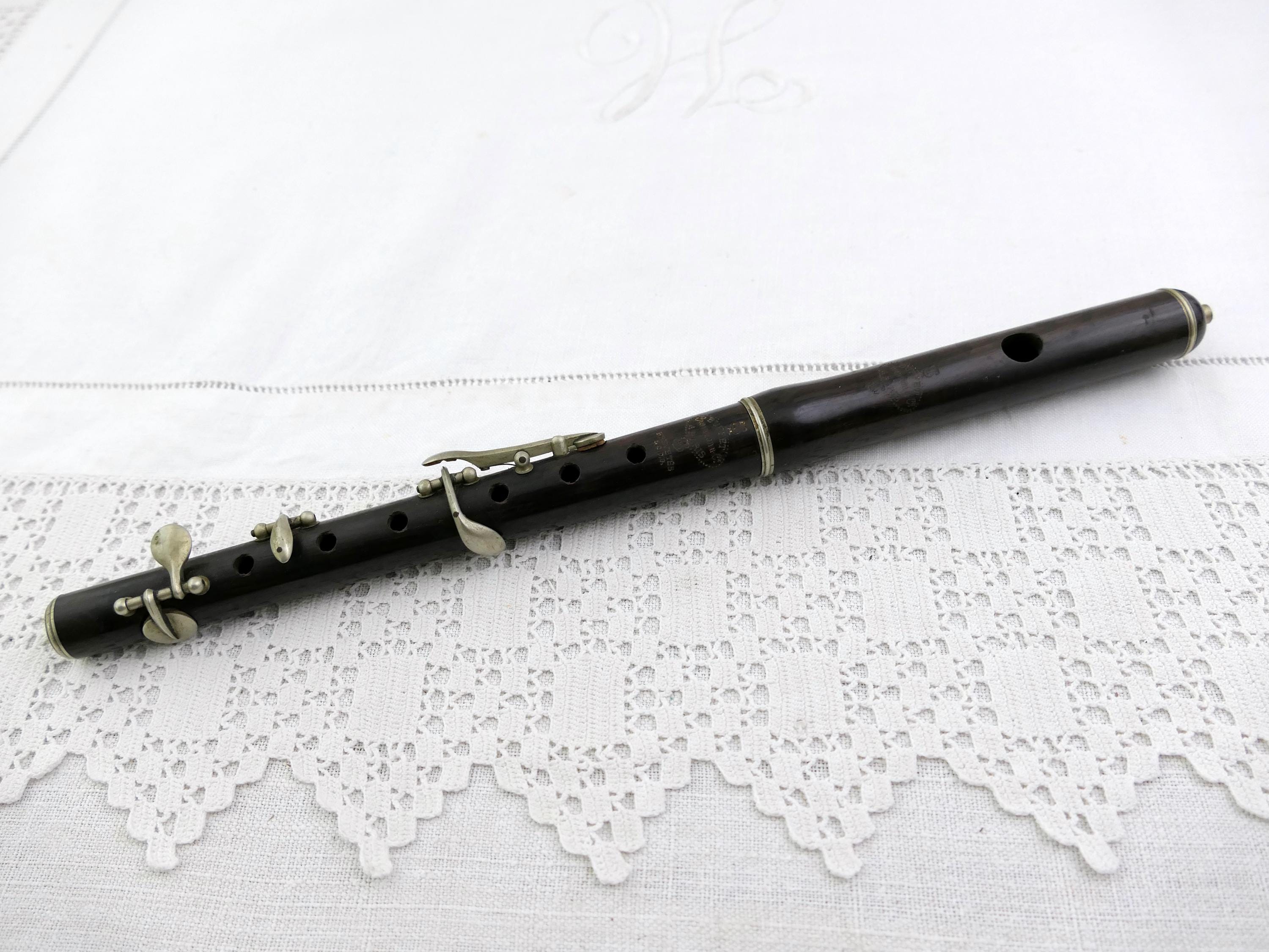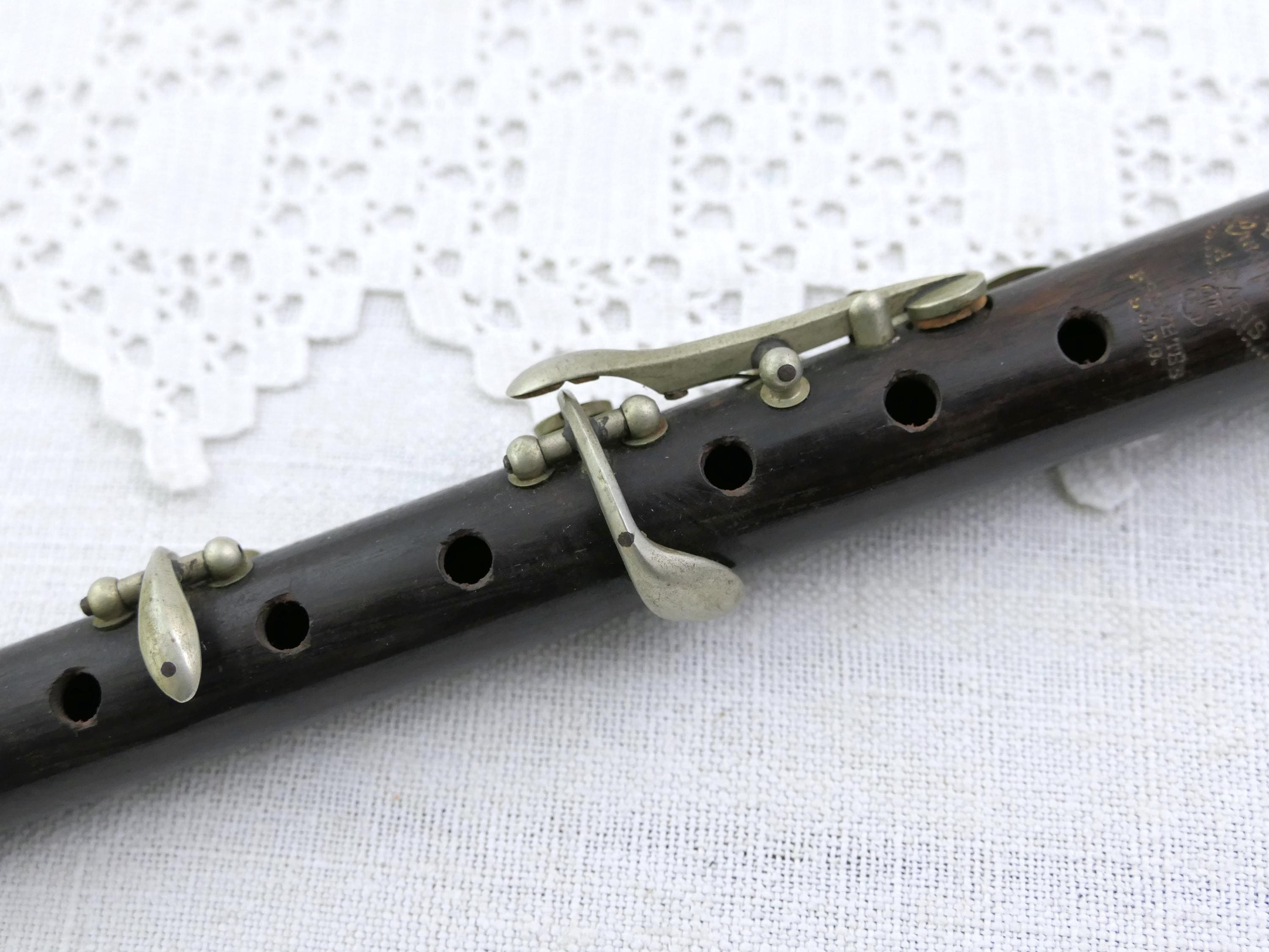 Antique 5-key piccolo wooden flute made by Buffet Crampon with German silver rings and keys made in Paris, In need of restauration or for parts. I don't know what key it is, unfortunately I am not a musician. Ca late 1800s.