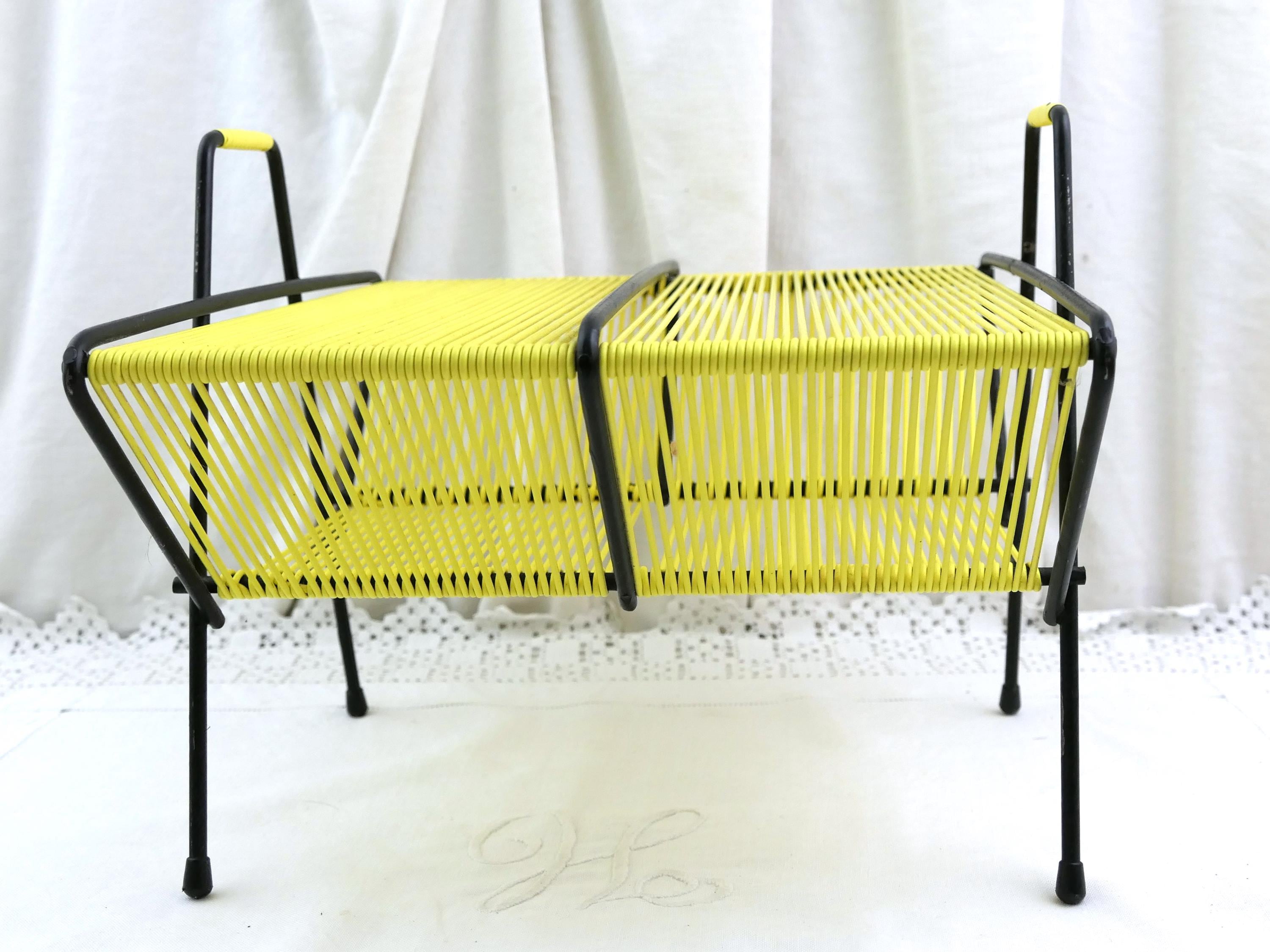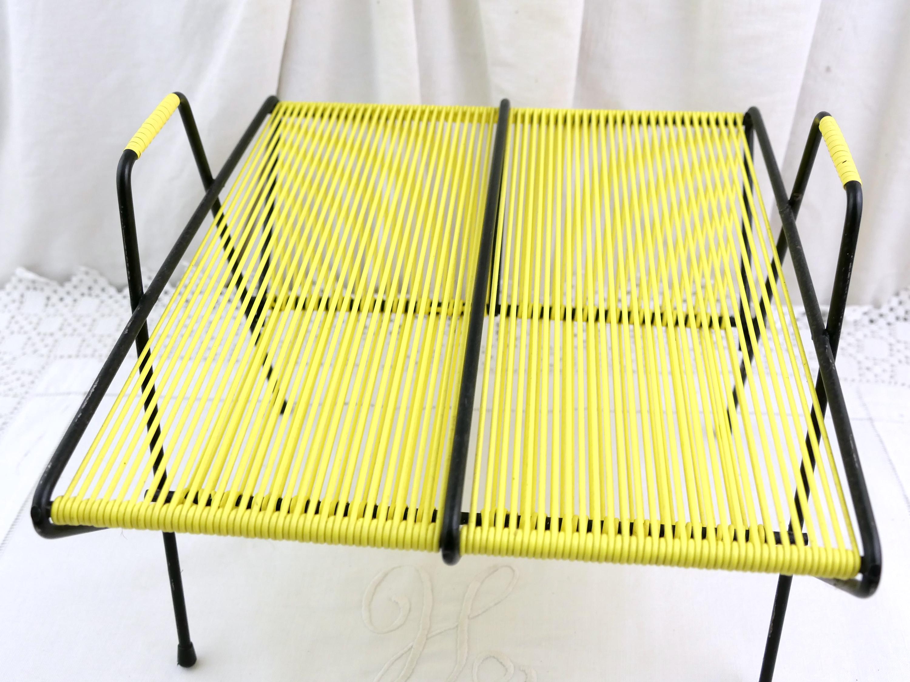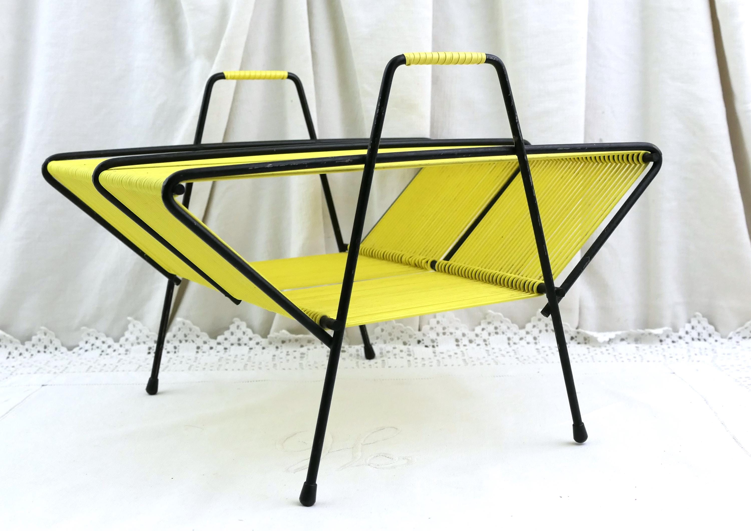 Vintage French record holder rack. Made of black lacquered metal frame with bright yellow vinyl cord. Ca 1950s- 1960s.