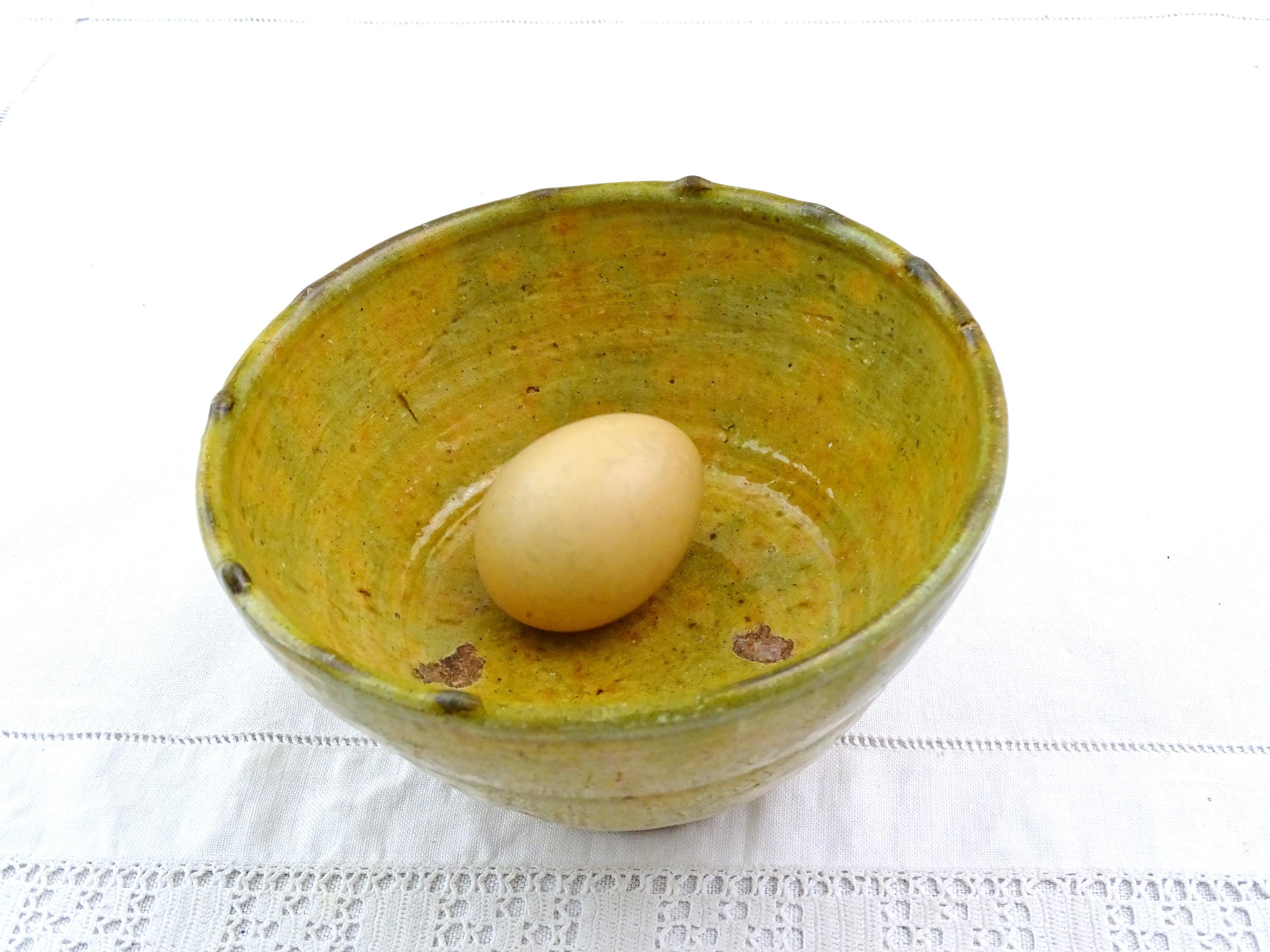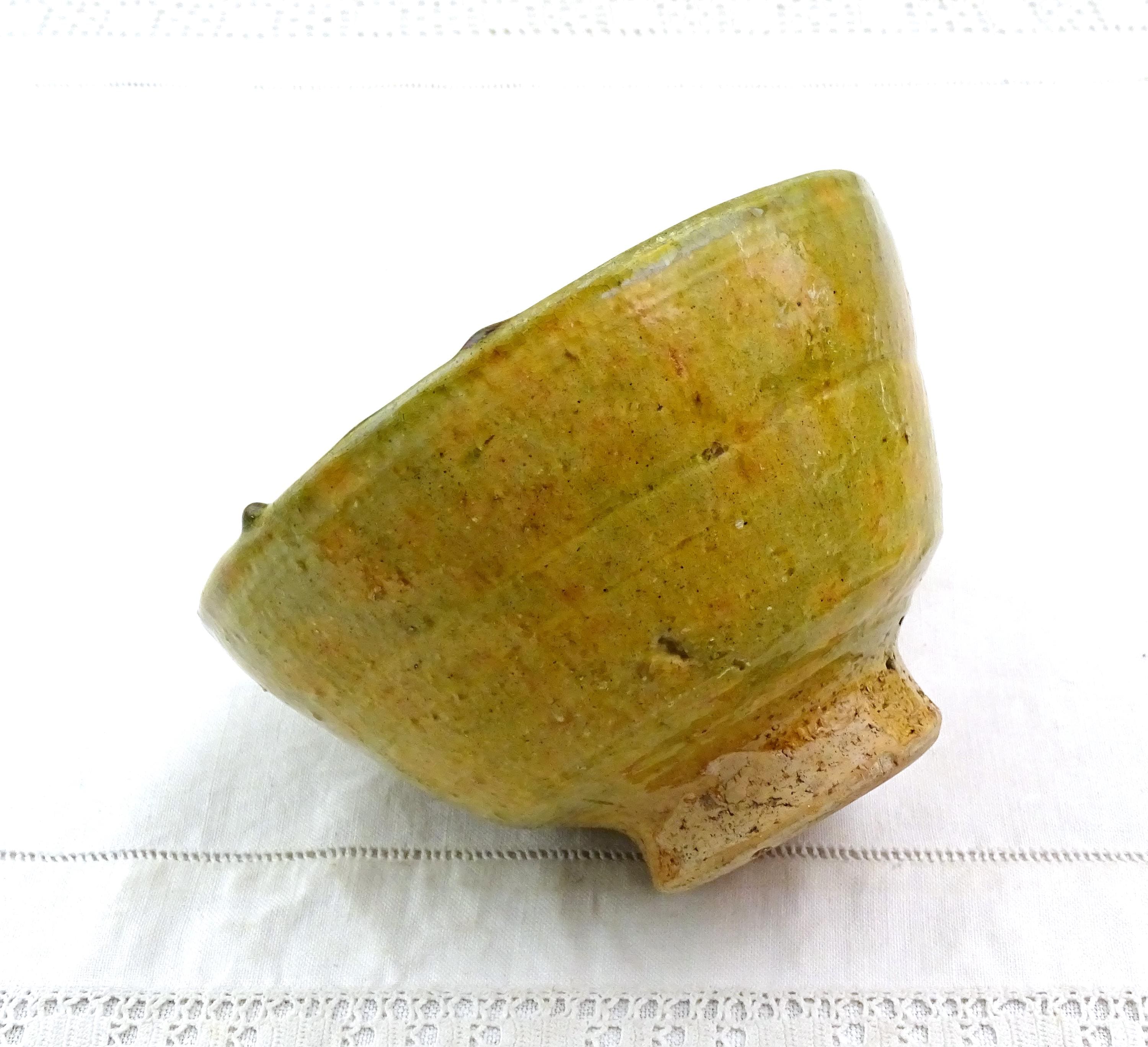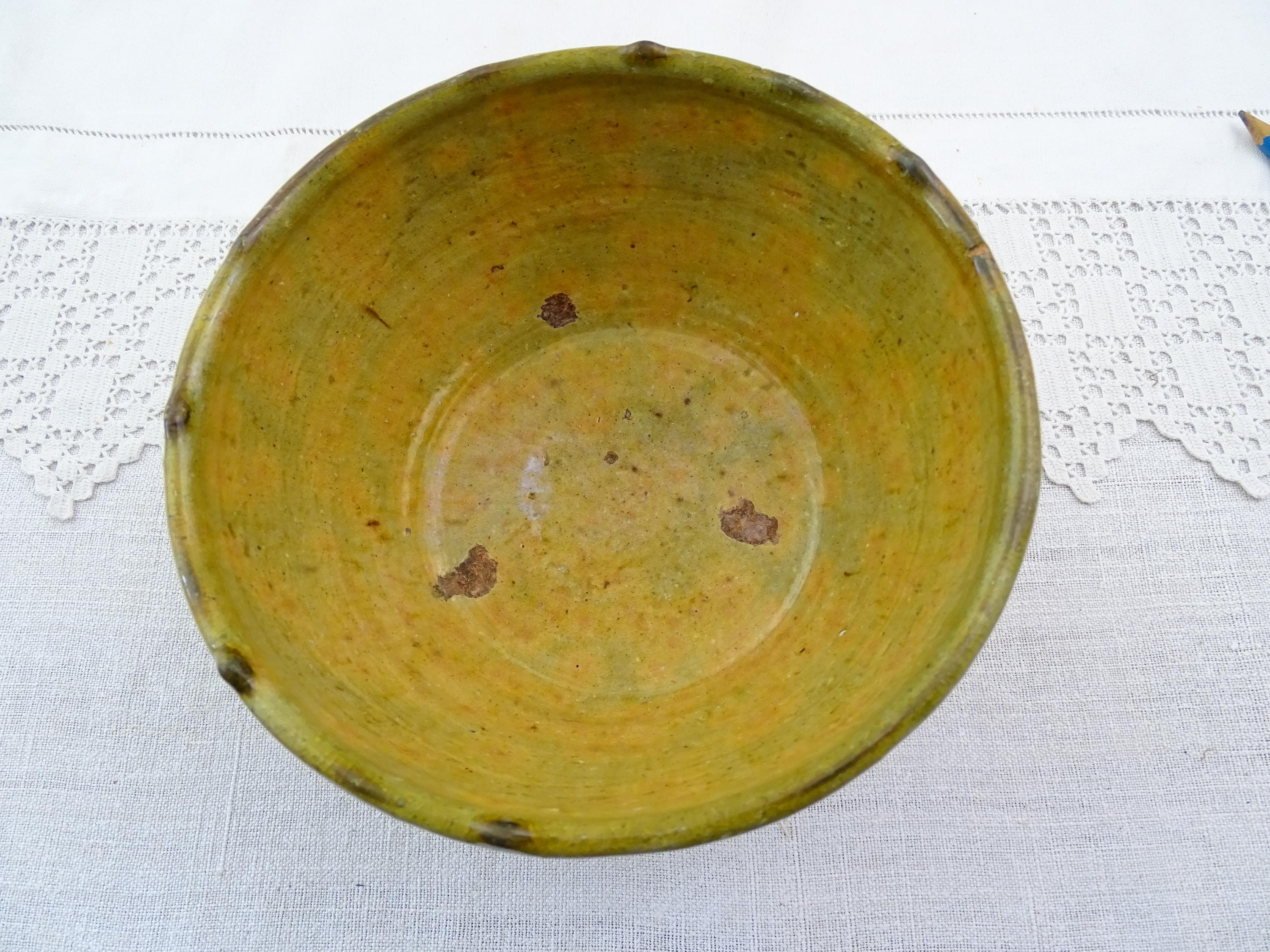 Vintage Moroccan glazed bowl from Tamegroute. Handmade of pottery with chunky gaze.