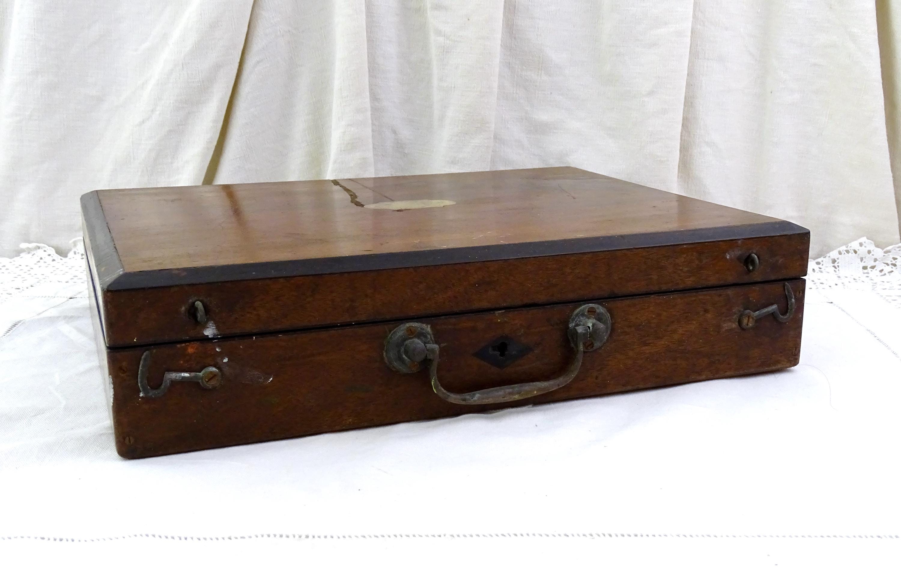 Antique French artist's paint box with working lock and key and metal lining. Made of wood with metal. Ca early 1900ss.
