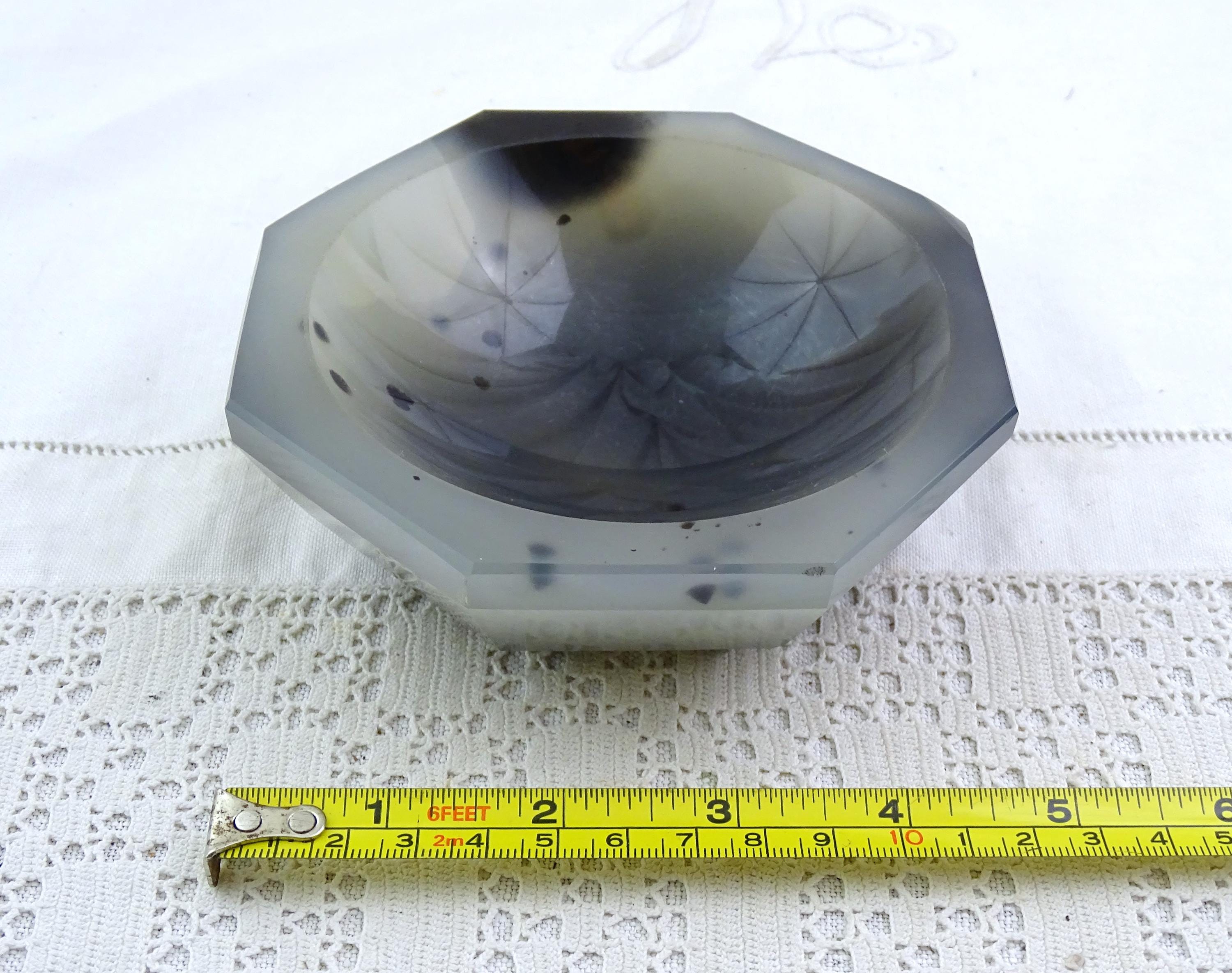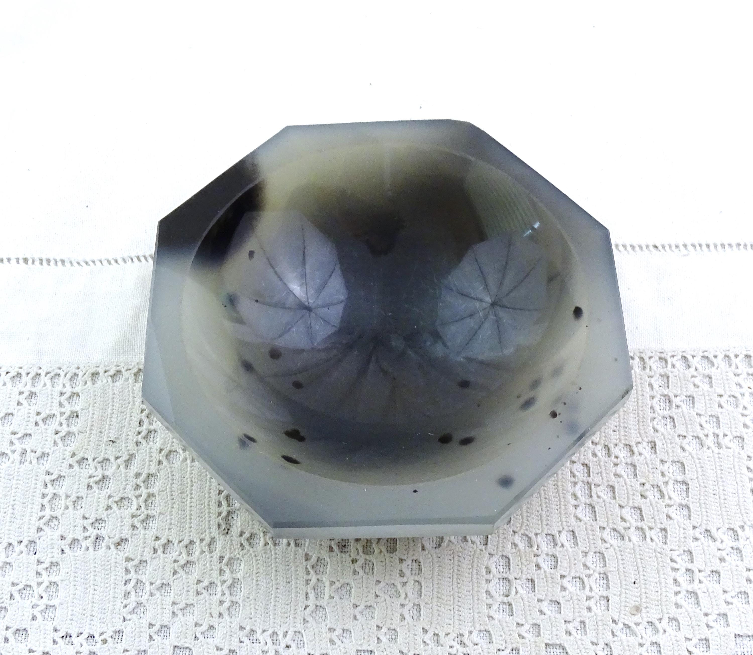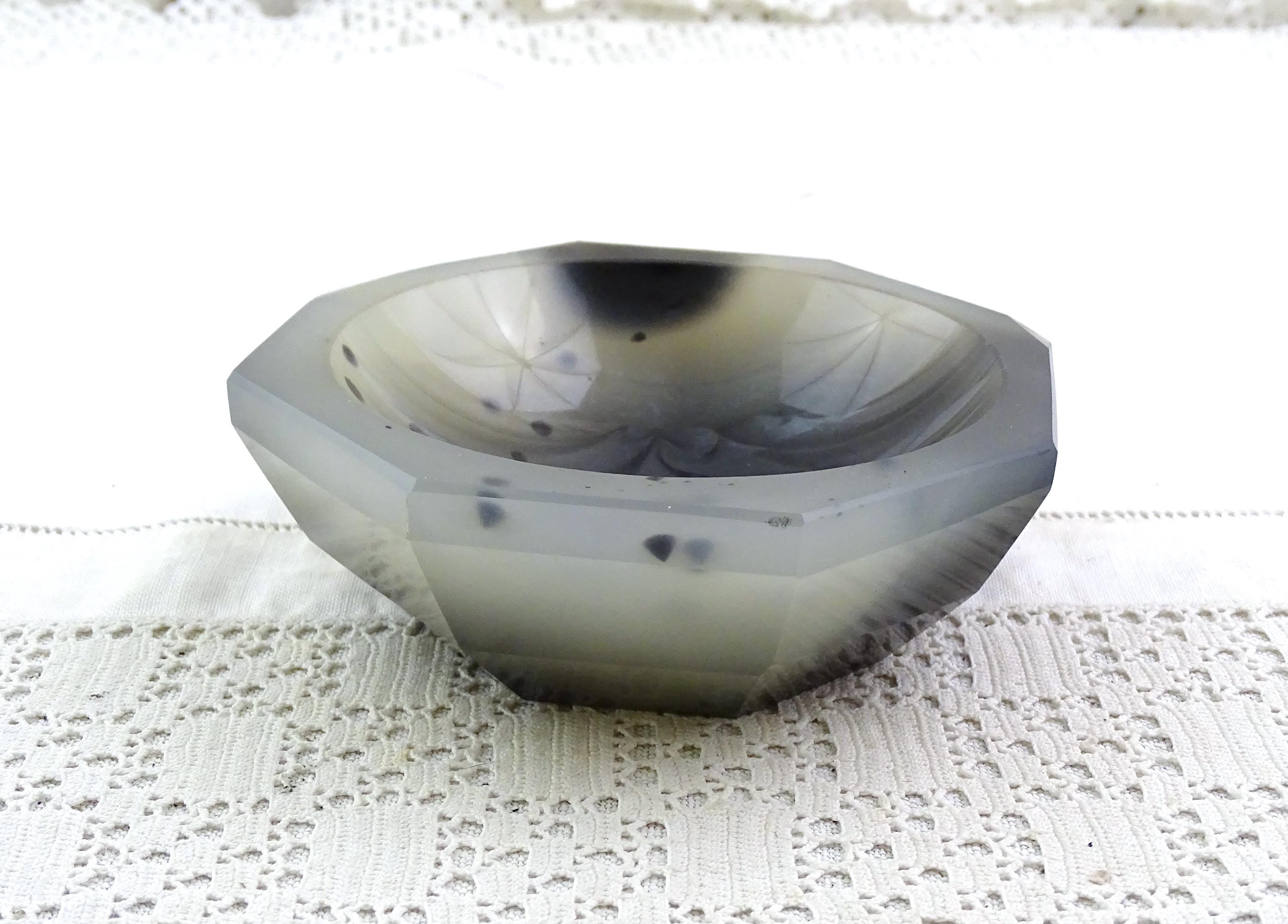 Vintage stone mortar. Made of gray and black agate stone. Missing the pestle.