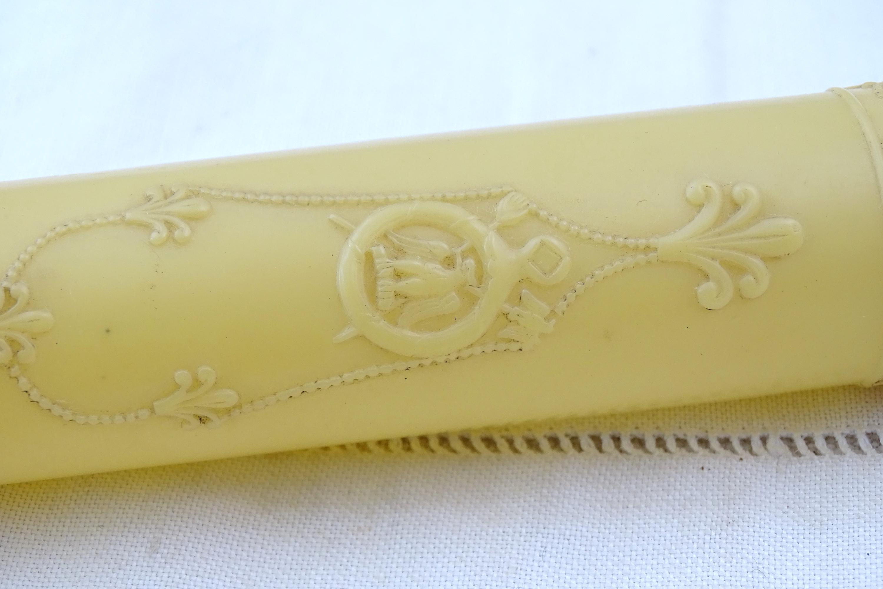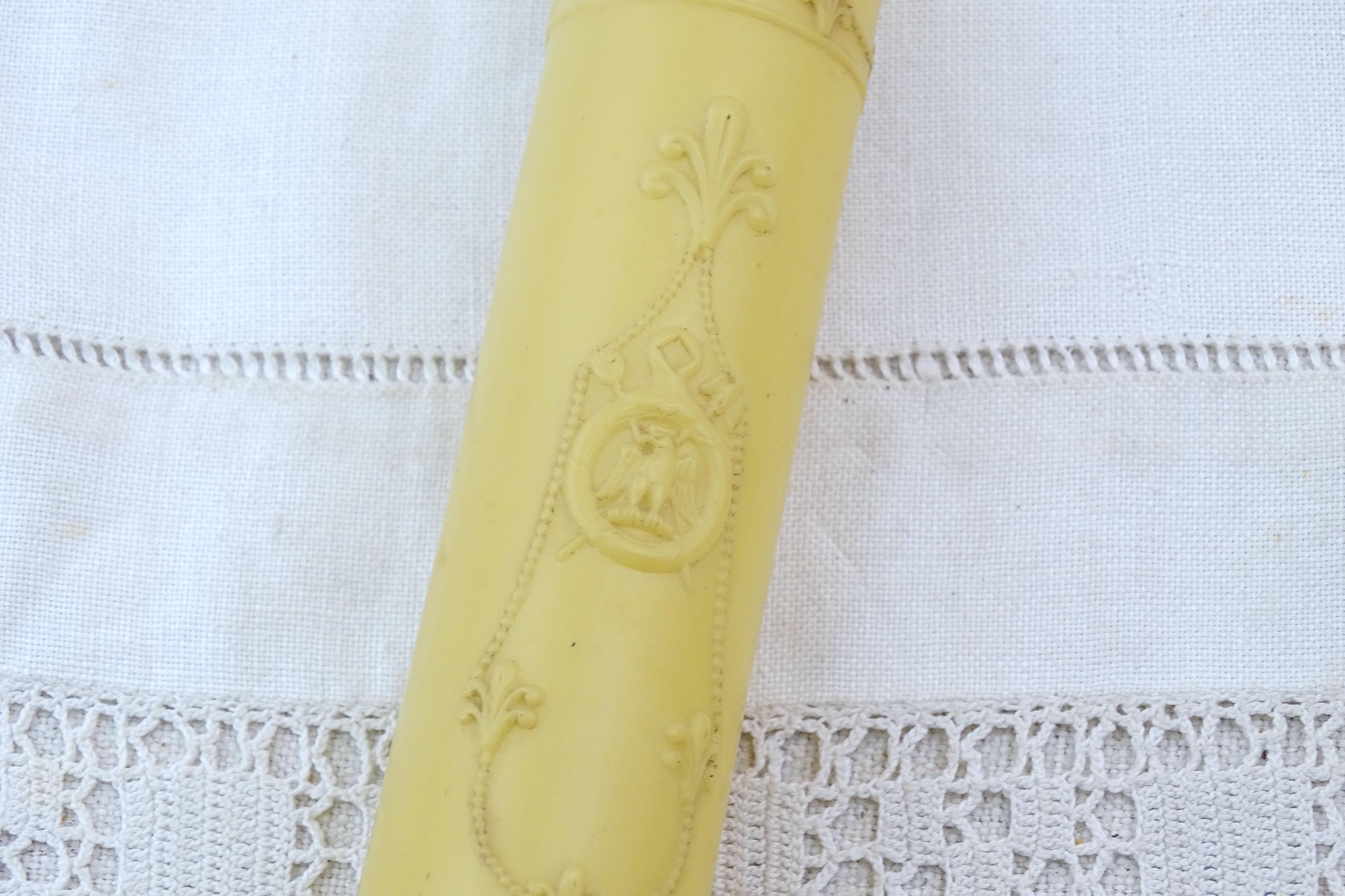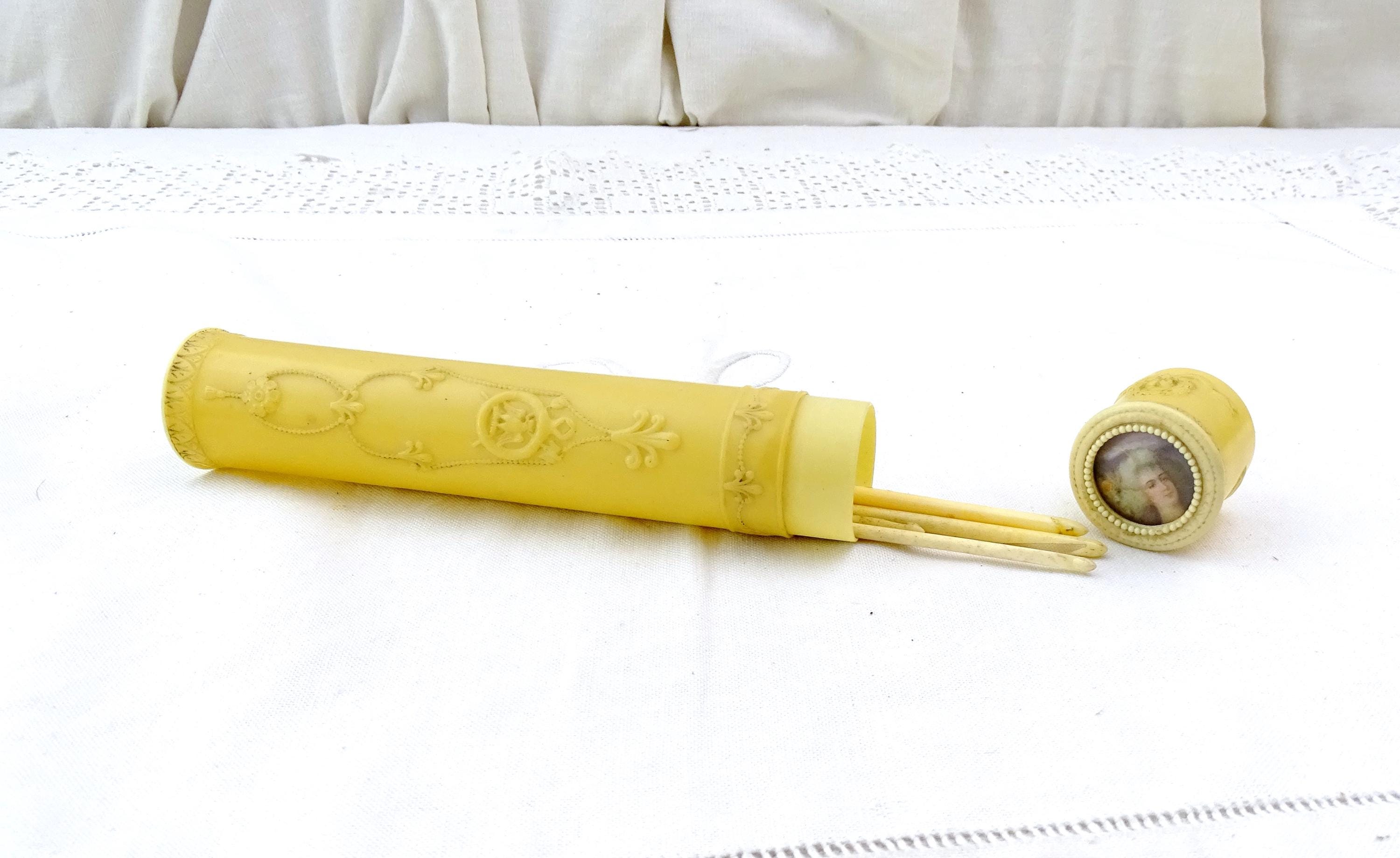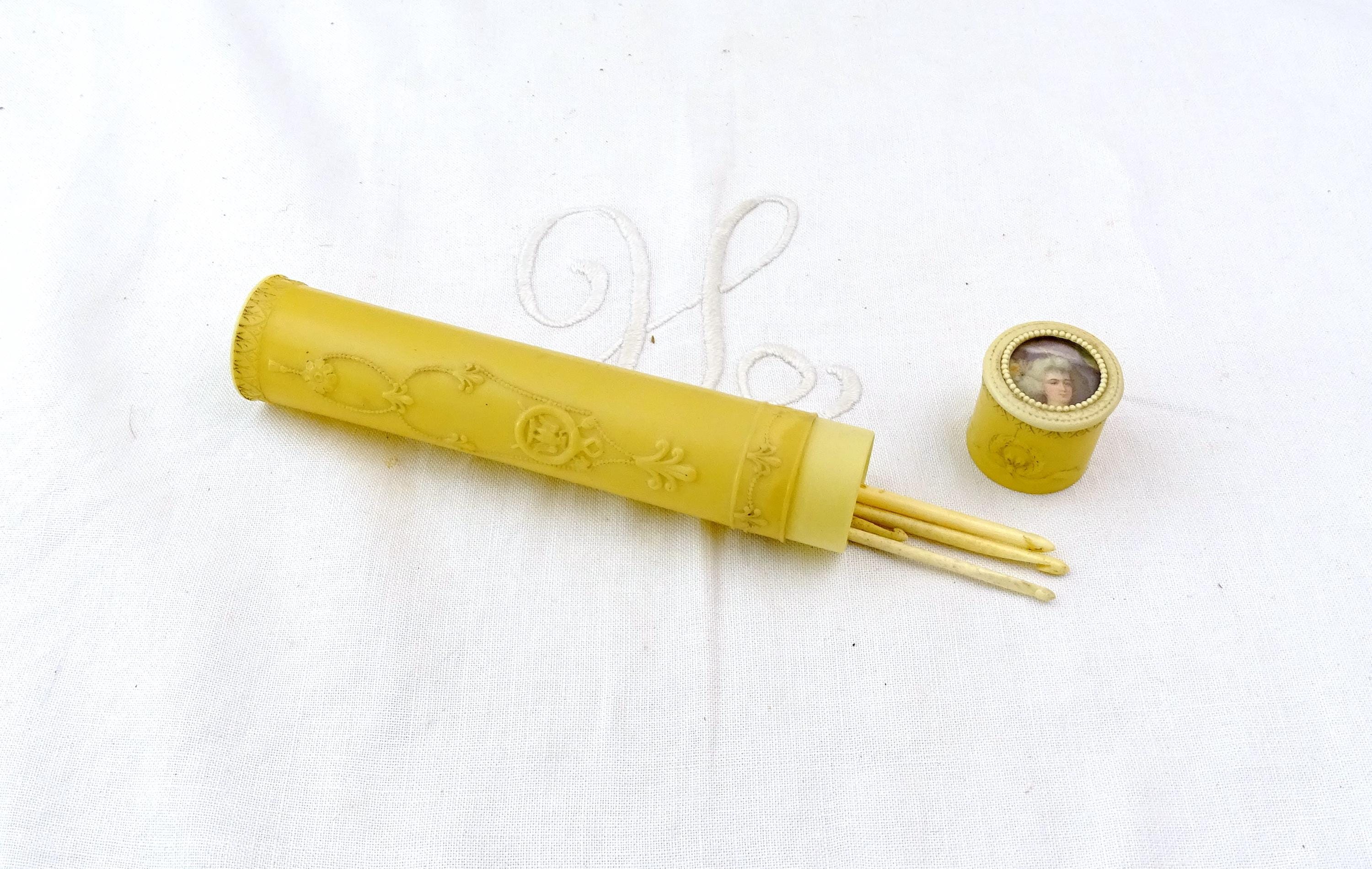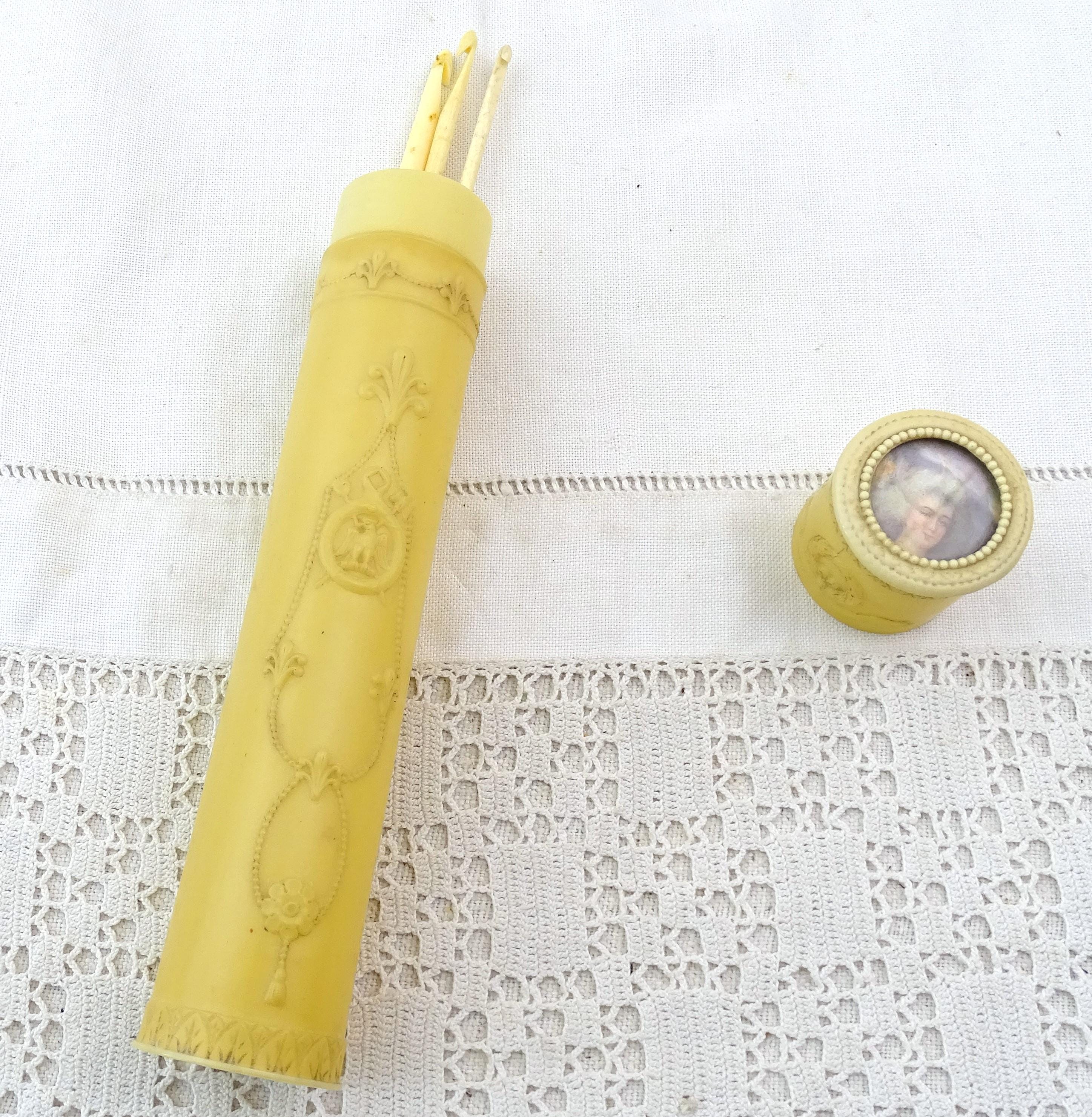 Vintage French romantic style crochet needle case. Made of cellulose. Ca early to mid 1900s. Needles not included.