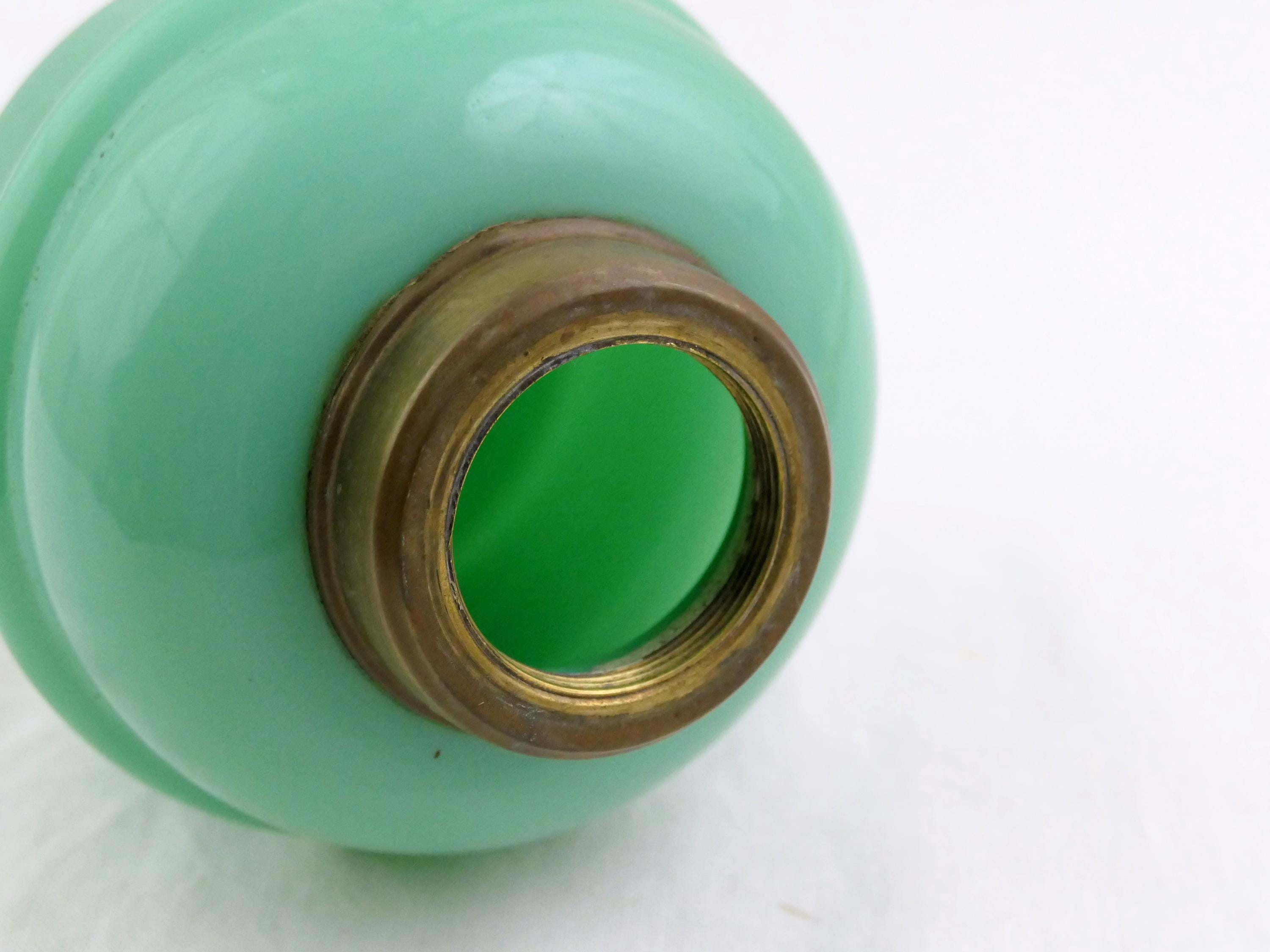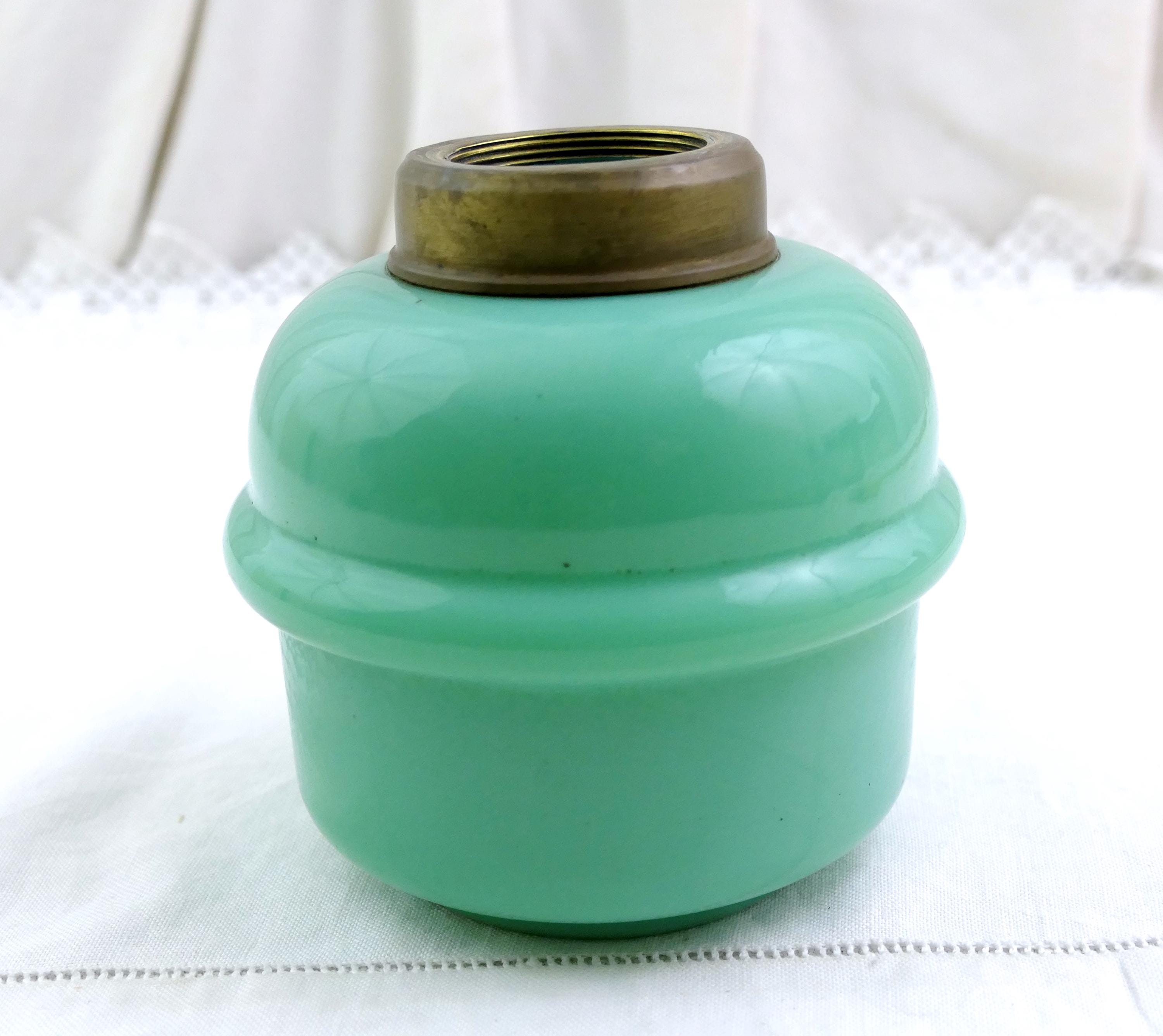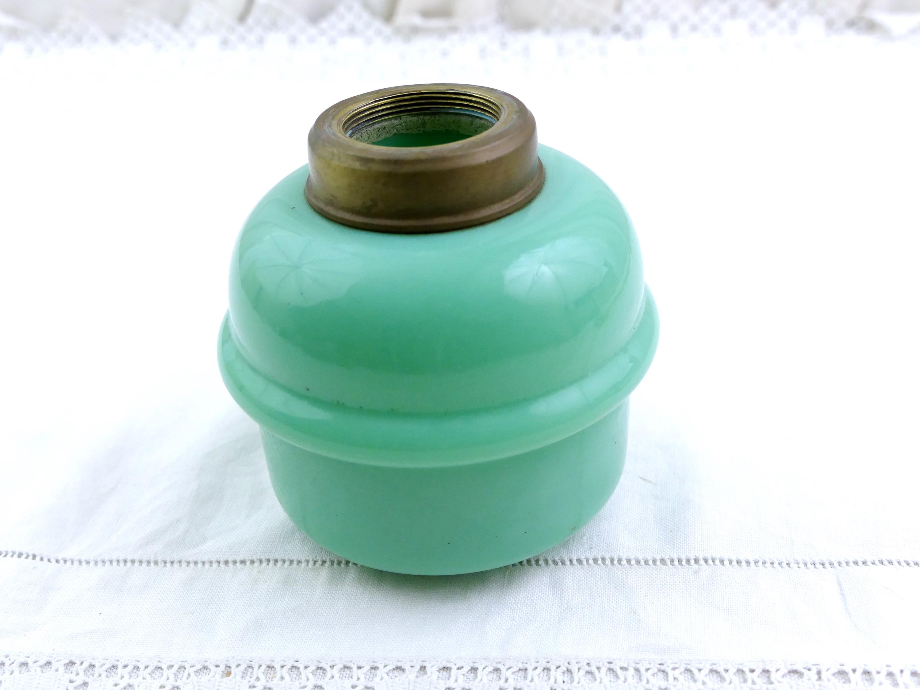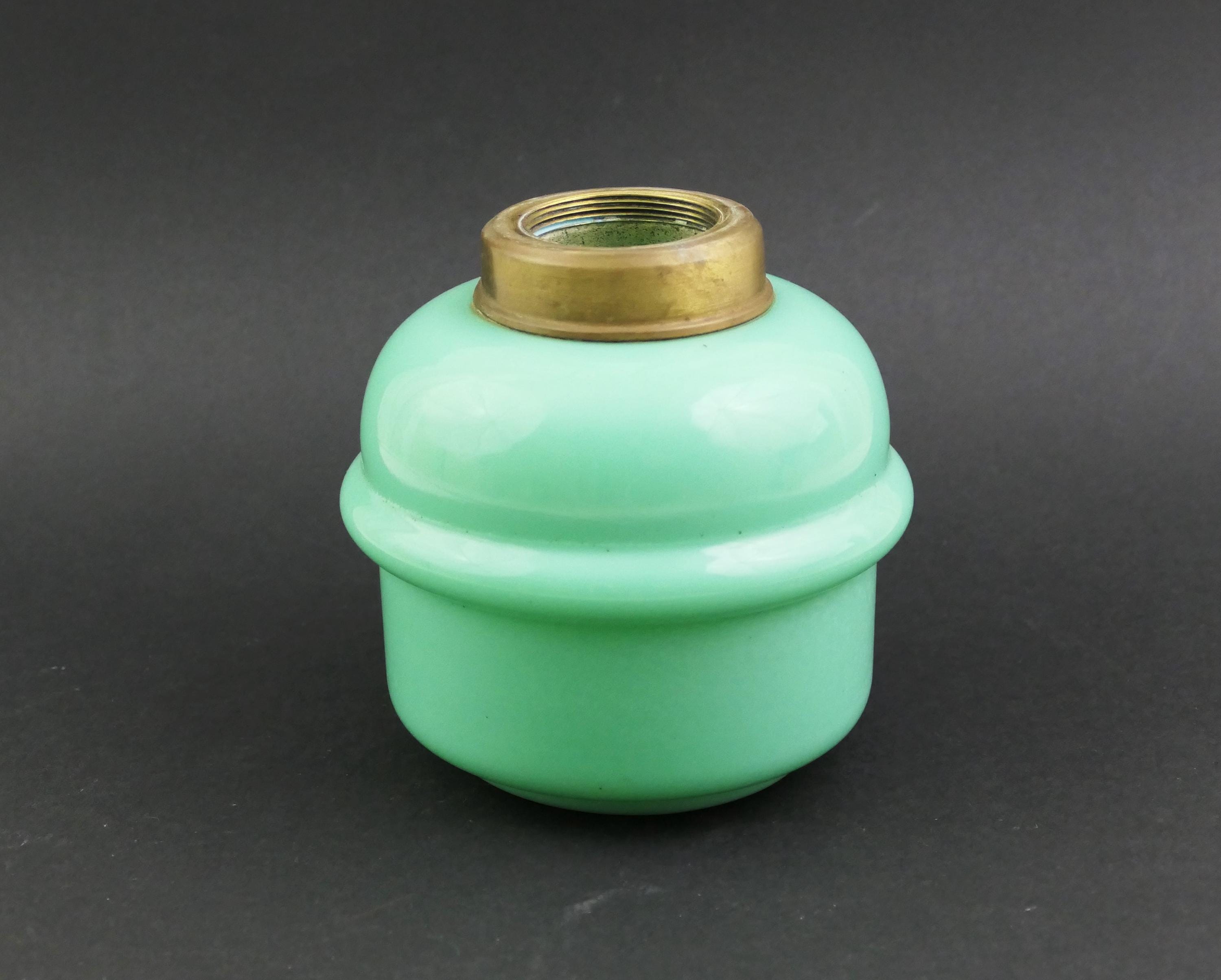 Vintage French mint green Jadeite style Aladdin oil lamp base. Could be upcycled into a vase. Made of mint green milk glass opal glass. Ca early 1900s.