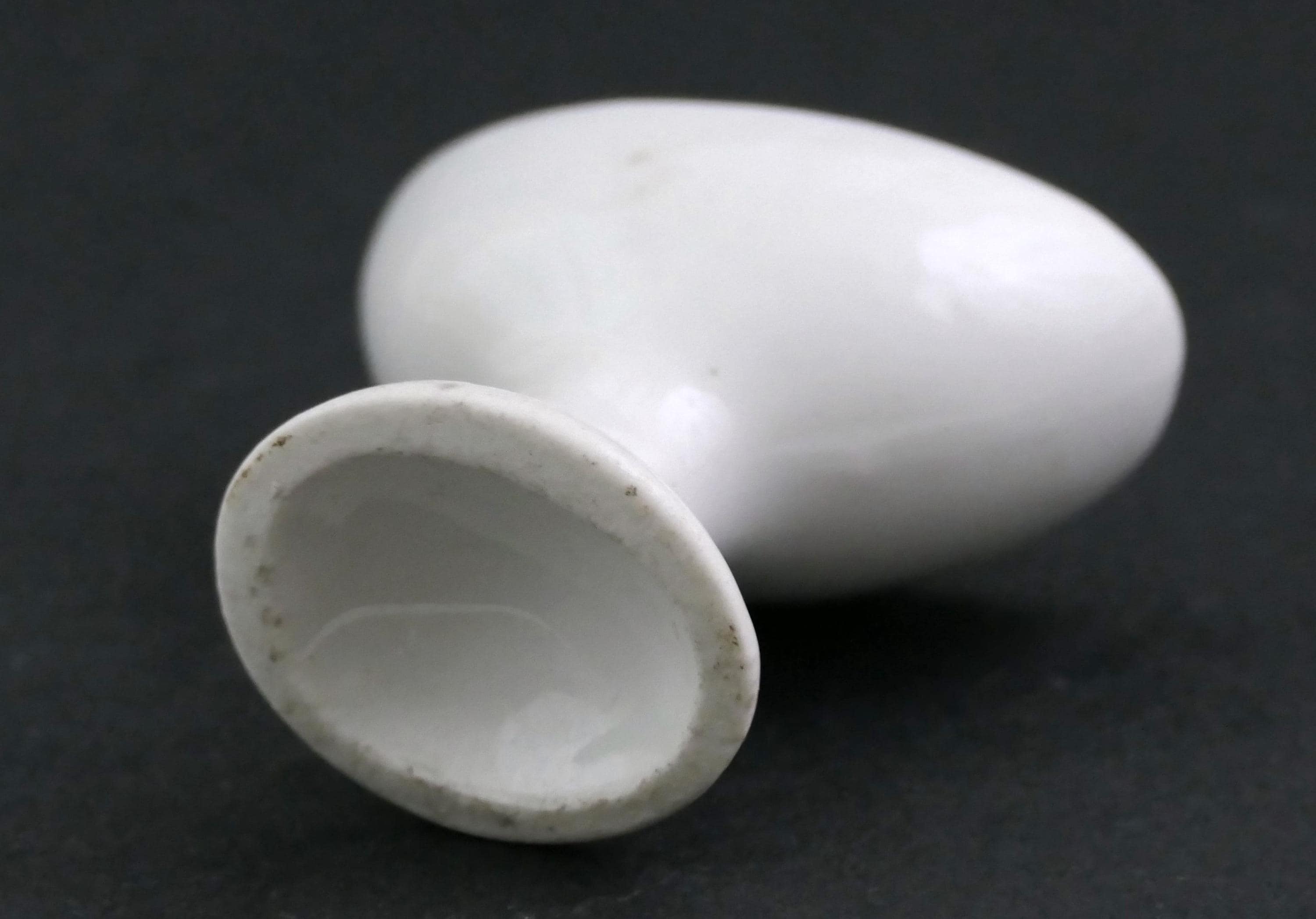 Antique French white china footed eye bath. Made of white glazed porcelain china. Ca 1800s.