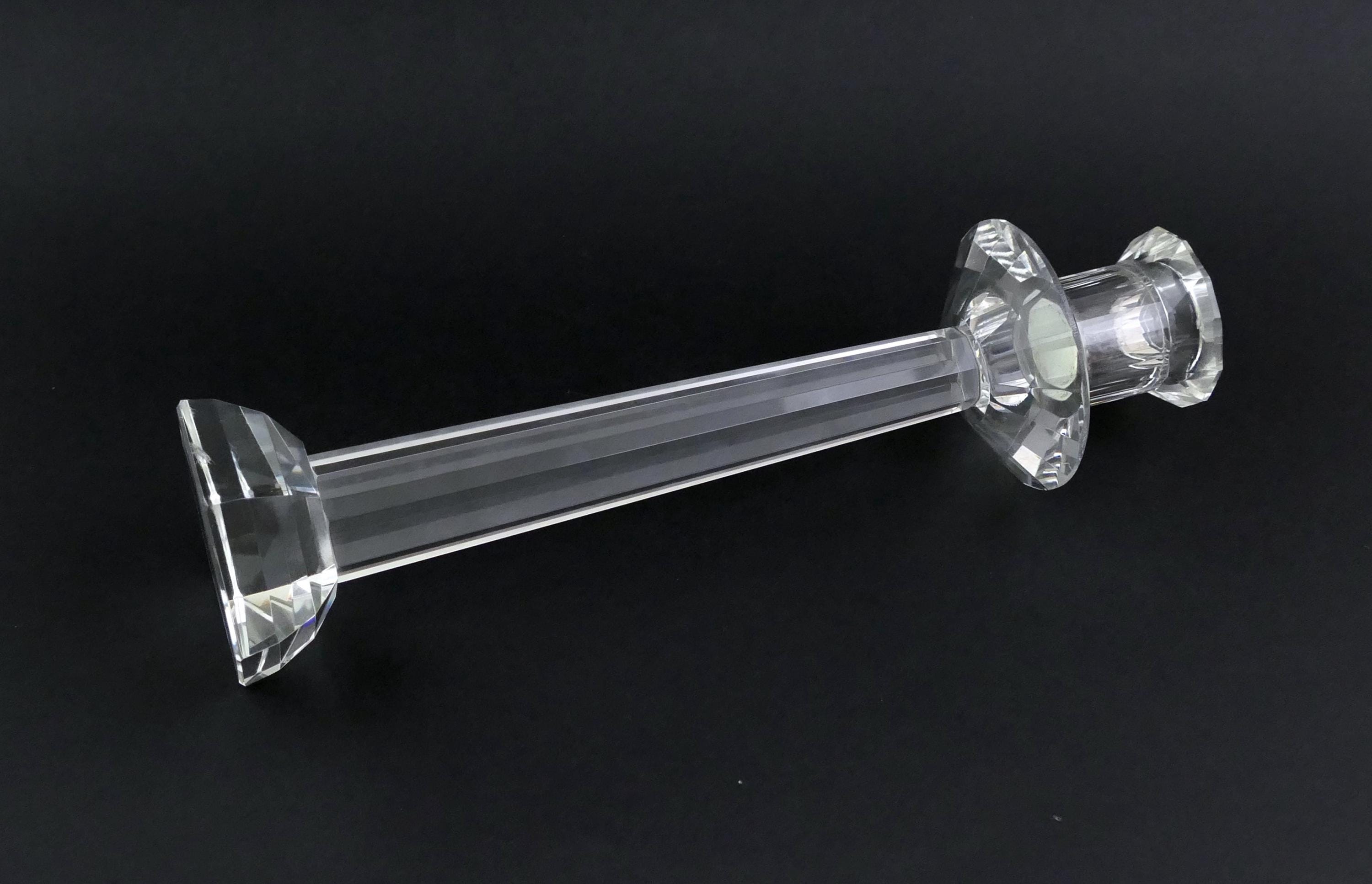 Vintage faceted crystal candle holder. Made of clear crystal glass. Ca 1980s.