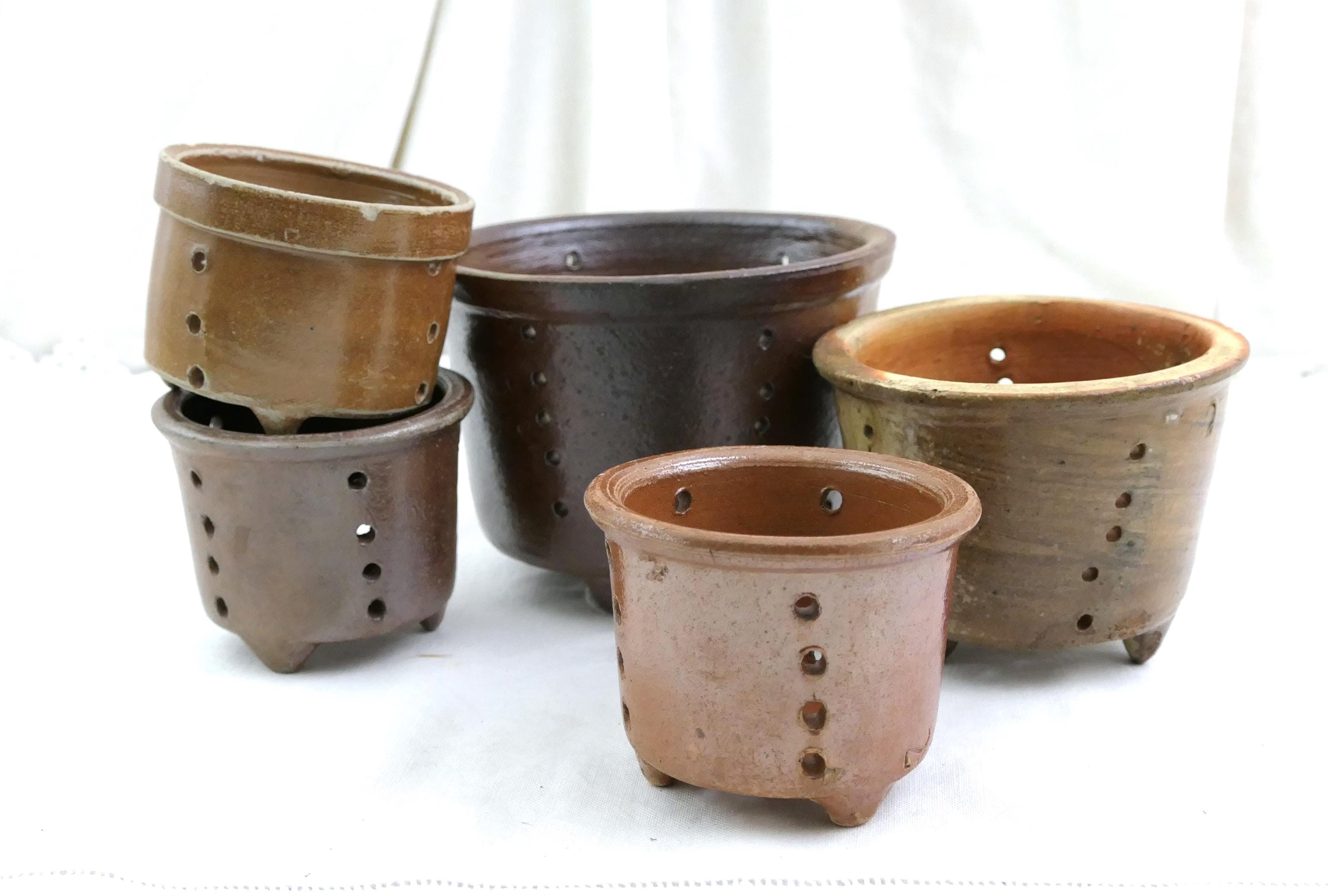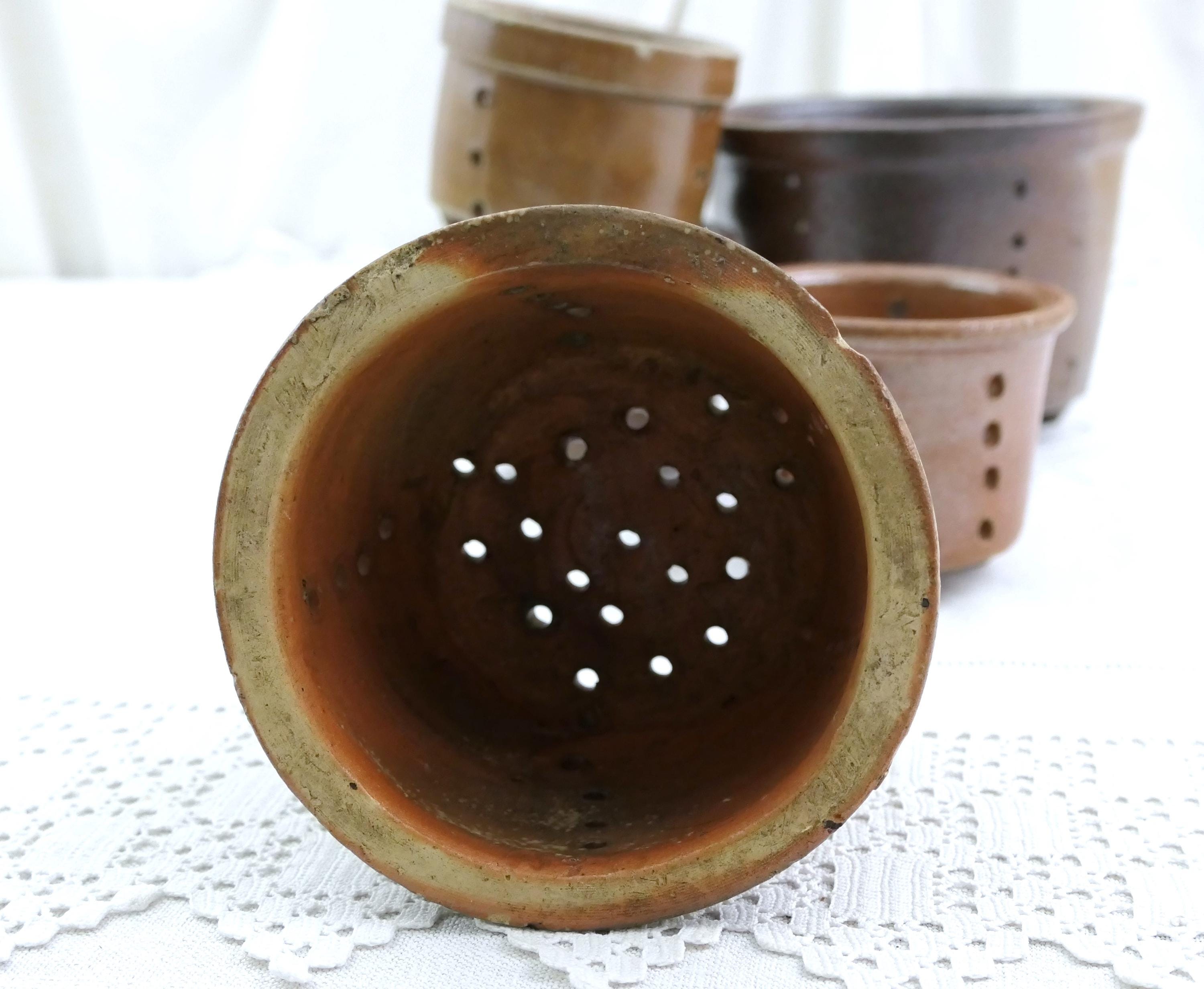 1 antique French diary whey strainer, faisselle cheese mold. Made of salt glazed earthenware pottery. Circa late 1800s.