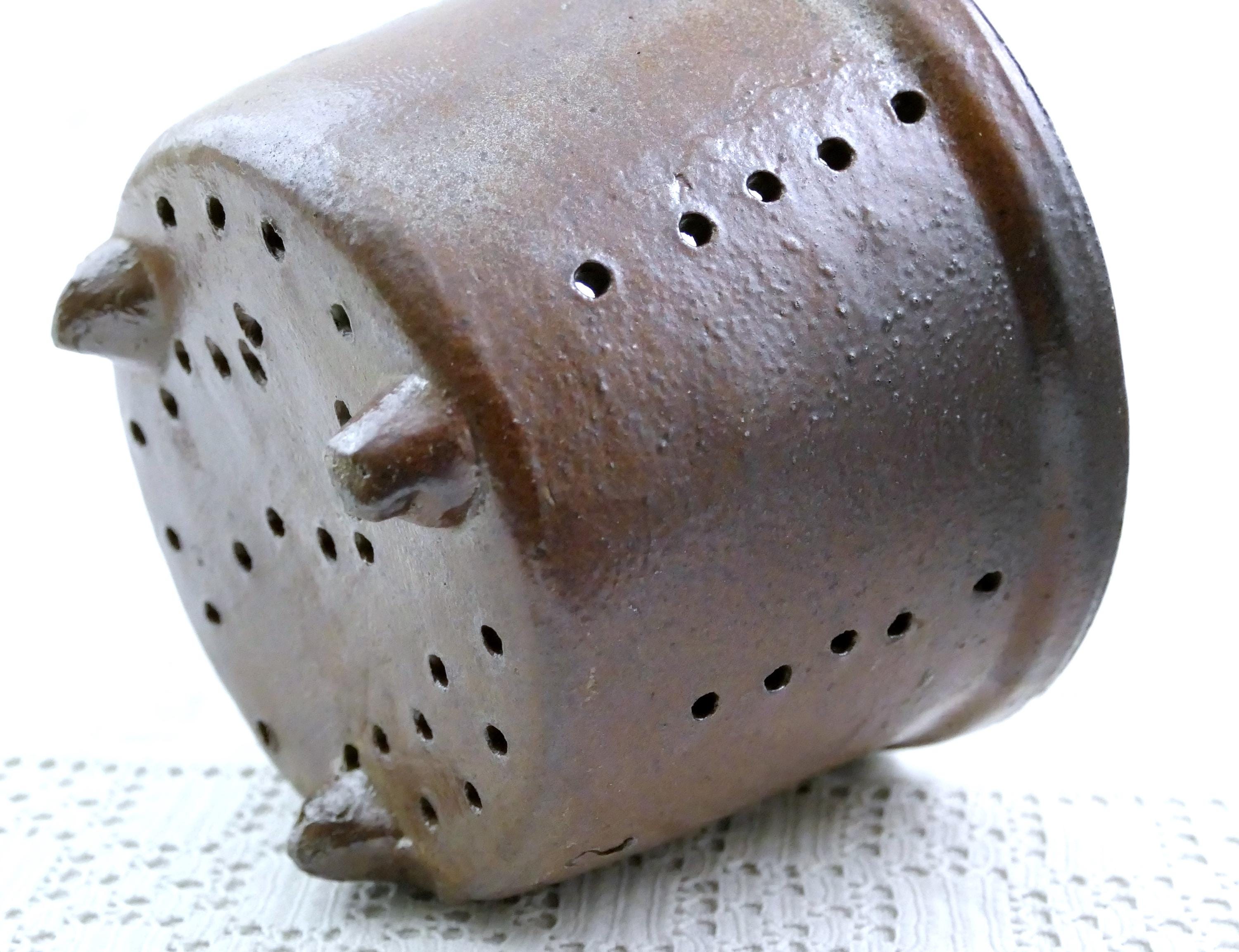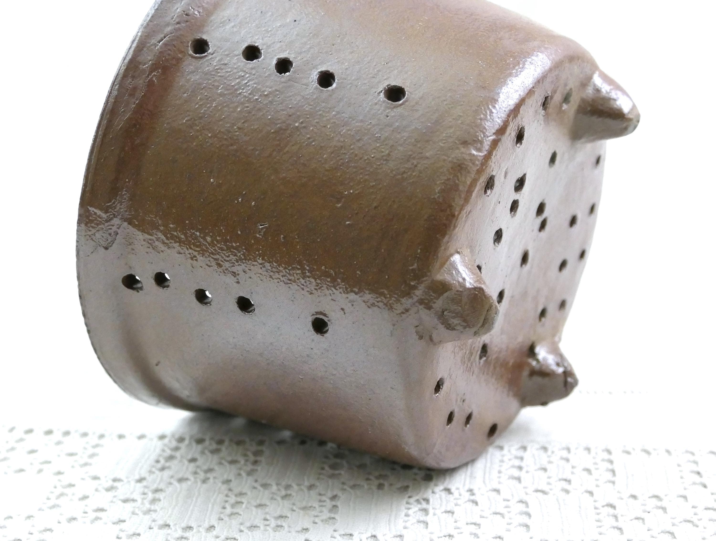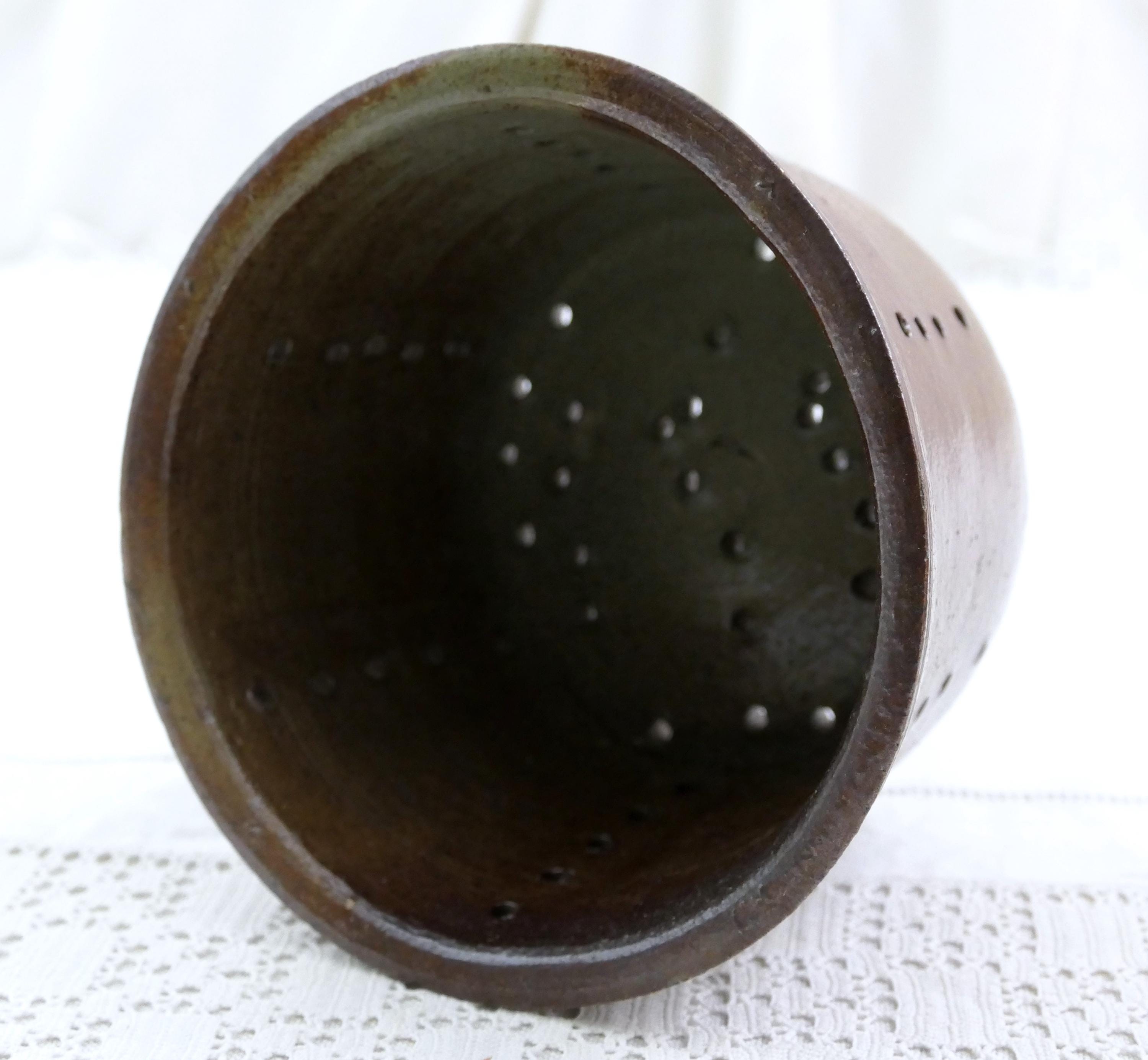 1 large antique French diary whey strainer, faisselle cheese mold. Made of salt glazed earthenware pottery. Circa late 1800s.