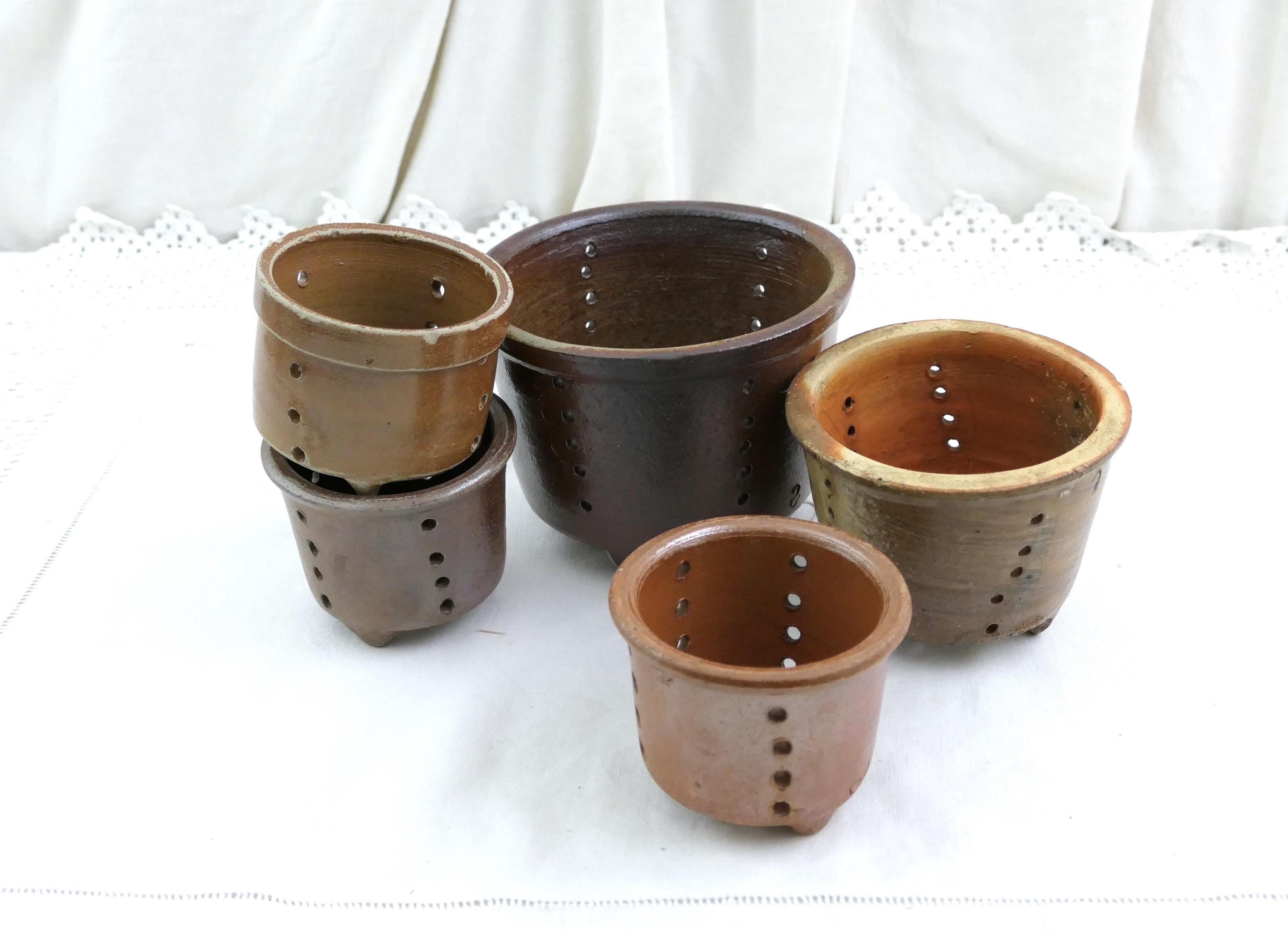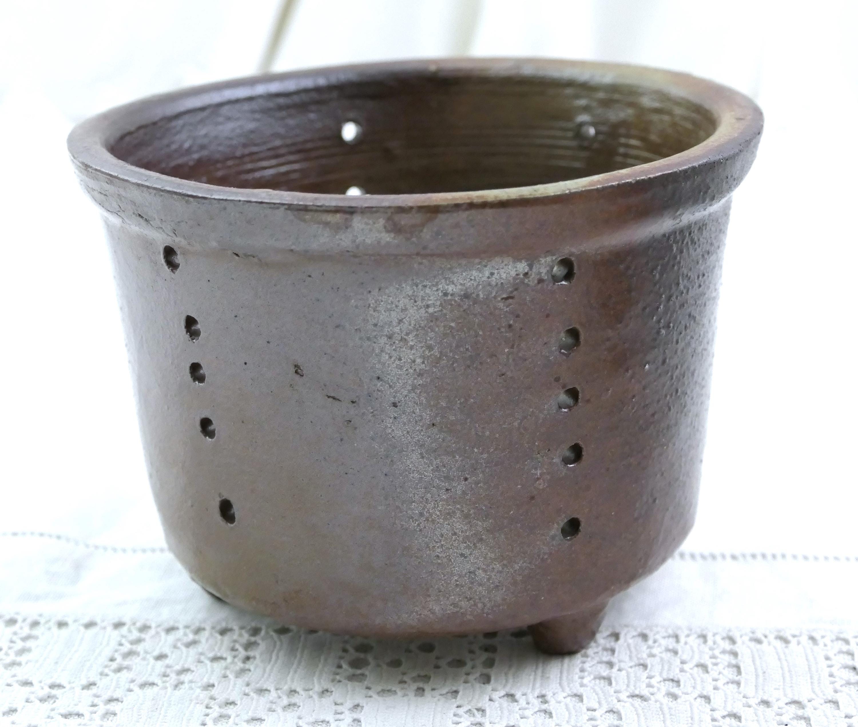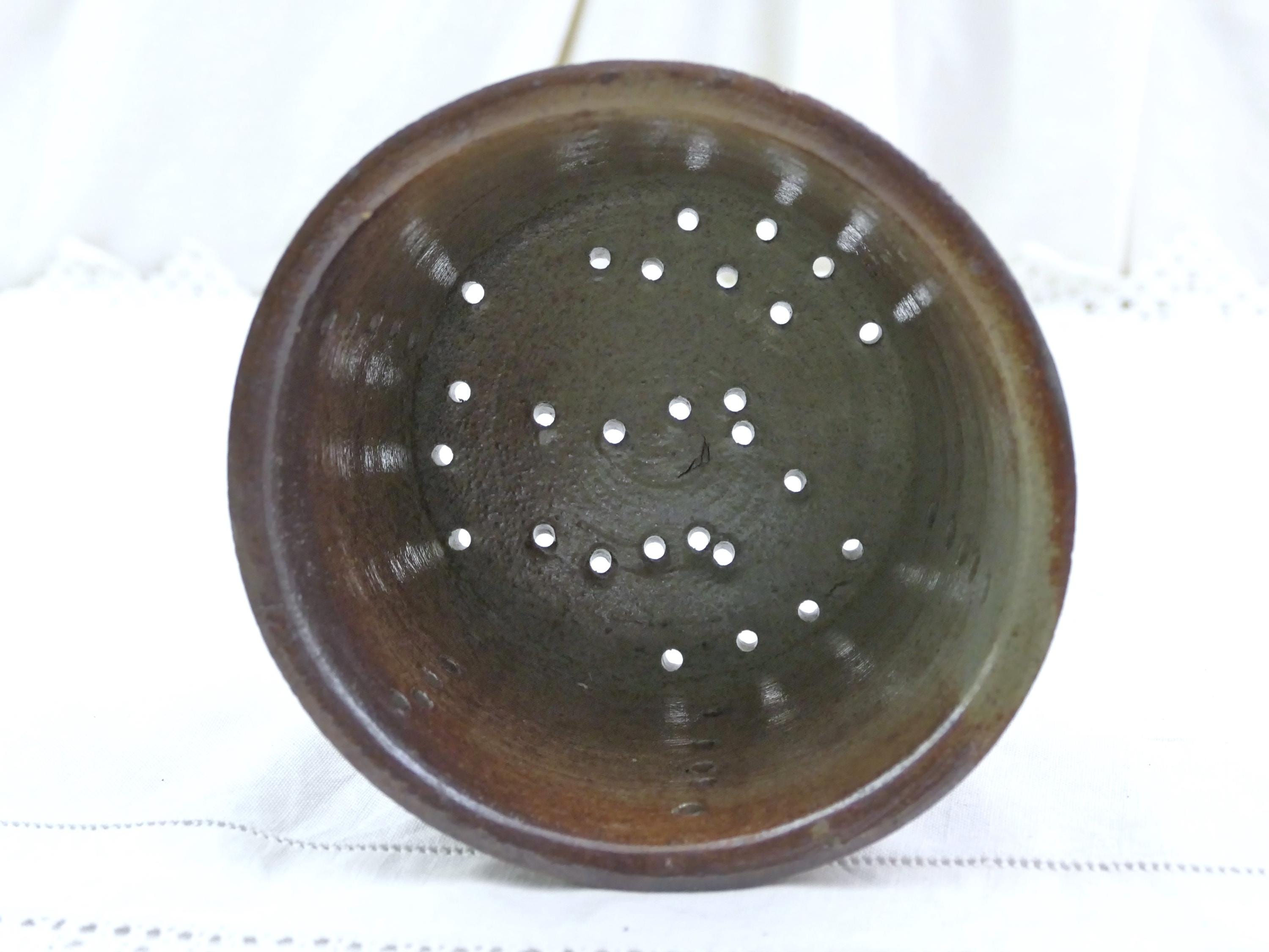 1 large antique French diary whey strainer, faisselle cheese mold. Made of salt glazed earthenware pottery. Circa late 1800s.