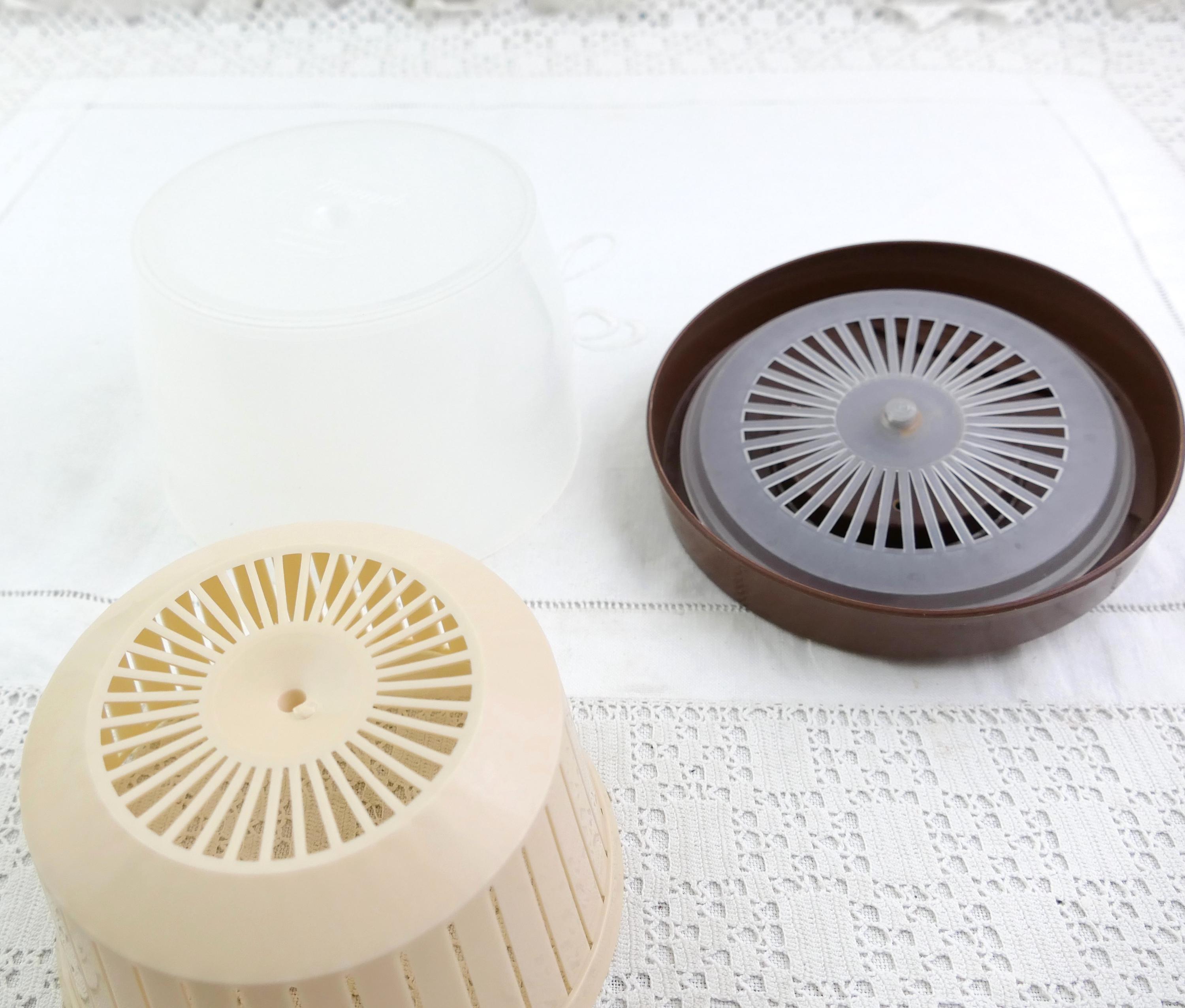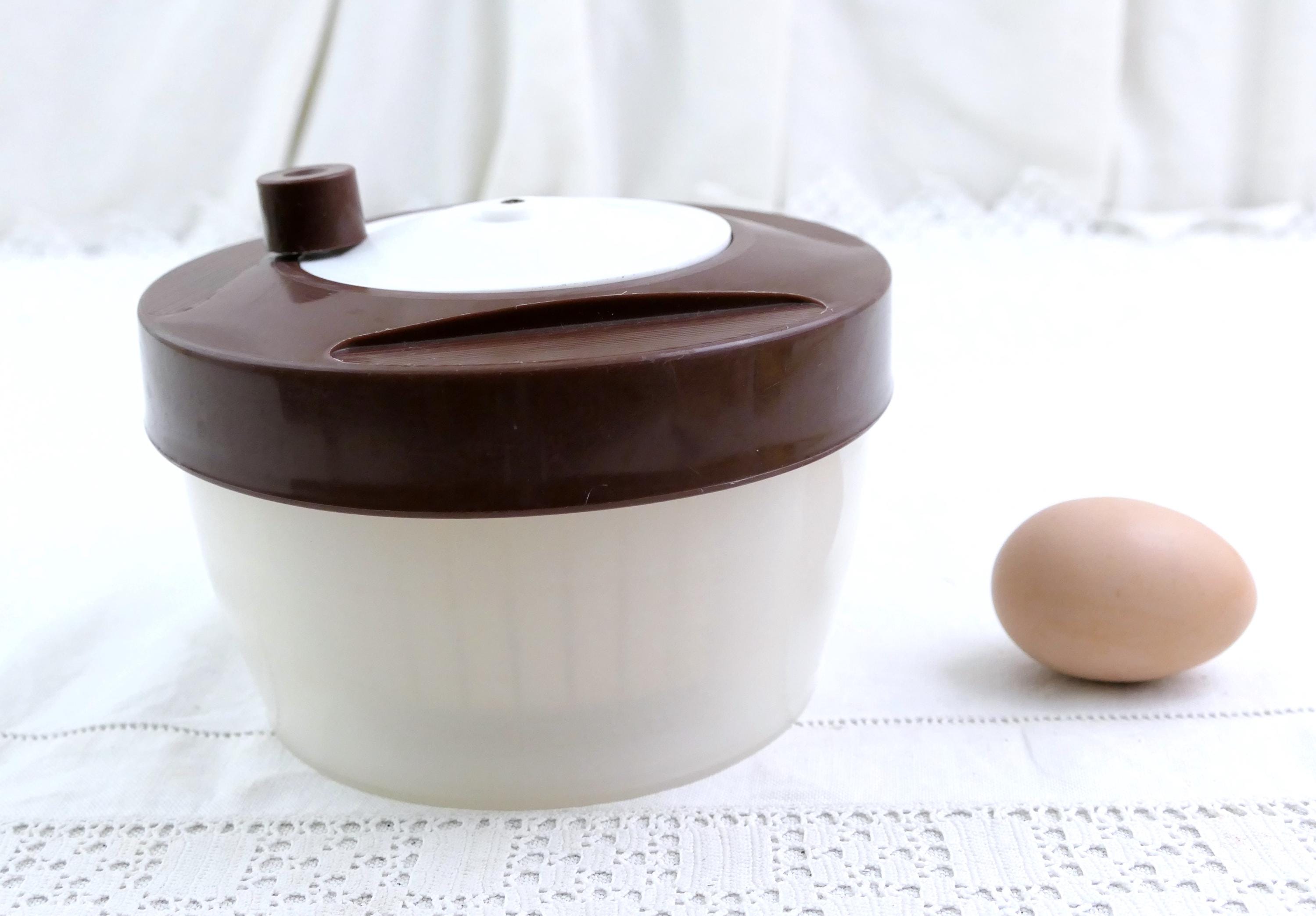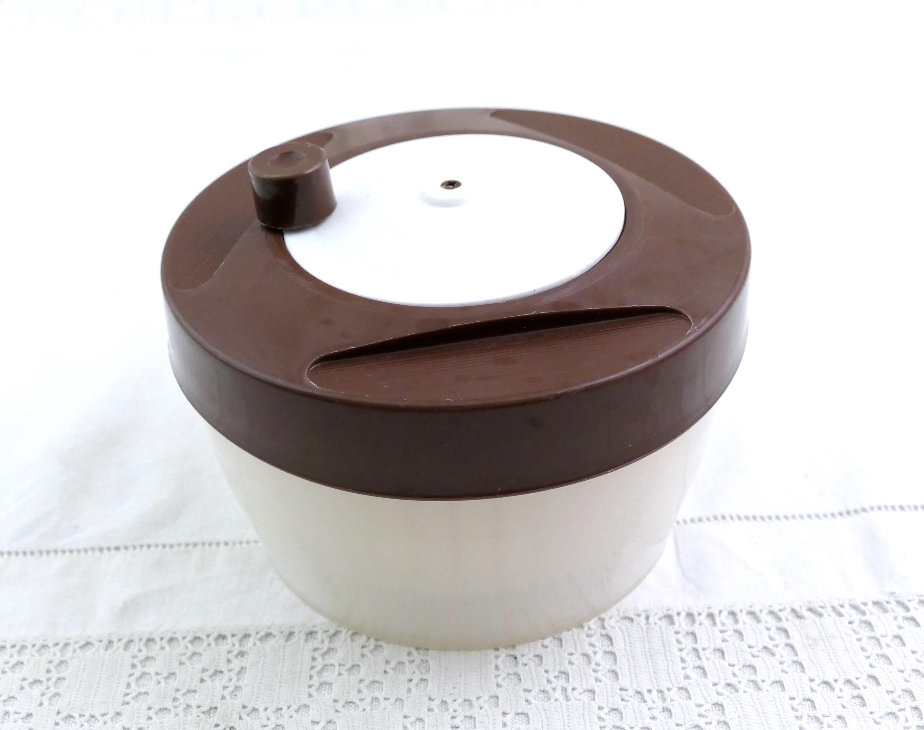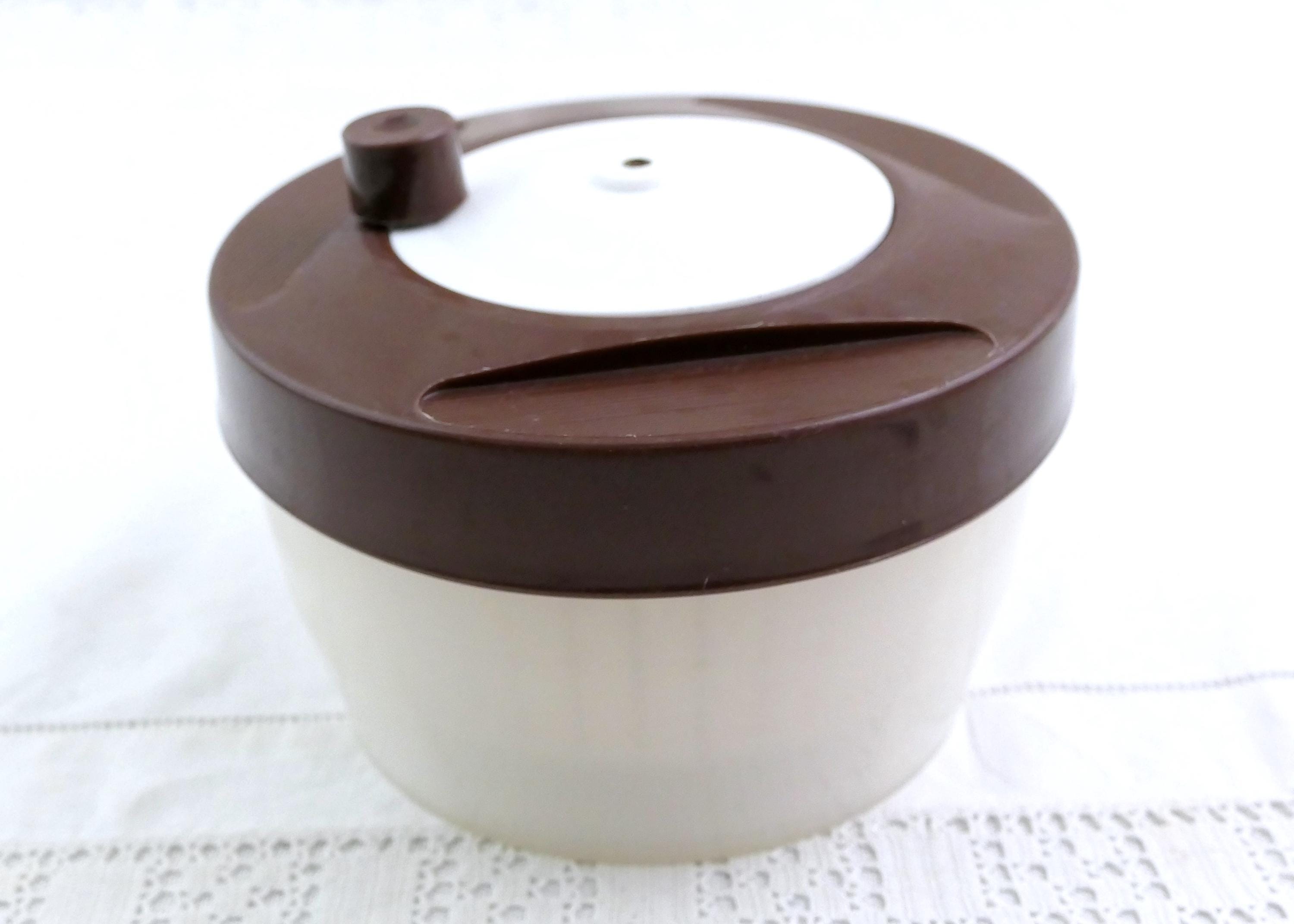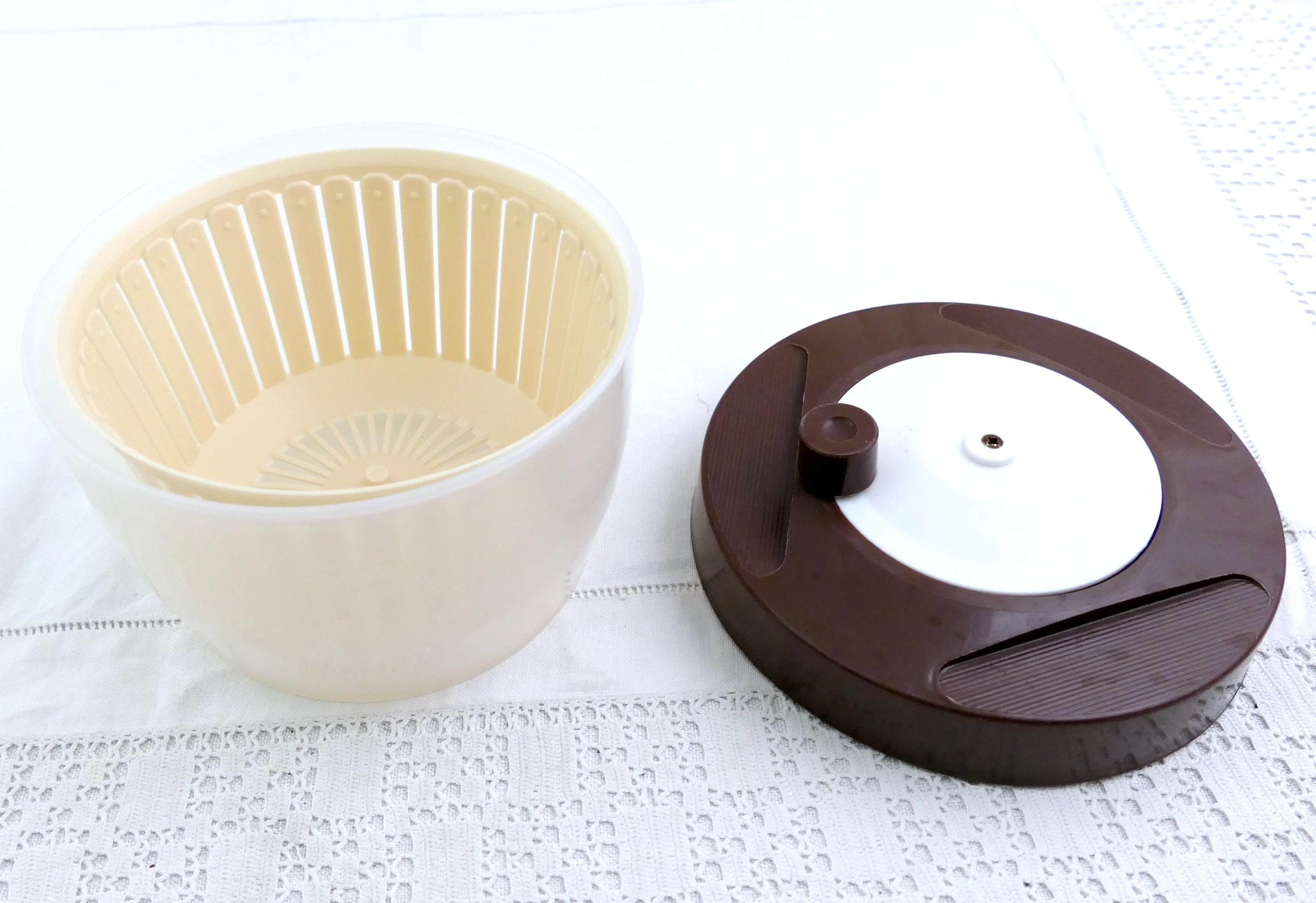 Small one person vintage brown and clear salad spinner. Made by Triumph of plastic. Ca 1970s.
