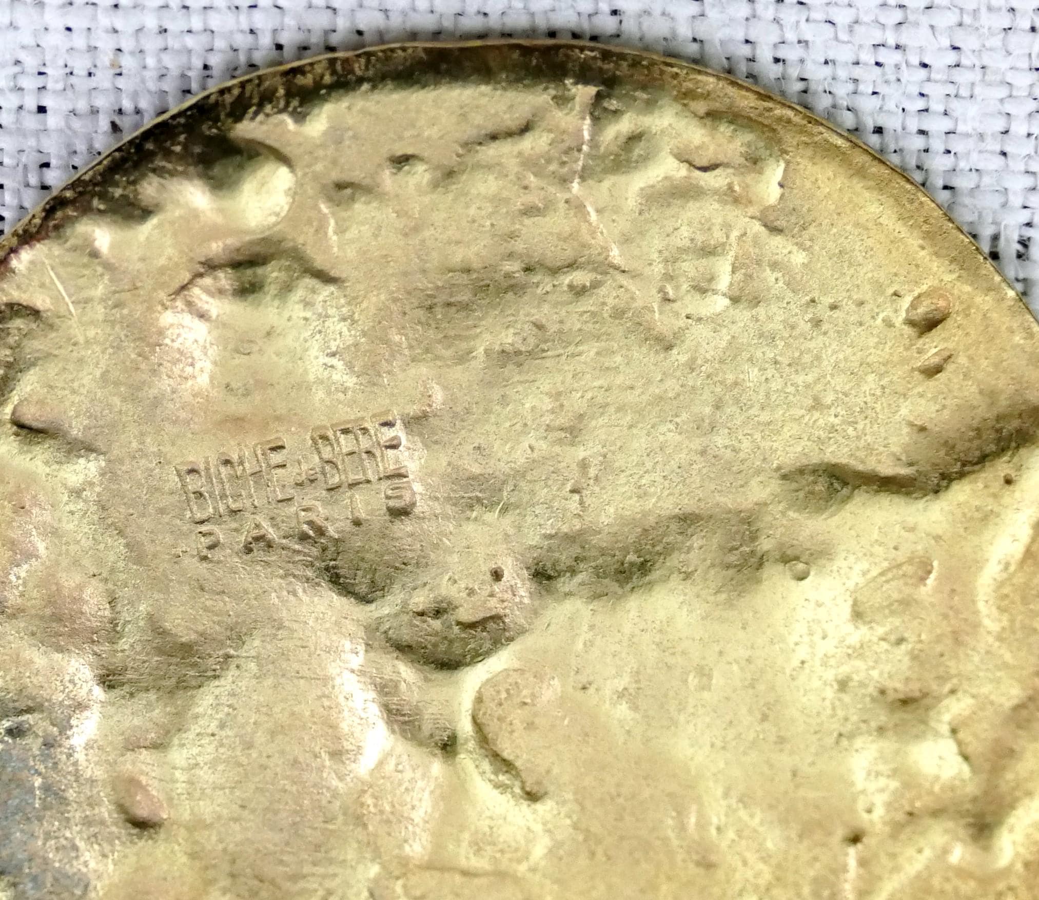 Vintage French Biche de Bere from Paris key fob. Made of gold tone metal. Ca late 1900s early 2000s.