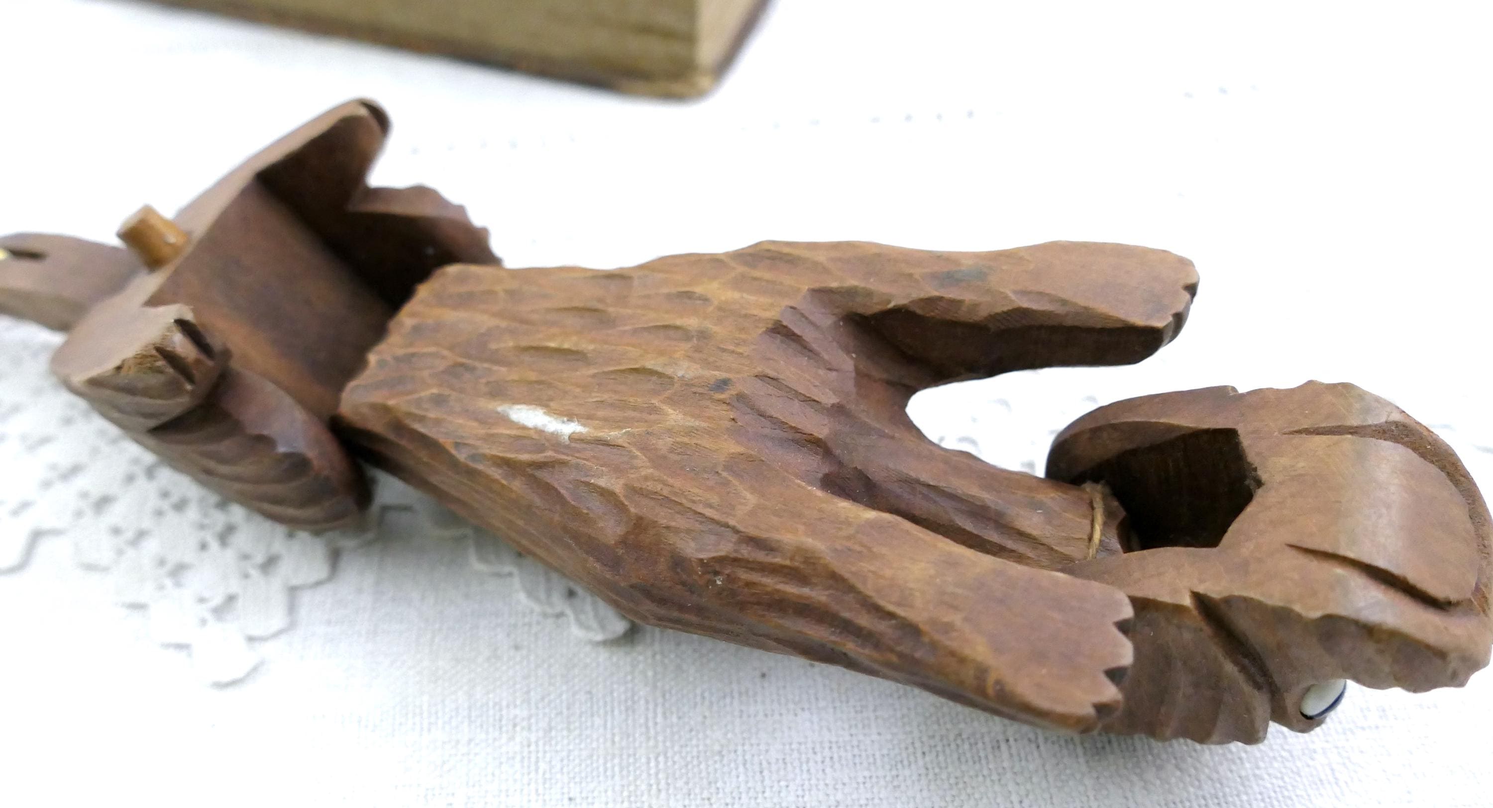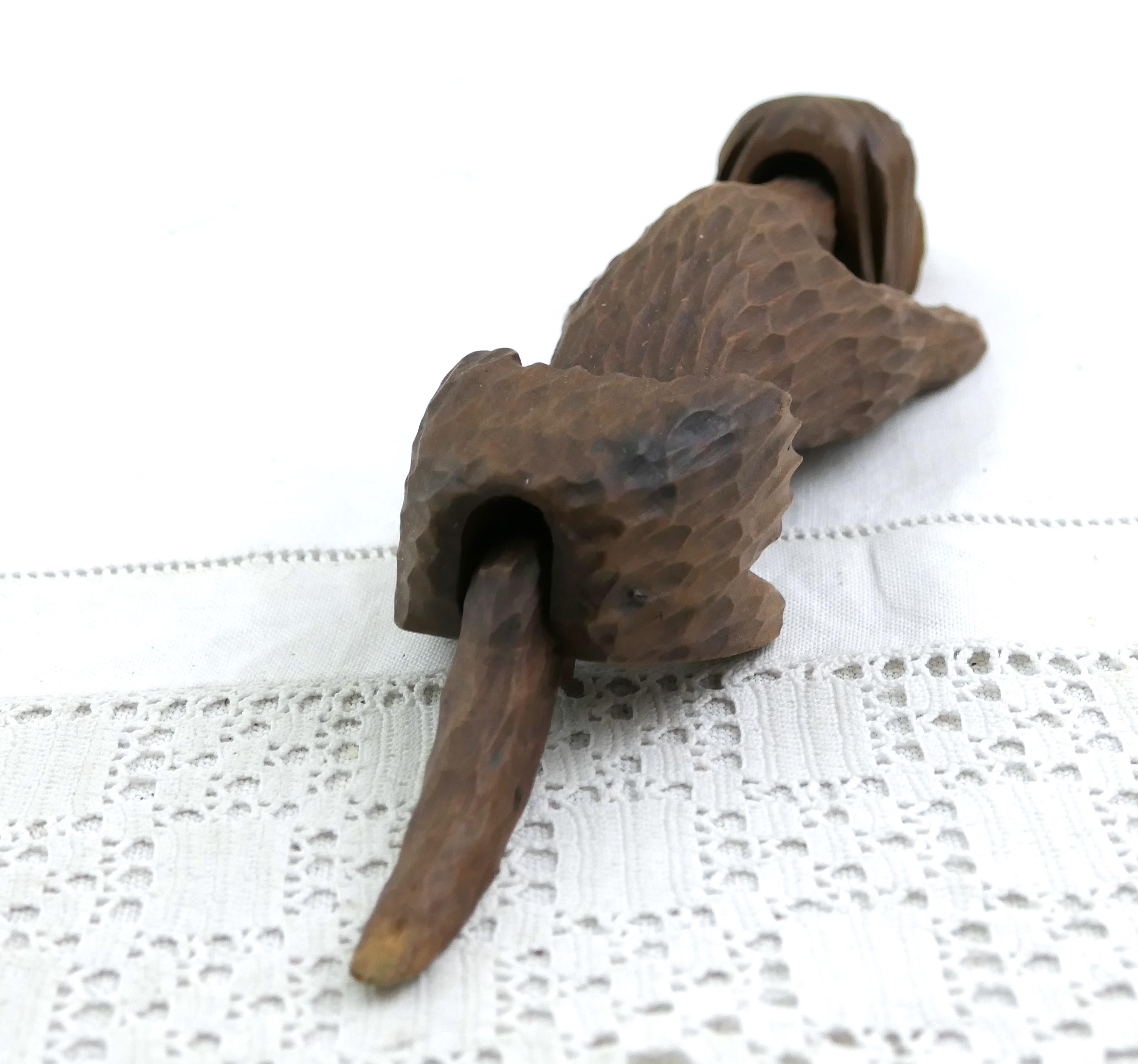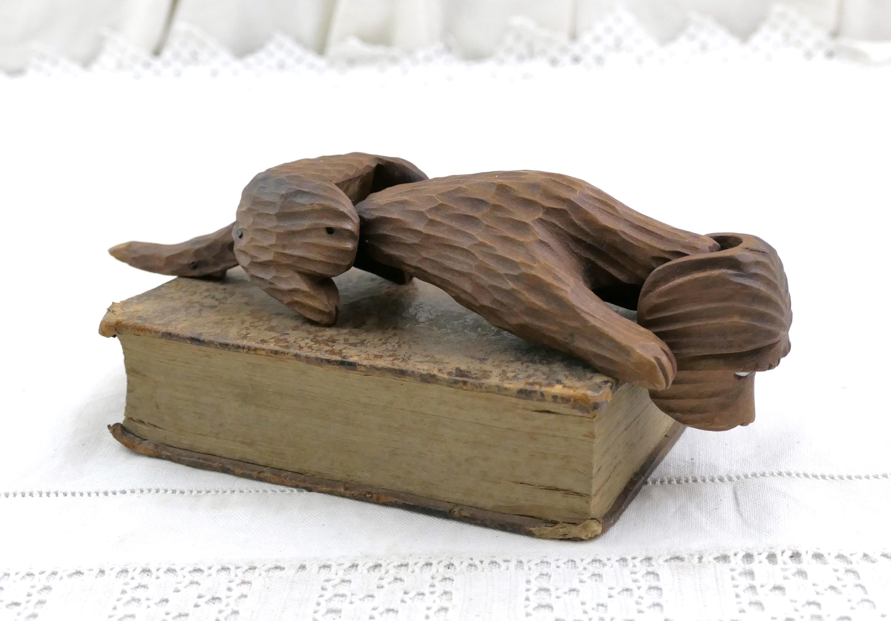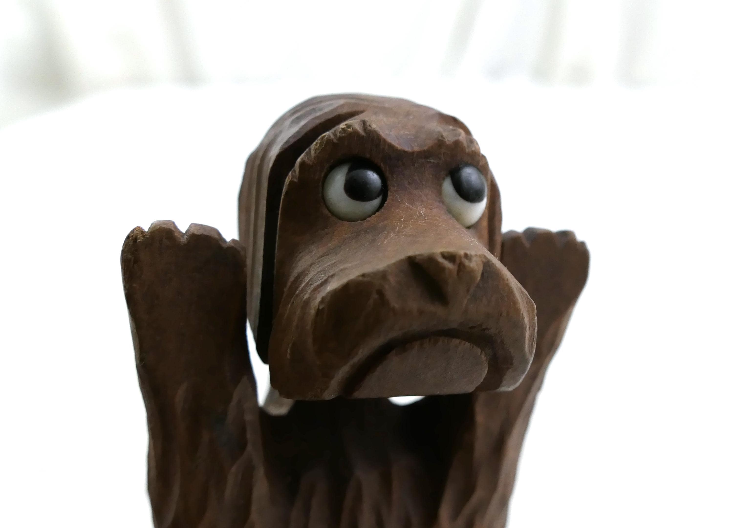 Vintage hand carved Black Forest articulated dog figurine. Once part of cigarette box or such like. Made of wood. Ca early to mid 1900s.