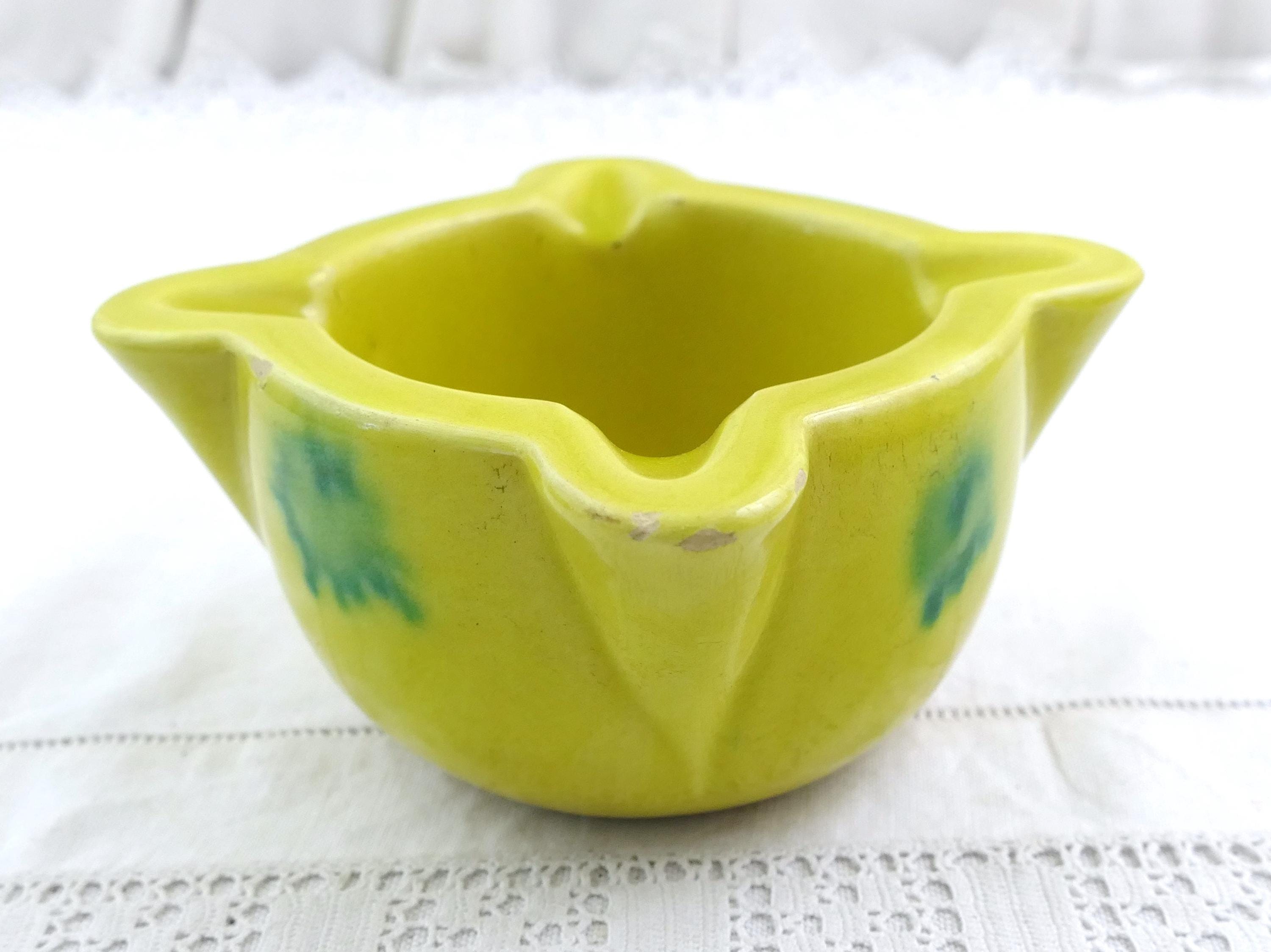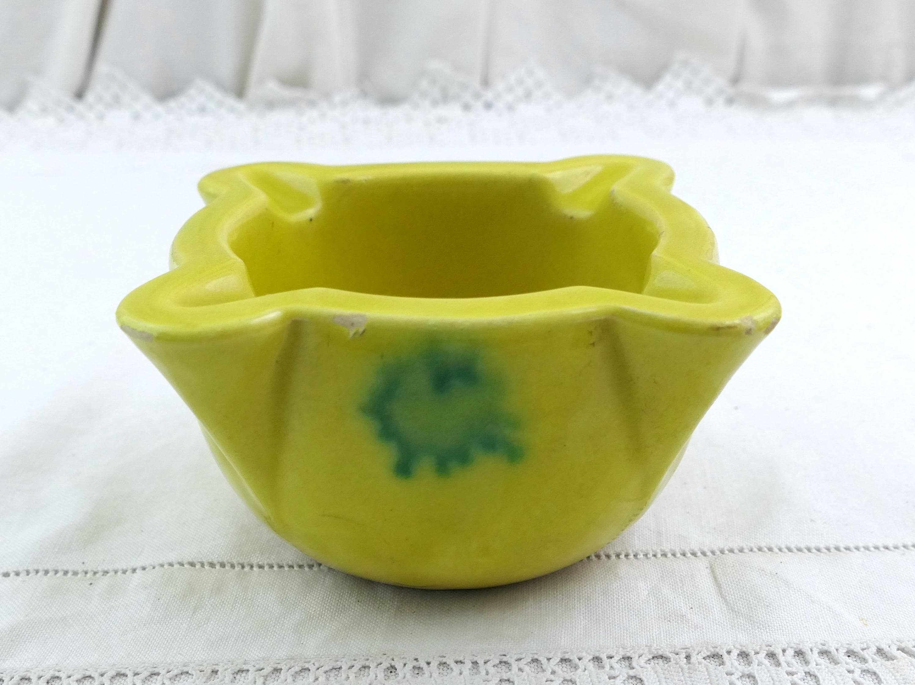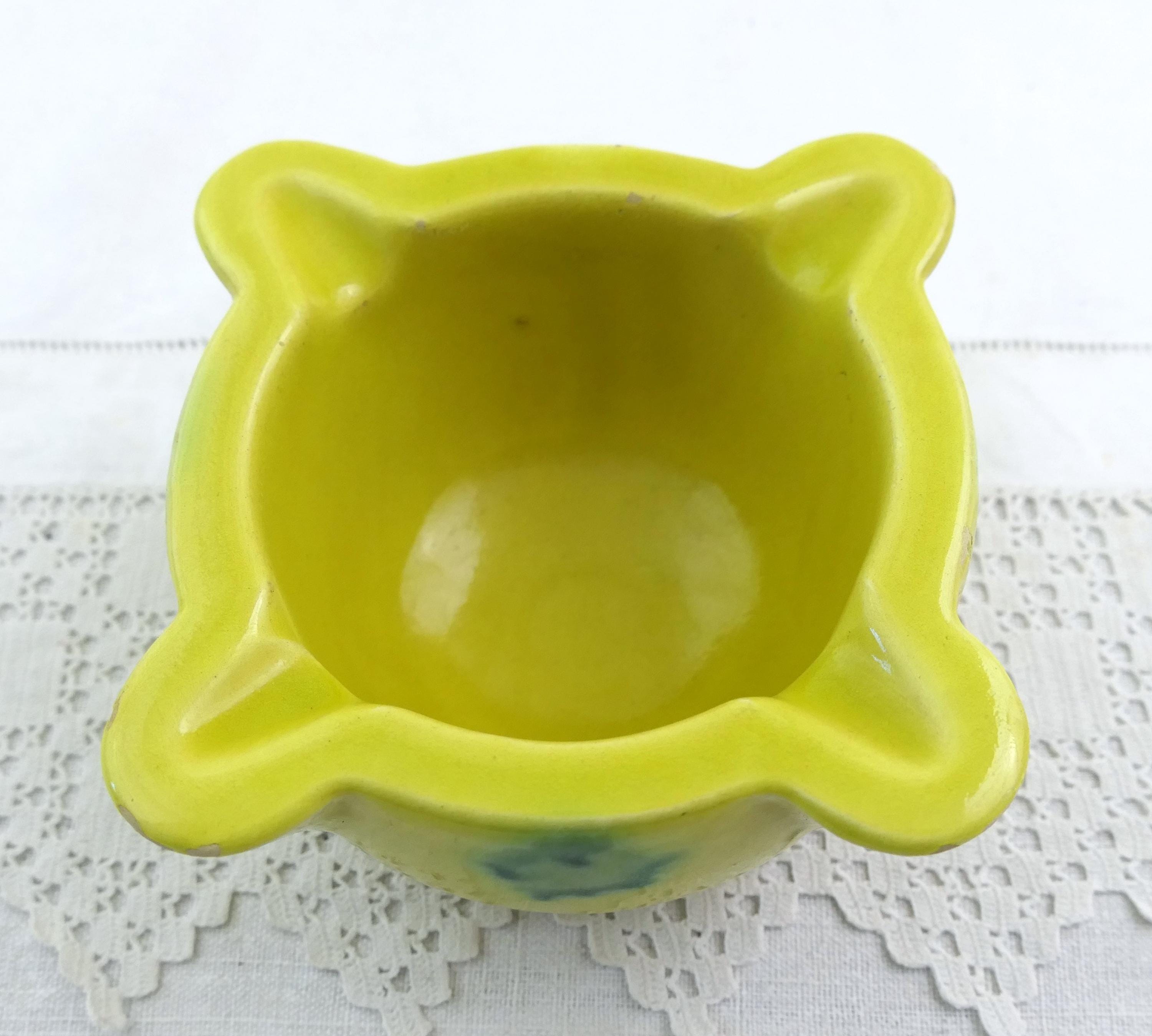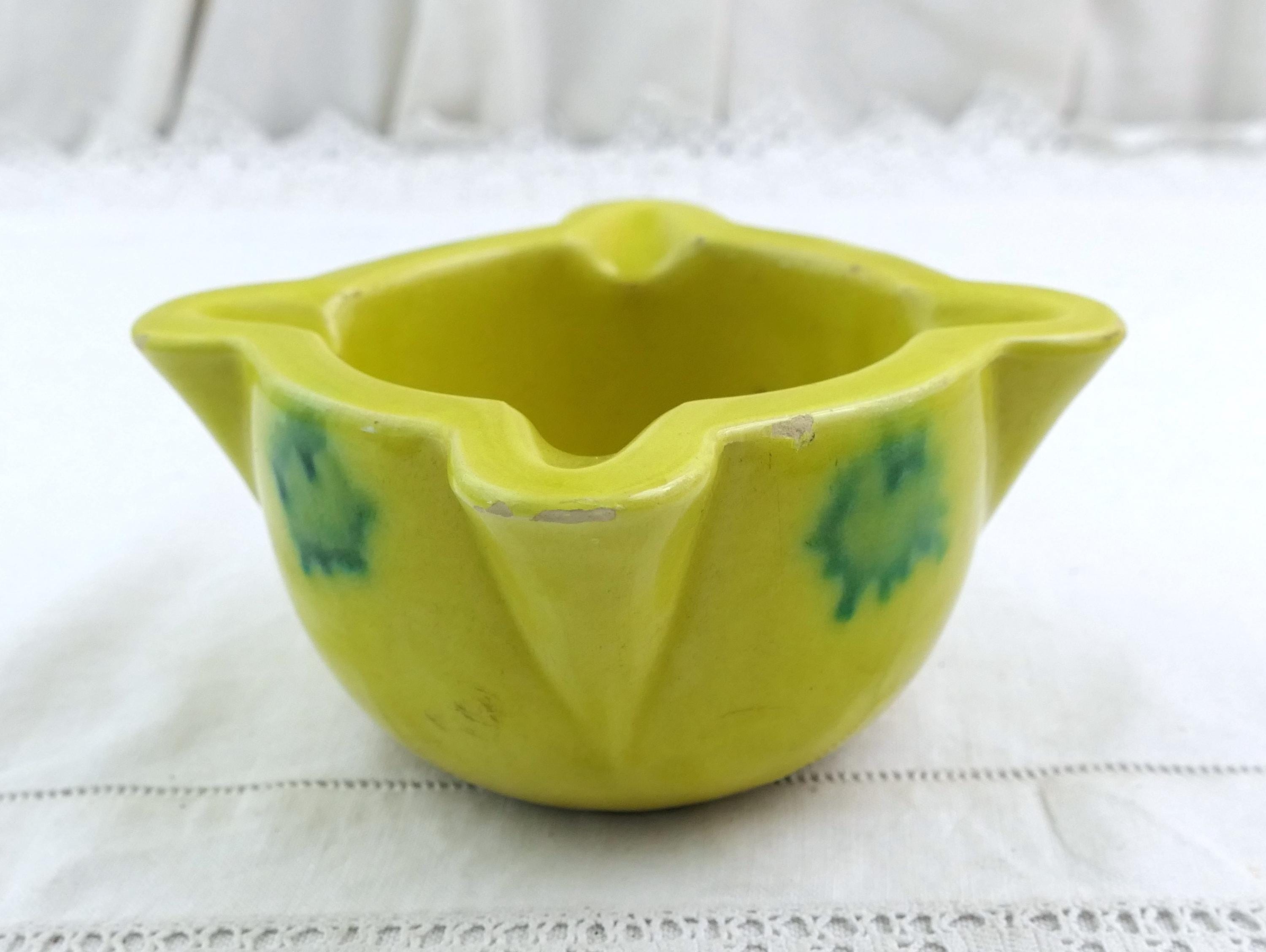 Vintage French yellow and green glazed Vallauris mortar style ashtray / bowl. Made of glazed pottery. Ca 1960s.