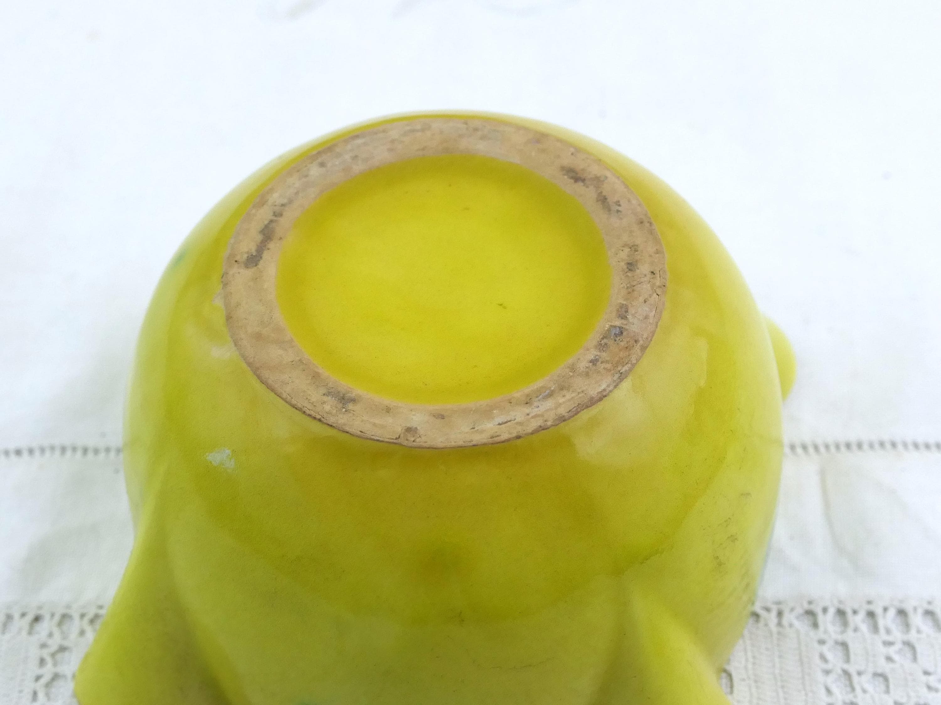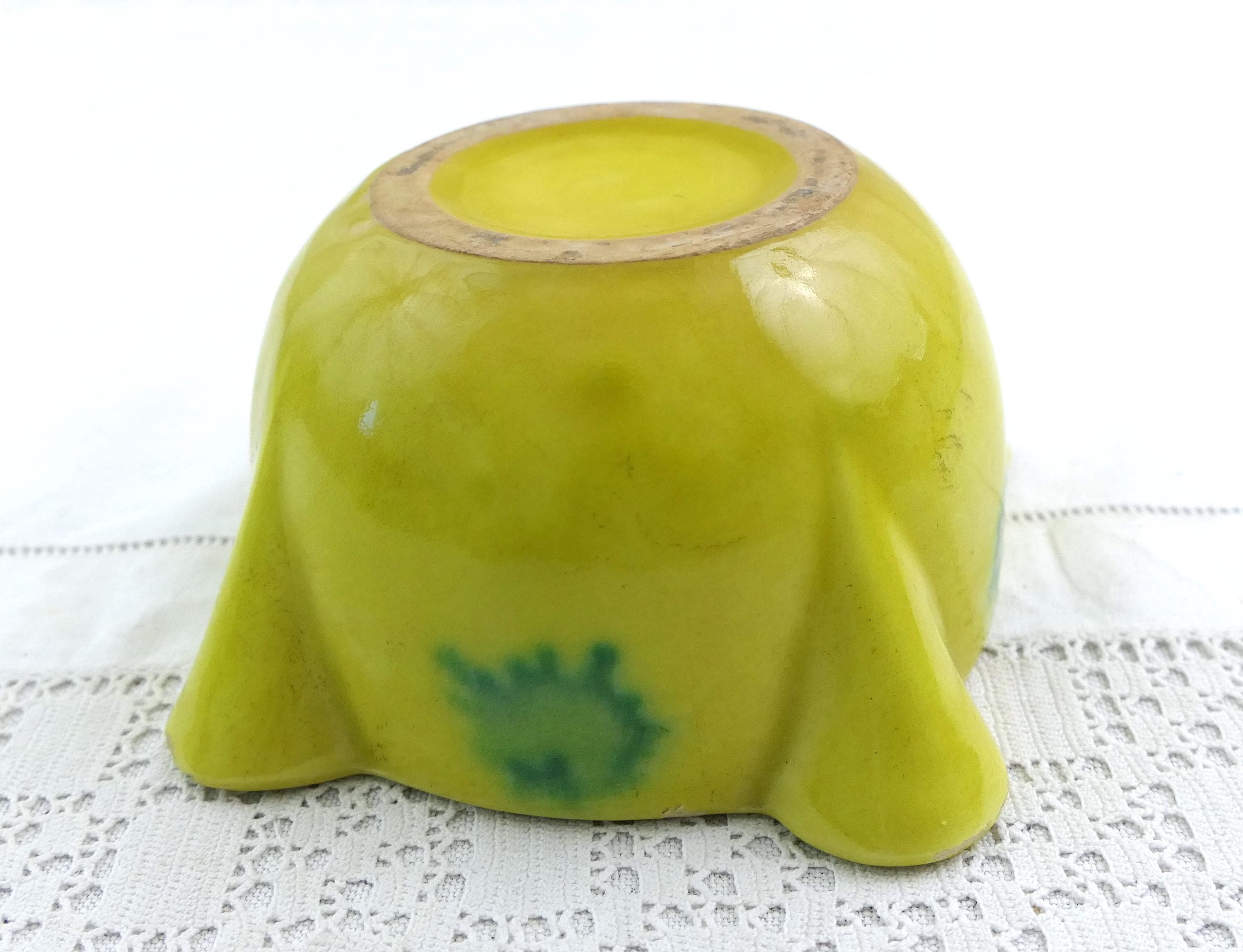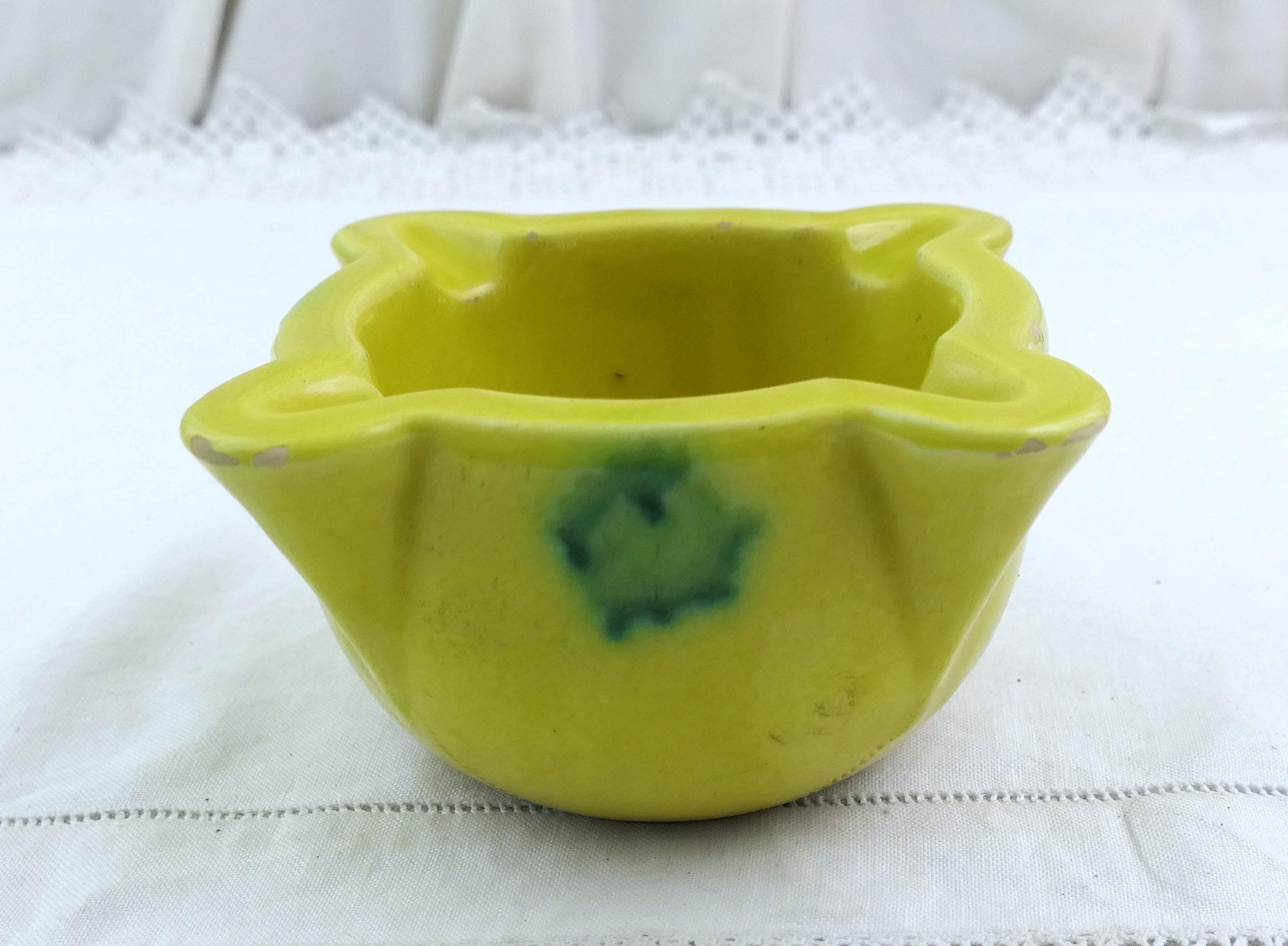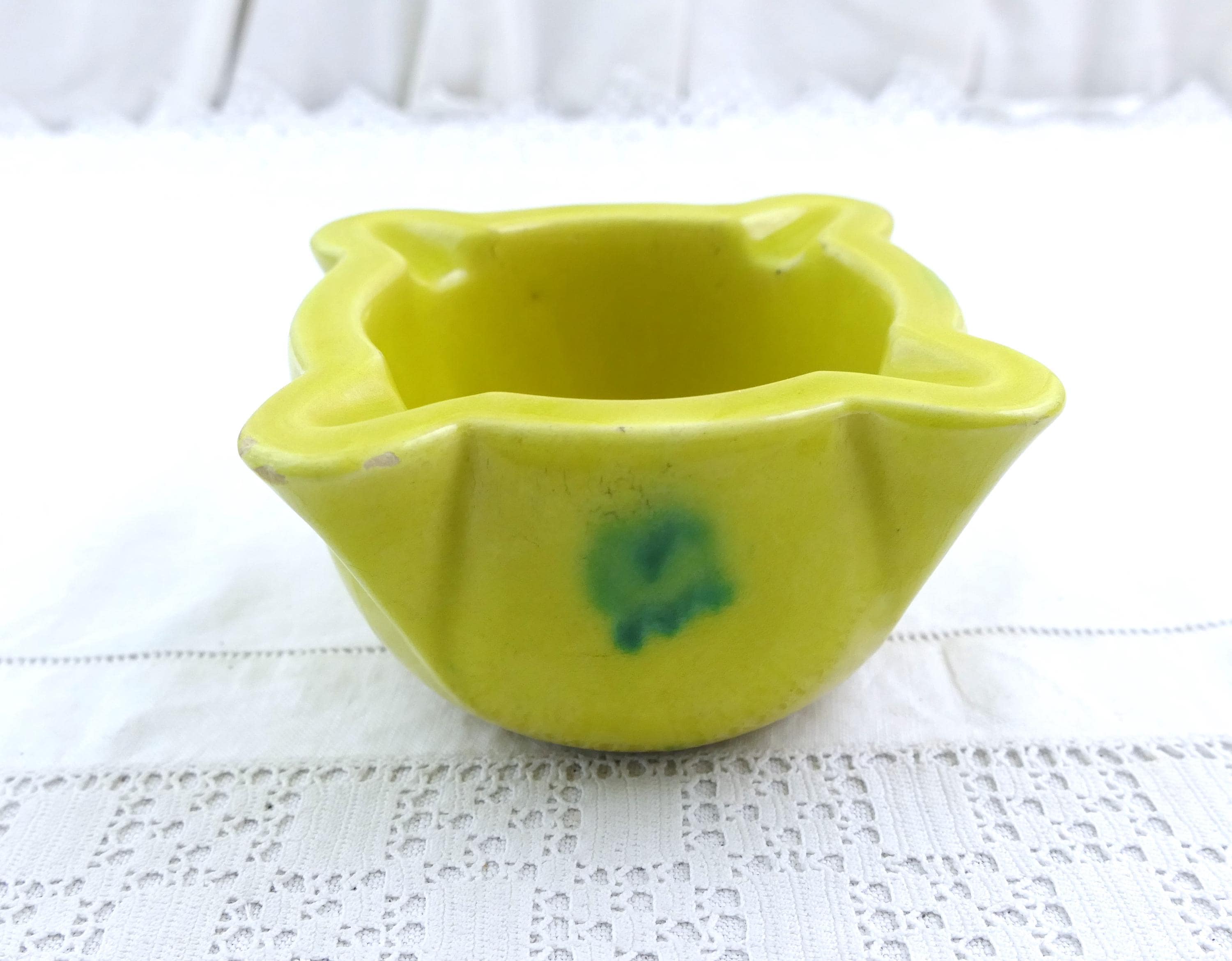 Vintage French yellow and green glazed Vallauris mortar style ashtray / bowl. Made of glazed pottery. Ca 1960s.