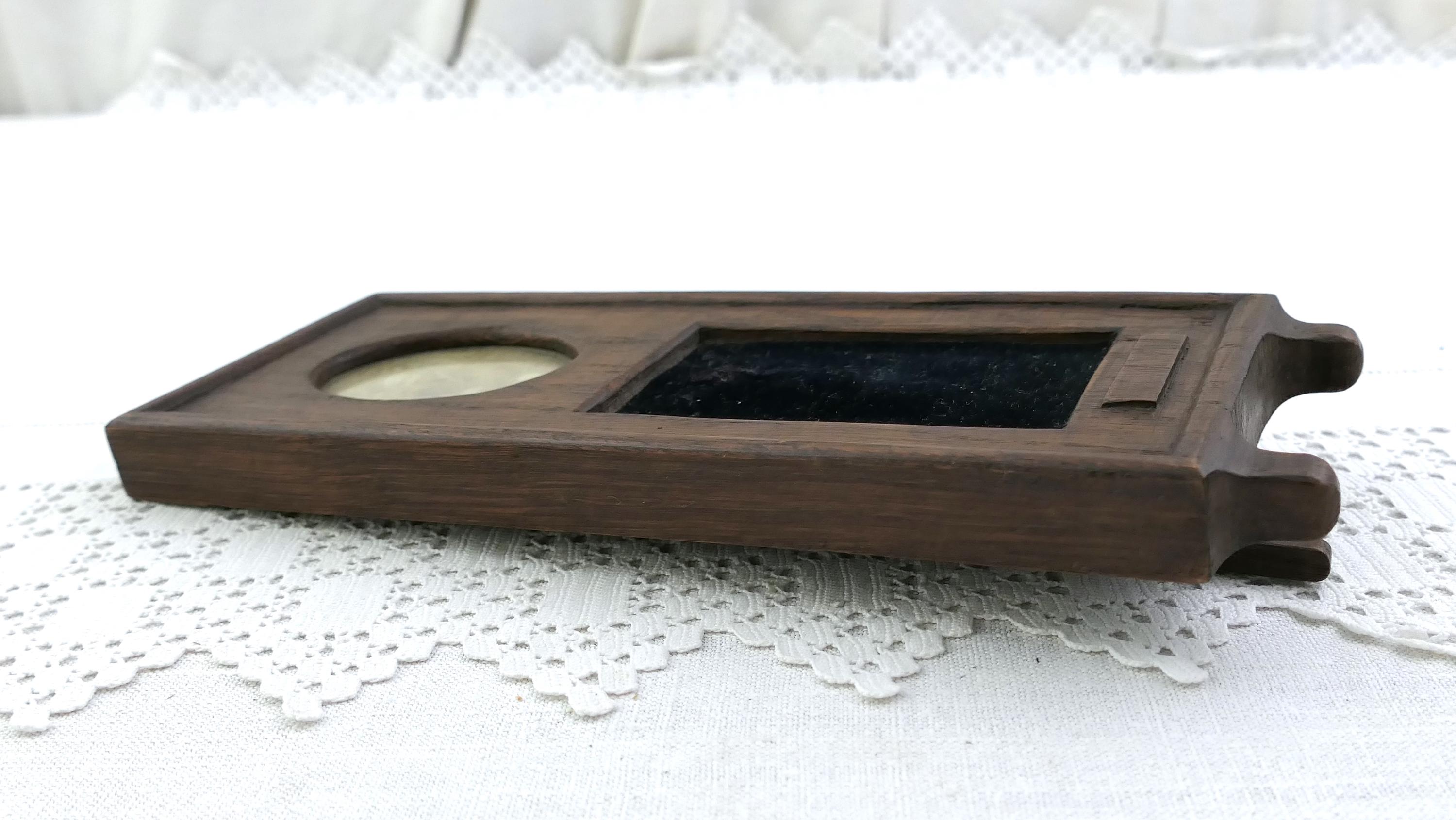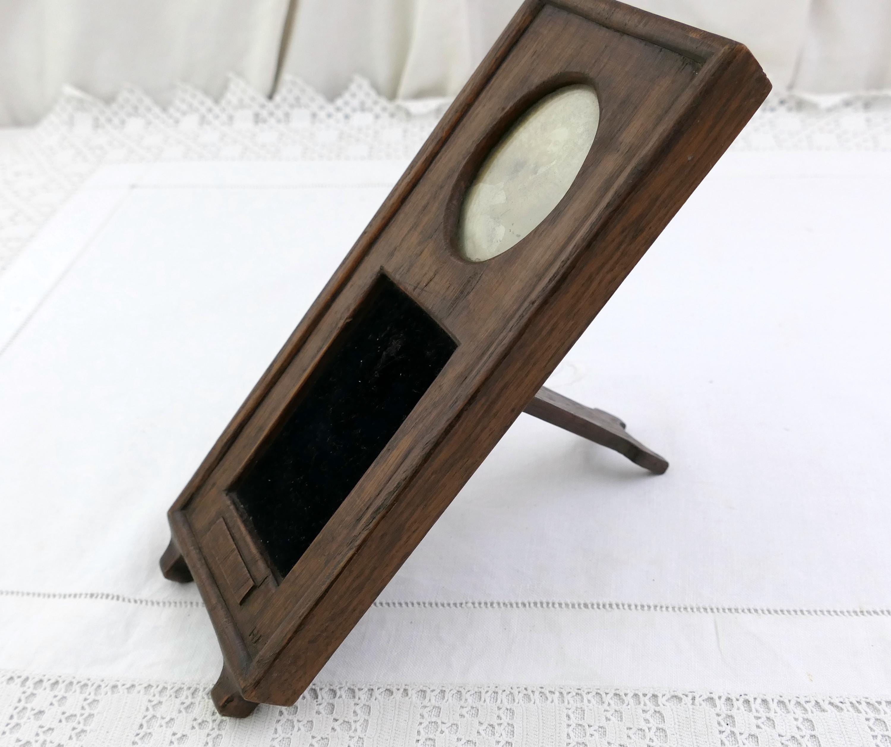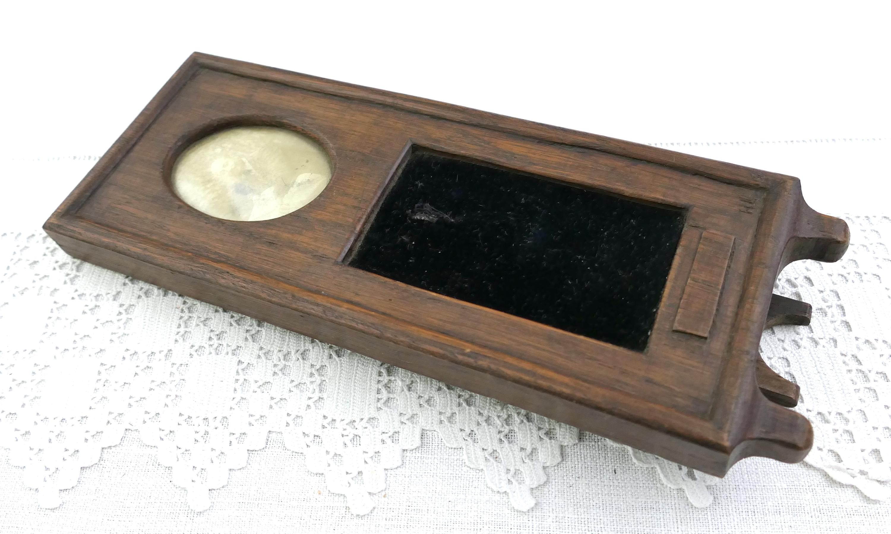 Antique Primitive hand carved tall thin portrait frame with pocket watch holder. Made of oak wood. Ca early 1900s.
