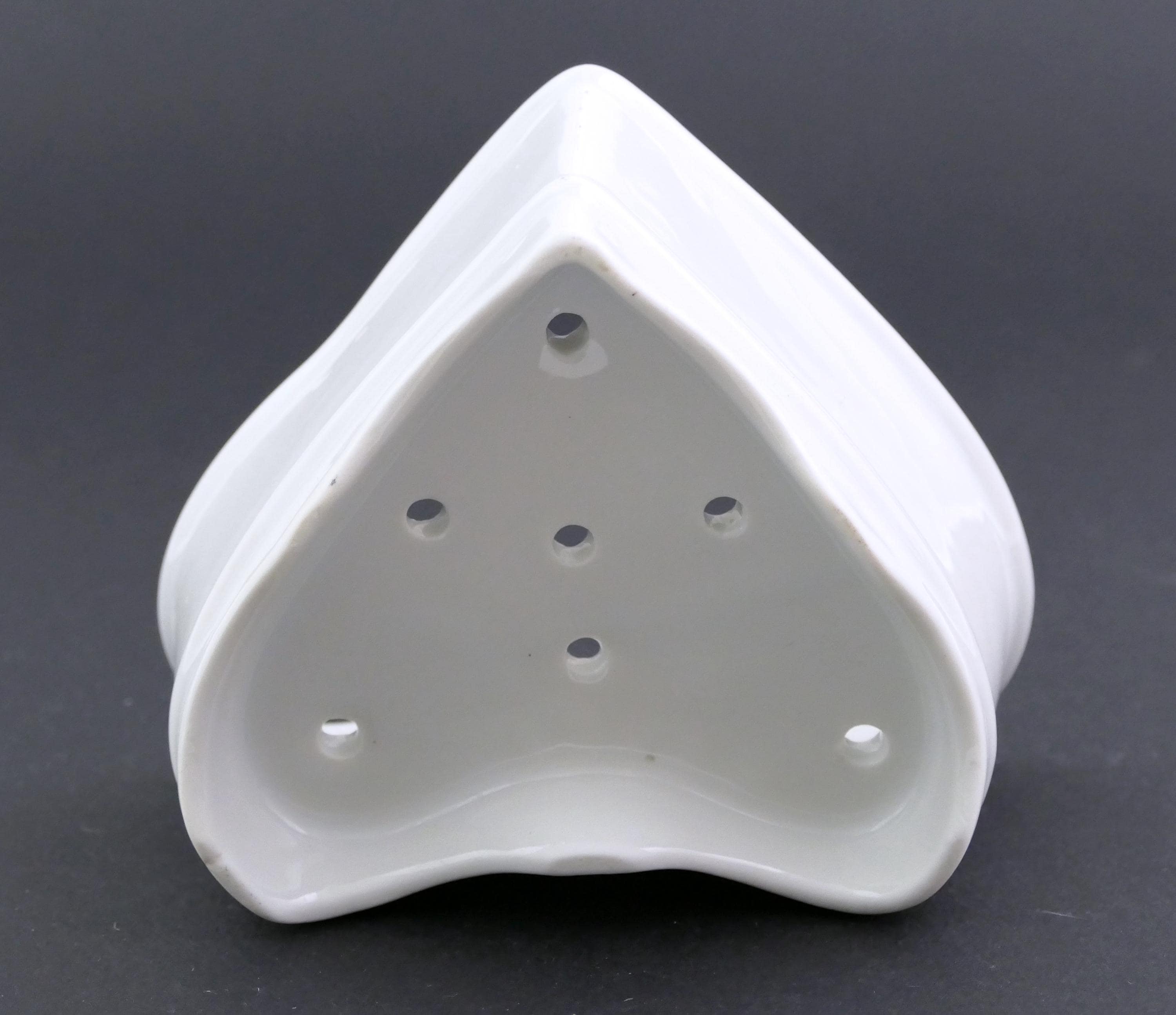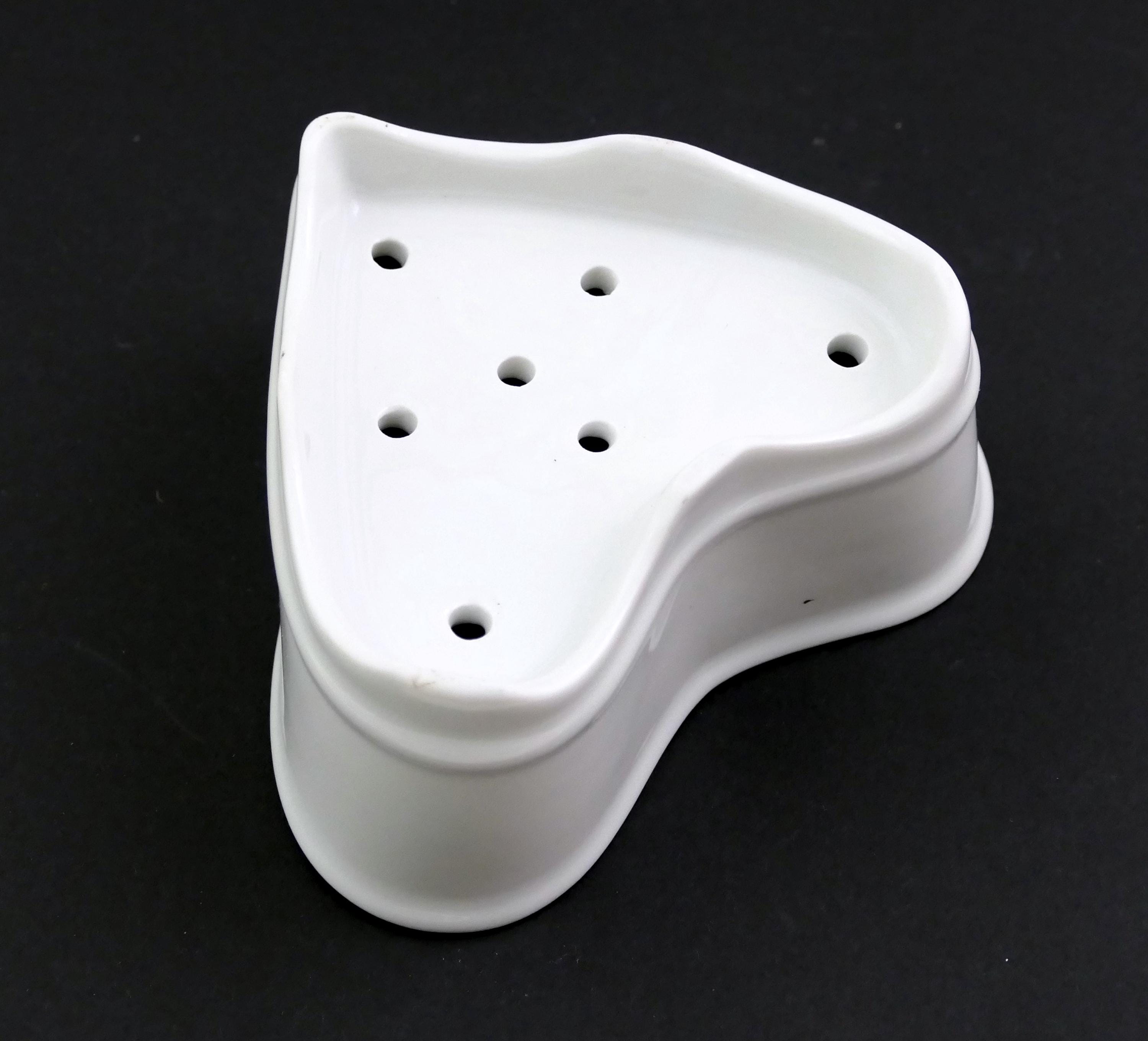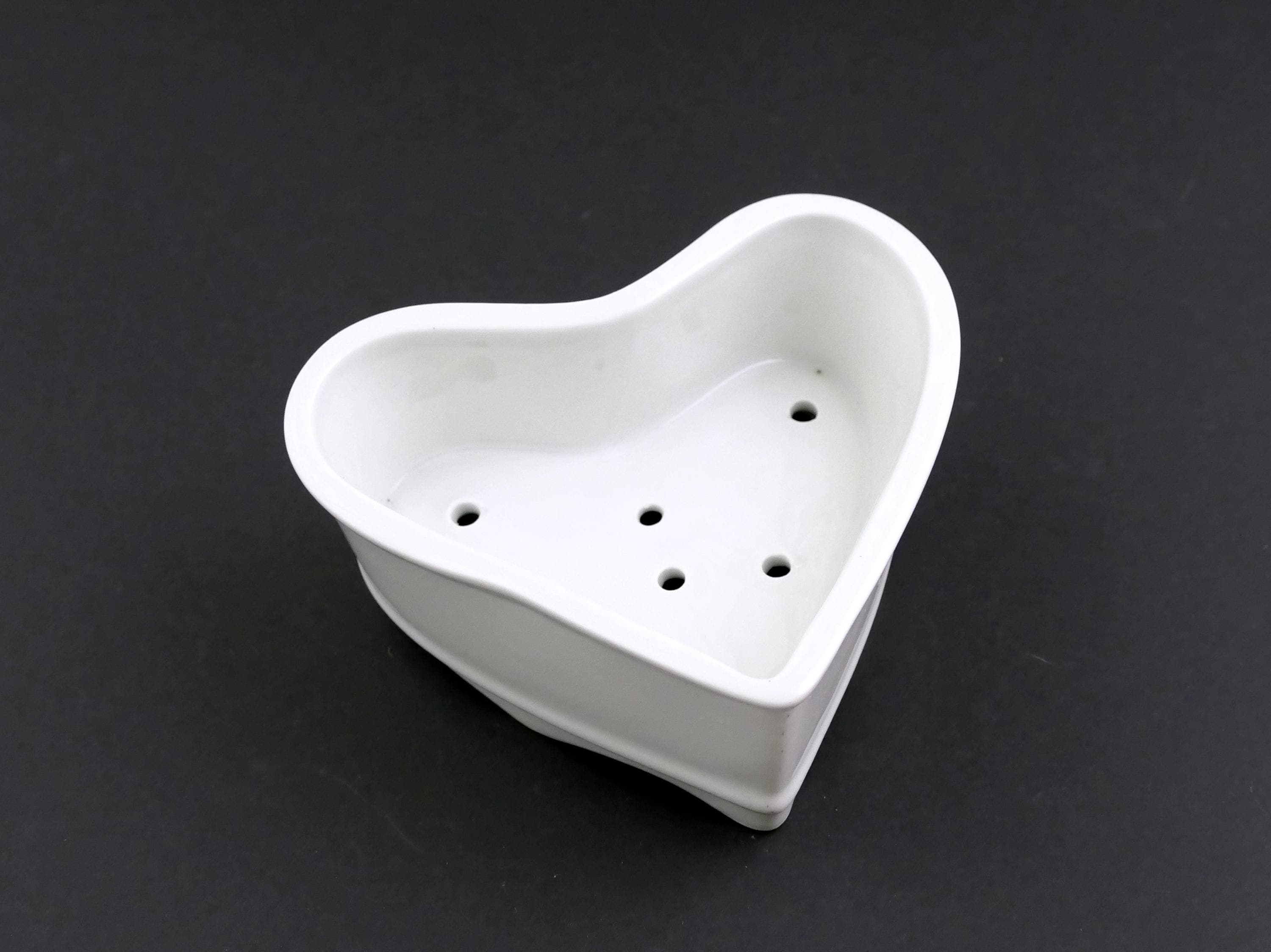 Antique French Neufchâtel cheese mold. Made of white glazed china shaped as a heart with draining holes in the base. Circa 1920s, found at a flea market in Normandy.