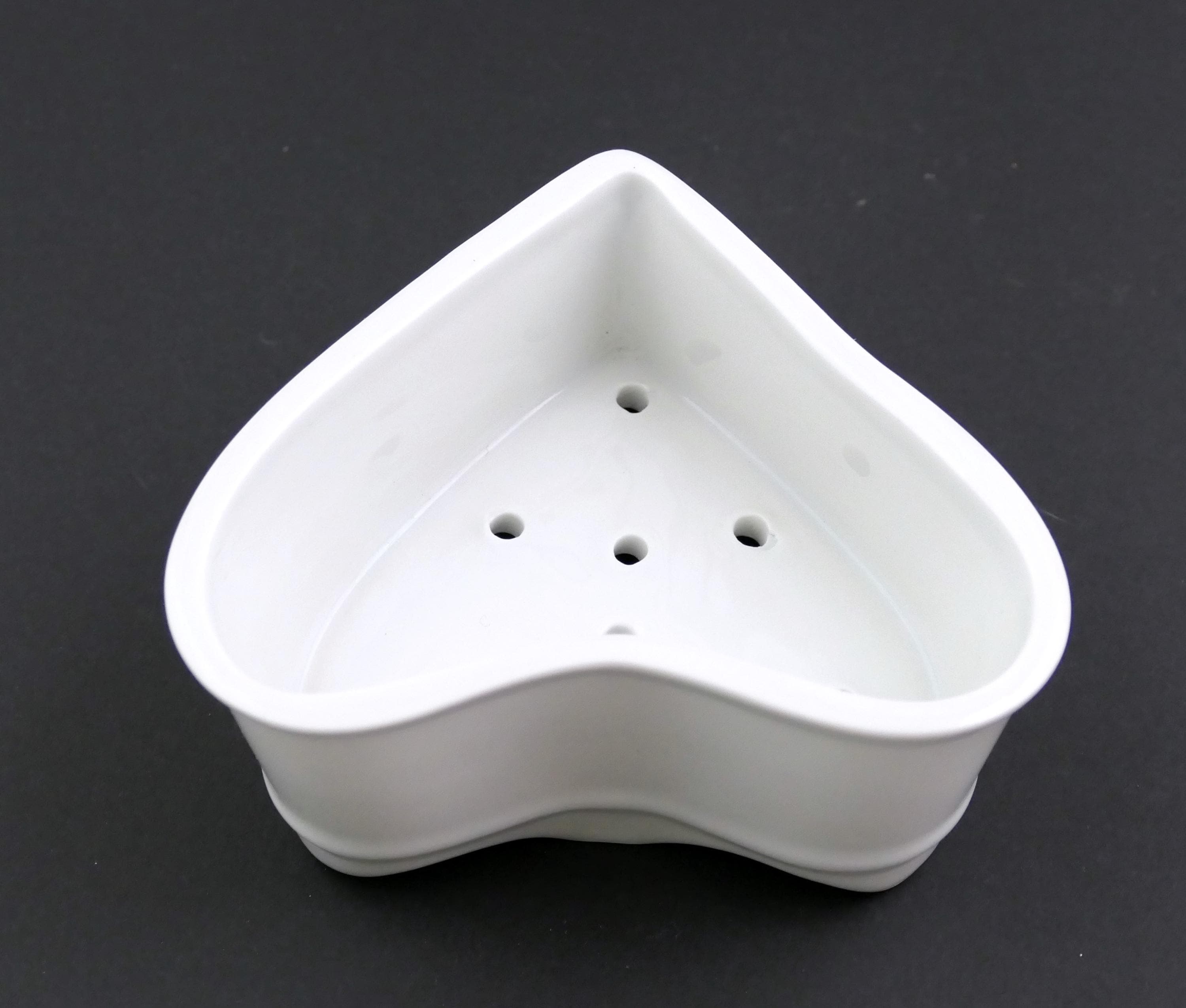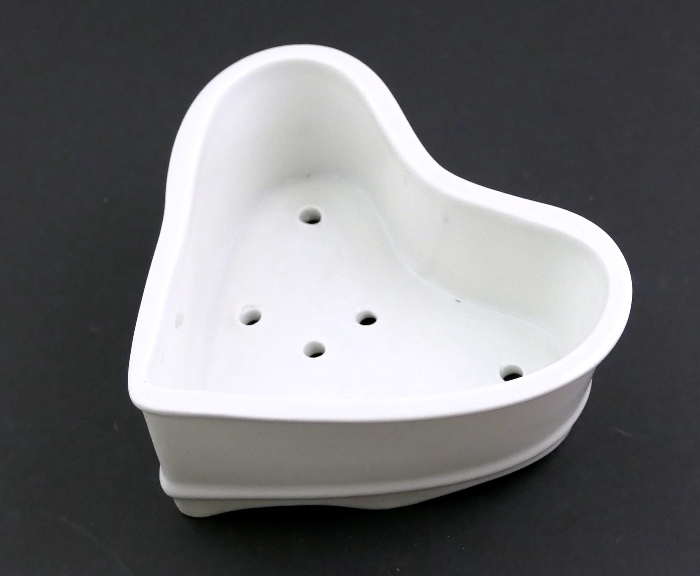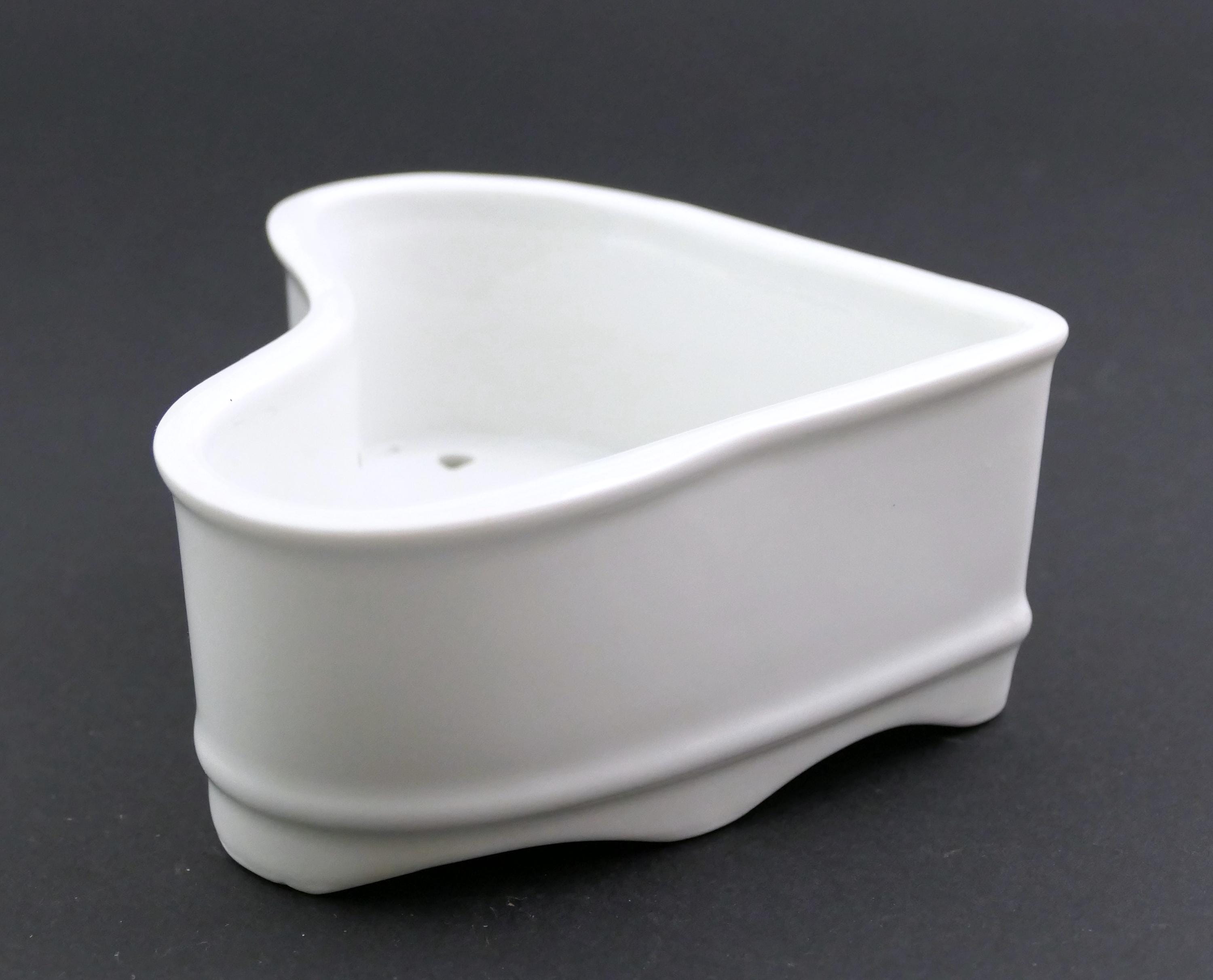 Antique French Neufchâtel cheese mold. Made of white glazed china shaped as a heart with draining holes in the base. Circa 1920s, found at a flea market in Normandy.