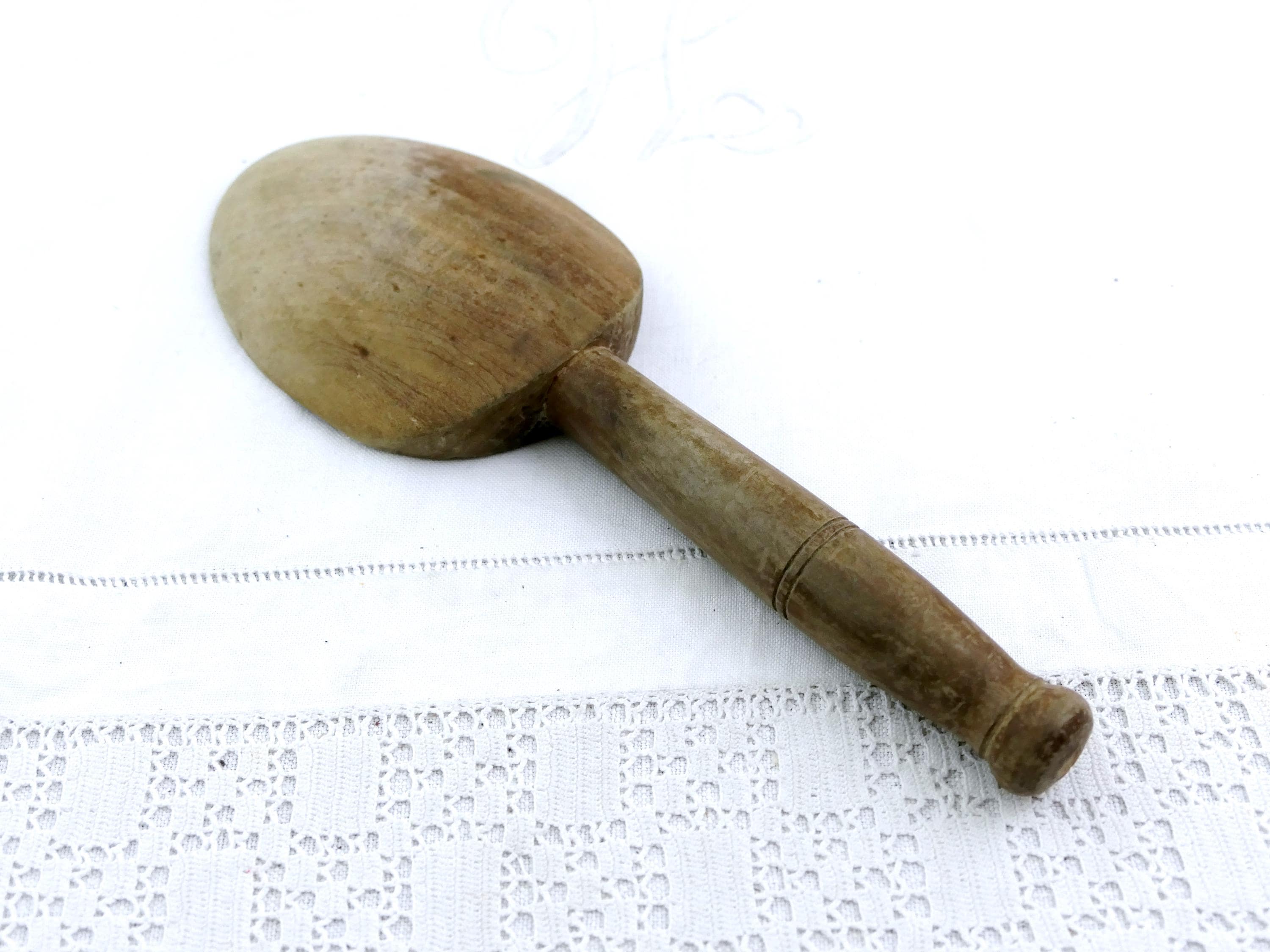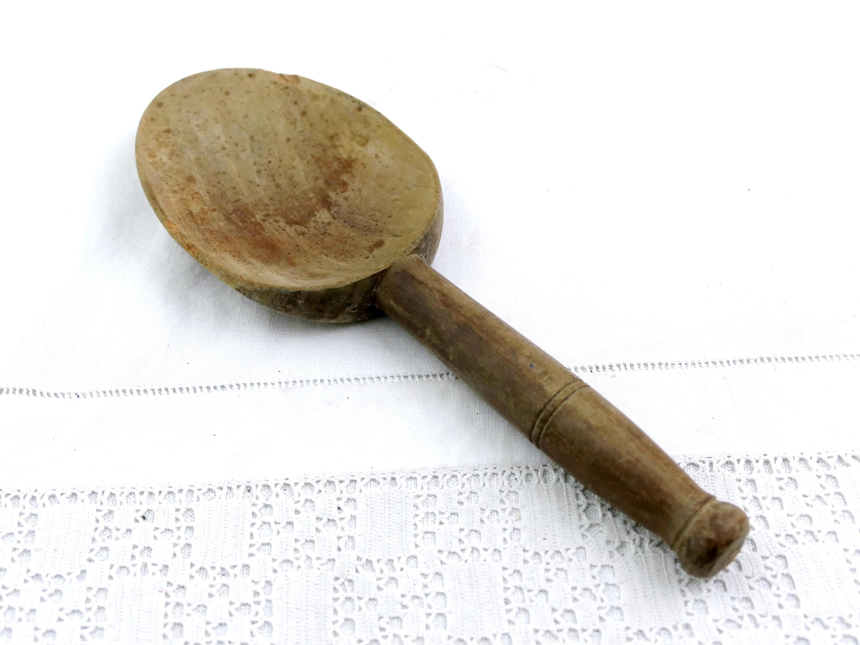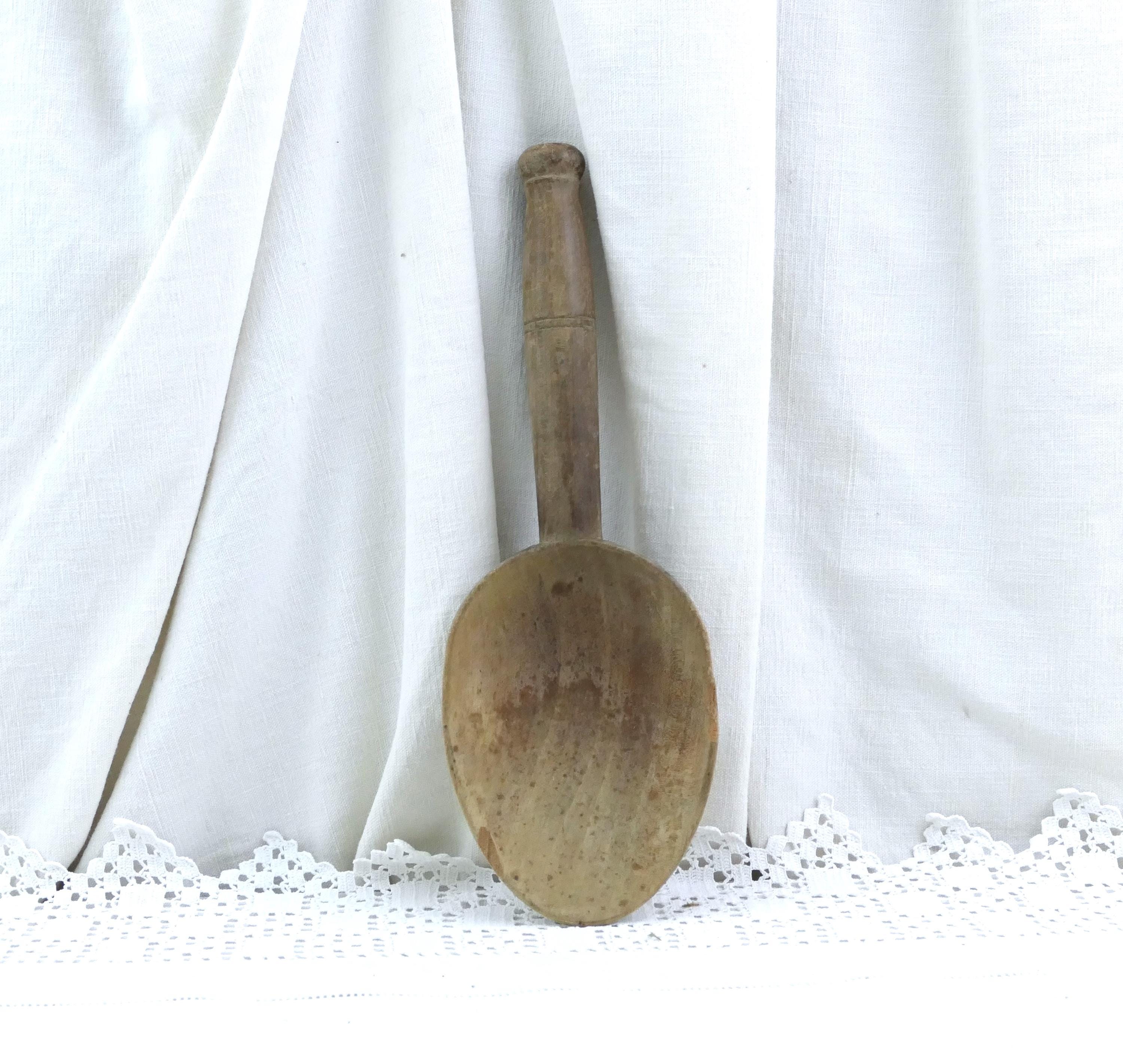 Large antique French dairy spoon. Made of wood. Used to shape the butter in farmhouse diary. Ca 1800s- 1950s.