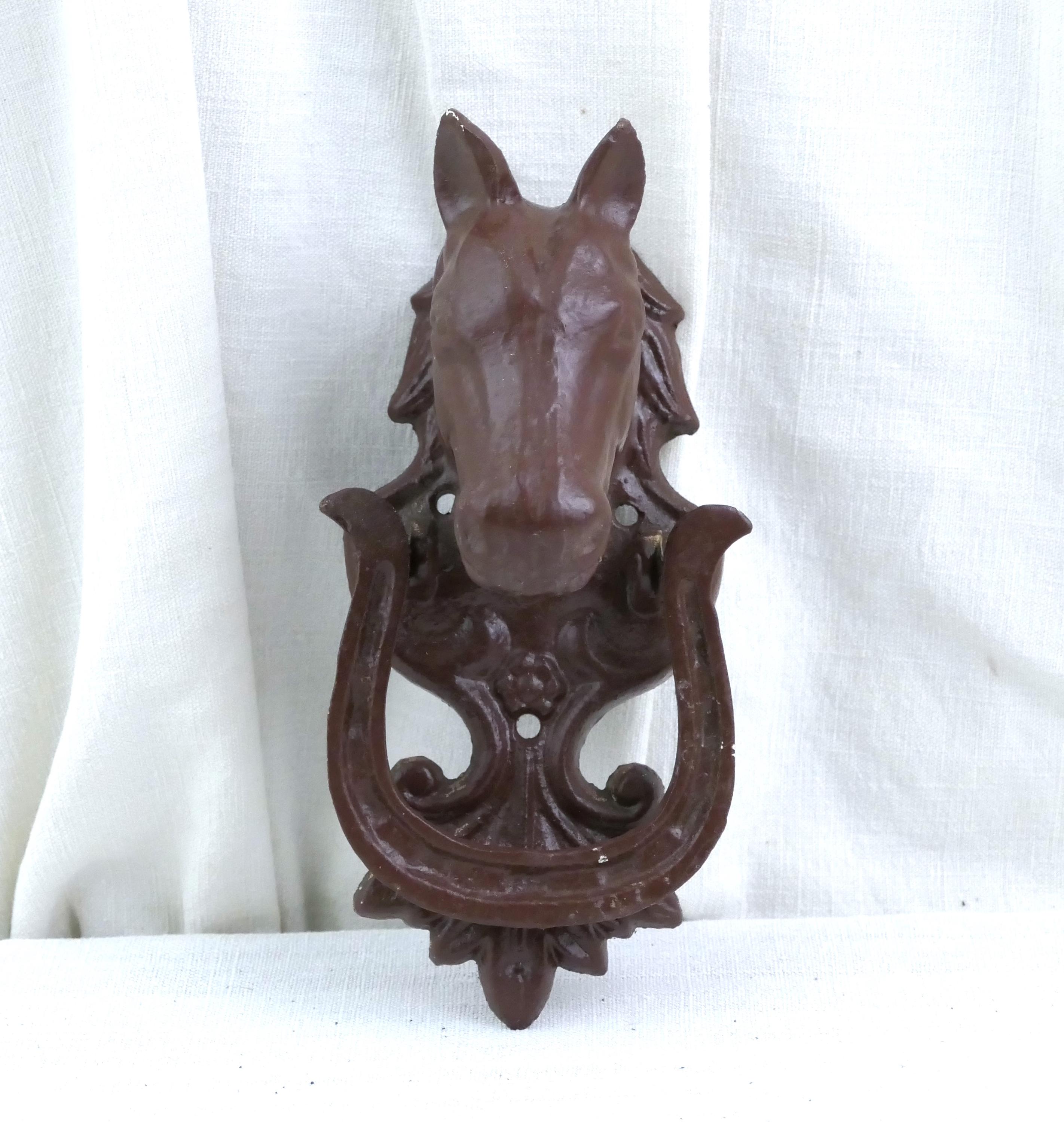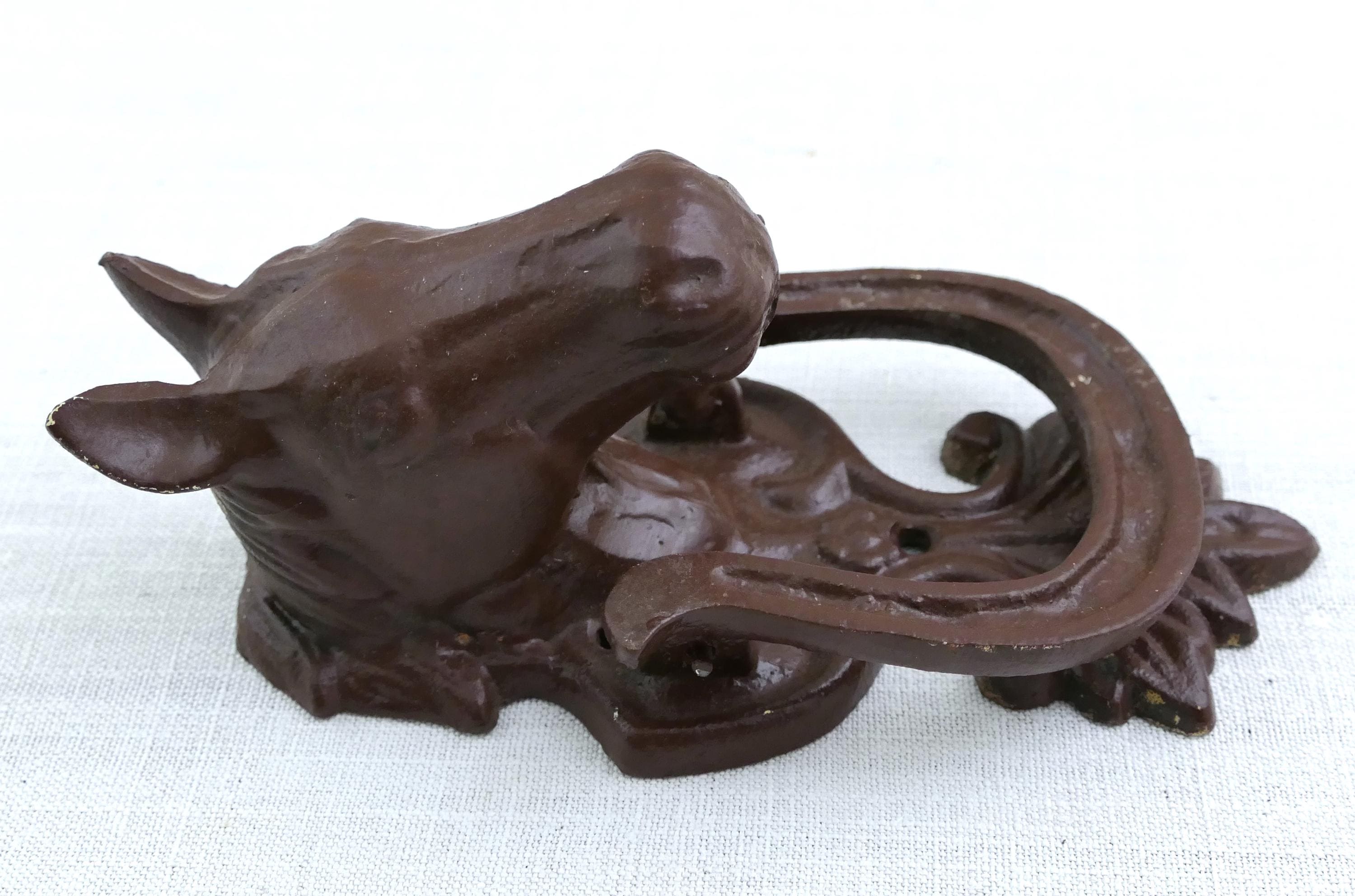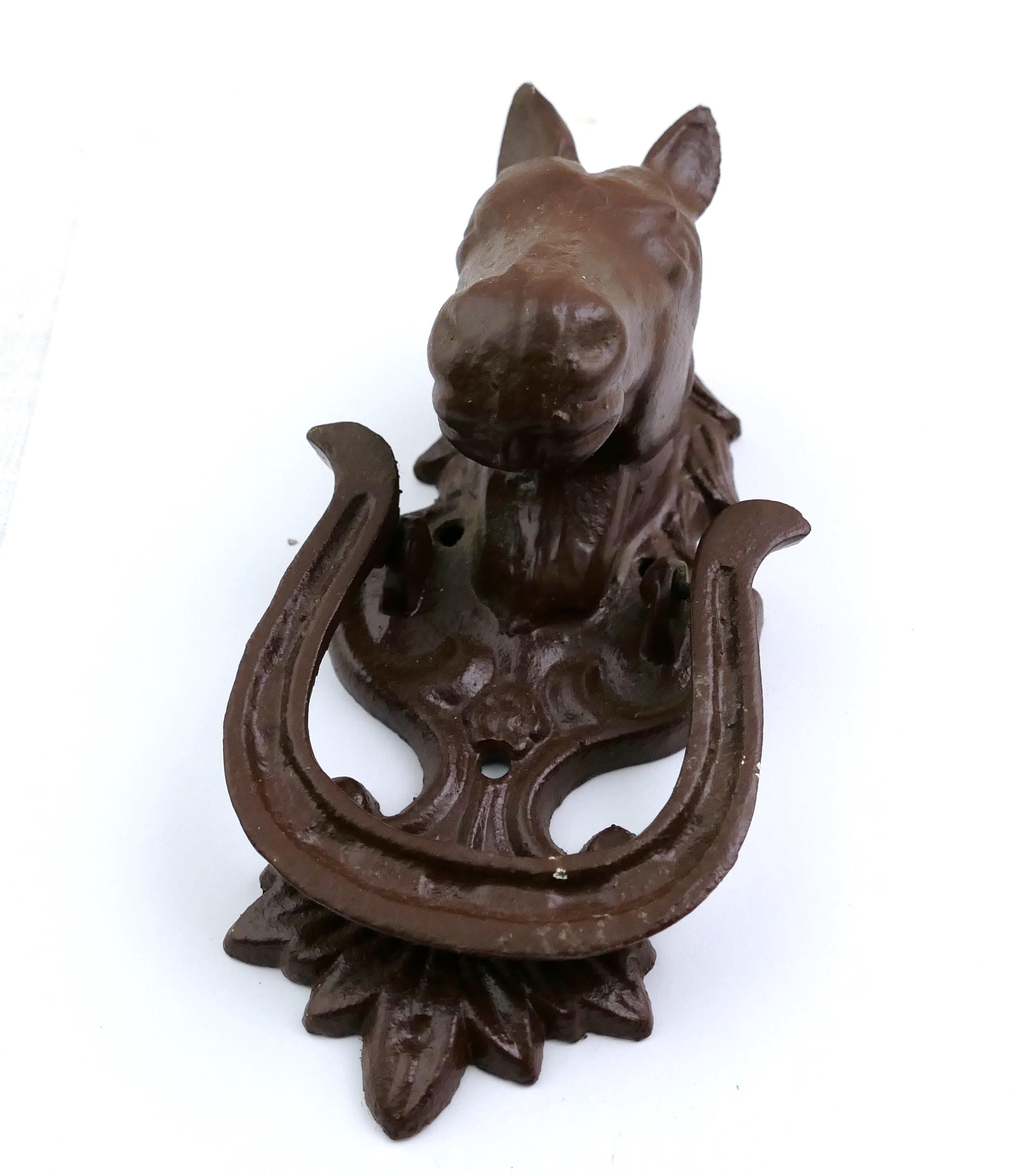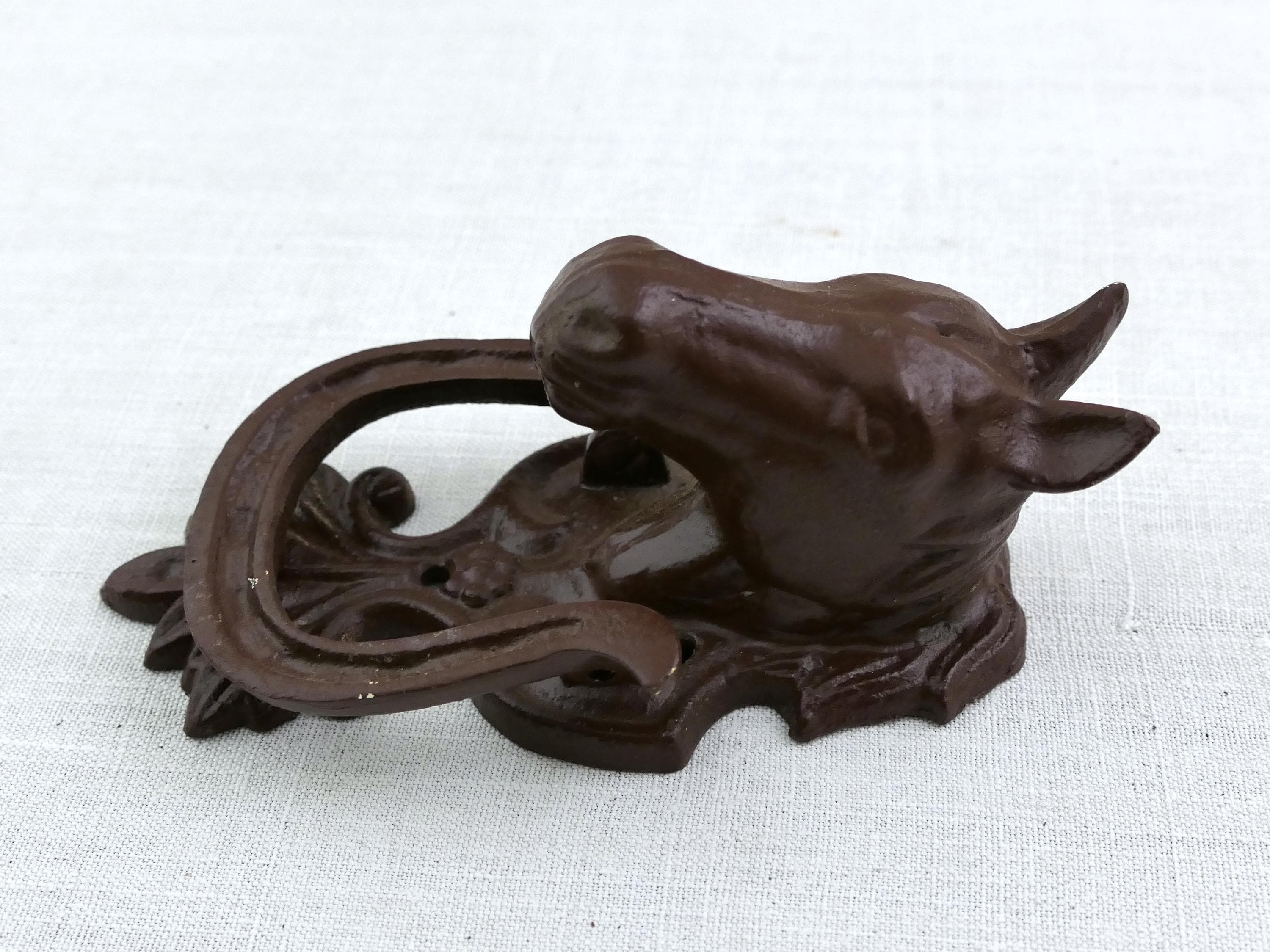 Vintage horseshoe stallion front door knocker. Made of cast iron. Ca late 1900s.