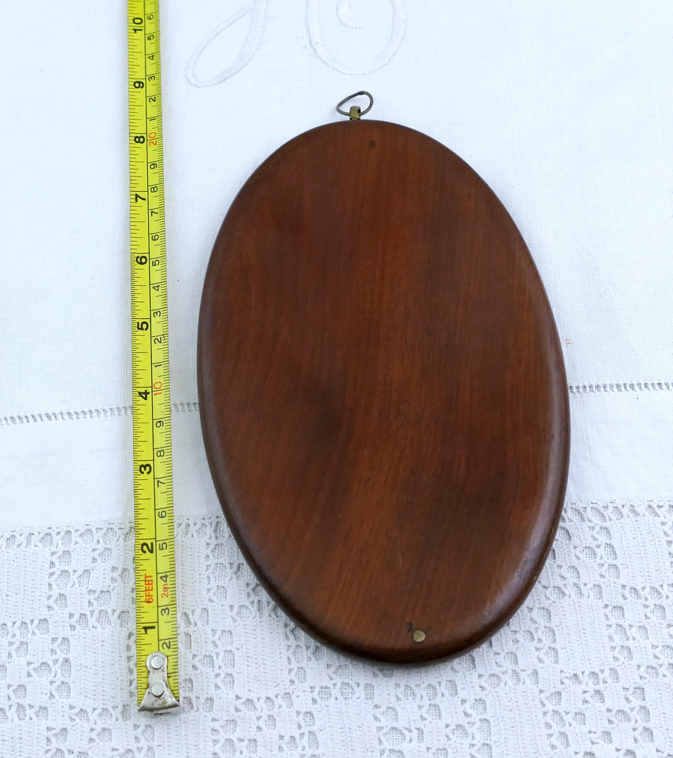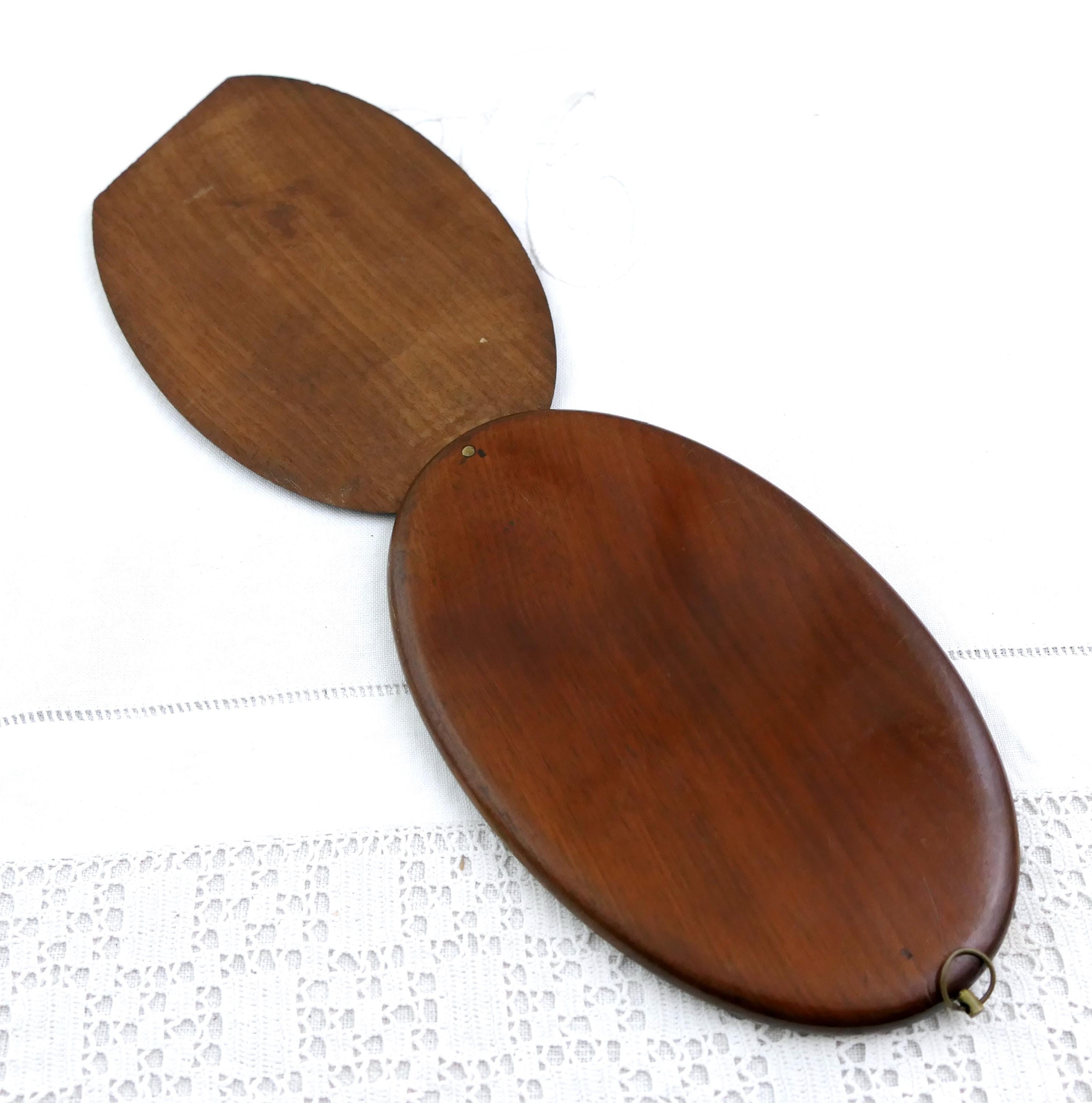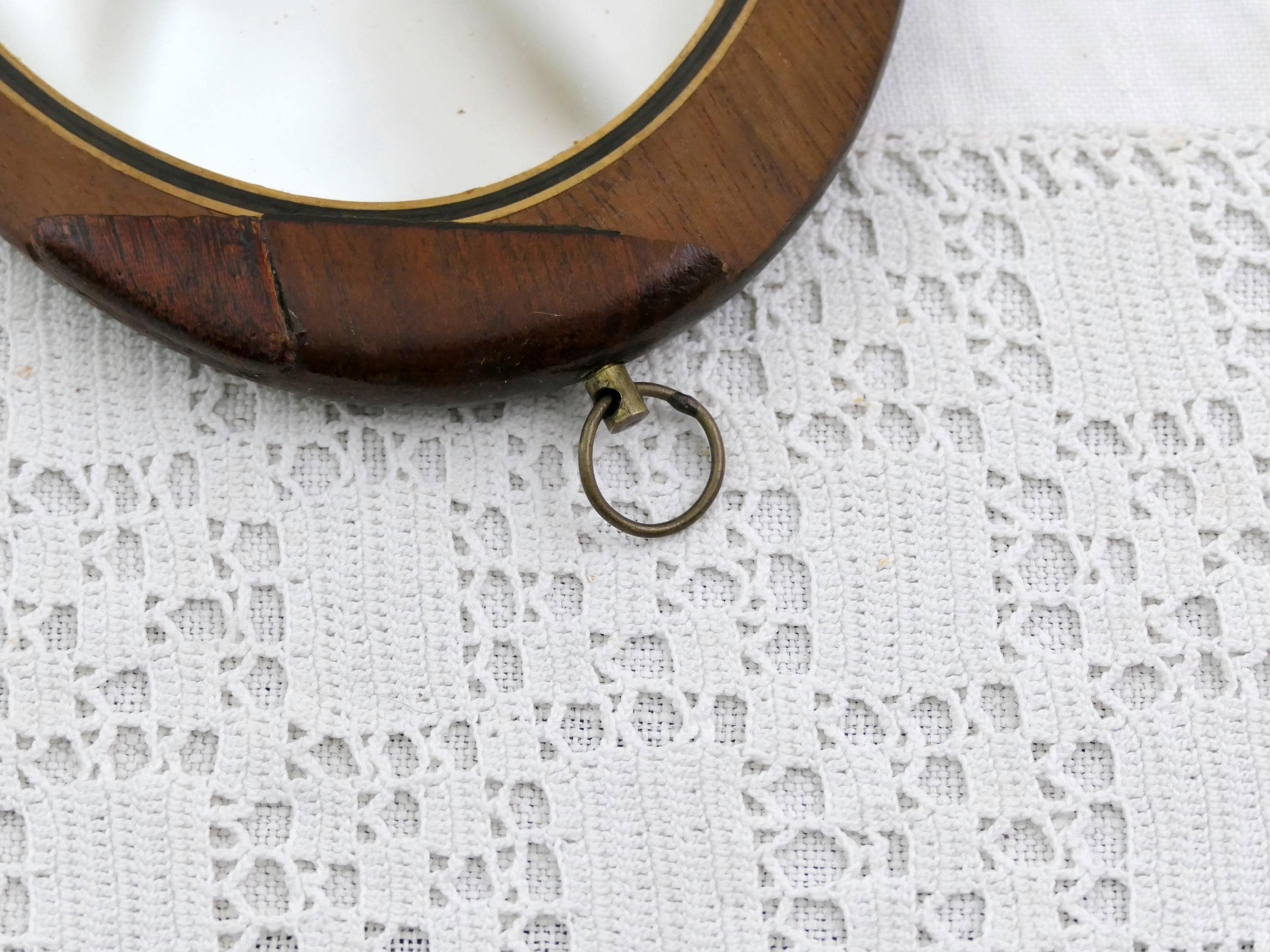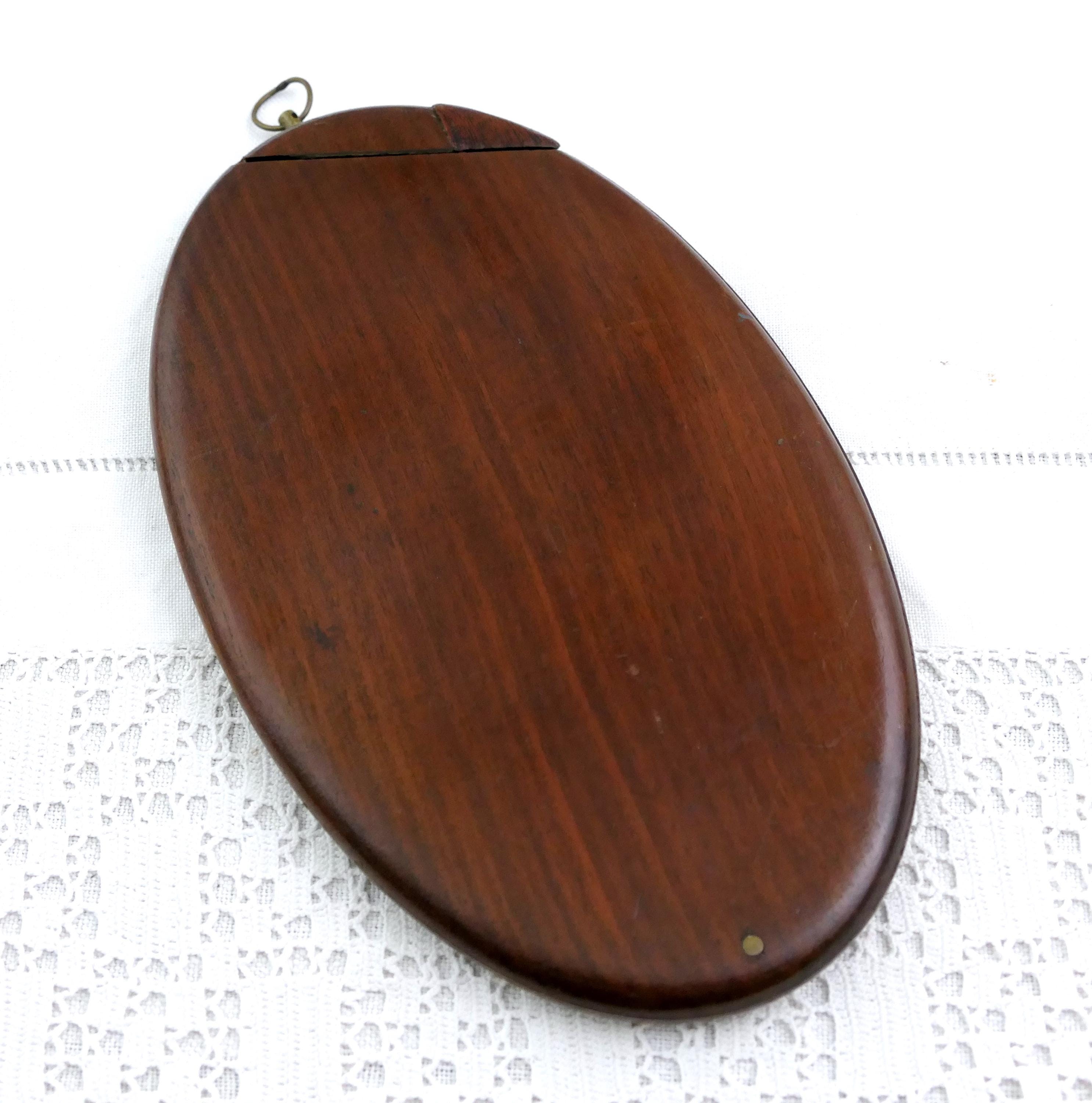Antique French oval travel vanity mirror with swivel lid. Made of wood with glass mirror. Ca 1800s.